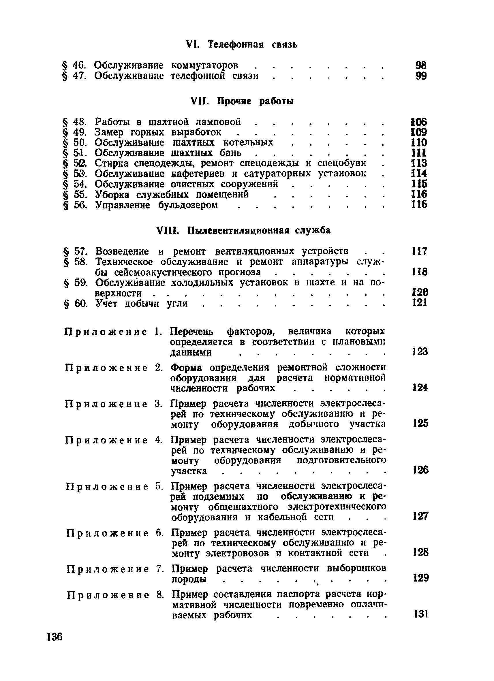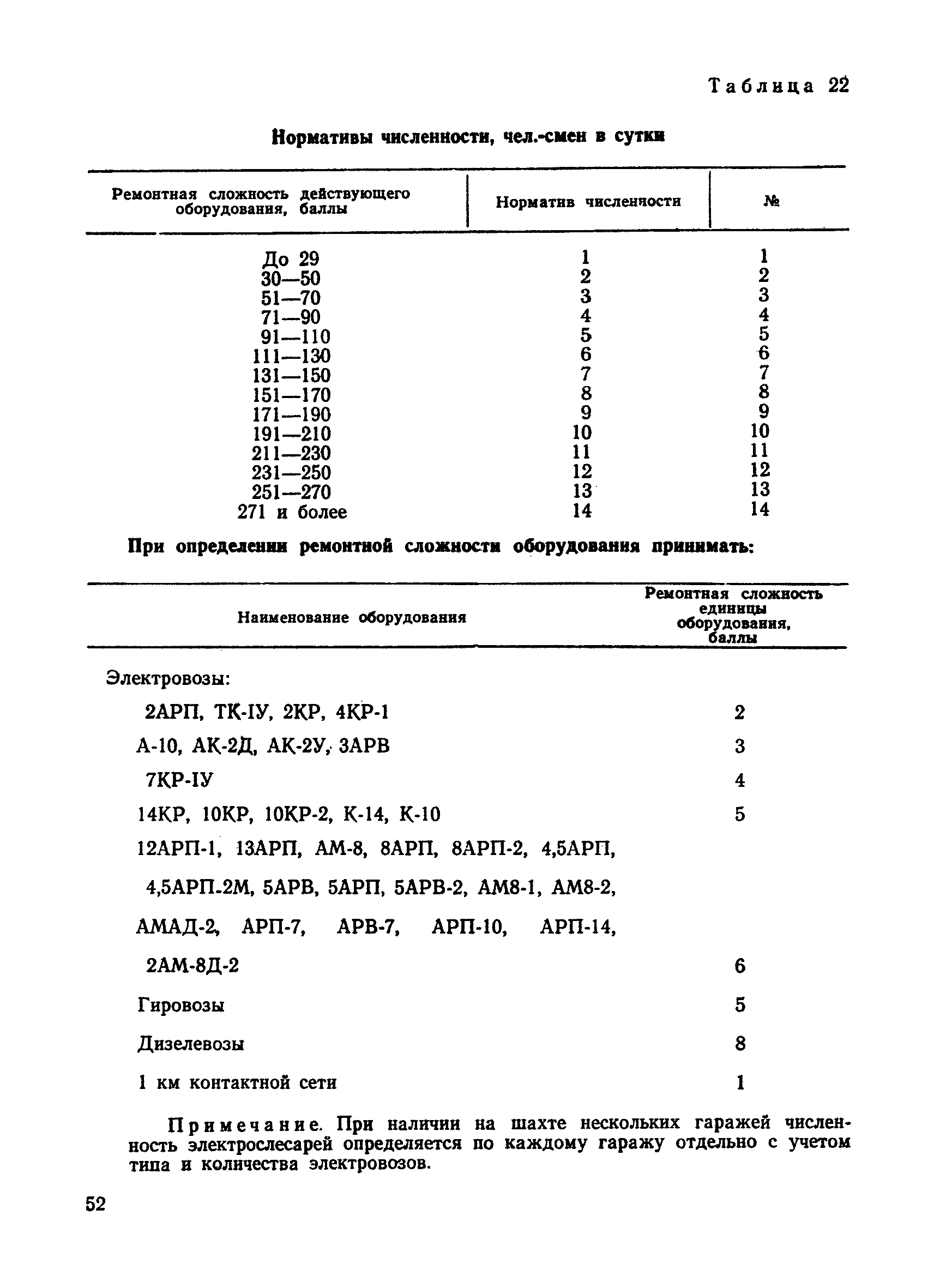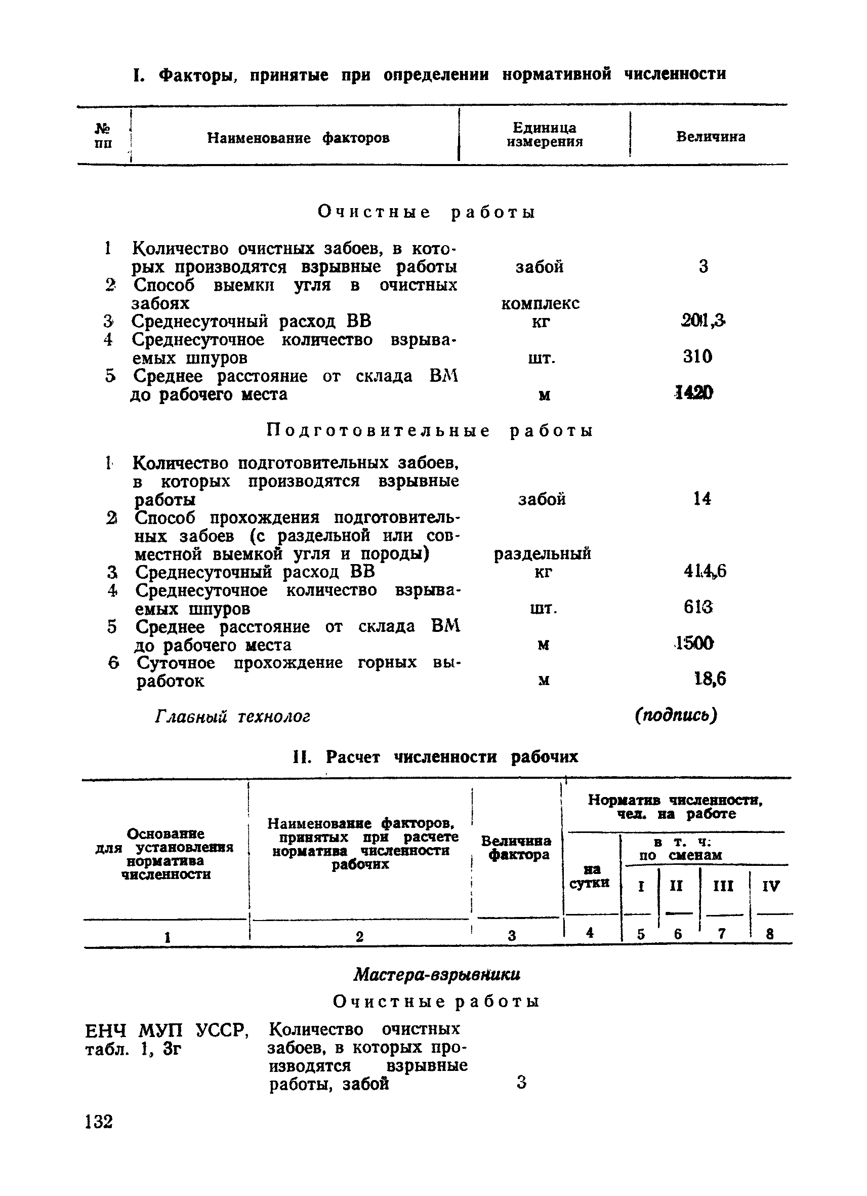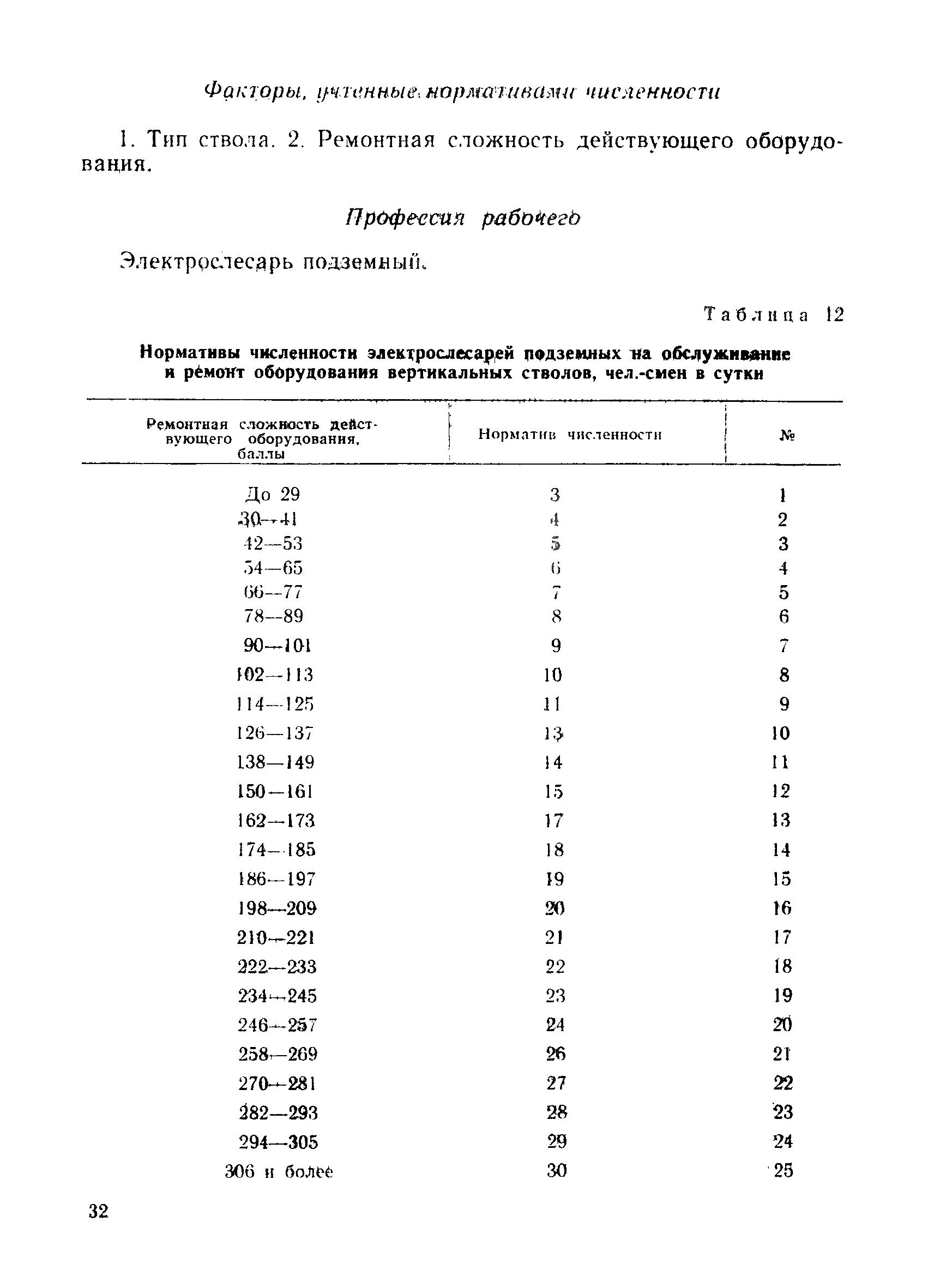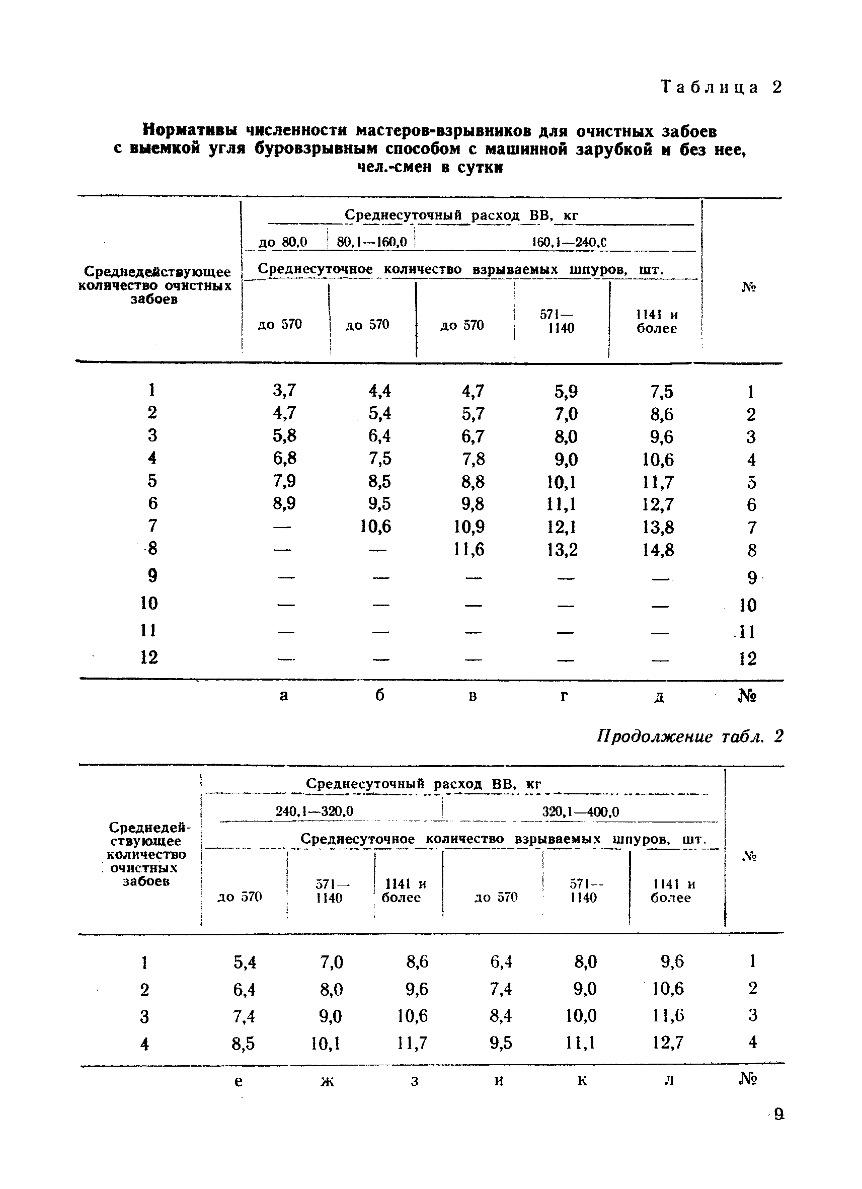 Единые нормативы численности повременно оплачиваемых рабочих для шахт Донецкого и Львовско-Волынского угольных бассейнов| Статус: | не действует | | Название рус.: | Единые нормативы численности повременно оплачиваемых рабочих для шахт Донецкого и Львовско-Волынского угольных бассейнов | | Дата добавления в базу: | 01.01.2018 | | Дата актуализации: | 01.01.2021 | | Область применения: | Единые нормативы численности сборника обязательны для применения на всех шахтах Донецкого (включая производственные объединения "Ростовуголь" и "Гуковуголь") и Львовско-Волынского угольных бассейнов и предназначены для планирования численности повременно оплачиваемых рабочих и установления доплат рабочим за совмещение профессий, расширение зон обслуживания и увеличение объема выполняемых работ. | | Оглавление: | Общая часть Нормативная часть I. Производство и обслуживание взрывных работ 1 Взрывные работы 2 Работы в складах взрывчатых материалов (в шахте и на поверхности) II. Электромеханическая служба в шахте и на поверхности 3 Техническое обслуживание и ремонт оборудования добычного участка 4 Техническое обслуживание и ремонт оборудования очистных забоев в ремонтно-подготовительную смену 5 Техническое обслуживание и ремонт оборудования подготовительного участка 6 Ежесуточное техническое обслуживание и ремонт оборудования подготовительных забоев, проходимых комбайнами 7 Техническое обслуживание и ремонт подъемов и стволов Общешахтное подземное оборудование 8 Техническое обслуживание и ремонт насосных установок, водопроводов и воздуховодов 9 Техническое обслуживание и ремонт забойного оборудования 10 Техническое обслуживание я ремонт общешахтного электротехнического оборудования и кабельной сети 11 Техническое обслуживание и ремонт средств автоматизации 12 Техническое обслуживание и ремонт аппаратуры по вентиляции и технике безопасности 13 Техническое обслуживание и ремонт оборудования участка профилактических работ по технике безопасности Транспорт в шахте и на поверхности 14 Техническое обслуживание и ремонт стационарных установок 15 Техническое обслуживание и ремонт конвейерных линий в шахте 16 Техническое обслуживание и ремонт электровозов и контактной сети 17 Зарядка батарей аккумуляторных электровозов 18 Техническое обслуживание и ремонт шахтных вагонеток Общешахтное оборудование на поверхности 19 Техническое обслуживание и ремонт вентиляторных установок 20 Техническое обслуживание и ремонт стационарных компрессорных установок 21 Техническое обслуживание и ремонт оборудования шахтных котельных 22 Техническое обслуживание о ремонт общешахтного электротехнического оборудования, кабельной и воздушной сети электропередач 23 Техническое обслуживание и ремонт средств автоматизации 24 Техническое обслуживание и ремонт оборудования технологического комплекса 25 Техническое обслуживание и ремонт оборудования административно-бытовых комбинатов 26 Техническое обслуживание и ремонт оборудования канатно-подвесных дорог с кольцевым движением вагонеток 27 Работы в шахтных электромеханических мастерских III. Управление машинами и механизмами 28 Управление конвейерами (питателями) 29 Управление подъемными машинами 30 Управление опрокидывателями и обслуживание разгрузочных пунктов (для вагонеток с разгрузкой через дно) 31 Управлени