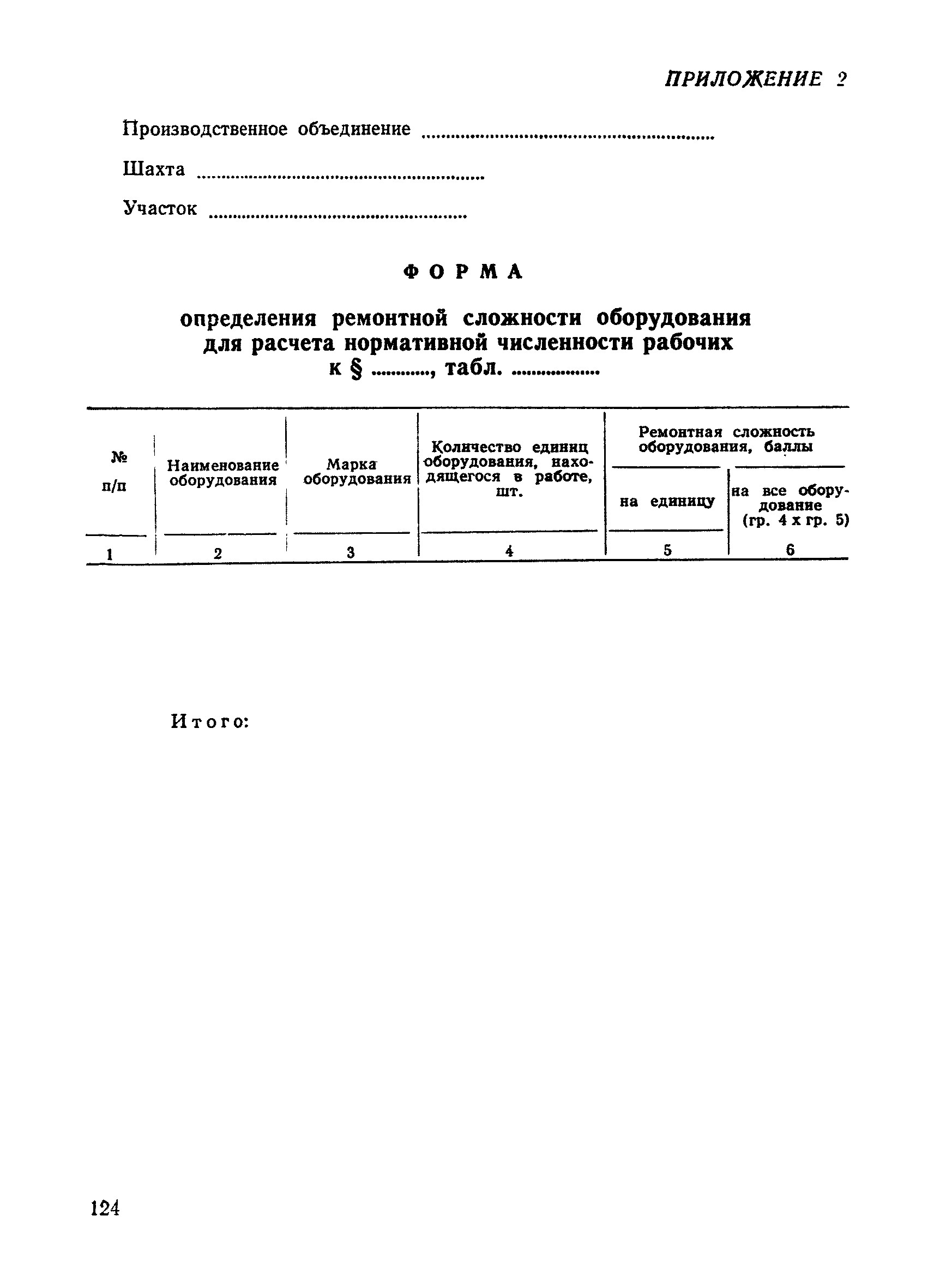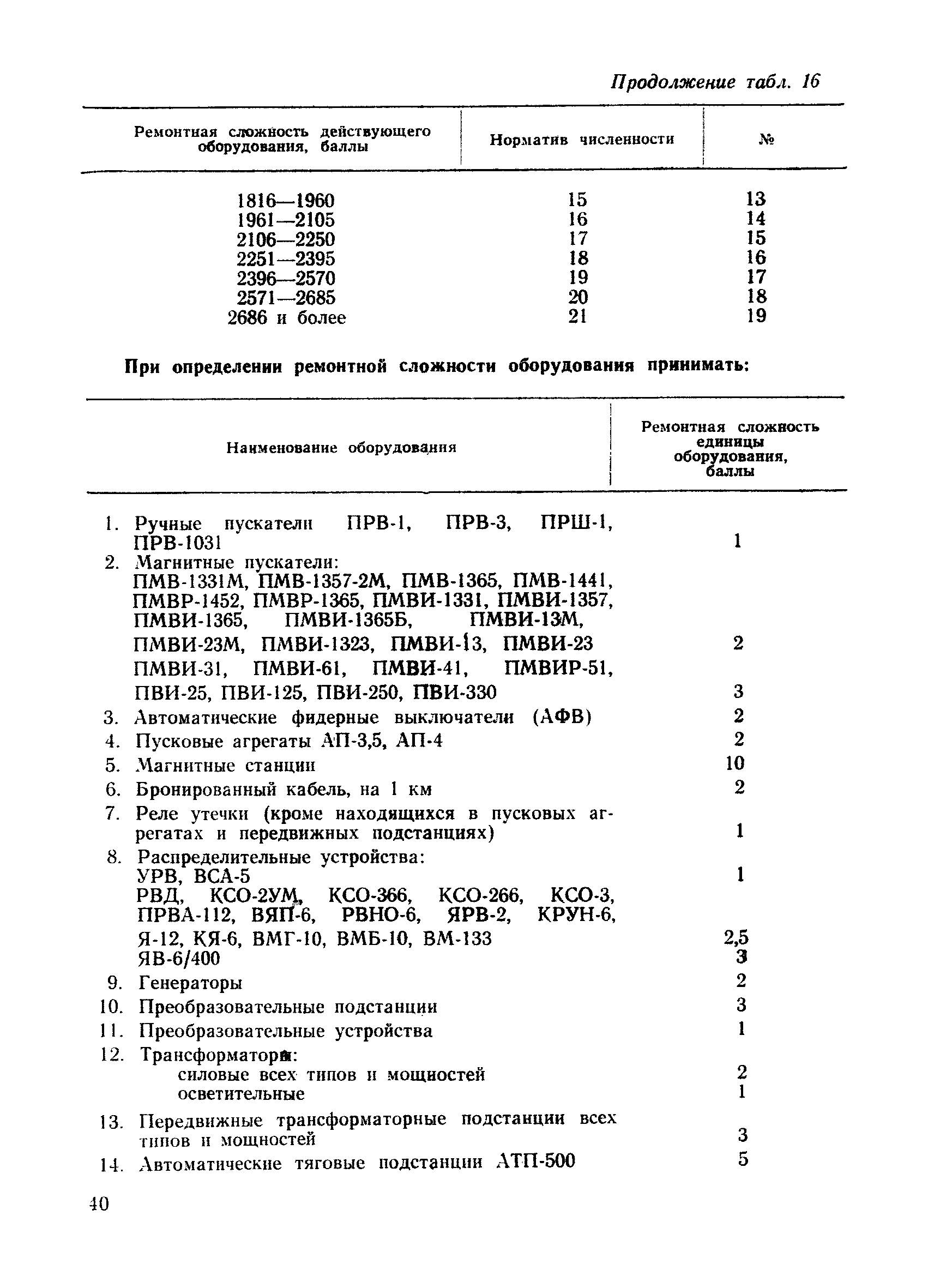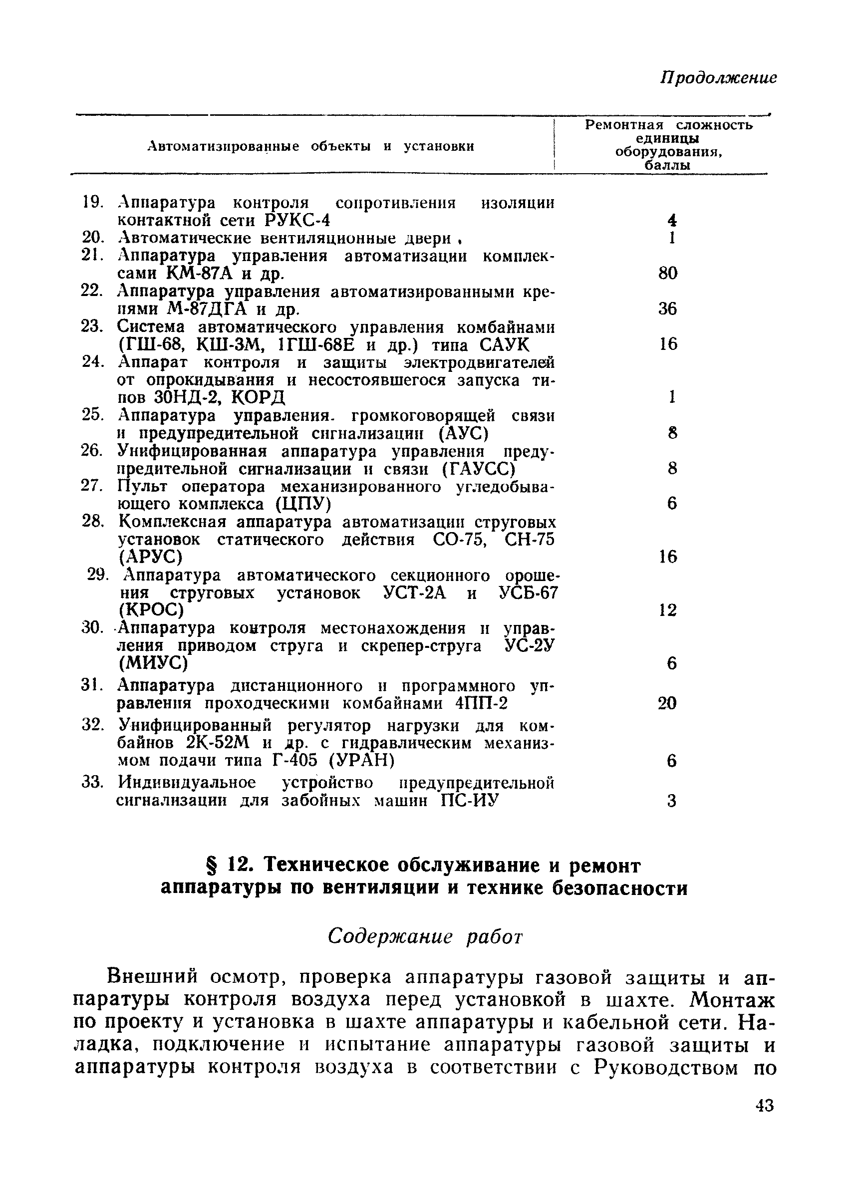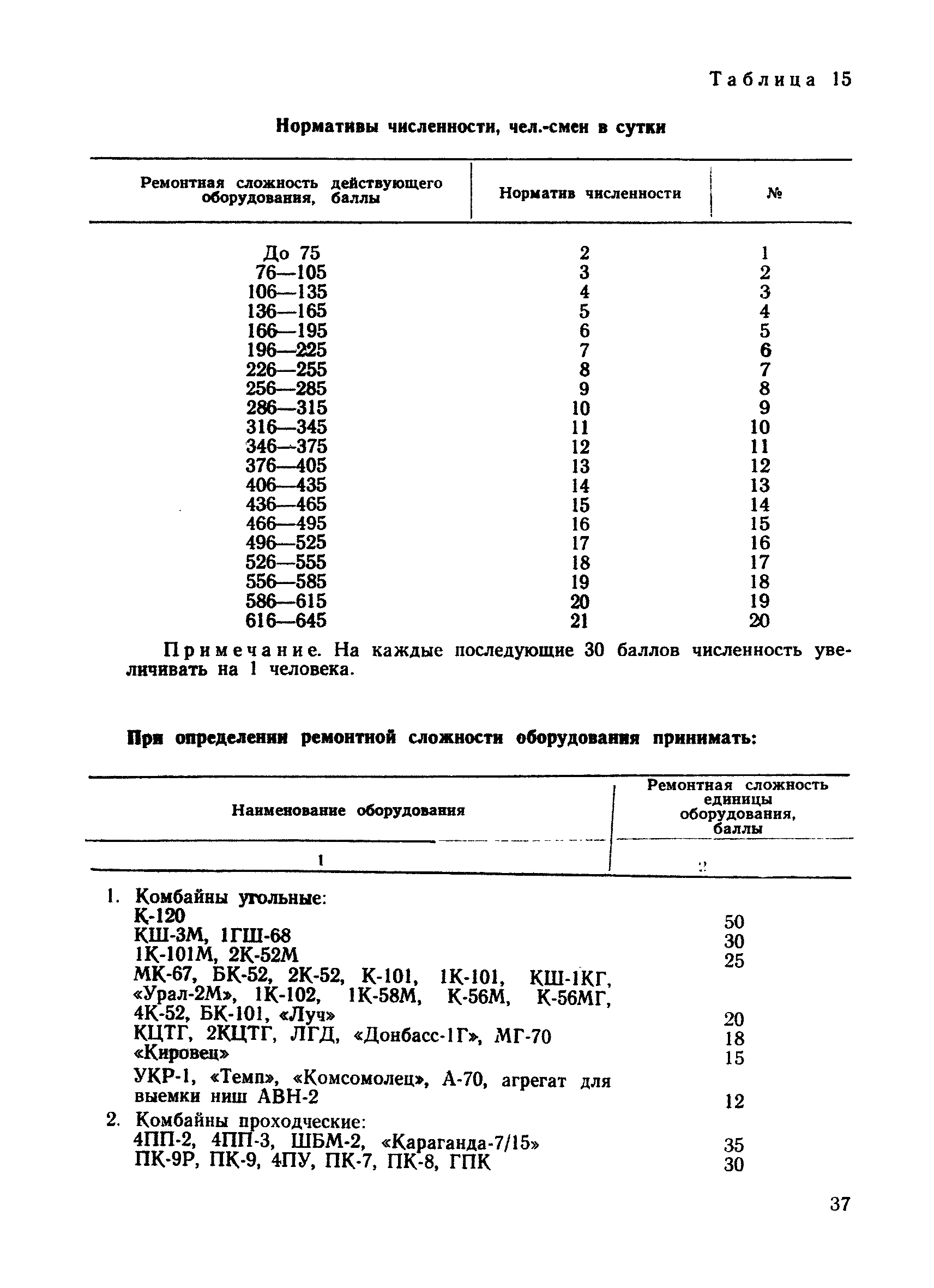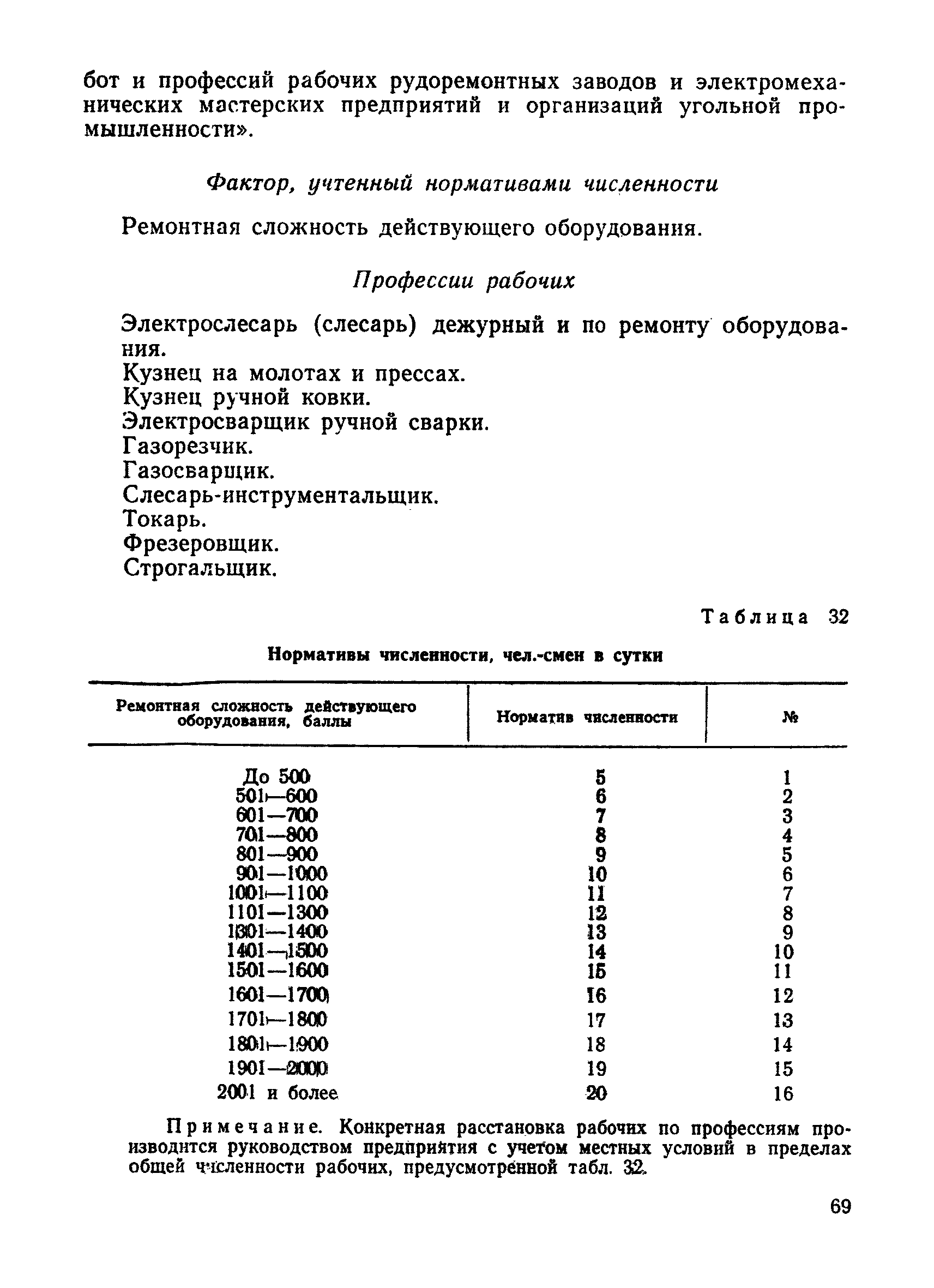 Единые нормативы численности повременно оплачиваемых рабочих для шахт Донецкого и Львовско-Волынского угольных бассейнов| Статус: | не действует | | Название рус.: | Единые нормативы численности повременно оплачиваемых рабочих для шахт Донецкого и Львовско-Волынского угольных бассейнов | | Дата добавления в базу: | 01.01.2018 | | Дата актуализации: | 01.01.2021 | | Область применения: | Единые нормативы численности сборника обязательны для применения на всех шахтах Донецкого (включая производственные объединения "Ростовуголь" и "Гуковуголь") и Львовско-Волынского угольных бассейнов и предназначены для планирования численности повременно оплачиваемых рабочих и установления доплат рабочим за совмещение профессий, расширение зон обслуживания и увеличение объема выполняемых работ. | | Оглавление: | Общая часть Нормативная часть I. Производство и обслуживание взрывных работ 1 Взрывные работы 2 Работы в складах взрывчатых материалов (в шахте и на поверхности) II. Электромеханическая служба в шахте и на поверхности 3 Техническое обслуживание и ремонт оборудования добычного участка 4 Техническое обслуживание и ремонт оборудования очистных забоев в ремонтно-подготовительную смену 5 Техническое обслуживание и ремонт оборудования подготовительного участка 6 Ежесуточное техническое обслуживание и ремонт оборудования подготовительных забоев, проходимых комбайнами 7 Техническое обслуживание и ремонт подъемов и стволов Общешахтное подземное оборудование 8 Техническое обслуживание и ремонт насосных установок, водопроводов и воздуховодов 9 Техническое обслуживание и ремонт забойного оборудования 10 Техническое обслуживание я ремонт общешахтного электротехнического оборудования и кабельной сети 11 Техническое обслуживание и ремонт средств автоматизации 12 Техническое обслуживание и ремонт аппаратуры по вентиляции и технике безопасности 13 Техническое обслуживание и ремонт оборудования участка профилактических работ по технике безопасности Транспорт в шахте и на поверхности 14 Техническое обслуживание и ремонт стационарных установок 15 Техническое обслуживание и ремонт конвейерных линий в шахте 16 Техническое обслуживание и ремонт электровозов и контактной сети 17 Зарядка батарей аккумуляторных электровозов 18 Техническое обслуживание и ремонт шахтных вагонеток Общешахтное оборудование на поверхности 19 Техническое обслуживание и ремонт вентиляторных установок 20 Техническое обслуживание и ремонт стационарных компрессорных установок 21 Техническое обслуживание и ремонт оборудования шахтных котельных 22 Техническое обслуживание о ремонт общешахтного электротехнического оборудования, кабельной и воздушной сети электропередач 23 Техническое обслуживание и ремонт средств автоматизации 24 Техническое обслуживание и ремонт оборудования технологического комплекса 25 Техническое обслуживание и ремонт оборудования административно-бытовых комбинатов 26 Техническое обслуживание и ремонт оборудования канатно-подвесных дорог с кольцевым движением вагонеток 27 Работы в шахтных электромеханических мастерских III. Управление машинами и механизмами 28 Управление конвейерами (питателями) 29 Управление подъемными машинами 30 Управление опрокидывателями и обслуживание разгрузочных пунктов (для вагонеток с разгрузкой через дно) 31 Управлени