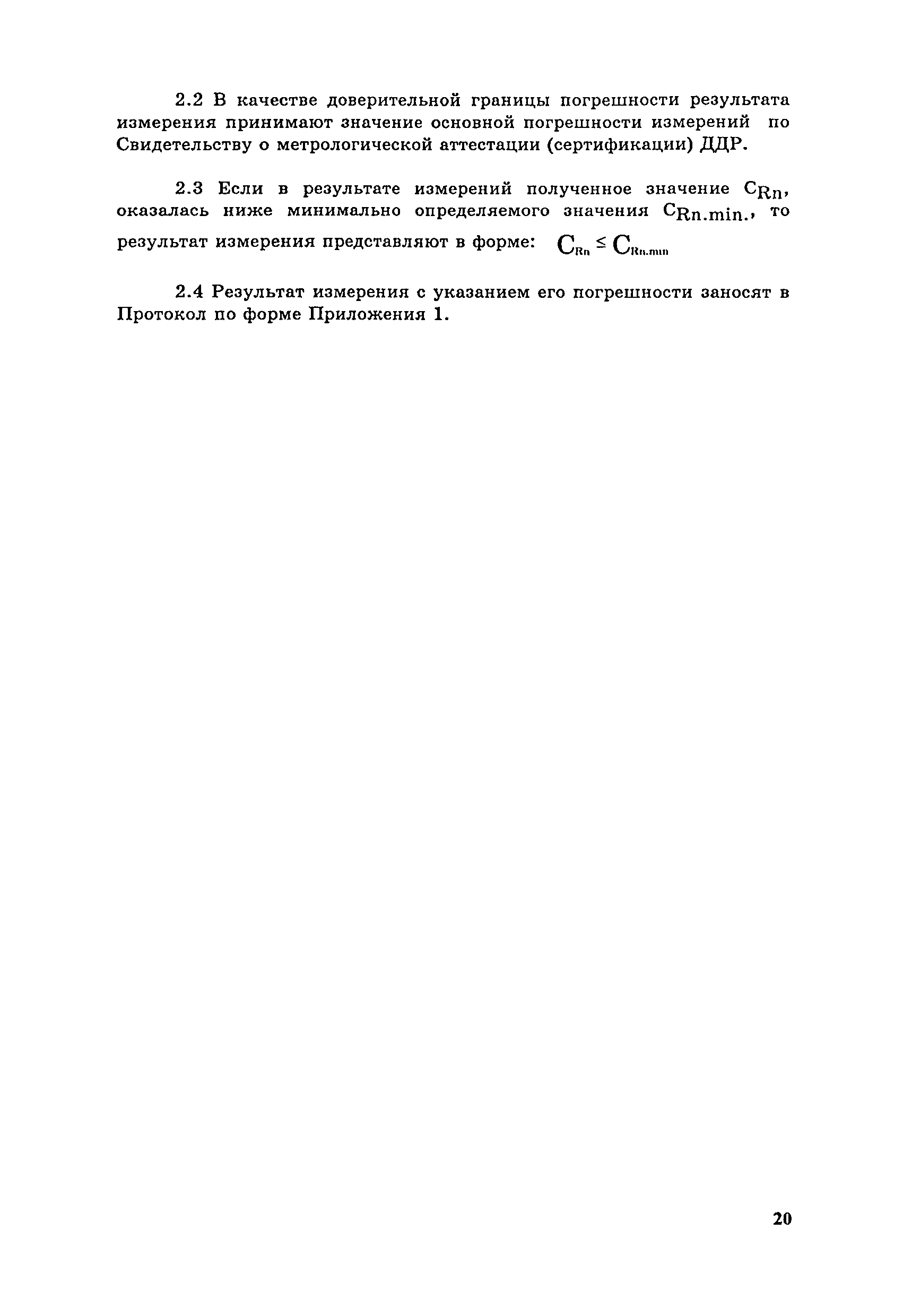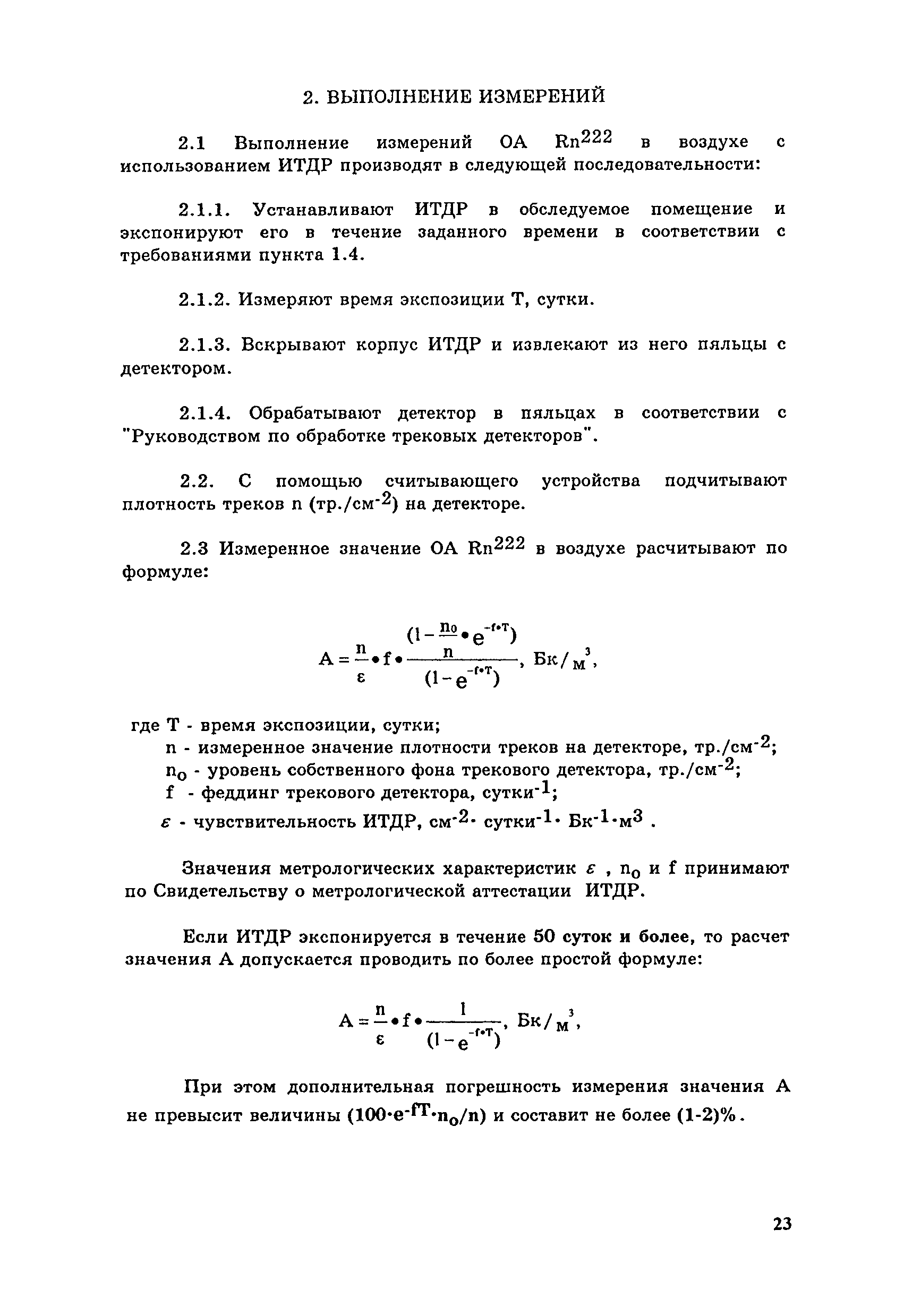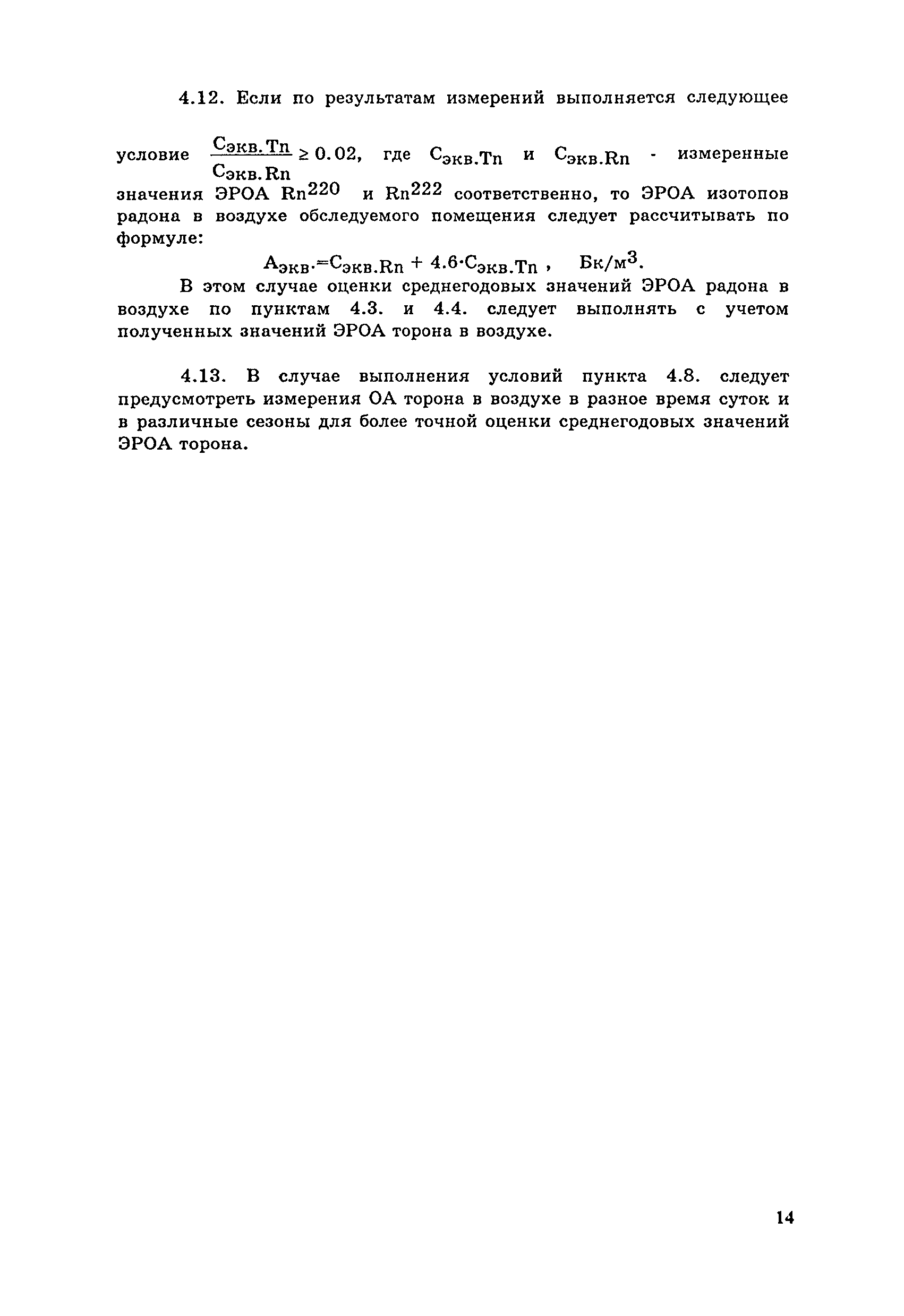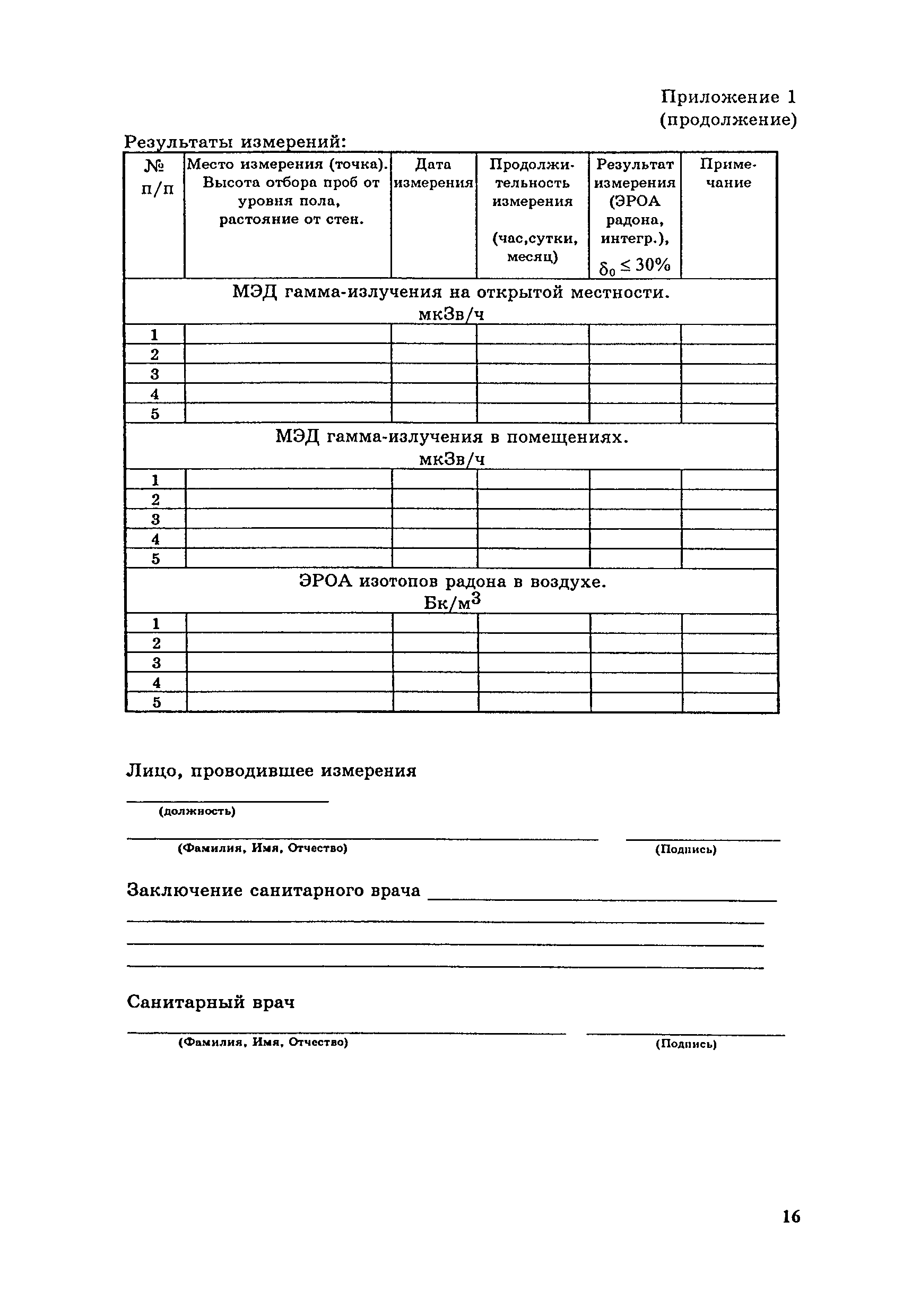 | Оглавление: | Область применения 1. Общие положения 2. Основные контролируемые параметры и нормативы 3. Контроль мощности эквивалентной дозы внешнего гамма-излучения в помещениях зданий 4. Контроль эквивалентной равновесной объемной активности радона в воздухе помещений Приложение 1. Протокол радиационного обследования объекта Приложение 2. Перечень приборов, рекомендуемых для применения при контроле мощности дозы в помещениях зданий Приложение 3. Методика определения интегральной ОА радона в воздухе с использованием пассивных диффузионных детекторов радона Приложение 4. Методика выполнения измерений мгновенных значений ОА радона в помещениях зданий с использованием радиометра РРА-01М Приложение 5. Методика измерений эквивалентной равновесной объемной активности радона с помощью интегральных трековых детекторов и мониторов |