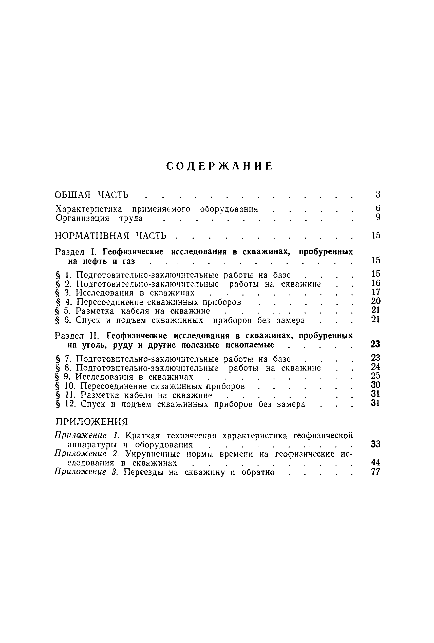| Оглавление: | Общая часть Характеристика применяемого оборудования Организация труда Нормативная часть Раздел I. Геофизические исследования в скважинах, пробуренных на нефть и газ § 1. Подготовительно-заключительные работы на базе § 2. Подготовительно-заключительные работы на скважине § 3. Исследования в скважинах § 4. Пересоединение скважинных приборов § 5. Разметка кабеля на скважине § 6. Спуск в подъем скважинных приборов без замера Раздел II. Геофизические исследования в скважинах, пробуренных на уголь, руду и другие полезные ископаемые § 7. Подготовительно-заключительные работы на базе § 8. Подготовительно-заключительные работы на скважине § 9. Исследования в скважинах § 10. Пересоединение скважинных приборов § 11. Разметка кабеля на скважине § 12. Спуск и подъем скважинных приборов без замера Приложение 1. Краткая техническая характеристика геофизической аппаратуры и оборудования Приложение 2. Укрупненные нормы времени на геофизические исследования в скважинах Приложение 3. Переезды на скважину и обратно |