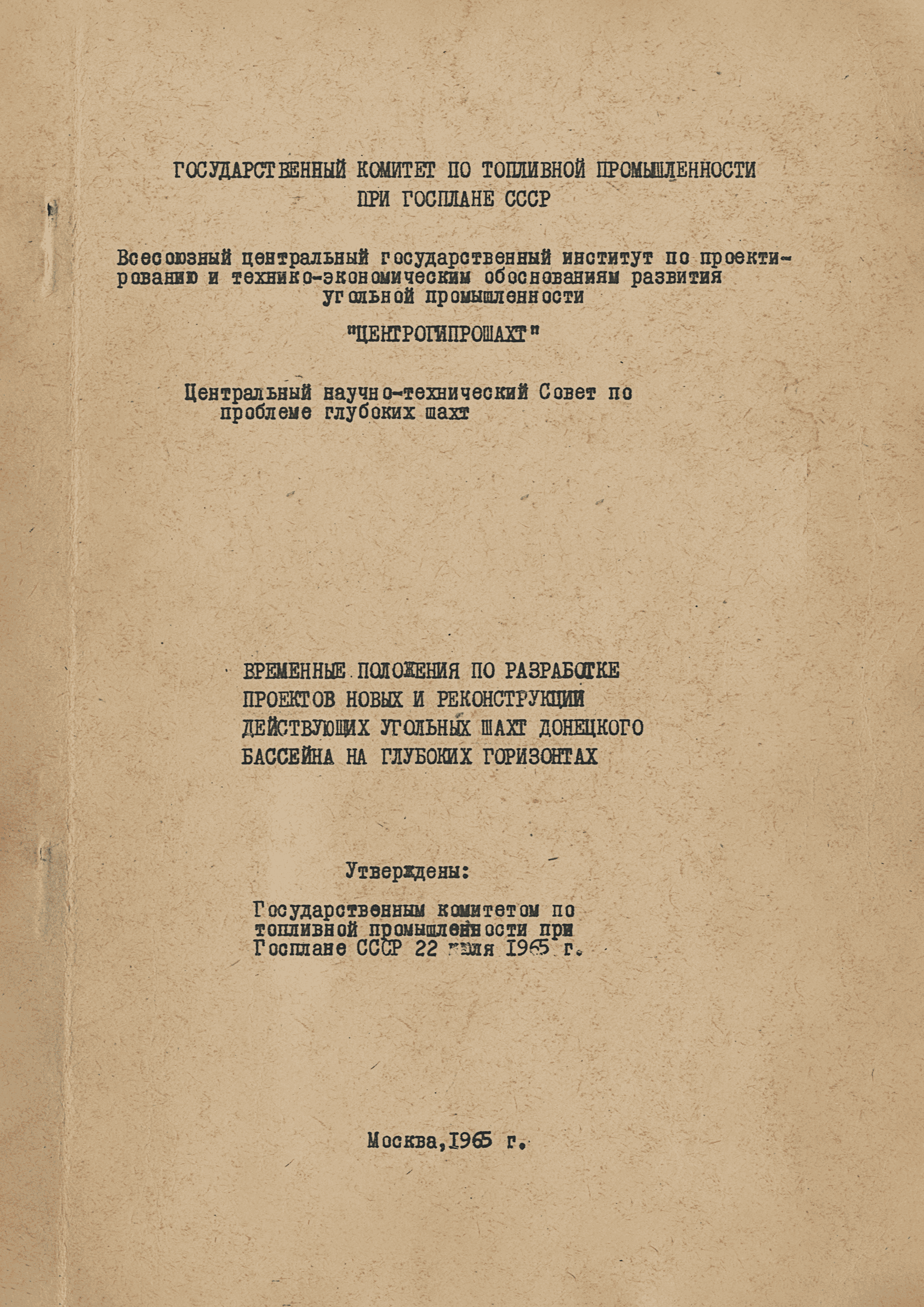 | | Утверждён: | 22.07.1965 Государственный комитет по топливной промышленности при Госплане СССР