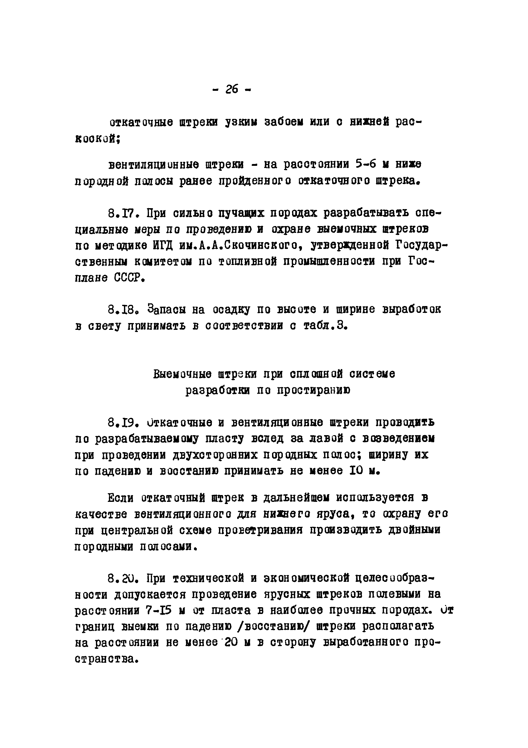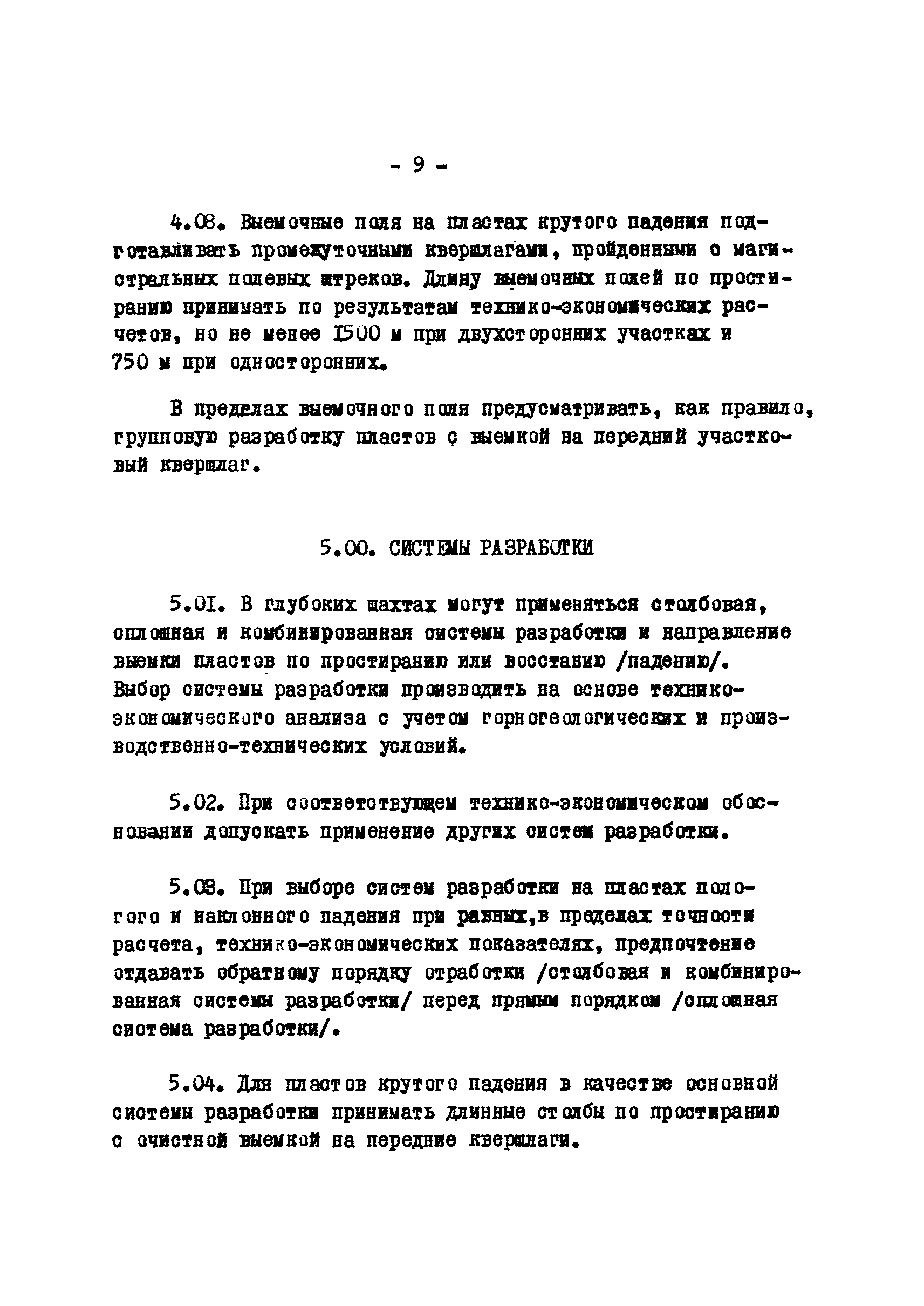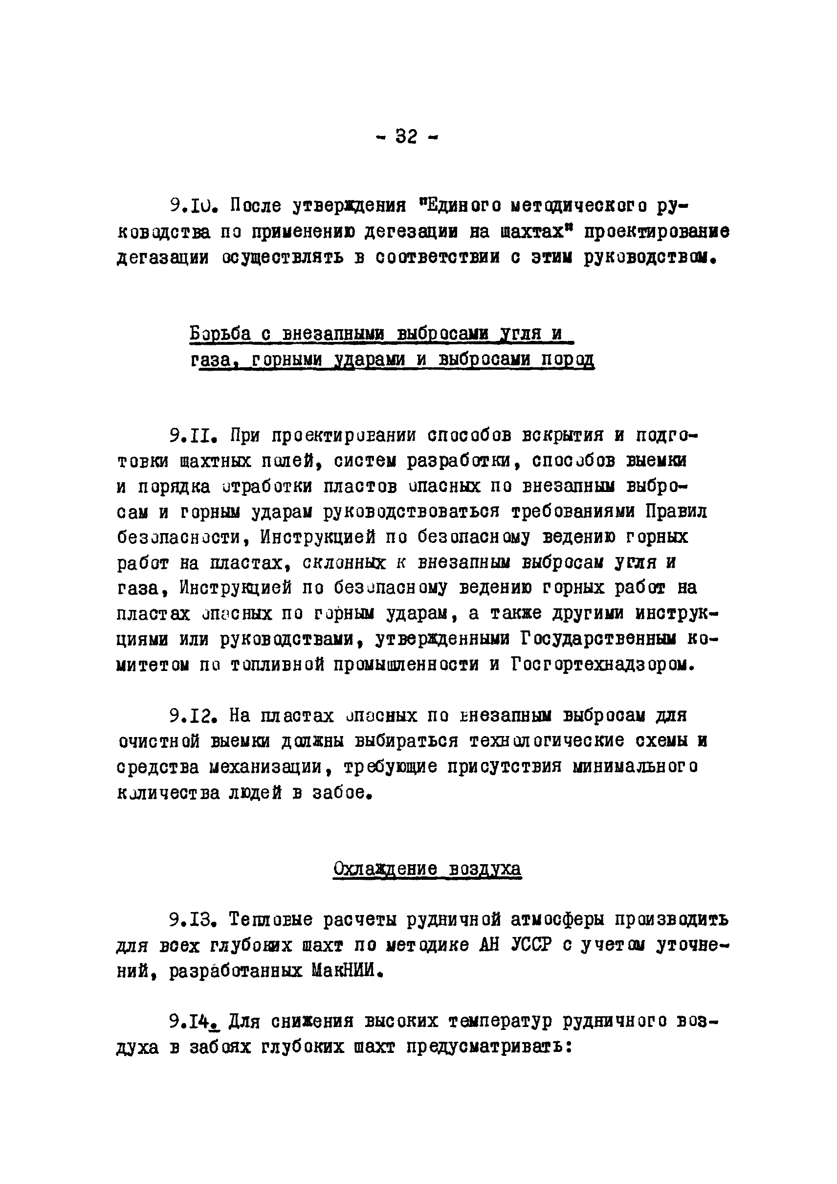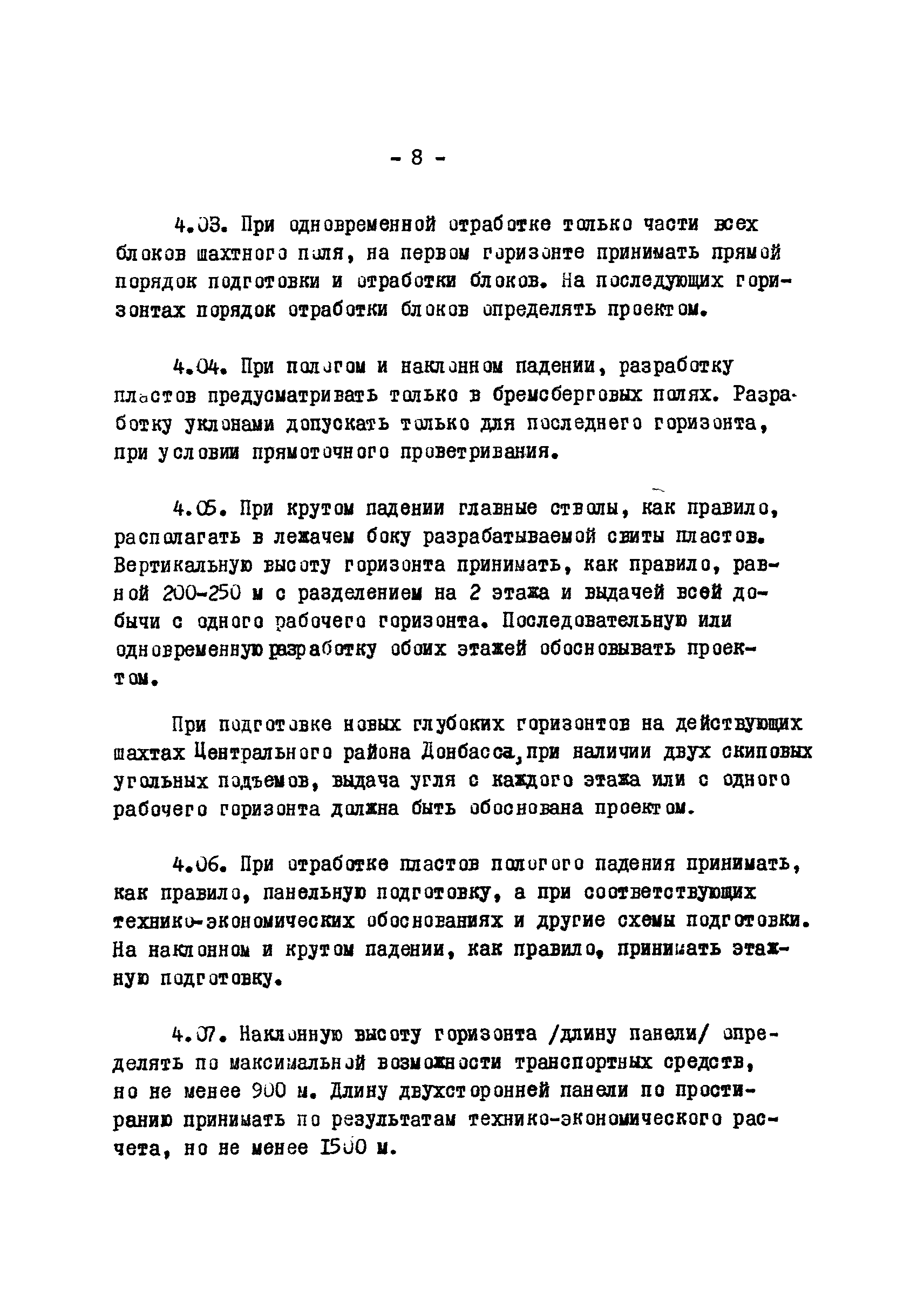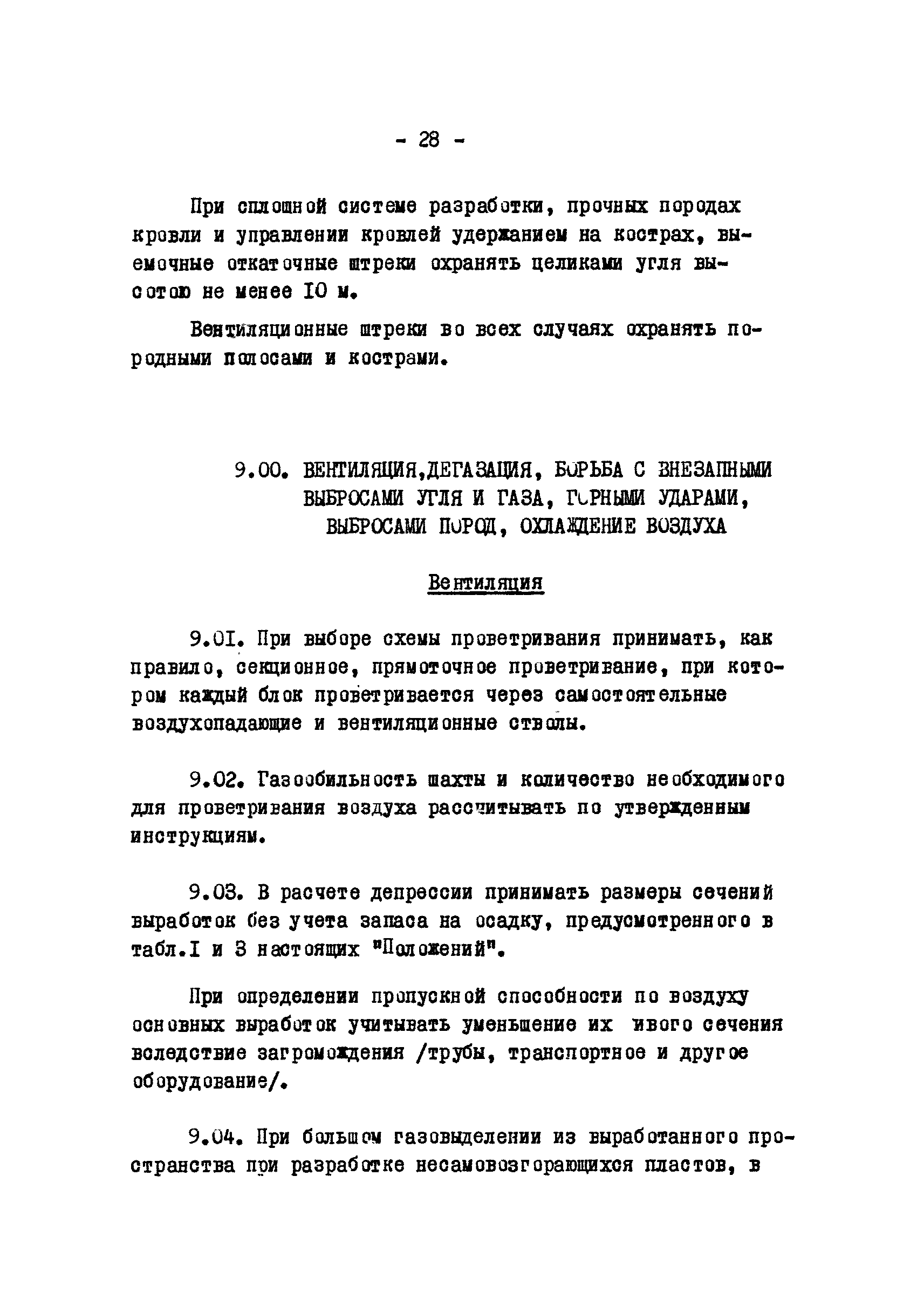 Временные положения по разработке проектов новых и реконструкции действующих угольных шахт Донецкого бассейна на глубоких горизонтах| Статус: | отменен | | Название рус.: | Временные положения по разработке проектов новых и реконструкции действующих угольных шахт Донецкого бассейна на глубоких горизонтах | | Дата добавления в базу: | 01.01.2018 | | Дата актуализации: | 01.01.2021 | | Область применения: | В документе отражены вопросы, связанные со спецификой глубоких шахт | | Оглавление: | 1 Общие положения 2 Запасы шахты 3 Мощность, срок службы и режим работы шахт 4 Вскрытие и подготовка шахтного поля 5 Системы разработки 6 Порядок отработки пластов 7 Крепление капитальных и подготовительных горных выработок 8 Охрана капитальных и подготовительных выработок Охрана стволов и околоствольных выработок Охрана подготовительных горных выработок Пологое и наклонное падение Участковые подготовительные выработки Выемочные штреки при сплошной системе разработки по простиранию Выемочные выработки при разработке по восстанию или падению Крутое падение 9 Вентиляция, дегазация, борьба с внезапными выбросами угля и газа, горными ударами, выбросами пород, охлаждение воздуха Вентиляция Дегазация Борьба с внезапными выбросами угля и газа, горными ударами и выбросами пород Охлаждение воздуха 10 Подземный транспорт, подъем, водоотлив 11 Организация строительства | | Разработан: | Центрогипрошахт