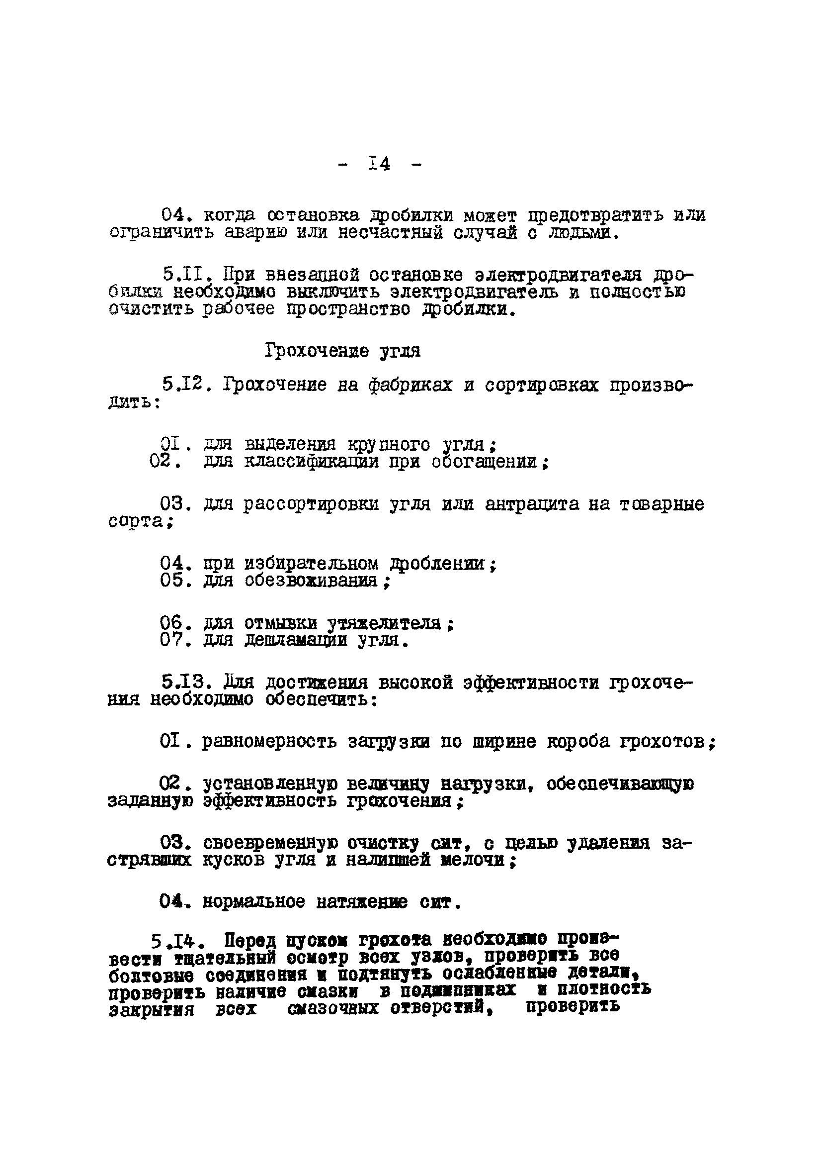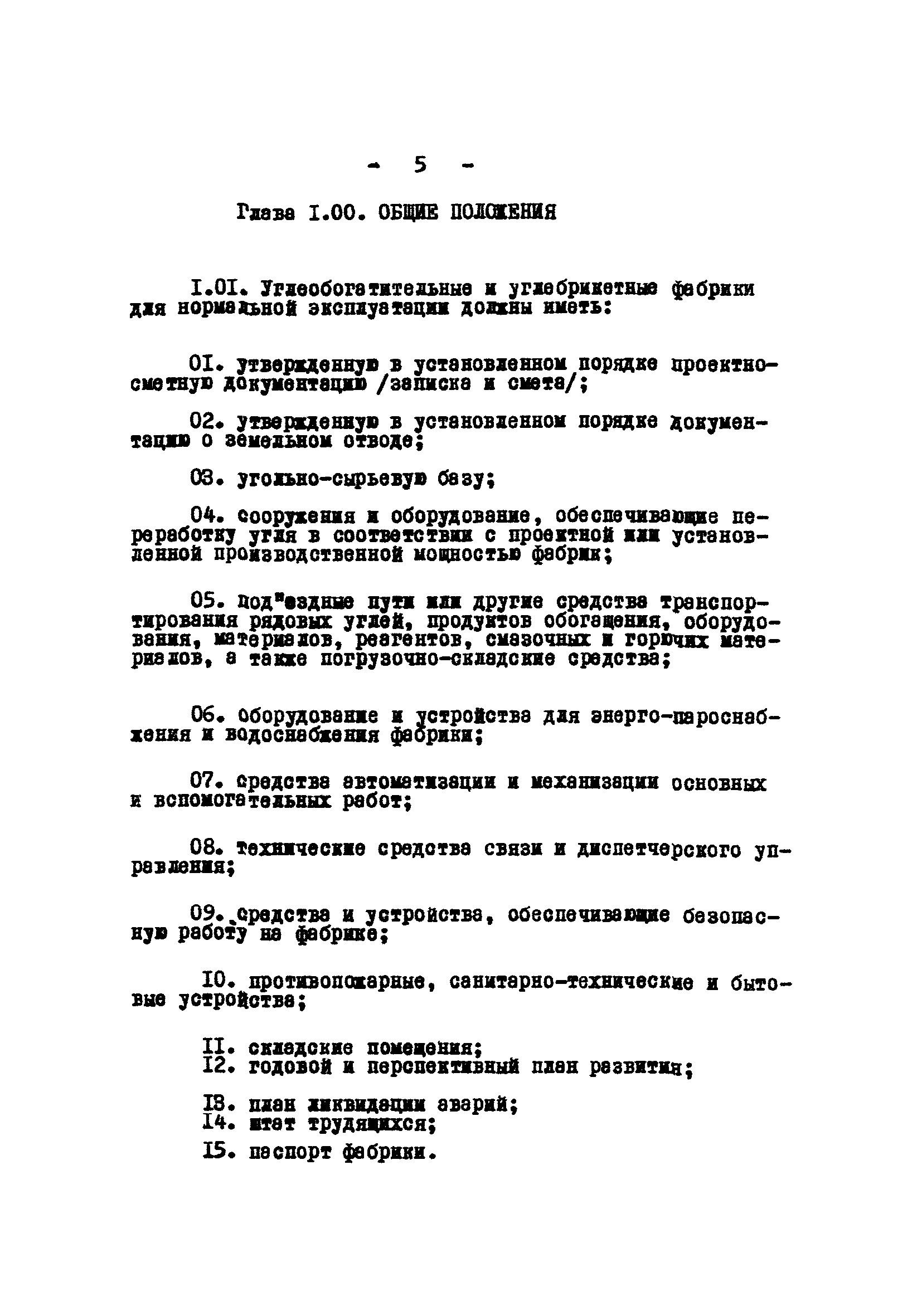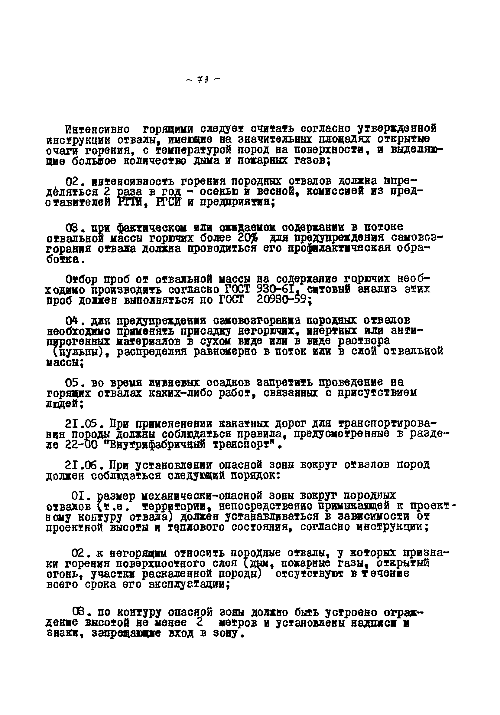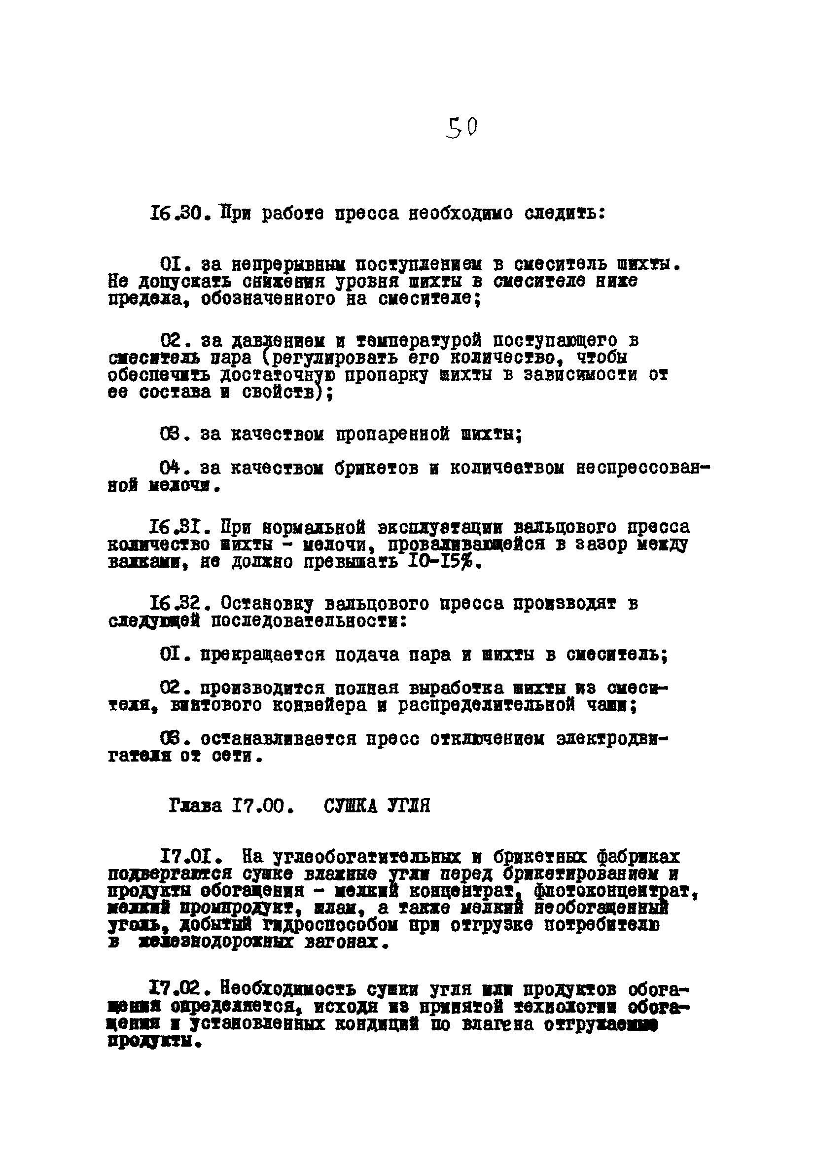 Временные правила технической эксплуатации углеобогатительных, брикетных фабрик и сортировок| Статус: | справочные материалы, мп, тпр | | Название рус.: | Временные правила технической эксплуатации углеобогатительных, брикетных фабрик и сортировок | | Дата добавления в базу: | 01.01.2018 | | Дата актуализации: | 01.01.2021 | | Область применения: | Правила обязательны для выполнения всеми предприятиями и организациями Министерства угольной промышленности СССР. | | Оглавление: | 1 Общие положения 2 Качество углей Общие положения Приемка углей 3 Разгрузка рядовых углей и утяжелителей 4 Дозировка и смешение углей 5 Дробление, грохочение и удаление из угля посторонних предметов Дробление угля Грохочение угля Удаление посторонних предметов 6 Дешламация и обемпыливание угля 7 Гидравлическая отсадка углей 8 Обогащение в тяжелых водно-минеральных суспензиях 9 Обогащение в моечных желобах 10 Пневматическое обогащение 11 Флотация угольной пыли и шламов 12 Обезвоживание 13 Водно-плановое хозяйство 14 Подготовка и сушка угля перед брикетированием 15 Прием и присадка связующих веществ 16 Прессование углей 17 Сушка угля Сушка в газовых барабанных и трубах—сушилках Слоевые топки Пылеугольные топки Шлак золоудаление Паровые трубчатые барабанные сушилки 18 Пуск и остановка оборудования фабрики 19 Погрузка и взвешивание продуктов обогащения, брикетов и сортового угля 20 Хранение угля и продуктов его переработки 21 Отвальное хозяйство Обычные отвалы Гидроотвалы 22 Внутрифабричный транспорт Подвесные канатные дороги Грузоподъемные краны Лифты 23 Водоснабжение и канализация Хозяйственно-питьевое водоснабжение Техническое и противопожарное водоснабжение Канализация 24 Технический контроль 25 Контроль технологического процесса 26 Качественно-количественный баланс 27 Электротехническое хозяйство Общие положения Электроснабжение Распределение электрической энергии Электрооборудование Крановое электрооборудование Автоматика и релейная защита Электроизмерительные приборы Заземление Надзор и контроль 28 Диспетчерская служба 29 Производственная сигнализация 30 Телефонная, громкоговорящая и другие способы связи 31 Компрессорные установки 32 Ремонтная служба 33 Пылеулавливание. Промышленная санитария и гигиена Гидрообеспыливание Уборка помещений Промышленная вентиляция Отопление 34 Санитарно-технические и бытовые службы 35 Первая медицинская помощь 36 Эксплуатация зданий и сооружений 37 Учет продукции 38 Производственный и технологический режим работы фабрик и сортировок 39 Техническое нормирование 40 Организация социалистического соревнования 41 Инструктаж рабочих 42 Управление фабрикой 43 Паспорт фабрики (паспортизация зданий, сооружений, оборудования и средств автоматизации) 44 Производственные инструкции, техника безопасности и противопожарные мероприятия Производственные инструкции Техника безопасности Противопожарные мероприятия 45 Ответственность за нарушение правил технической эксплуатации | | Разработан: | Центрогипрошахт