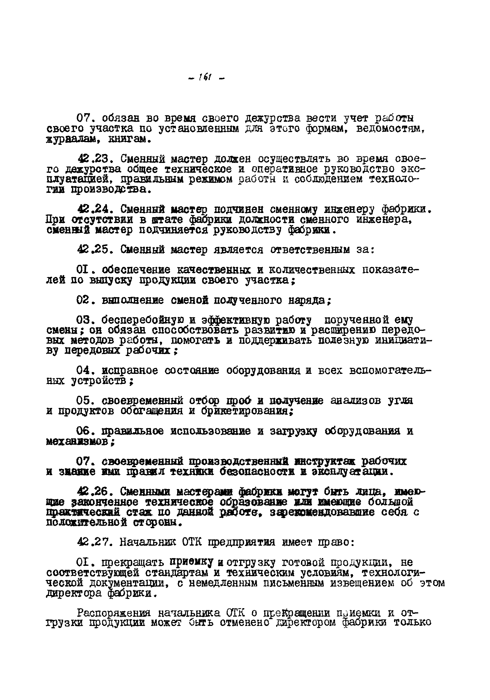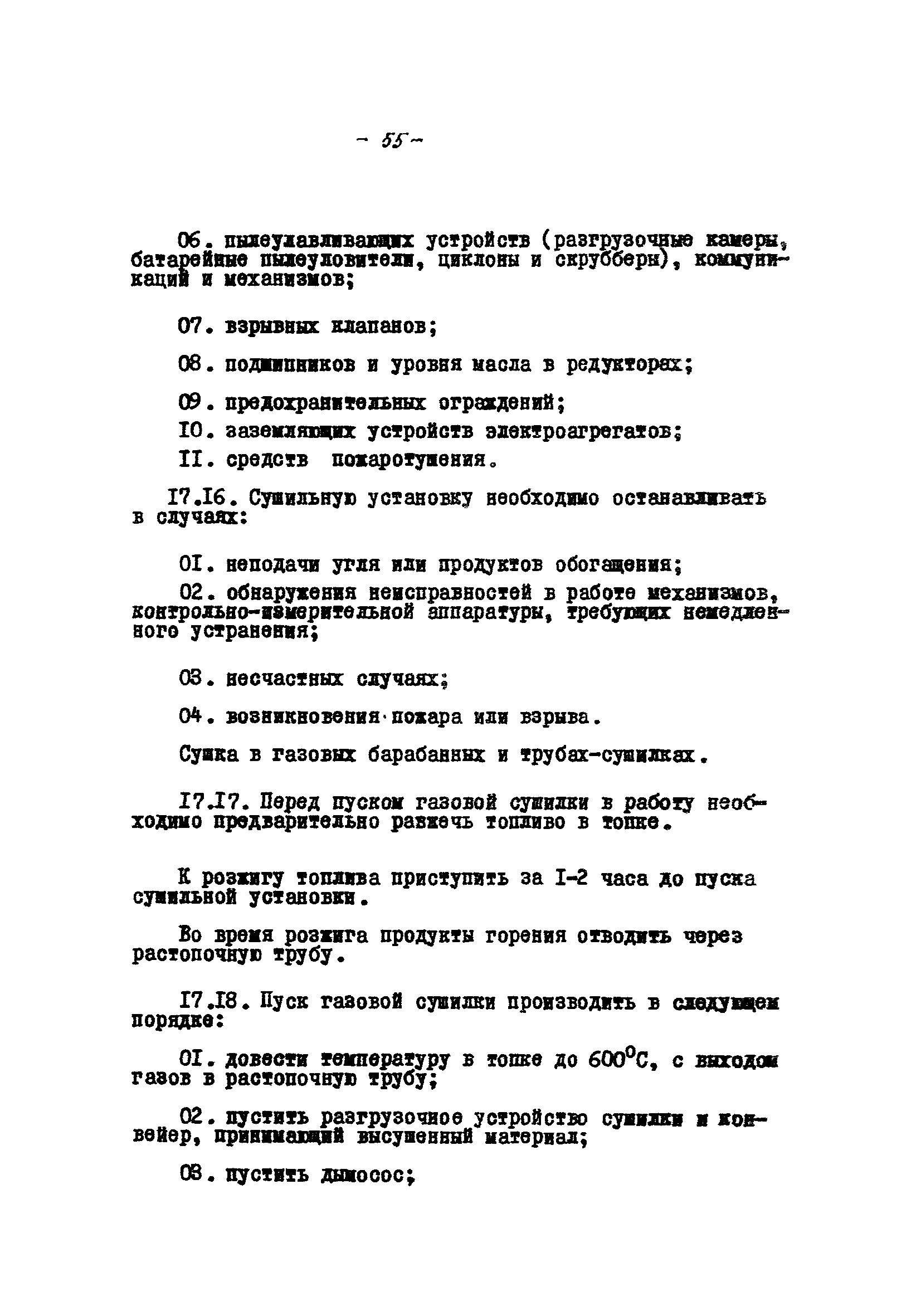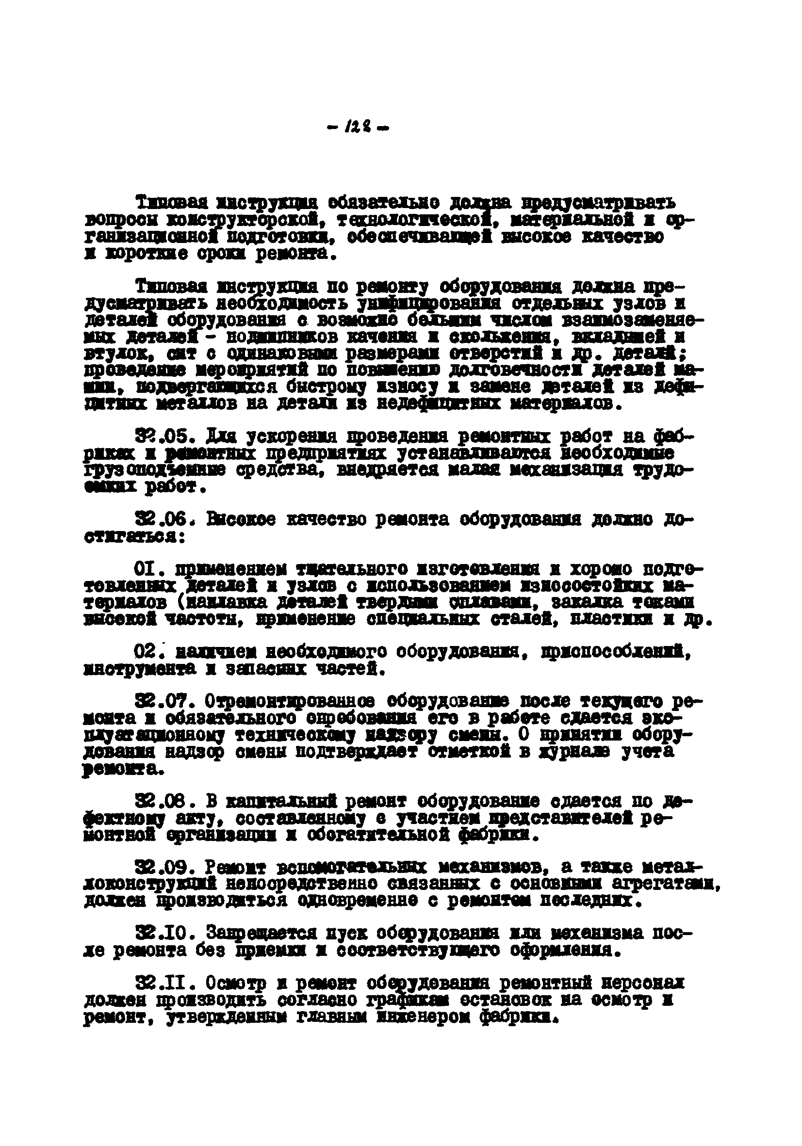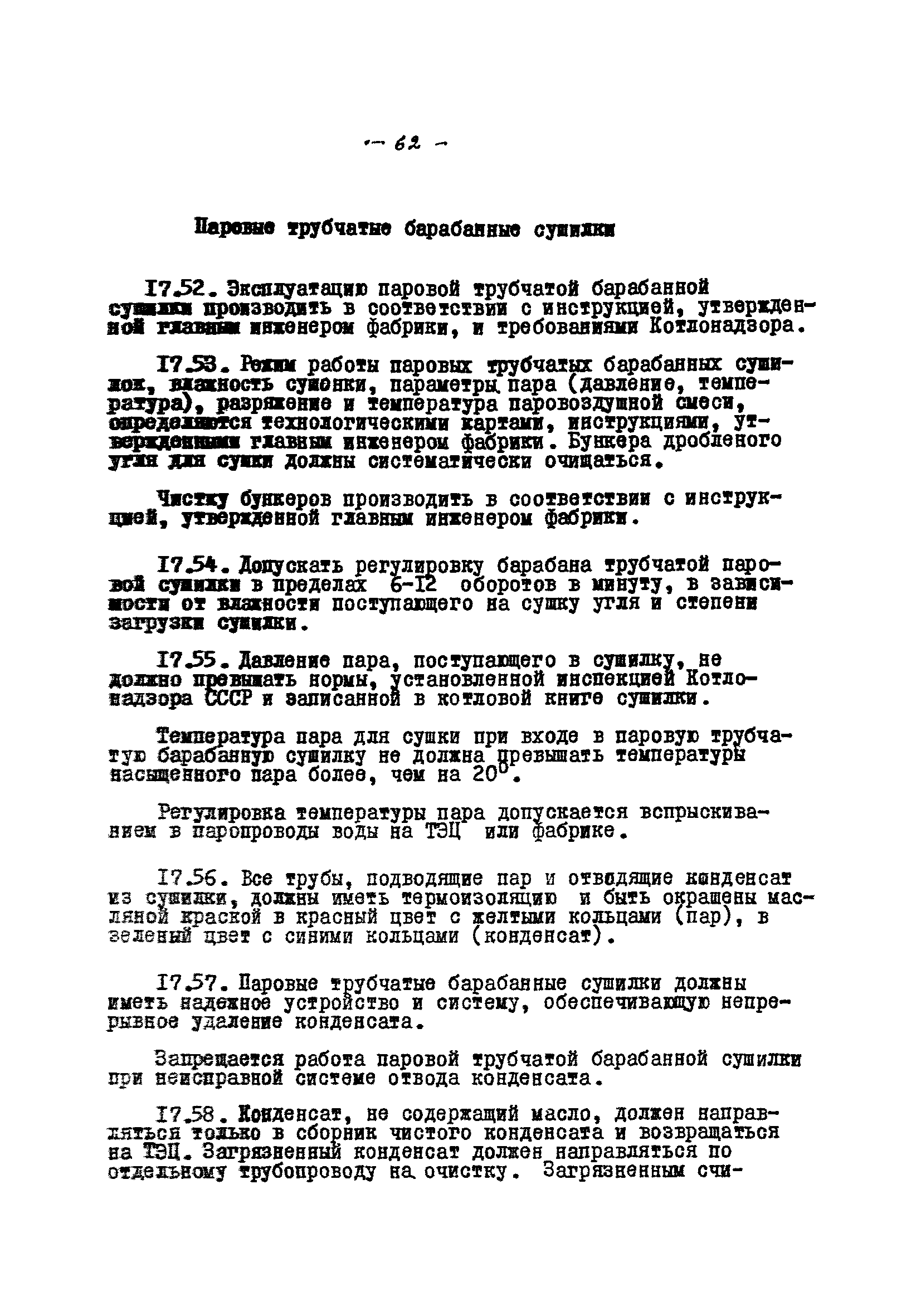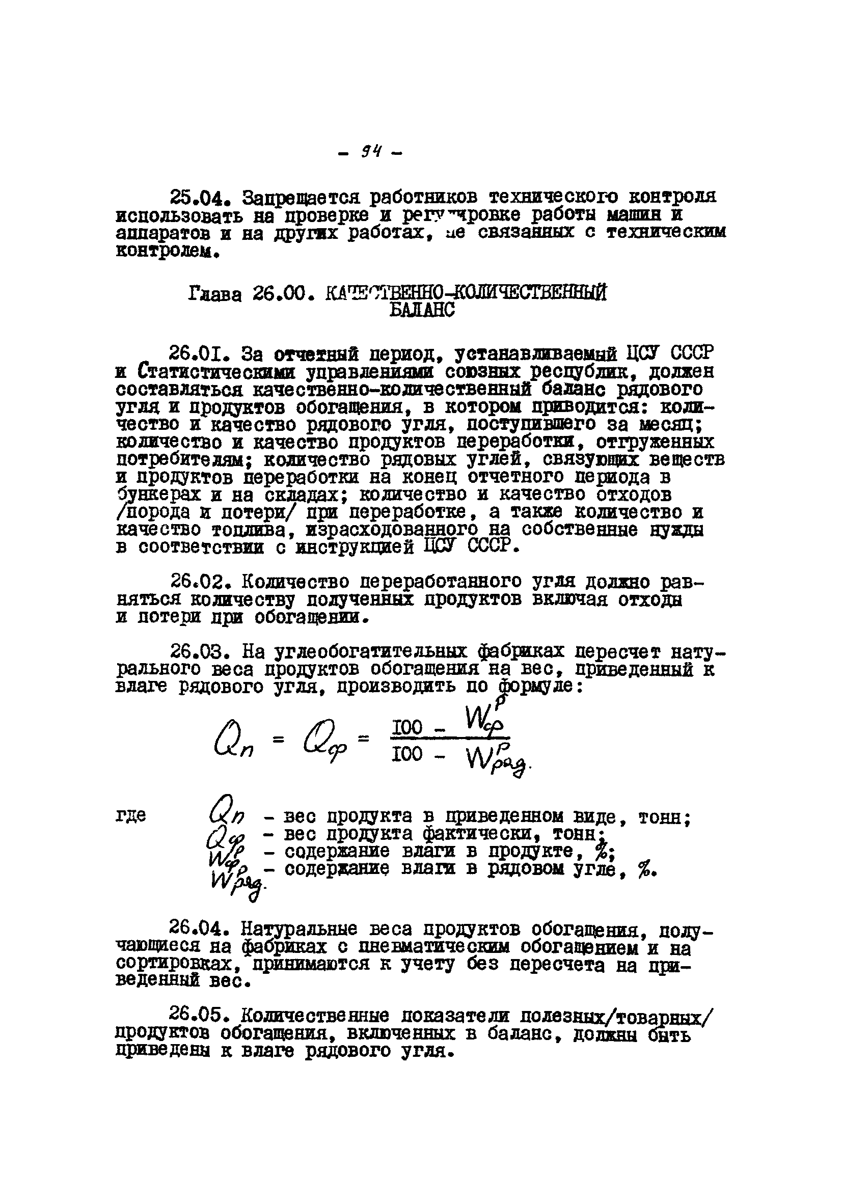 Временные правила технической эксплуатации углеобогатительных, брикетных фабрик и сортировок| Статус: | справочные материалы, мп, тпр | | Название рус.: | Временные правила технической эксплуатации углеобогатительных, брикетных фабрик и сортировок | | Дата добавления в базу: | 01.01.2018 | | Дата актуализации: | 01.01.2021 | | Область применения: | Правила обязательны для выполнения всеми предприятиями и организациями Министерства угольной промышленности СССР. | | Оглавление: | 1 Общие положения 2 Качество углей Общие положения Приемка углей 3 Разгрузка рядовых углей и утяжелителей 4 Дозировка и смешение углей 5 Дробление, грохочение и удаление из угля посторонних предметов Дробление угля Грохочение угля Удаление посторонних предметов 6 Дешламация и обемпыливание угля 7 Гидравлическая отсадка углей 8 Обогащение в тяжелых водно-минеральных суспензиях 9 Обогащение в моечных желобах 10 Пневматическое обогащение 11 Флотация угольной пыли и шламов 12 Обезвоживание 13 Водно-плановое хозяйство 14 Подготовка и сушка угля перед брикетированием 15 Прием и присадка связующих веществ 16 Прессование углей 17 Сушка угля Сушка в газовых барабанных и трубах—сушилках Слоевые топки Пылеугольные топки Шлак золоудаление Паровые трубчатые барабанные сушилки 18 Пуск и остановка оборудования фабрики 19 Погрузка и взвешивание продуктов обогащения, брикетов и сортового угля 20 Хранение угля и продуктов его переработки 21 Отвальное хозяйство Обычные отвалы Гидроотвалы 22 Внутрифабричный транспорт Подвесные канатные дороги Грузоподъемные краны Лифты 23 Водоснабжение и канализация Хозяйственно-питьевое водоснабжение Техническое и противопожарное водоснабжение Канализация 24 Технический контроль 25 Контроль технологического процесса 26 Качественно-количественный баланс 27 Электротехническое хозяйство Общие положения Электроснабжение Распределение электрической энергии Электрооборудование Крановое электрооборудование Автоматика и релейная защита Электроизмерительные приборы Заземление Надзор и контроль 28 Диспетчерская служба 29 Производственная сигнализация 30 Телефонная, громкоговорящая и другие способы связи 31 Компрессорные установки 32 Ремонтная служба 33 Пылеулавливание. Промышленная санитария и гигиена Гидрообеспыливание Уборка помещений Промышленная вентиляция Отопление 34 Санитарно-технические и бытовые службы 35 Первая медицинская помощь 36 Эксплуатация зданий и сооружений 37 Учет продукции 38 Производственный и технологический режим работы фабрик и сортировок 39 Техническое нормирование 40 Организация социалистического соревнования 41 Инструктаж рабочих 42 Управление фабрикой 43 Паспорт фабрики (паспортизация зданий, сооружений, оборудования и средств автоматизации) 44 Производственные инструкции, техника безопасности и противопожарные мероприятия Производственные инструкции Техника безопасности Противопожарные мероприятия 45 Ответственность за нарушение правил технической эксплуатации | | Разработан: | Центрогипрошахт