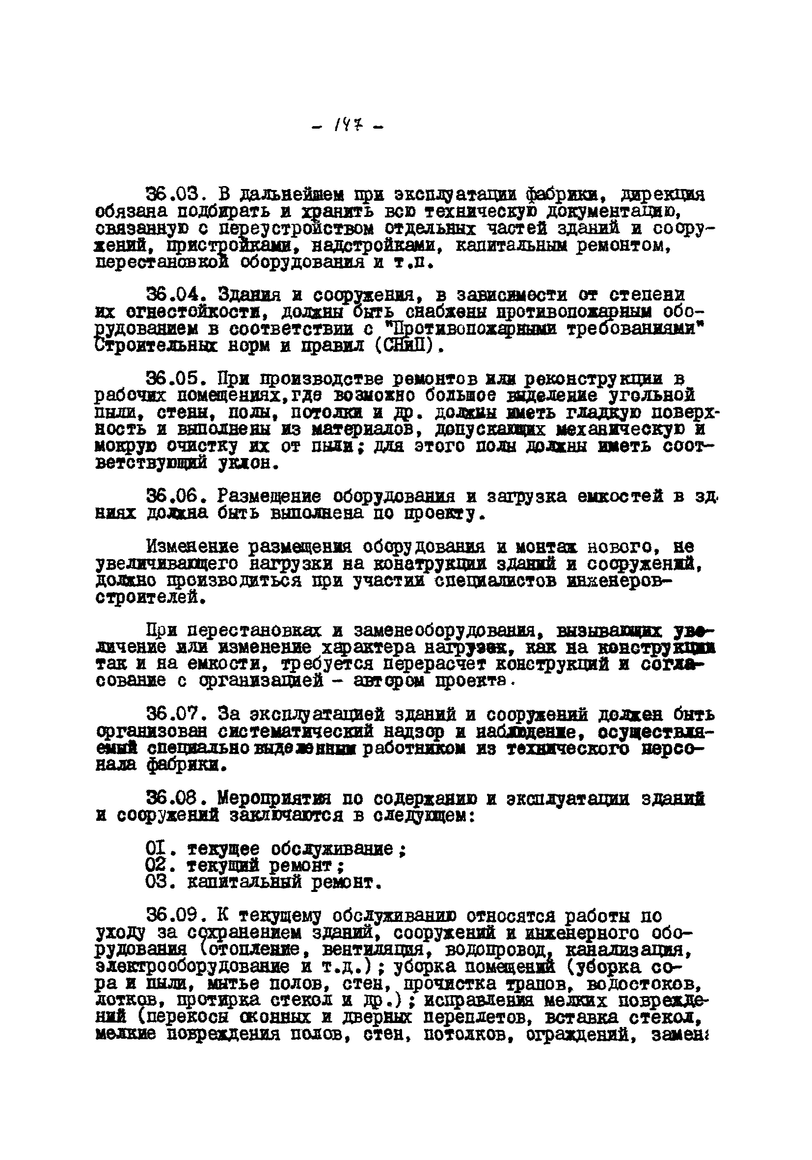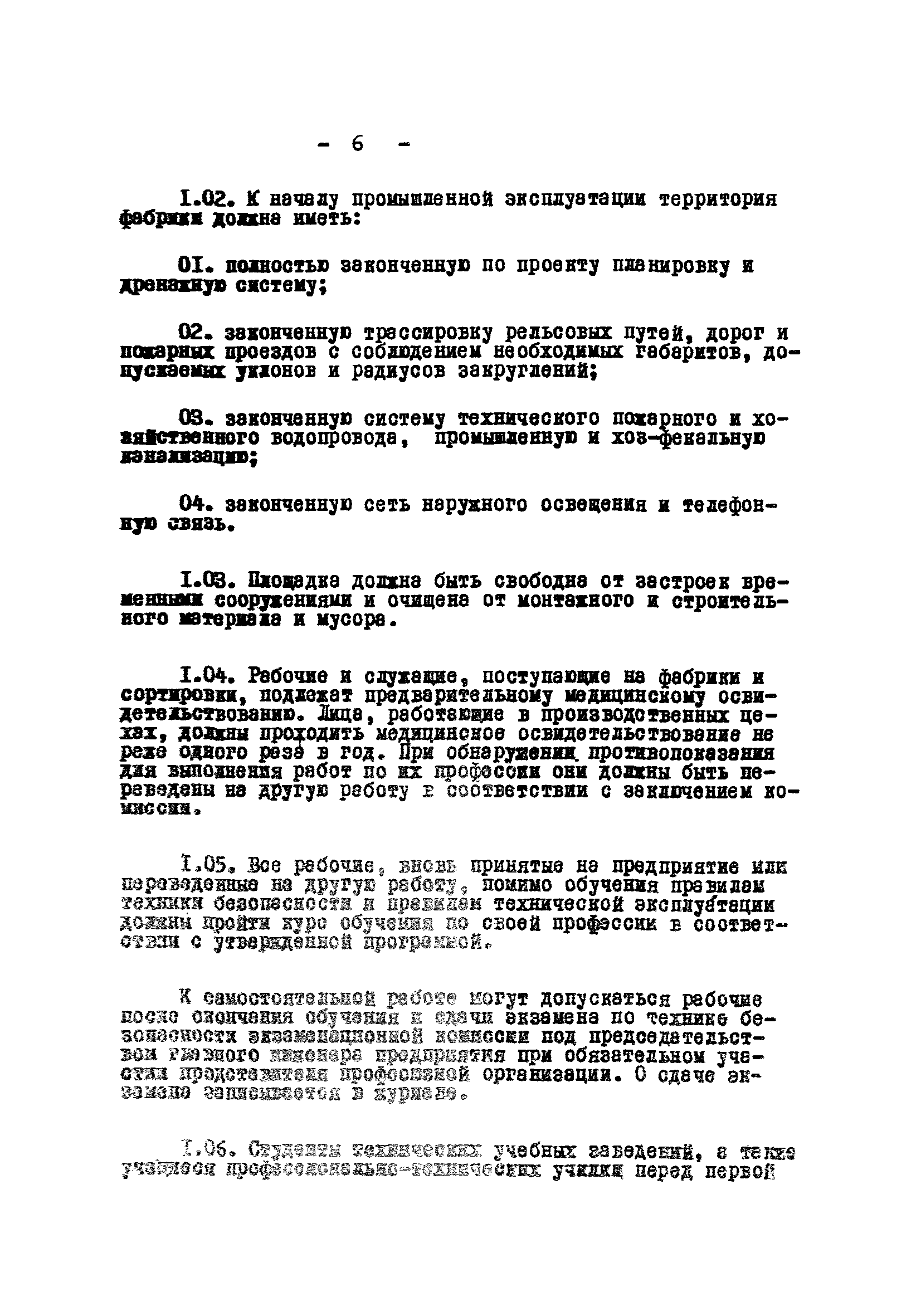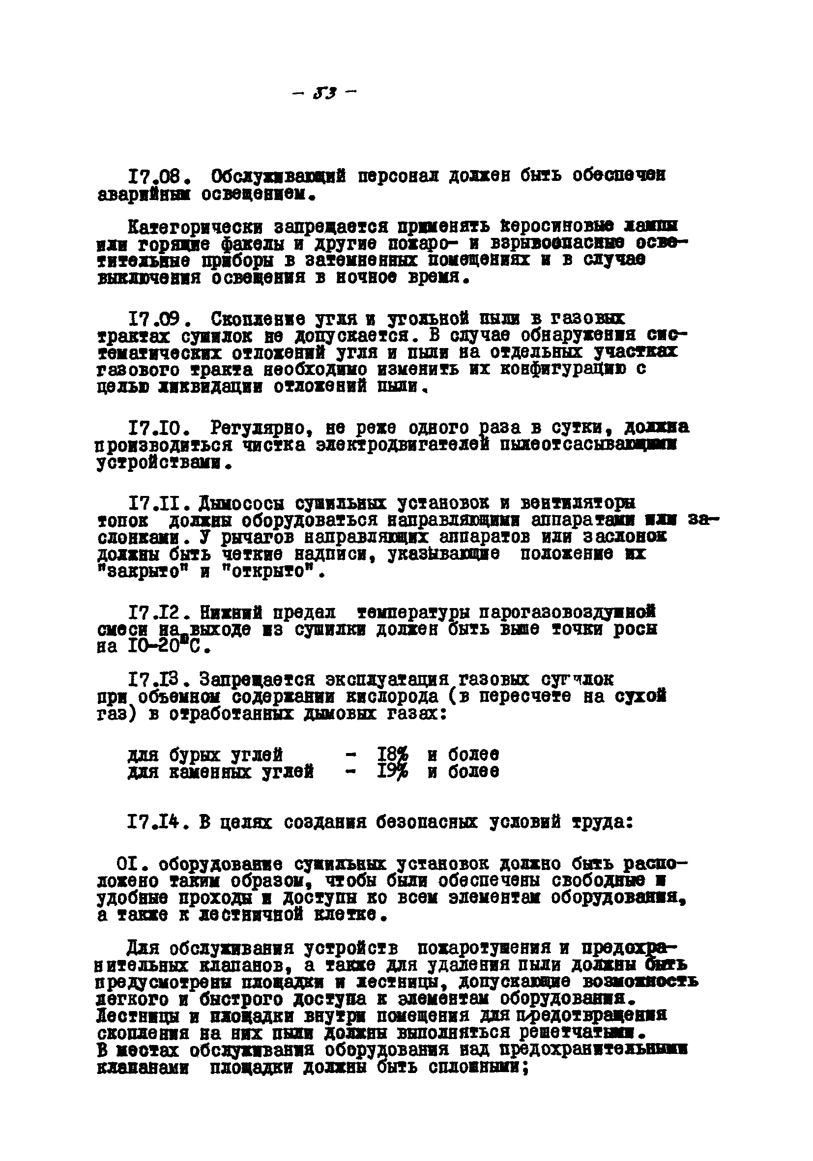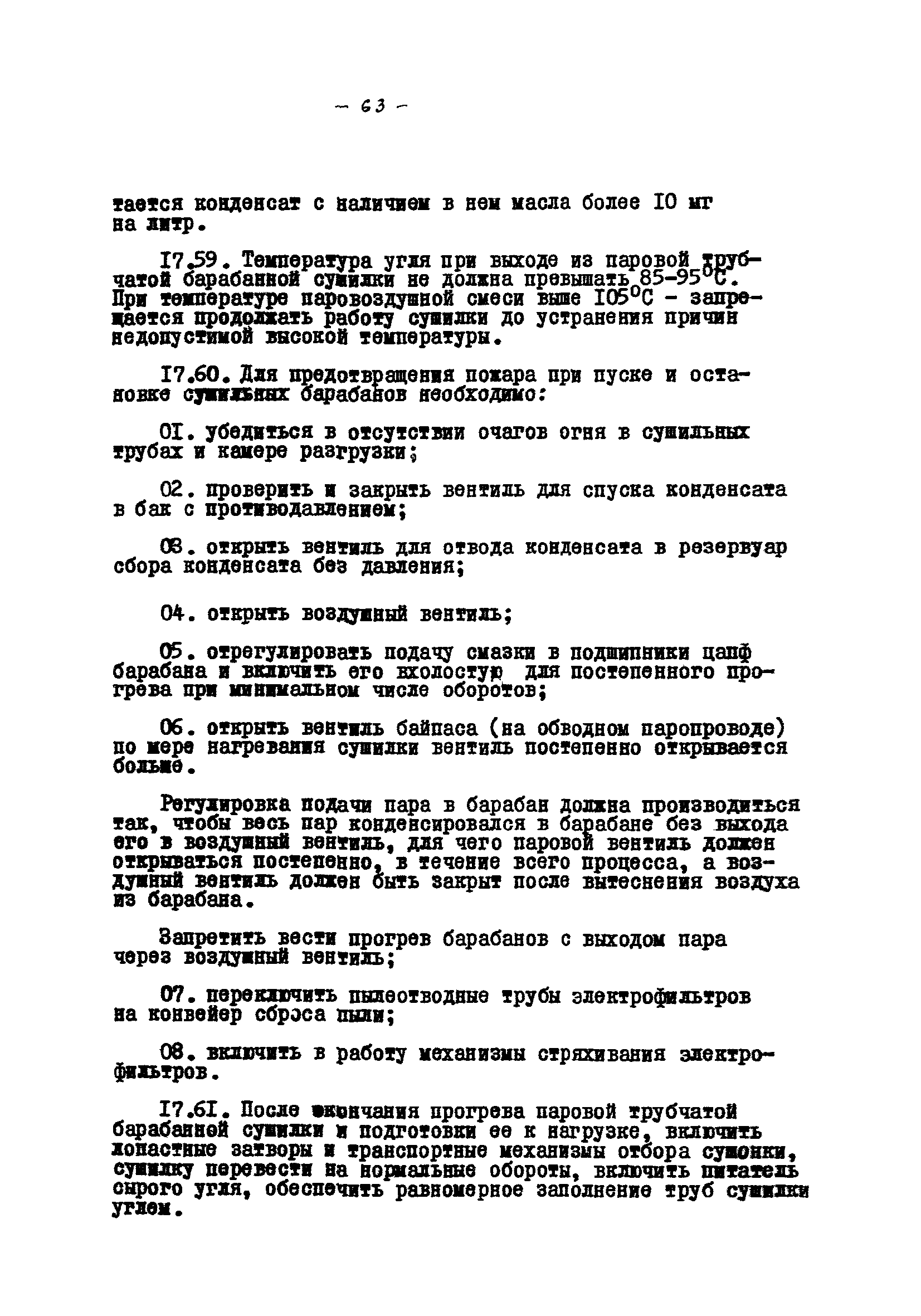 Временные правила технической эксплуатации углеобогатительных, брикетных фабрик и сортировок| Статус: | справочные материалы, мп, тпр | | Название рус.: | Временные правила технической эксплуатации углеобогатительных, брикетных фабрик и сортировок | | Дата добавления в базу: | 01.01.2018 | | Дата актуализации: | 01.01.2021 | | Область применения: | Правила обязательны для выполнения всеми предприятиями и организациями Министерства угольной промышленности СССР. | | Оглавление: | 1 Общие положения 2 Качество углей Общие положения Приемка углей 3 Разгрузка рядовых углей и утяжелителей 4 Дозировка и смешение углей 5 Дробление, грохочение и удаление из угля посторонних предметов Дробление угля Грохочение угля Удаление посторонних предметов 6 Дешламация и обемпыливание угля 7 Гидравлическая отсадка углей 8 Обогащение в тяжелых водно-минеральных суспензиях 9 Обогащение в моечных желобах 10 Пневматическое обогащение 11 Флотация угольной пыли и шламов 12 Обезвоживание 13 Водно-плановое хозяйство 14 Подготовка и сушка угля перед брикетированием 15 Прием и присадка связующих веществ 16 Прессование углей 17 Сушка угля Сушка в газовых барабанных и трубах—сушилках Слоевые топки Пылеугольные топки Шлак золоудаление Паровые трубчатые барабанные сушилки 18 Пуск и остановка оборудования фабрики 19 Погрузка и взвешивание продуктов обогащения, брикетов и сортового угля 20 Хранение угля и продуктов его переработки 21 Отвальное хозяйство Обычные отвалы Гидроотвалы 22 Внутрифабричный транспорт Подвесные канатные дороги Грузоподъемные краны Лифты 23 Водоснабжение и канализация Хозяйственно-питьевое водоснабжение Техническое и противопожарное водоснабжение Канализация 24 Технический контроль 25 Контроль технологического процесса 26 Качественно-количественный баланс 27 Электротехническое хозяйство Общие положения Электроснабжение Распределение электрической энергии Электрооборудование Крановое электрооборудование Автоматика и релейная защита Электроизмерительные приборы Заземление Надзор и контроль 28 Диспетчерская служба 29 Производственная сигнализация 30 Телефонная, громкоговорящая и другие способы связи 31 Компрессорные установки 32 Ремонтная служба 33 Пылеулавливание. Промышленная санитария и гигиена Гидрообеспыливание Уборка помещений Промышленная вентиляция Отопление 34 Санитарно-технические и бытовые службы 35 Первая медицинская помощь 36 Эксплуатация зданий и сооружений 37 Учет продукции 38 Производственный и технологический режим работы фабрик и сортировок 39 Техническое нормирование 40 Организация социалистического соревнования 41 Инструктаж рабочих 42 Управление фабрикой 43 Паспорт фабрики (паспортизация зданий, сооружений, оборудования и средств автоматизации) 44 Производственные инструкции, техника безопасности и противопожарные мероприятия Производственные инструкции Техника безопасности Противопожарные мероприятия 45 Ответственность за нарушение правил технической эксплуатации | | Разработан: | Центрогипрошахт
