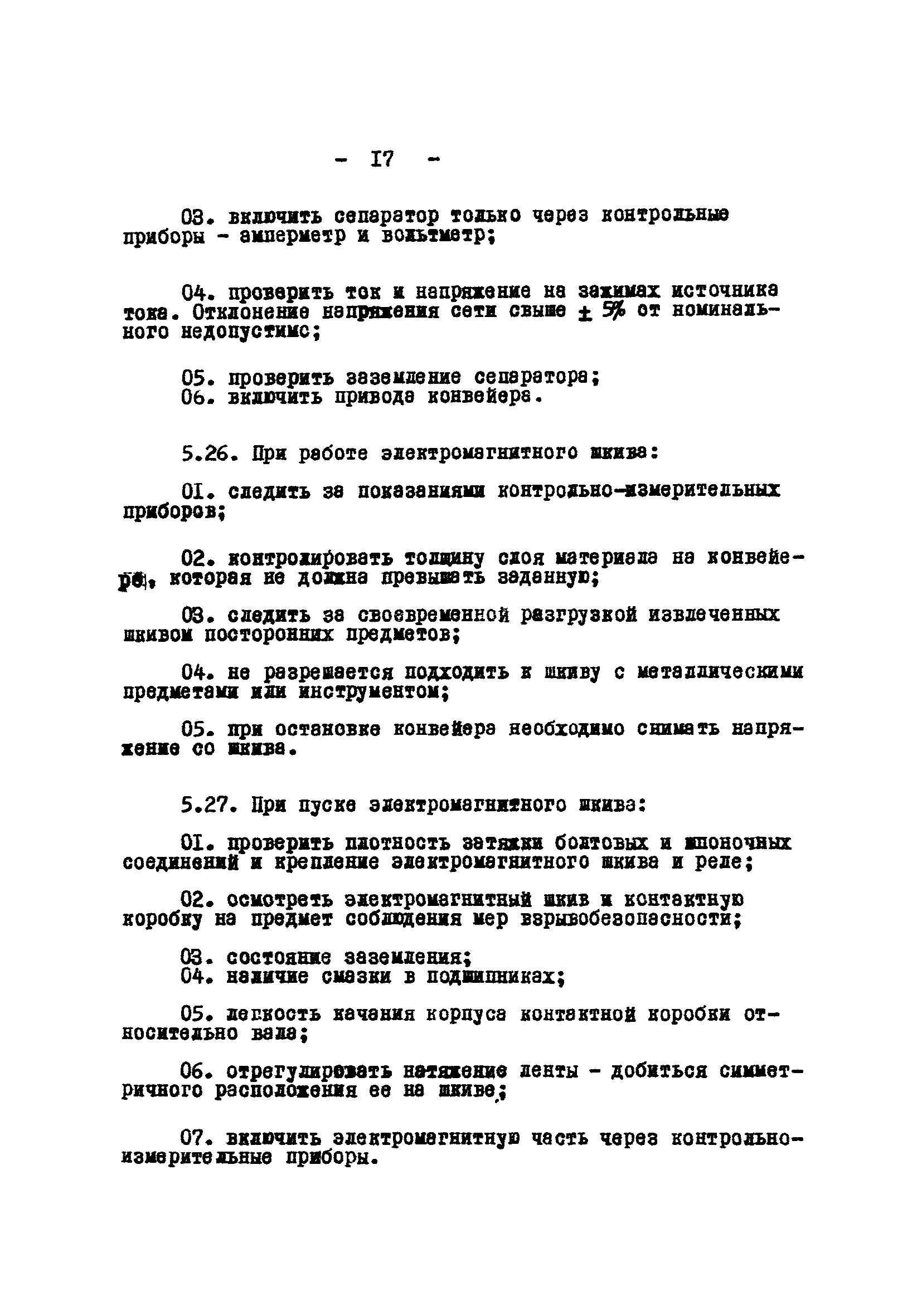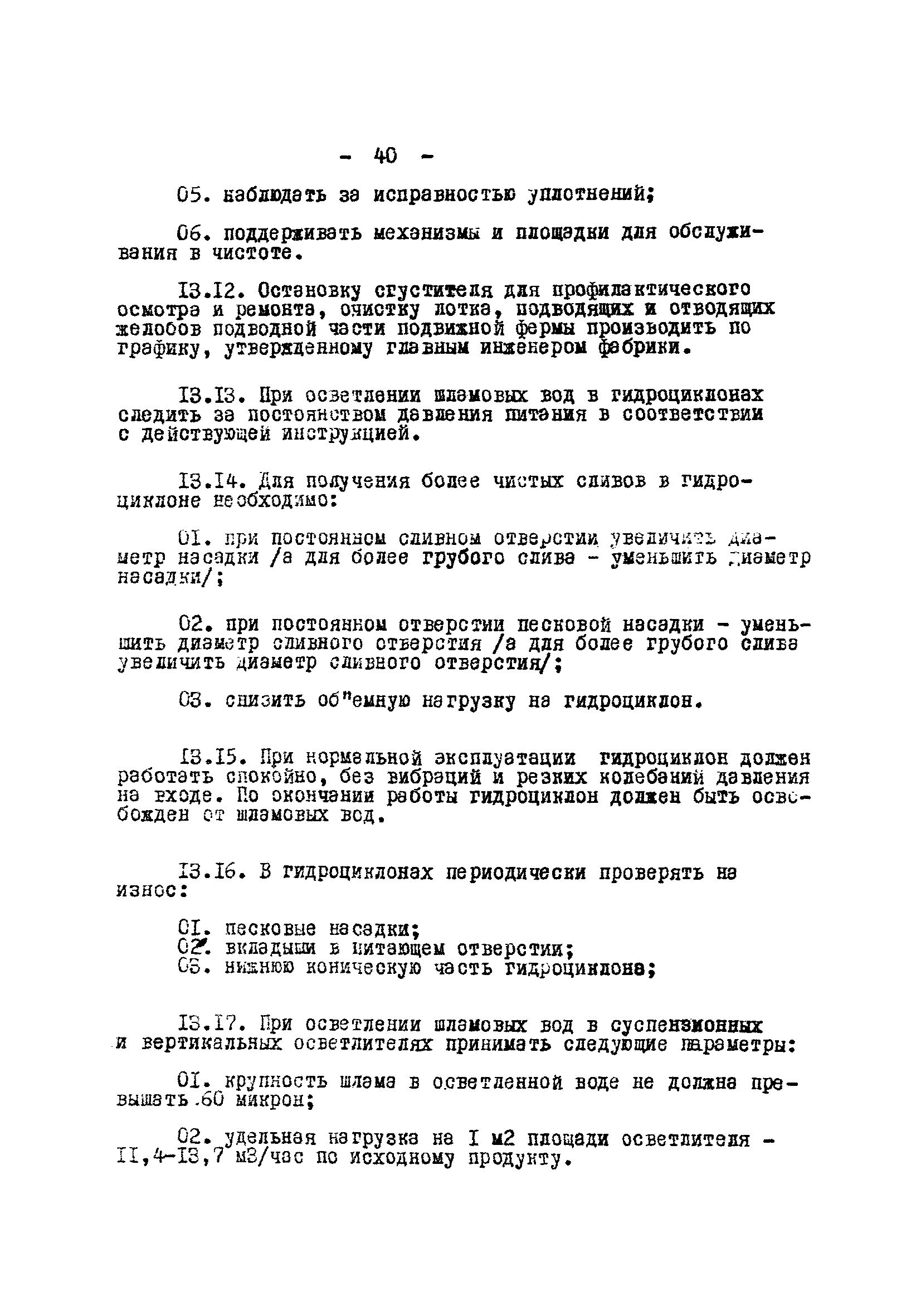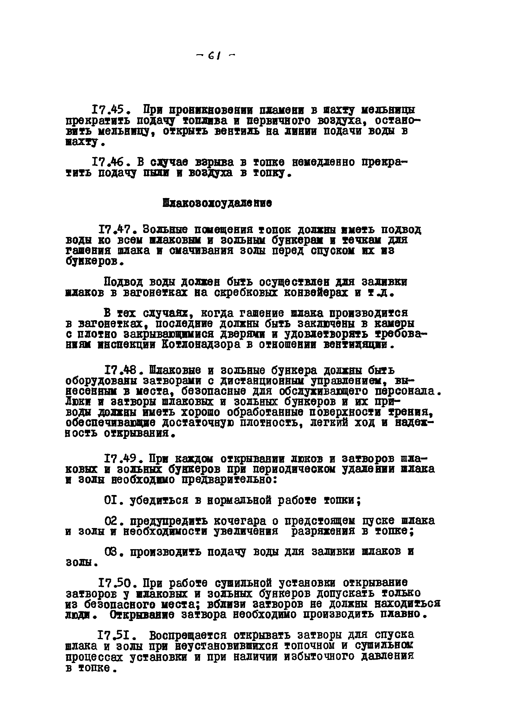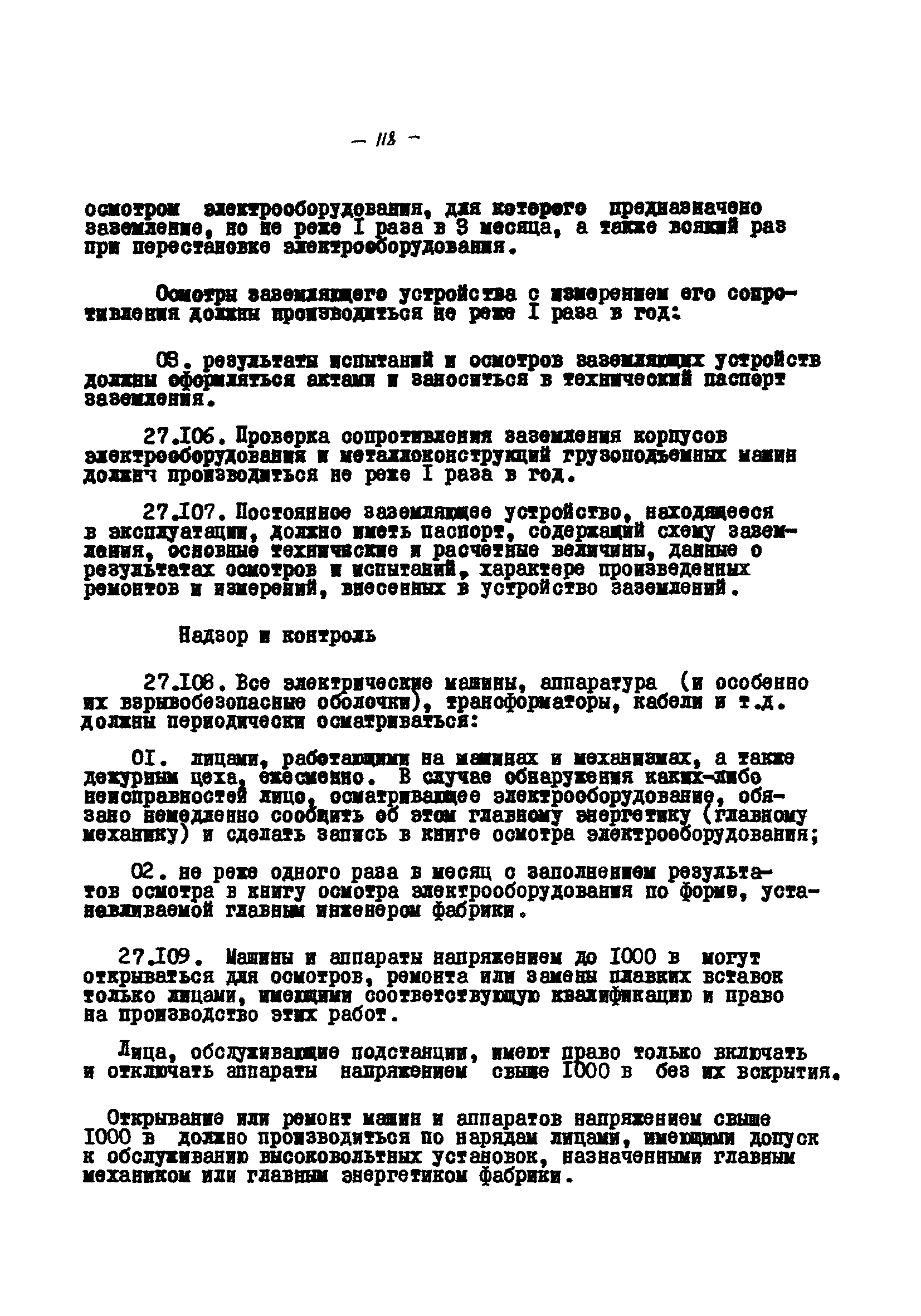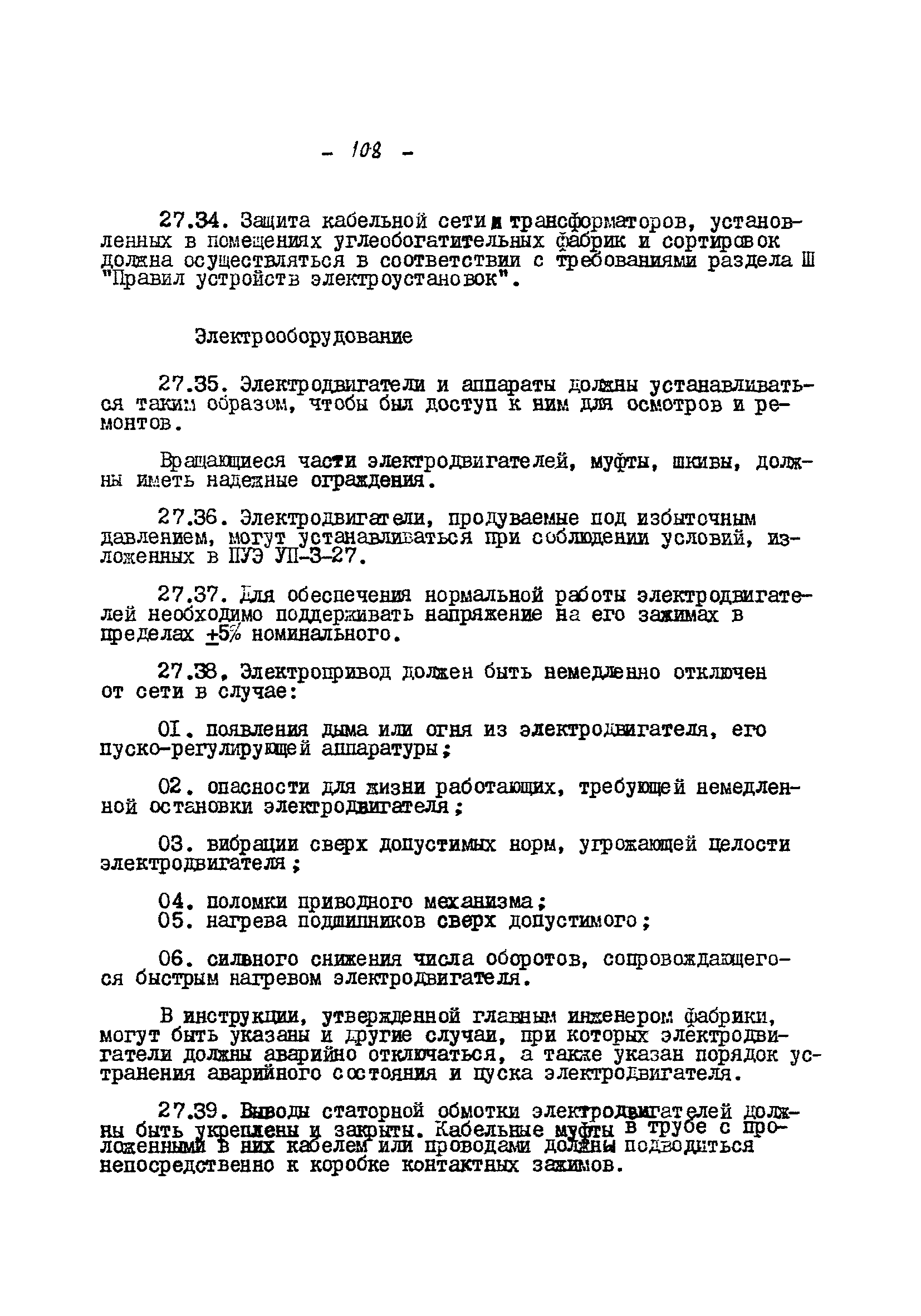 Временные правила технической эксплуатации углеобогатительных, брикетных фабрик и сортировок| Статус: | справочные материалы, мп, тпр | | Название рус.: | Временные правила технической эксплуатации углеобогатительных, брикетных фабрик и сортировок | | Дата добавления в базу: | 01.01.2018 | | Дата актуализации: | 01.01.2021 | | Область применения: | Правила обязательны для выполнения всеми предприятиями и организациями Министерства угольной промышленности СССР. | | Оглавление: | 1 Общие положения 2 Качество углей Общие положения Приемка углей 3 Разгрузка рядовых углей и утяжелителей 4 Дозировка и смешение углей 5 Дробление, грохочение и удаление из угля посторонних предметов Дробление угля Грохочение угля Удаление посторонних предметов 6 Дешламация и обемпыливание угля 7 Гидравлическая отсадка углей 8 Обогащение в тяжелых водно-минеральных суспензиях 9 Обогащение в моечных желобах 10 Пневматическое обогащение 11 Флотация угольной пыли и шламов 12 Обезвоживание 13 Водно-плановое хозяйство 14 Подготовка и сушка угля перед брикетированием 15 Прием и присадка связующих веществ 16 Прессование углей 17 Сушка угля Сушка в газовых барабанных и трубах—сушилках Слоевые топки Пылеугольные топки Шлак золоудаление Паровые трубчатые барабанные сушилки 18 Пуск и остановка оборудования фабрики 19 Погрузка и взвешивание продуктов обогащения, брикетов и сортового угля 20 Хранение угля и продуктов его переработки 21 Отвальное хозяйство Обычные отвалы Гидроотвалы 22 Внутрифабричный транспорт Подвесные канатные дороги Грузоподъемные краны Лифты 23 Водоснабжение и канализация Хозяйственно-питьевое водоснабжение Техническое и противопожарное водоснабжение Канализация 24 Технический контроль 25 Контроль технологического процесса 26 Качественно-количественный баланс 27 Электротехническое хозяйство Общие положения Электроснабжение Распределение электрической энергии Электрооборудование Крановое электрооборудование Автоматика и релейная защита Электроизмерительные приборы Заземление Надзор и контроль 28 Диспетчерская служба 29 Производственная сигнализация 30 Телефонная, громкоговорящая и другие способы связи 31 Компрессорные установки 32 Ремонтная служба 33 Пылеулавливание. Промышленная санитария и гигиена Гидрообеспыливание Уборка помещений Промышленная вентиляция Отопление 34 Санитарно-технические и бытовые службы 35 Первая медицинская помощь 36 Эксплуатация зданий и сооружений 37 Учет продукции 38 Производственный и технологический режим работы фабрик и сортировок 39 Техническое нормирование 40 Организация социалистического соревнования 41 Инструктаж рабочих 42 Управление фабрикой 43 Паспорт фабрики (паспортизация зданий, сооружений, оборудования и средств автоматизации) 44 Производственные инструкции, техника безопасности и противопожарные мероприятия Производственные инструкции Техника безопасности Противопожарные мероприятия 45 Ответственность за нарушение правил технической эксплуатации | | Разработан: | Центрогипрошахт