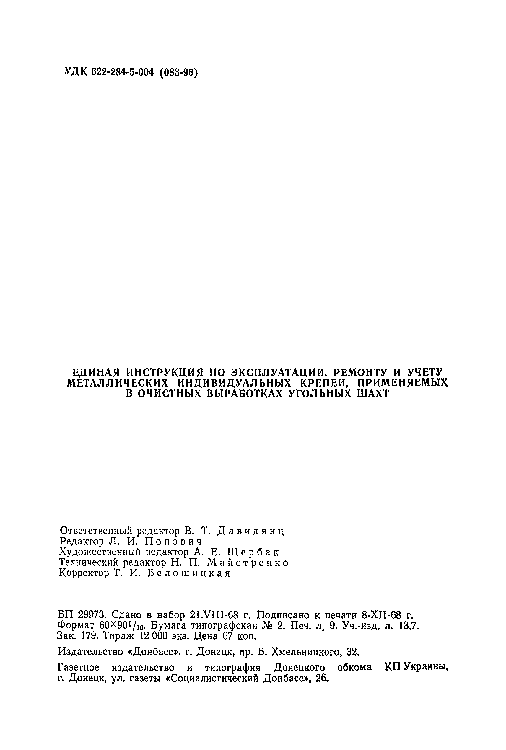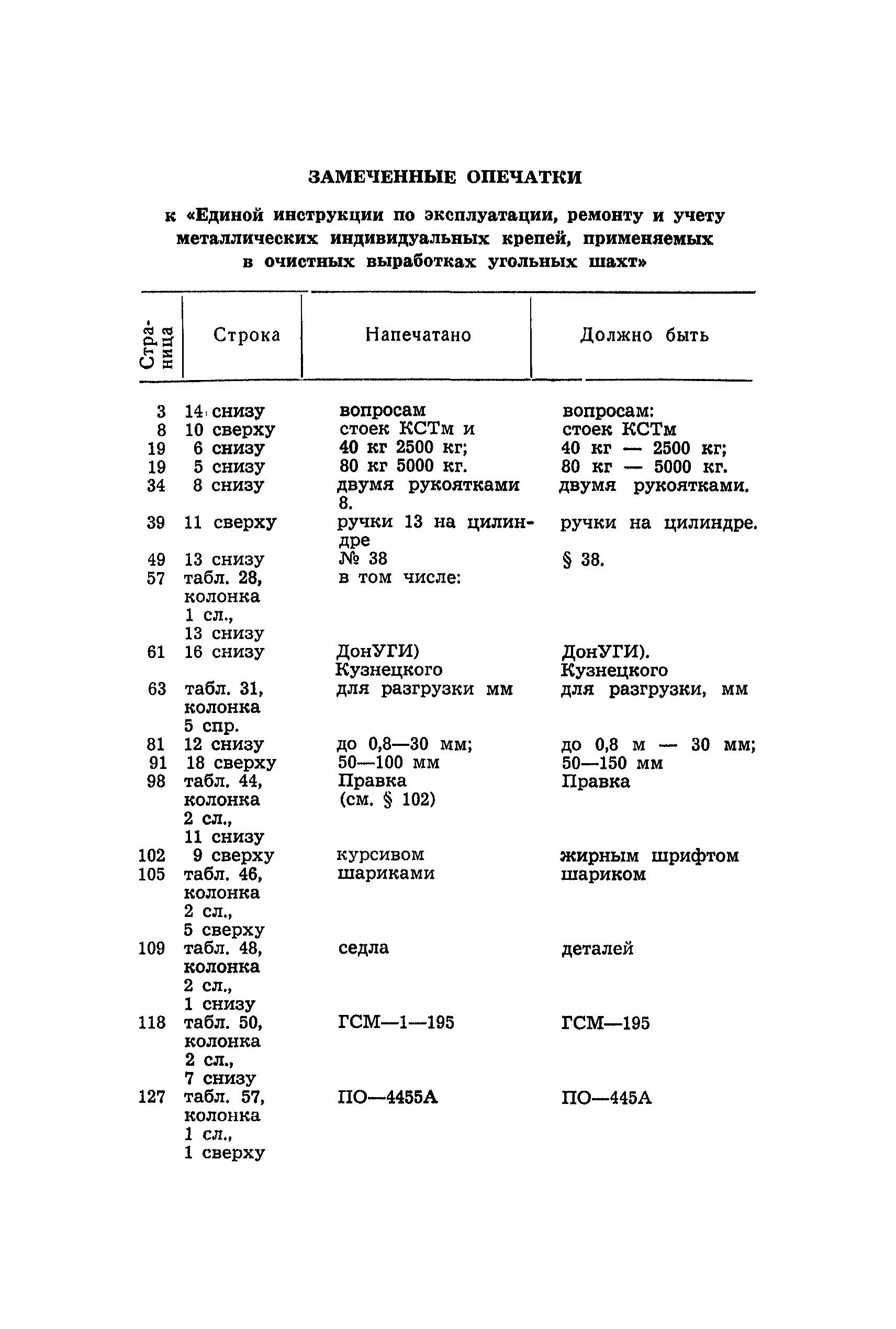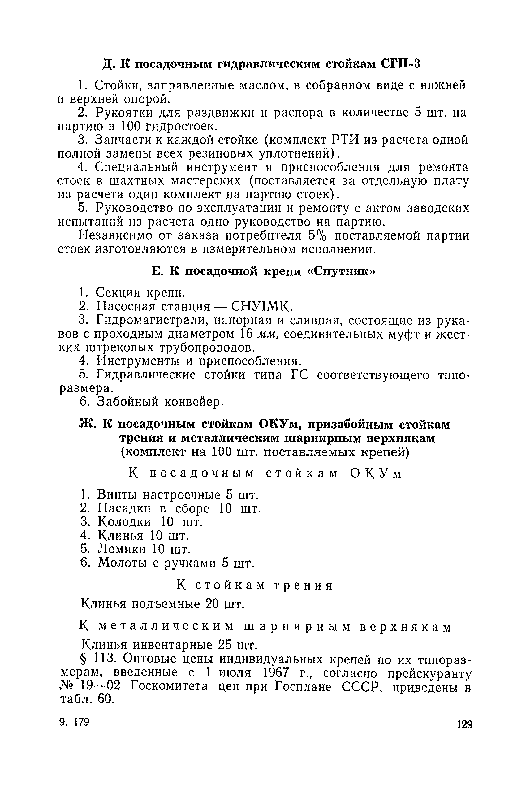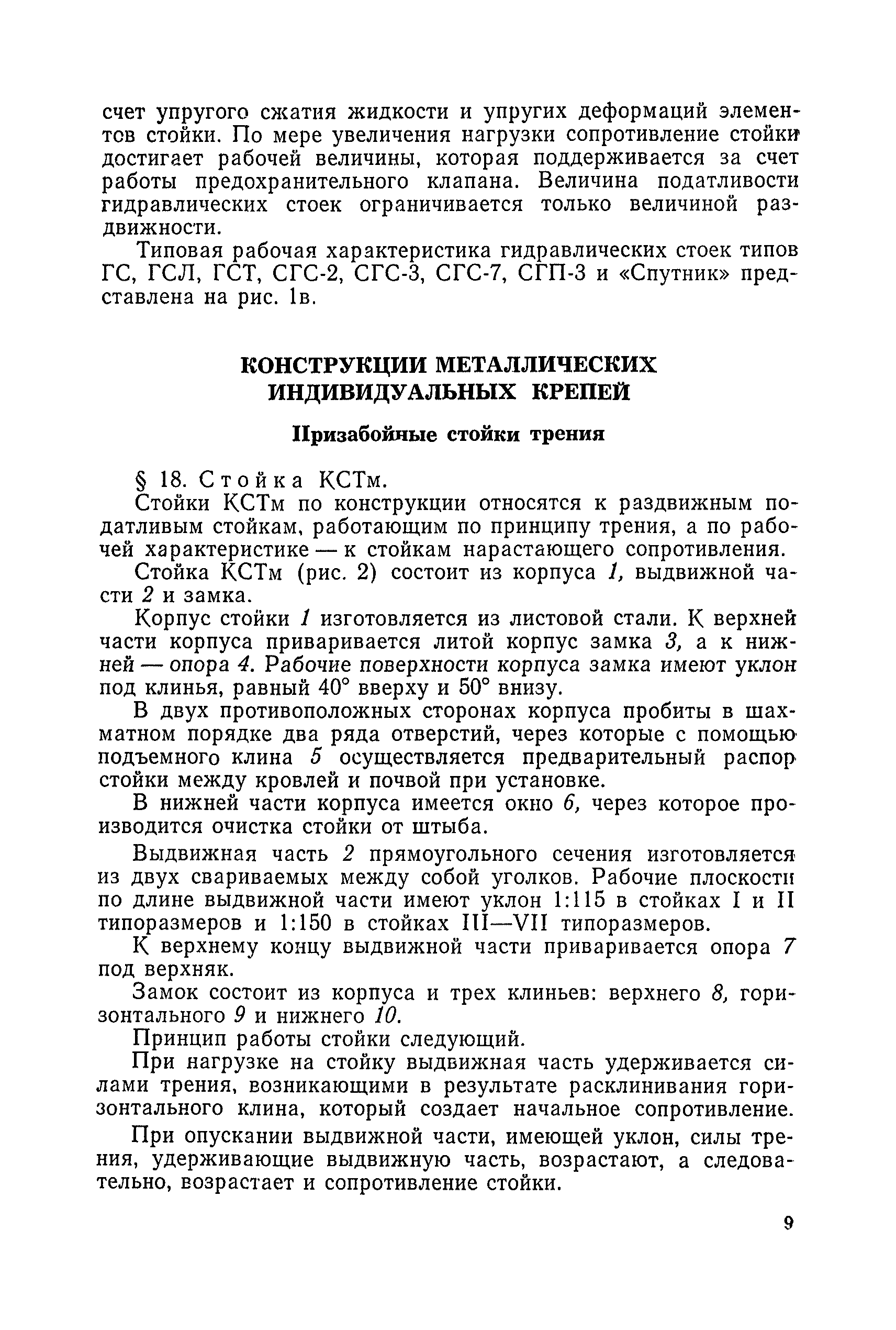 Единая инструкция по эксплуатации, ремонту и учету металлических индивидуальных крепей, применяемых в очистных выработках угольных шахт| Статус: | справочные материалы, мп, тпр | | Название рус.: | Единая инструкция по эксплуатации, ремонту и учету металлических индивидуальных крепей, применяемых в очистных выработках угольных шахт | | Дата добавления в базу: | 01.01.2018 | | Дата актуализации: | 01.01.2021 | | Область применения: | Инструкция ставит своей целью дать необходимые практические указания по вопросам правильной эксплуатации, ремонта и учета металлических индивидуальных крепей как применяемых в настоящее время на шахтах угольной промышленности СССР, так и перспективных, предусмотренных к дальнейшему выпуску. Она предназначена для обязательного применения на шахтах, в трестах и комбинатах. | | Оглавление: | Введение 1 Особенности эксплуатации, принципы работы и конструкции металлических индивидуальных крепей Особенности эксплуатации металлических индивидуальных крепей Основные принципы работы и рабочие характеристики применяемых металлических индивидуальных крепей Конструкции металлических индивидуальных крепей Призабойные стойки трения Гидравлические призабойные стойки Металлические шарнирные верхняки Посадочные крепи II Выбор типоразмеров металлических индивидуальных крепей III Основные правила работы с металлическими индивидуальными крепями Основные правила работы с призабойными металлическими стойками Основные правила работы с металлическими шарнирными верхняками Основные правила работы с посадочными металлическими стойками Основные правила работы с металлическими кострами Основные правила работы с индивидуальными металлическими стойками на крутых пластах Подготовка металлических крепей к спуску и спуск их в шахту Хранение металлических крепей и запасных частей к ним IV Ремонт металлических индивидуальных крепей Ремонт металлических стоек трения и верхняков Нормы расхода запасных частей V Комплектность поставок индивидуальных крепей, запасных частей и инструмента. Оптовые цены индивидуальных крепей VI Порядок учета, погашения стоимости и списание потерь металлических индивидуальных крепей Приложение 1. Журнал еженедельного учета движения металлических крепей Приложение 2. Форма акта инвентаризации металлических крепей по участку, лаве Приложение 3. Сводная инвентаризационная ведомость металлических крепей Приложение 4. Журнал учета движения металлических крепей в шахтной мастерской Приложение 5. Форма акта выбраковки деформированных металлических крепей Приложение 6. Форма акта на списание потерянных металлических крепей | | Утверждён: | 18.04.1968 Министерство угольной промышленности СССР (USSR Ministry of the Coal Industry )