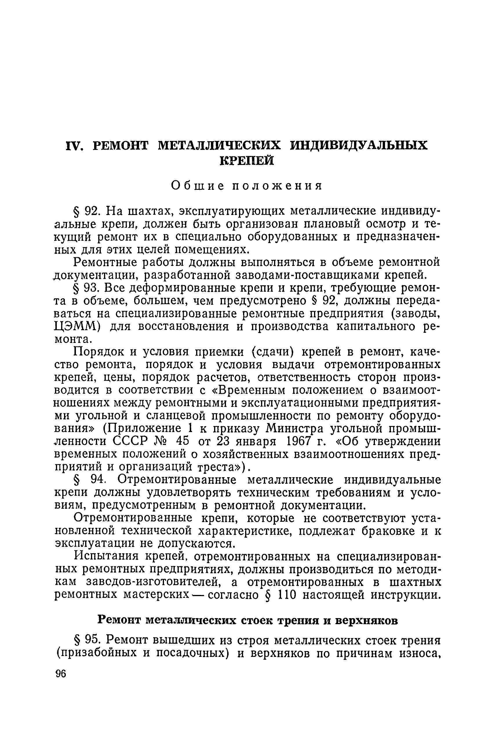 Скачать Единая инструкция по эксплуатации, ремонту и учету металлических индивидуальных крепей, применяемых в очистных выработках угольных шахтДата актуализации: 01.01.2021