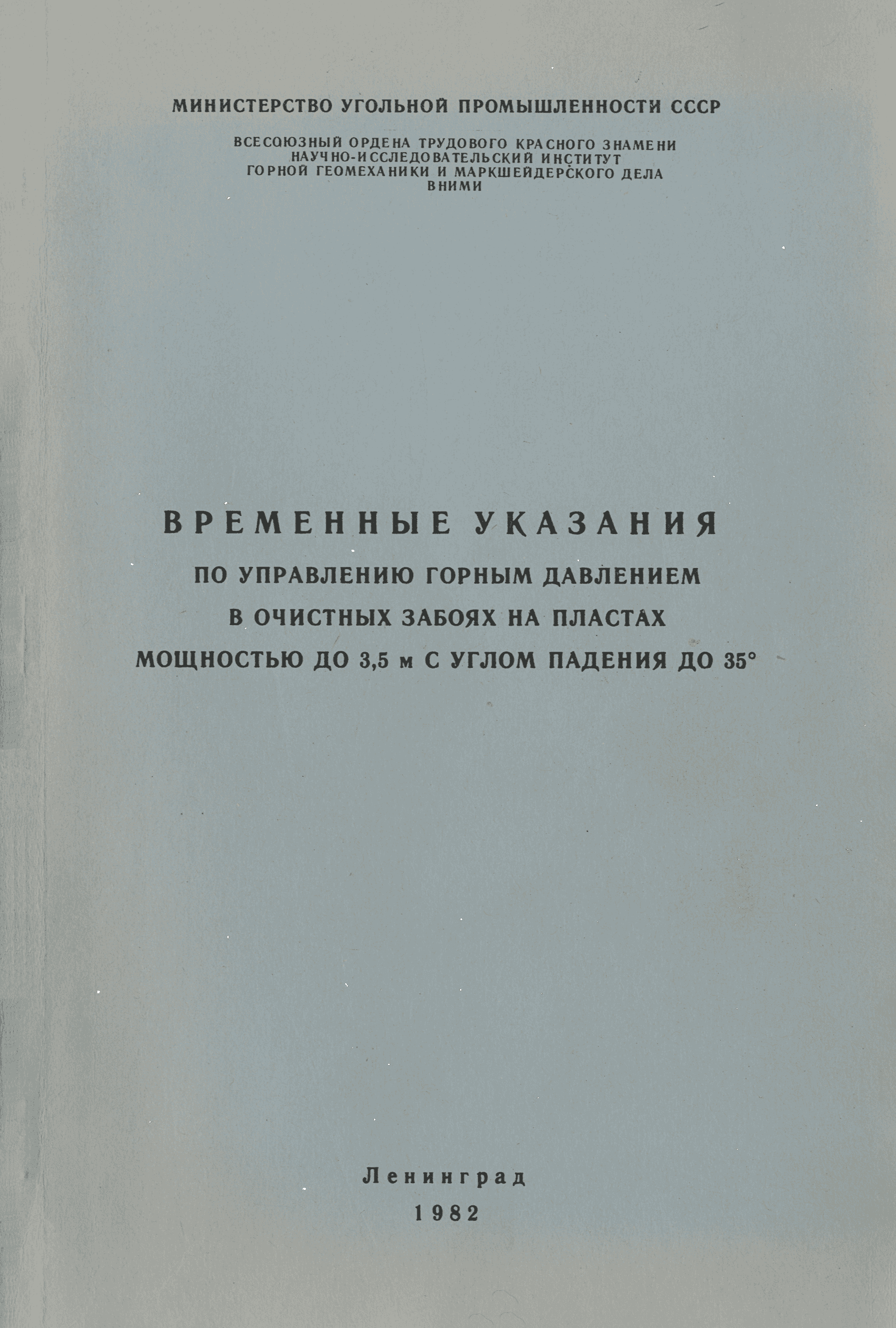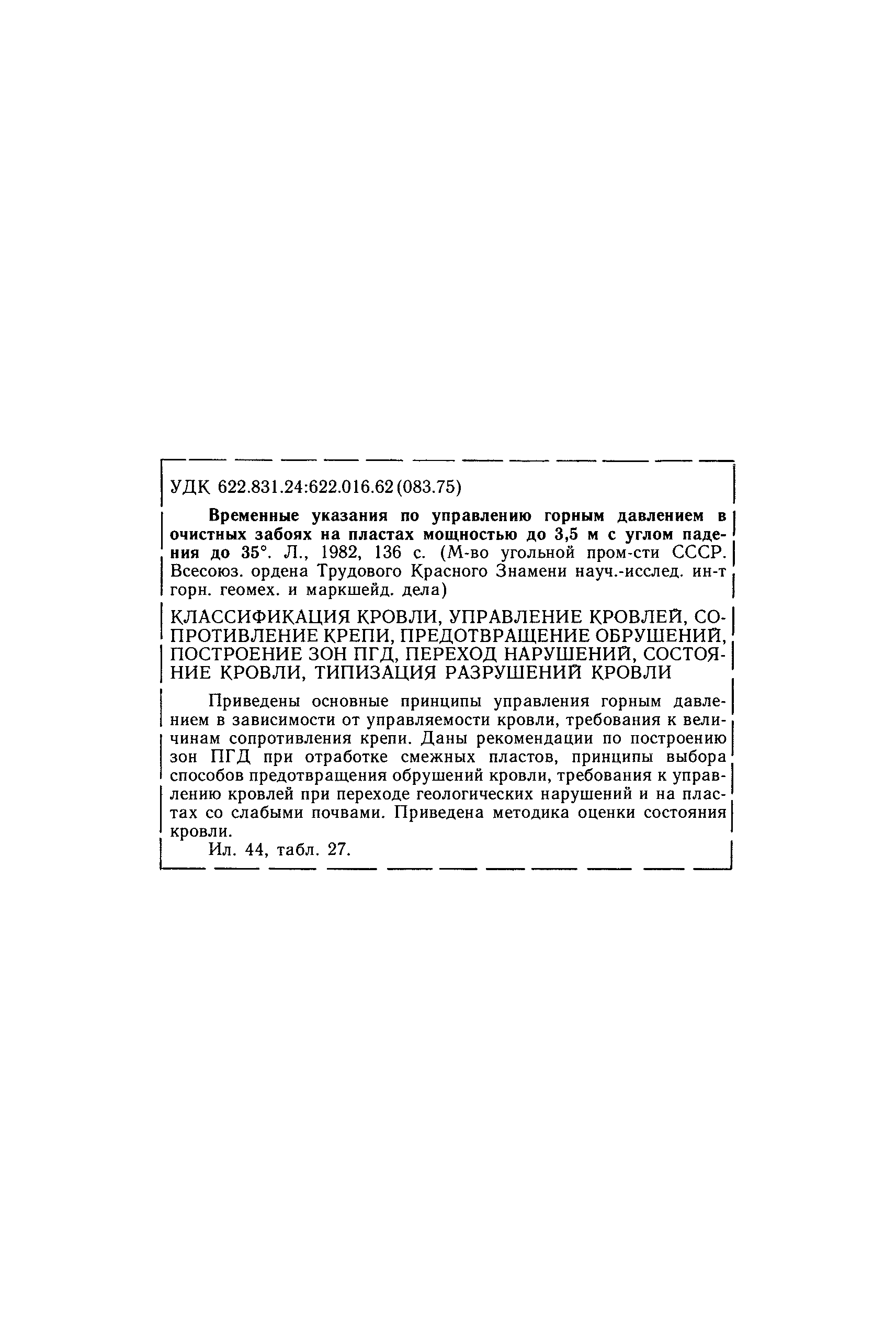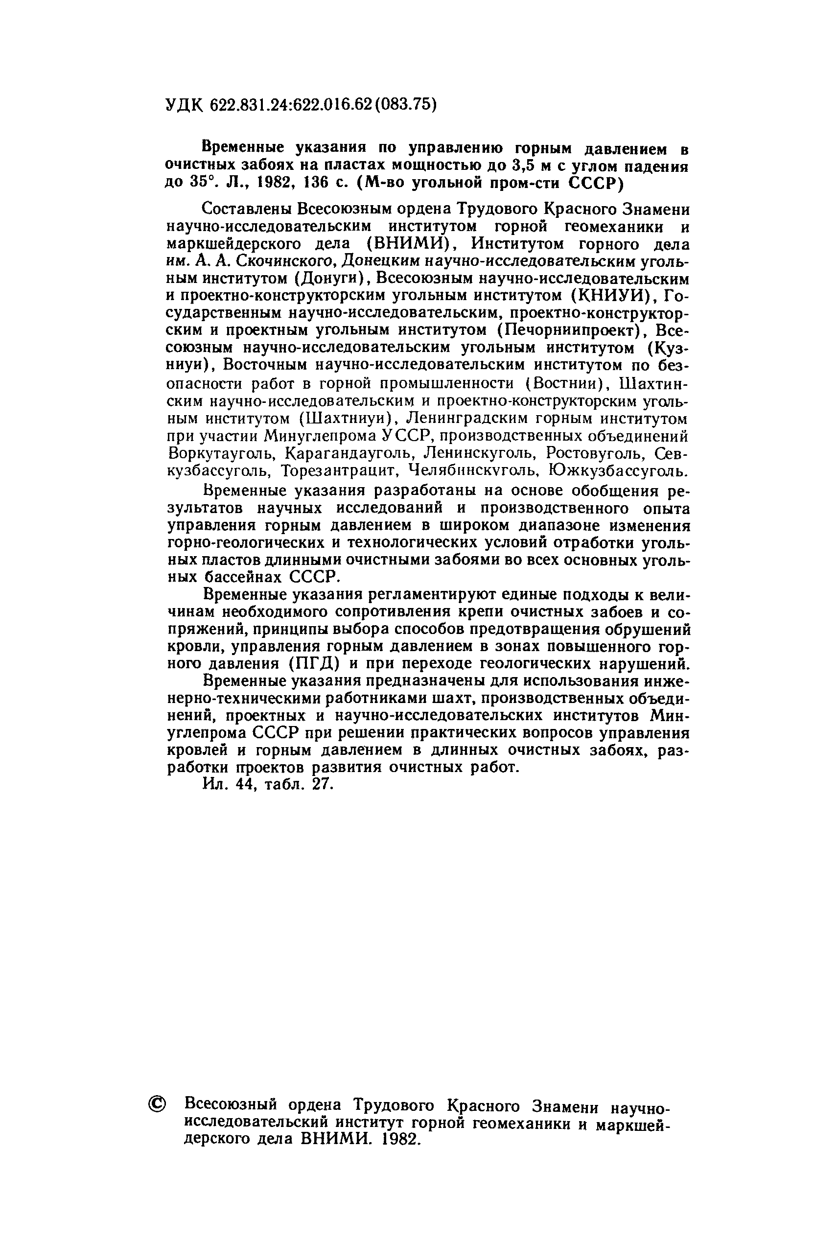 | | Утверждён: | 18.11.1981 Министерство угольной промышленности СССР (USSR Ministry of the Coal Industry 2-14/25)