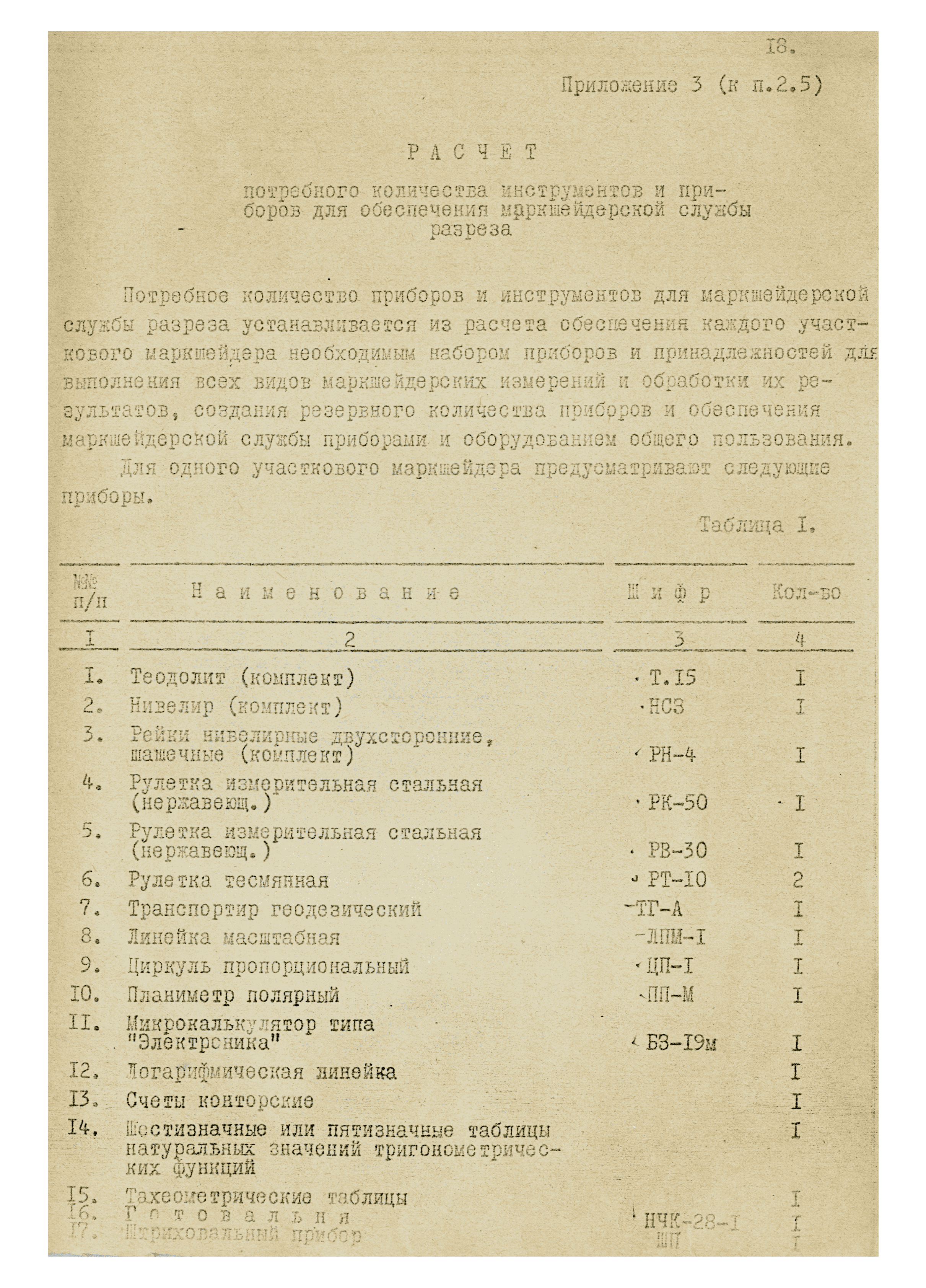 Приложение 3. Расчет потребного количества инструментов и приборов для обеспечения маркшейдерской службы разреза
