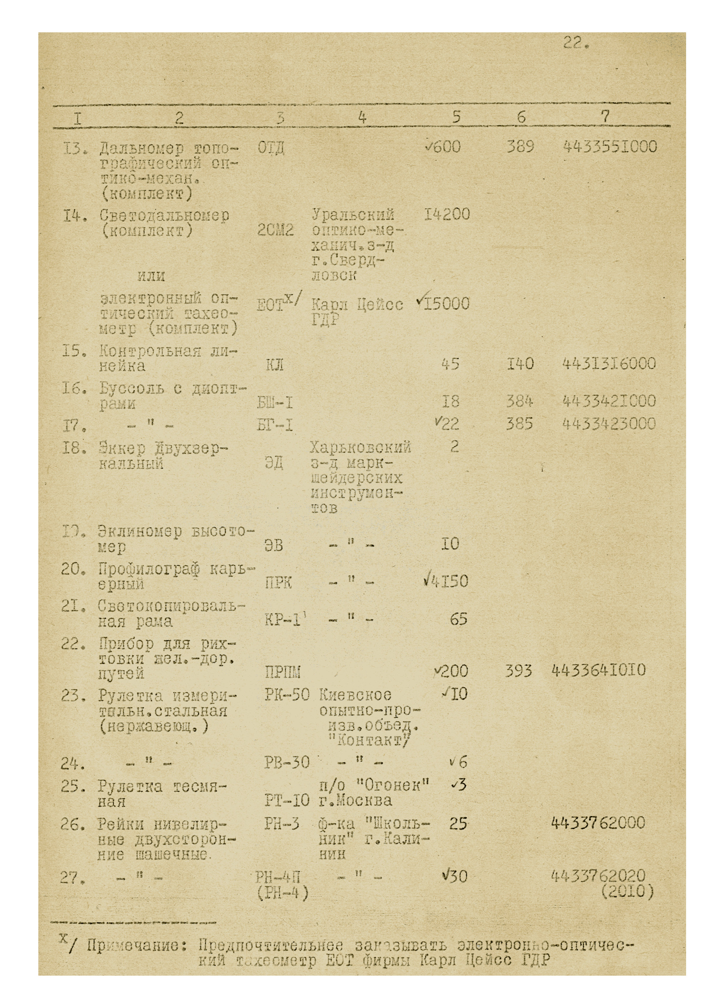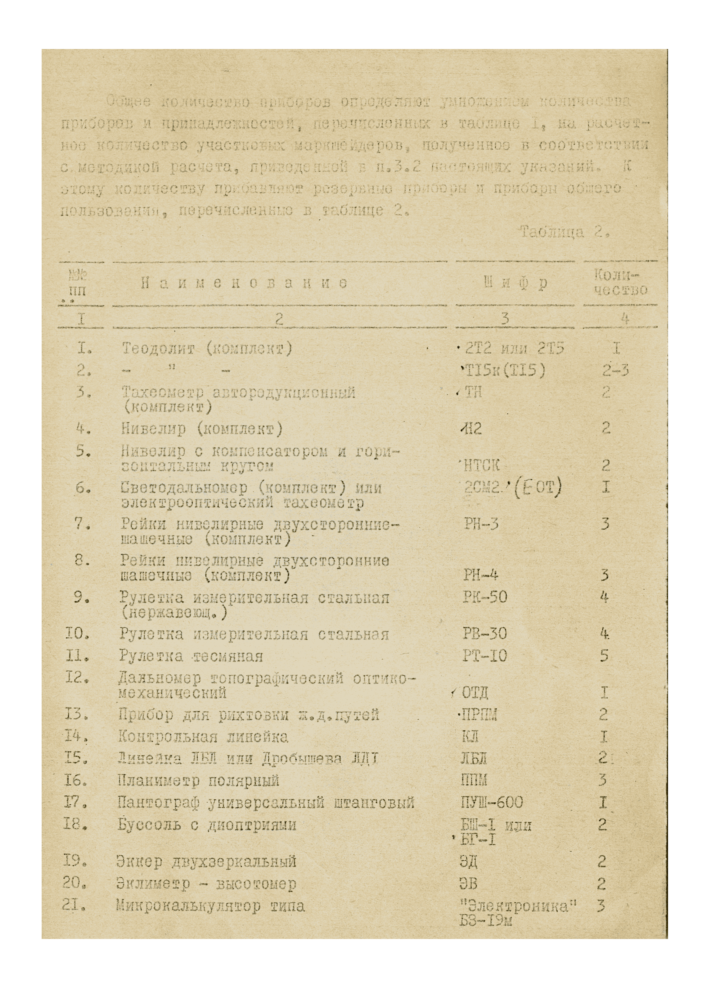 Приложение 2. Перечень приборов для обеспечения наземной стереосъемки