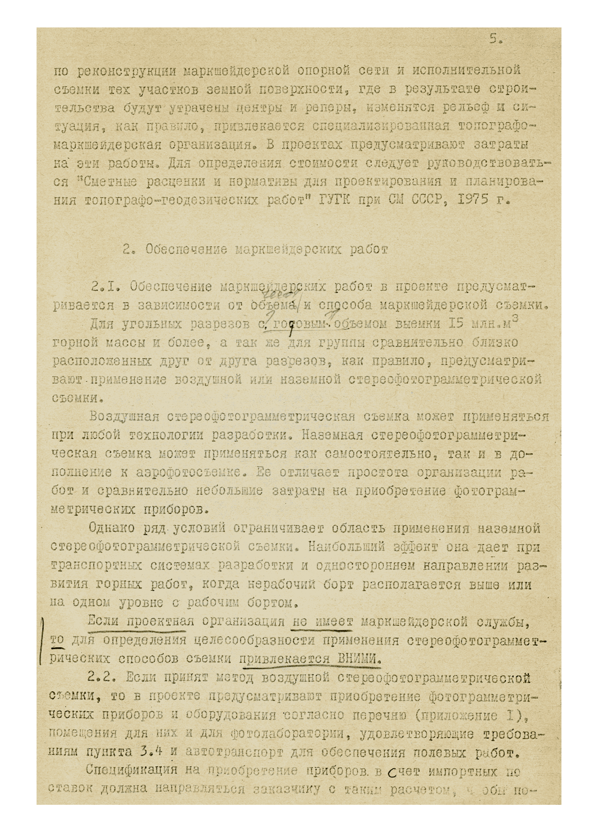 Временные указания по проектированию маркшейдерского обслуживания крупных угольных разрезов
