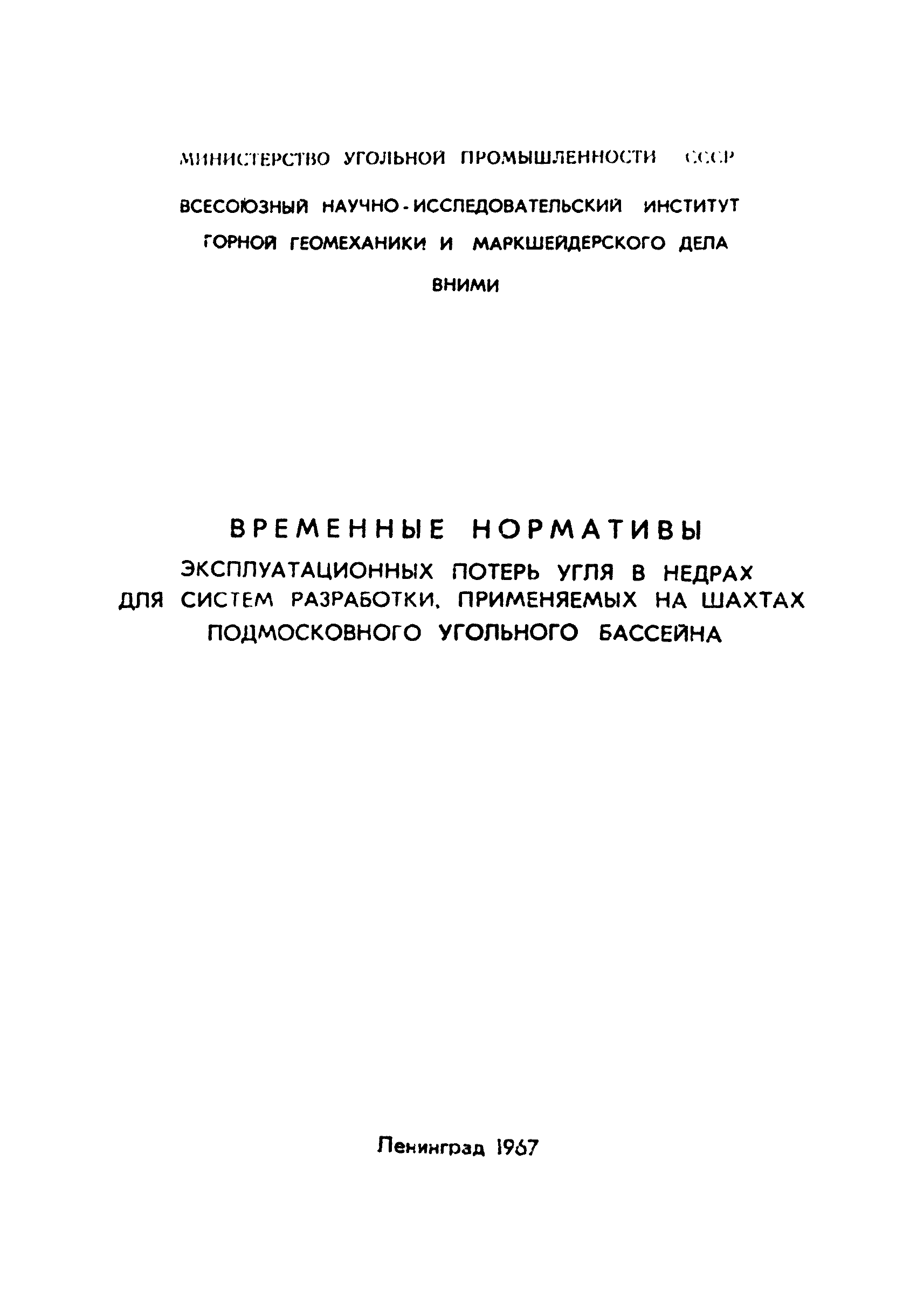 | Название рус.: | Временные нормативы эксплуатационных потерь угля в недрах для систем разработки, применяемых на шахтах Подмосковного угольного бассейна |