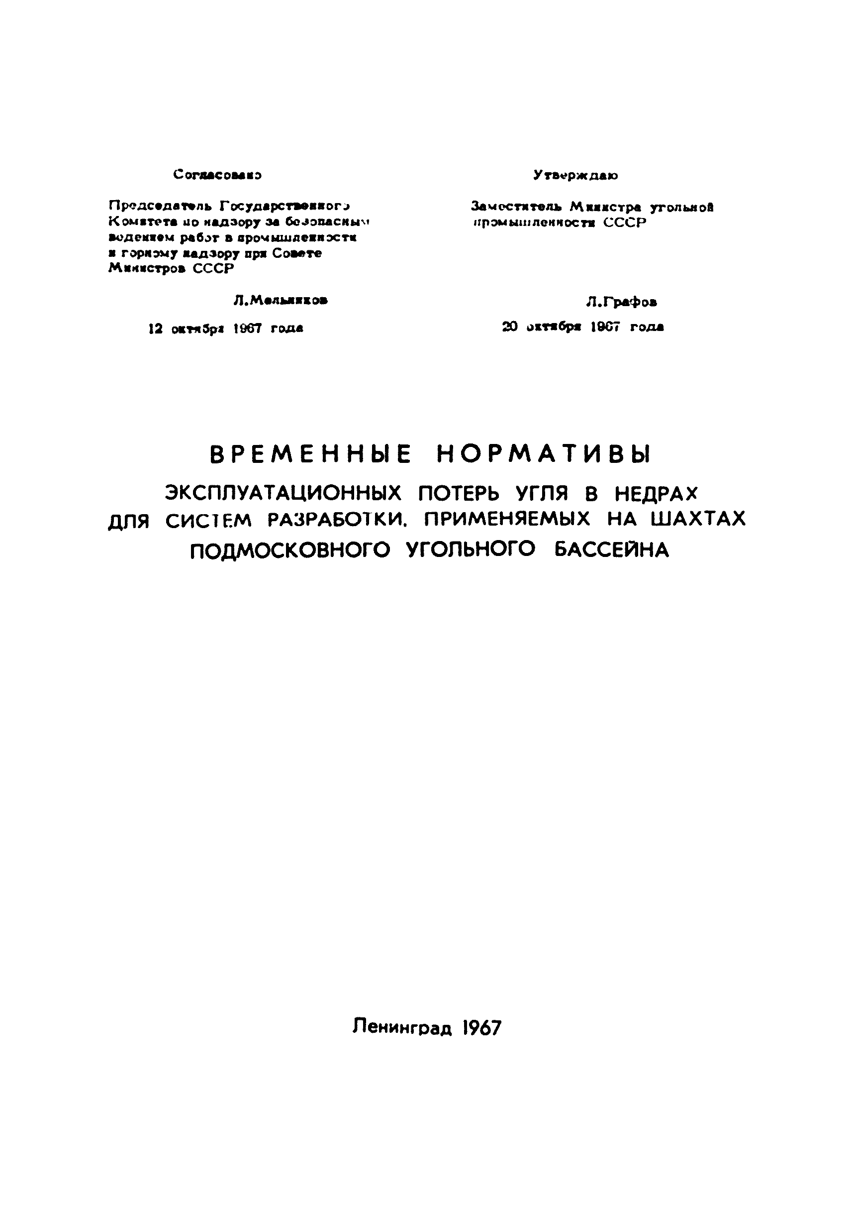 | Утверждён: | 20.10.1967 Министерство угольной промышленности СССР (USSR Ministry of the Coal Industry )