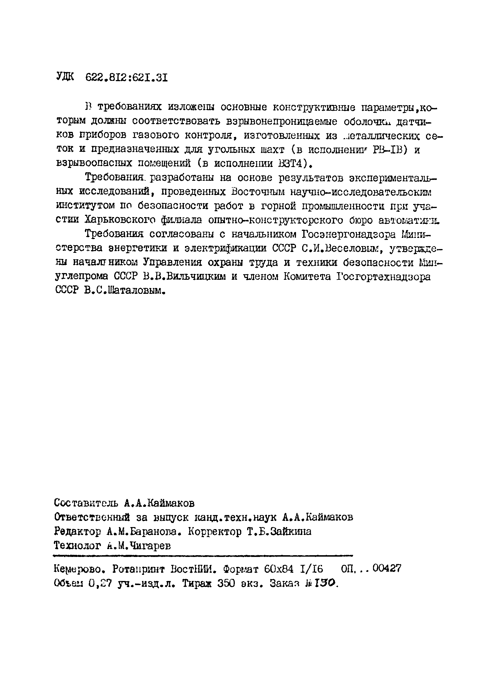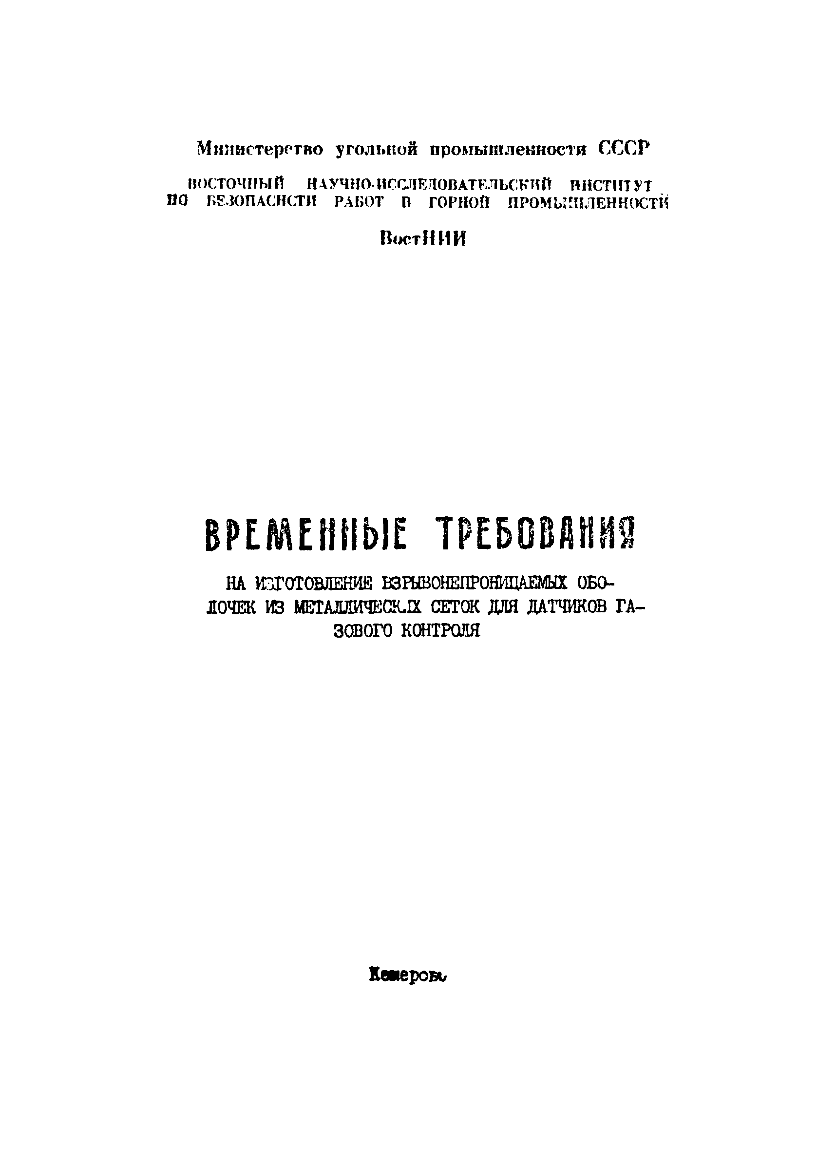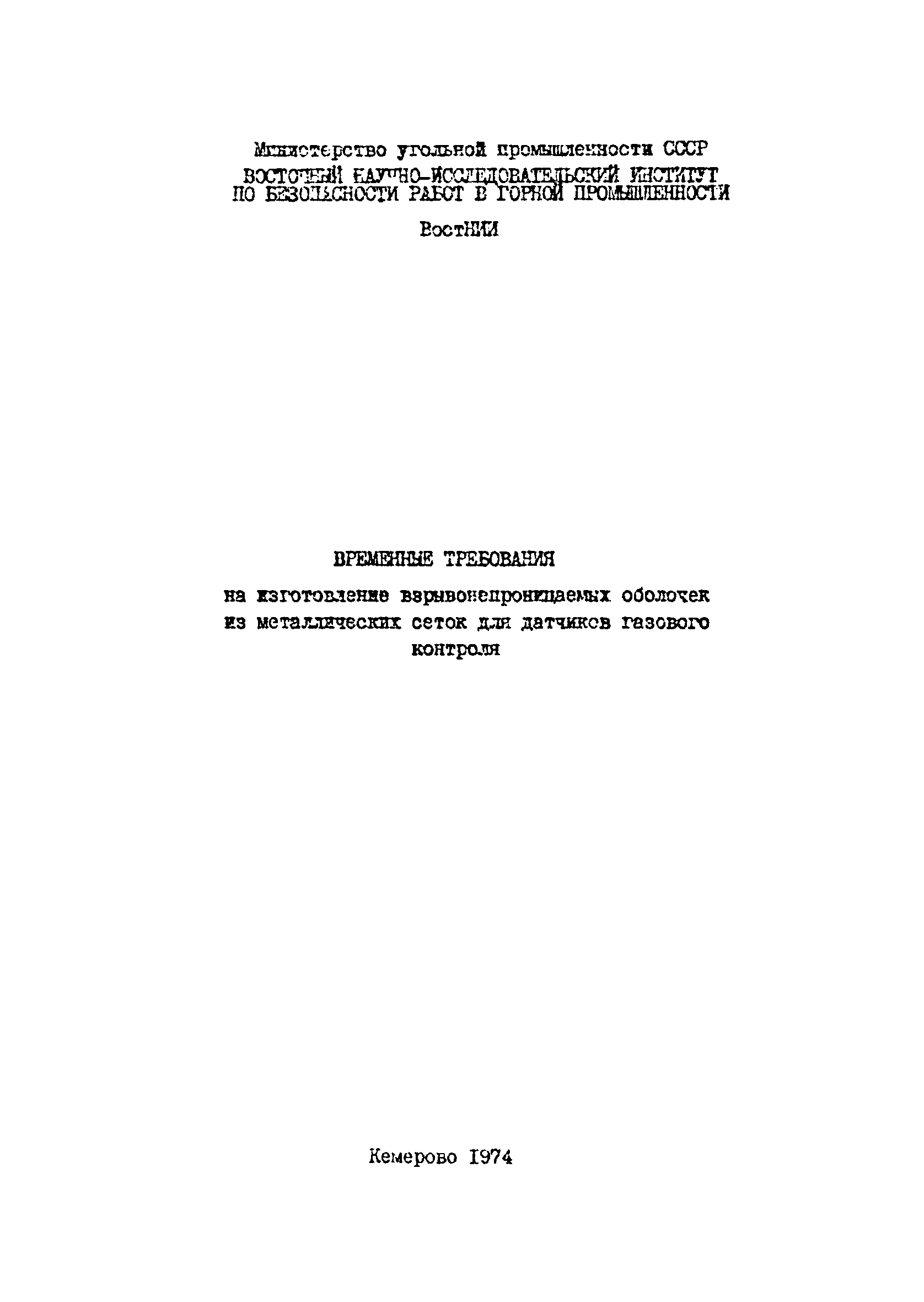 | Название рус.: | Временные требования на изготовление взрывонепроницаемых оболочек из металлических сеток для датчиков газового контроля |
