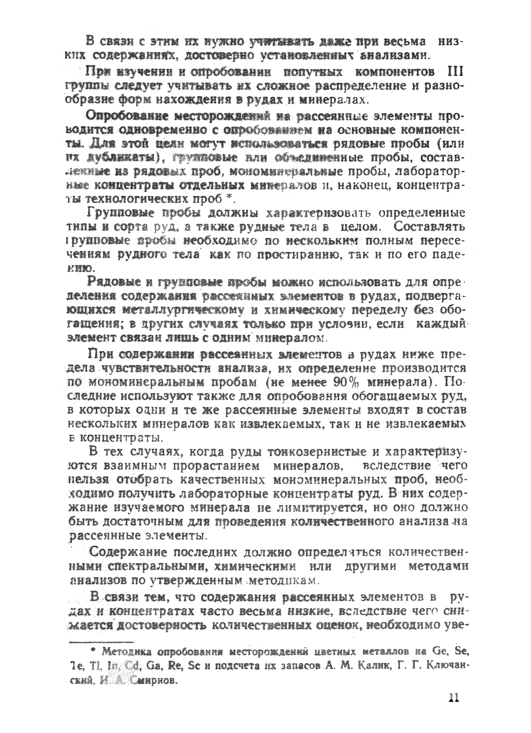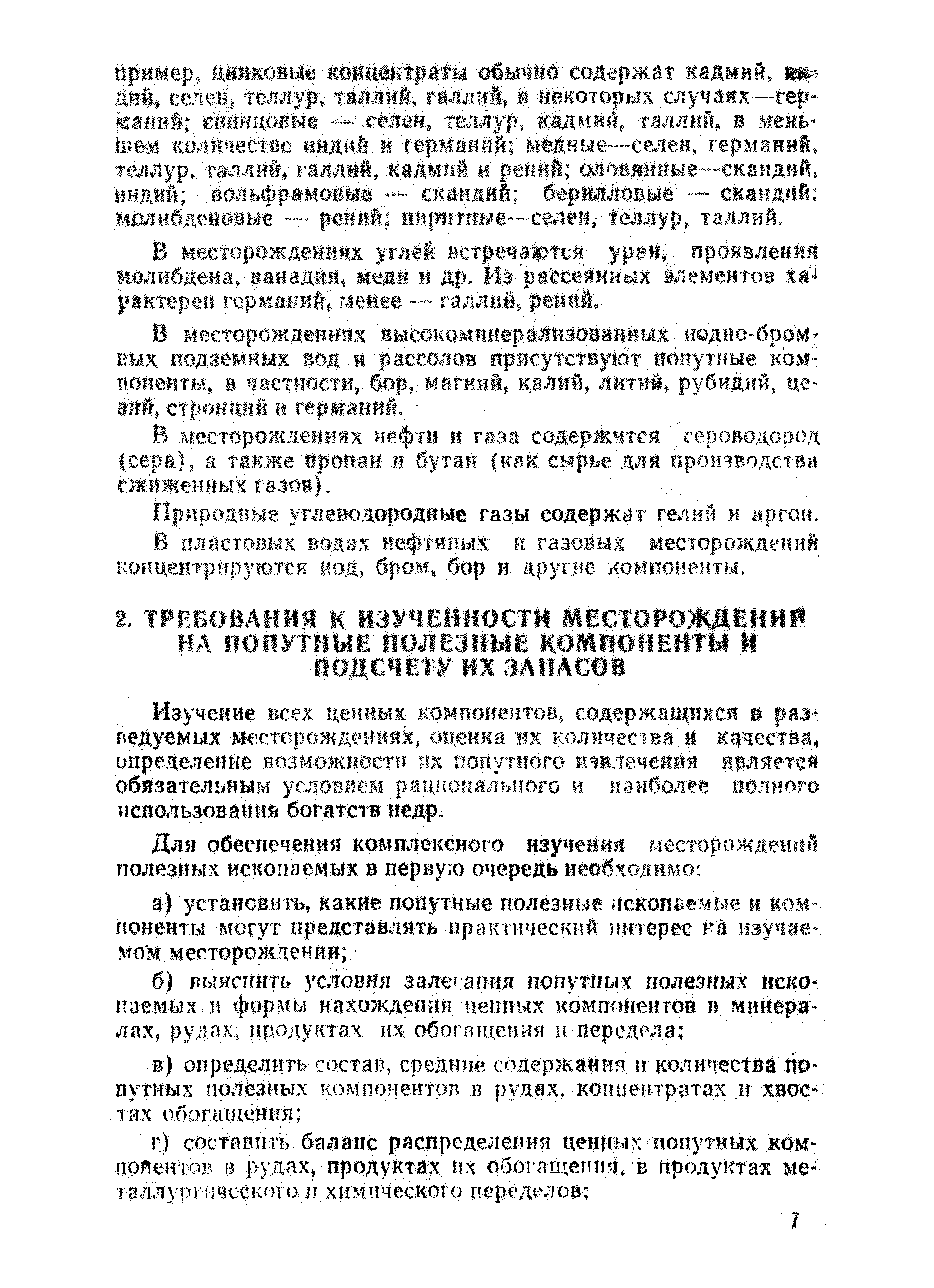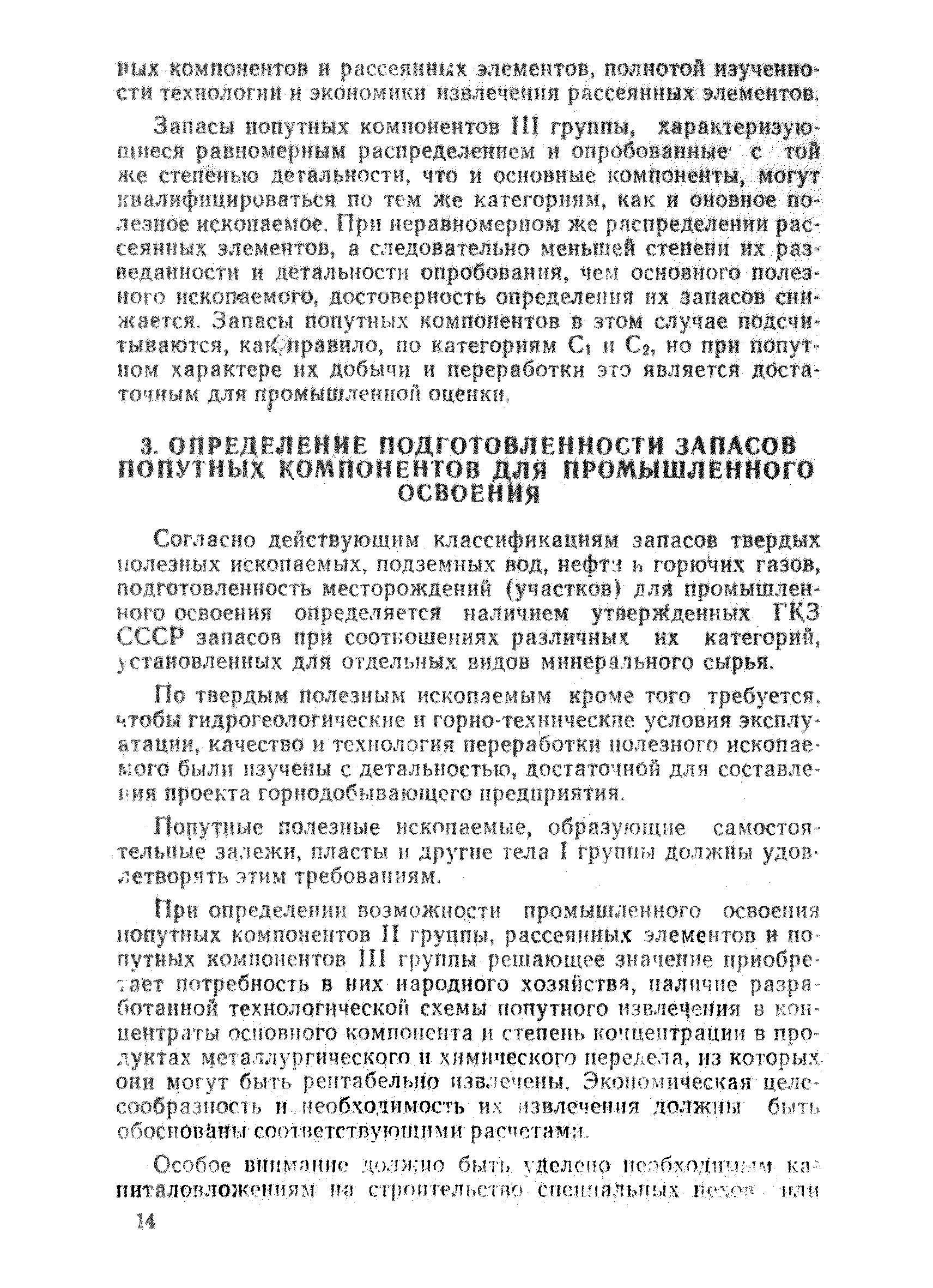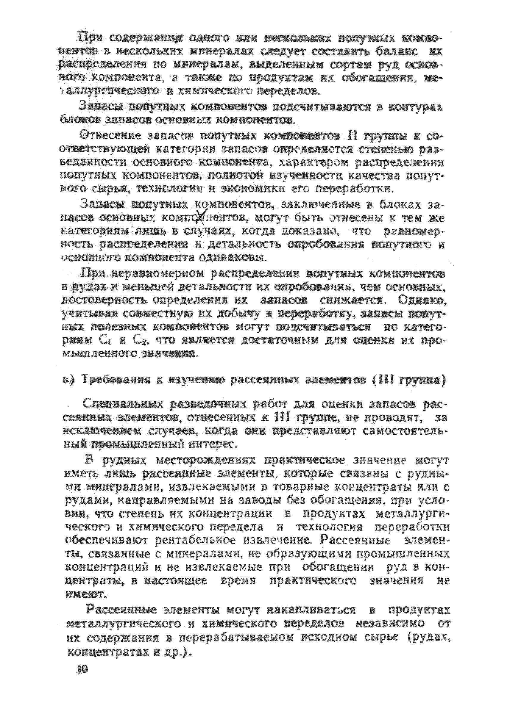 Временные требования к подсчету запасов попутных полезных ископаемых и компонентов в рудах и других видах минерального сырья| Статус: | не действует | | Название рус.: | Временные требования к подсчету запасов попутных полезных ископаемых и компонентов в рудах и других видах минерального сырья | | Дата добавления в базу: | 01.01.2018 | | Дата актуализации: | 01.01.2021 | | Оглавление: | Предисловие 1 Группировка попутных полезных компонентов I группа II группа III группа 2 Требования к изученности месторождений на попутные полезные компоненты и подсчету их запасов I группа II группа III группа 3 Определение подготовленности запасов попутных компонентов для промышленного освоения 4 Оформление материалов подсчета запасов попутных компонентов, представляемых на утверждение ГКЗ СССР 5 Приложение. Таблица предельно допустимых средних случайных погрешностей химических анализов проб на редкие и рассеянные элементы | | Утверждён: | 22.11.1973 ГКЗ СССР (USSR GKZ )