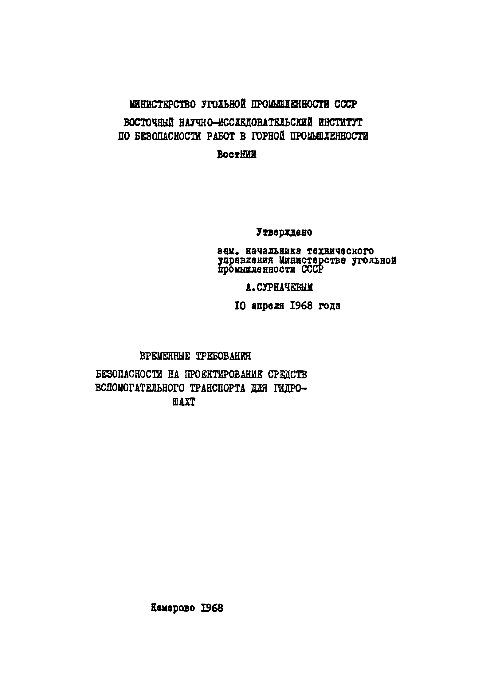 | Утверждён: | 10.04.1968 Министерство угольной промышленности СССР (USSR Ministry of the Coal Industry )