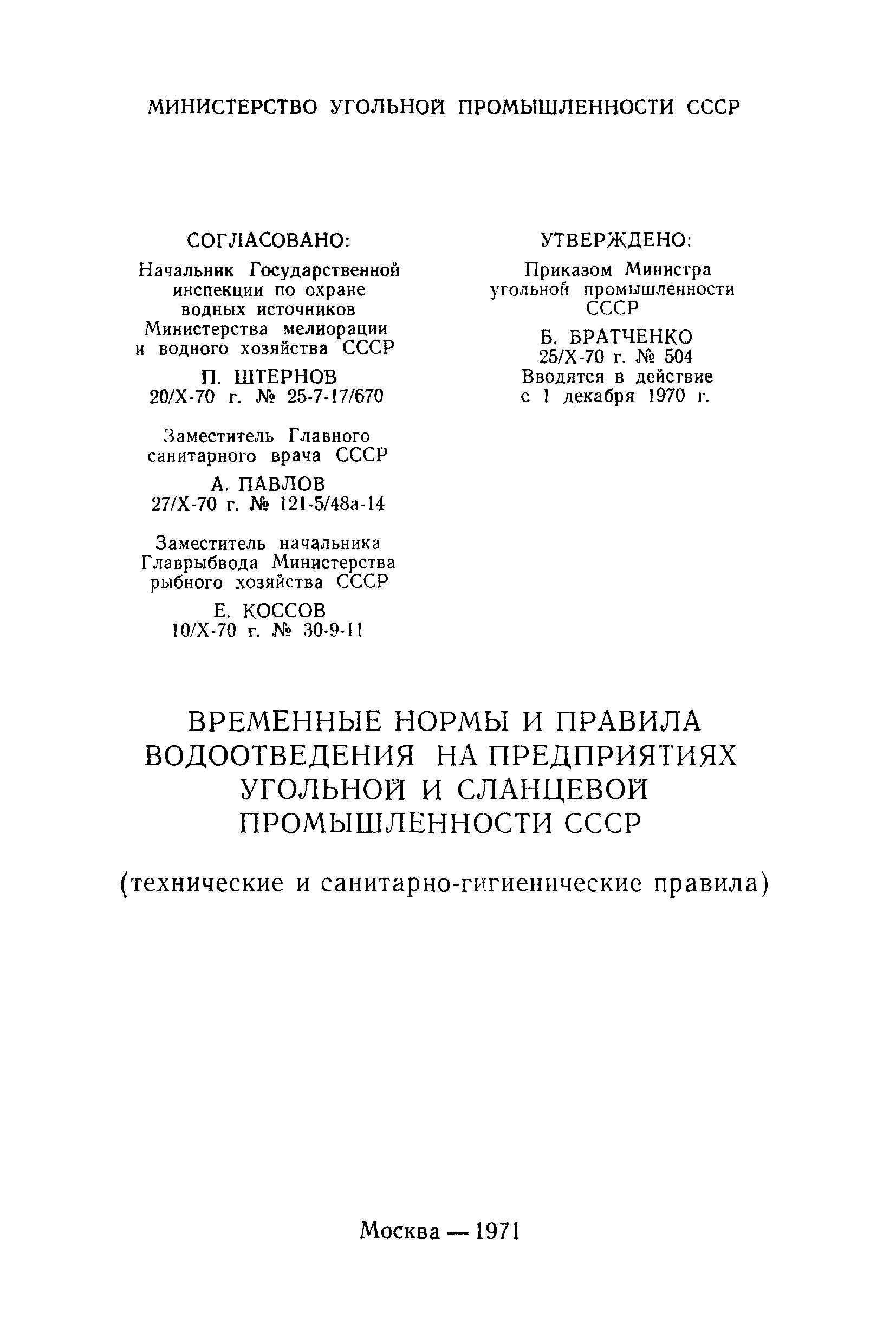 | Утверждён: | 25.10.1970 Министерство угольной промышленности СССР (USSR Ministry of the Coal Industry 504)