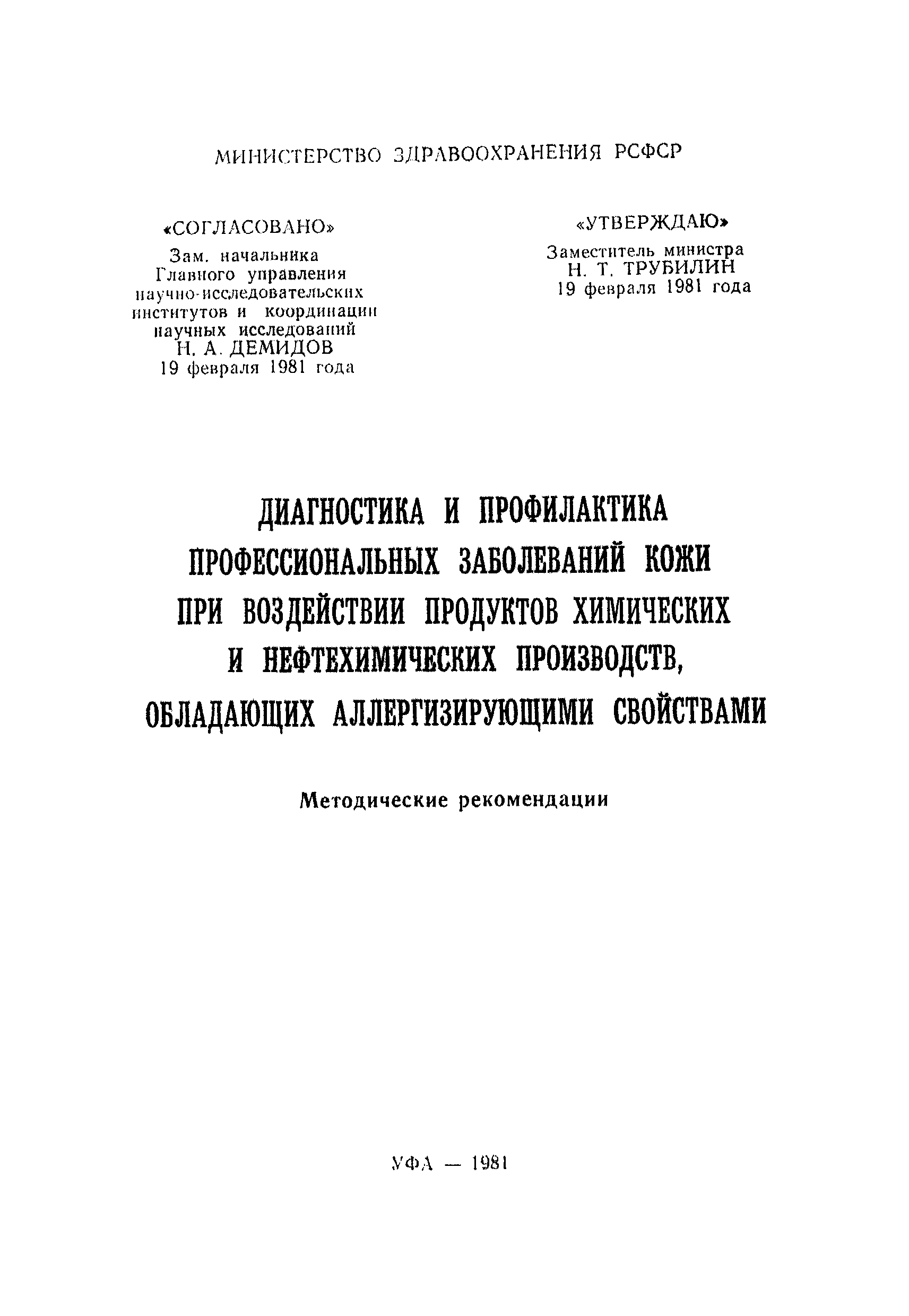 | Утверждён: | 19.02.1981 Министерство здравоохранения СССР (USSR Ministry of Health Care )