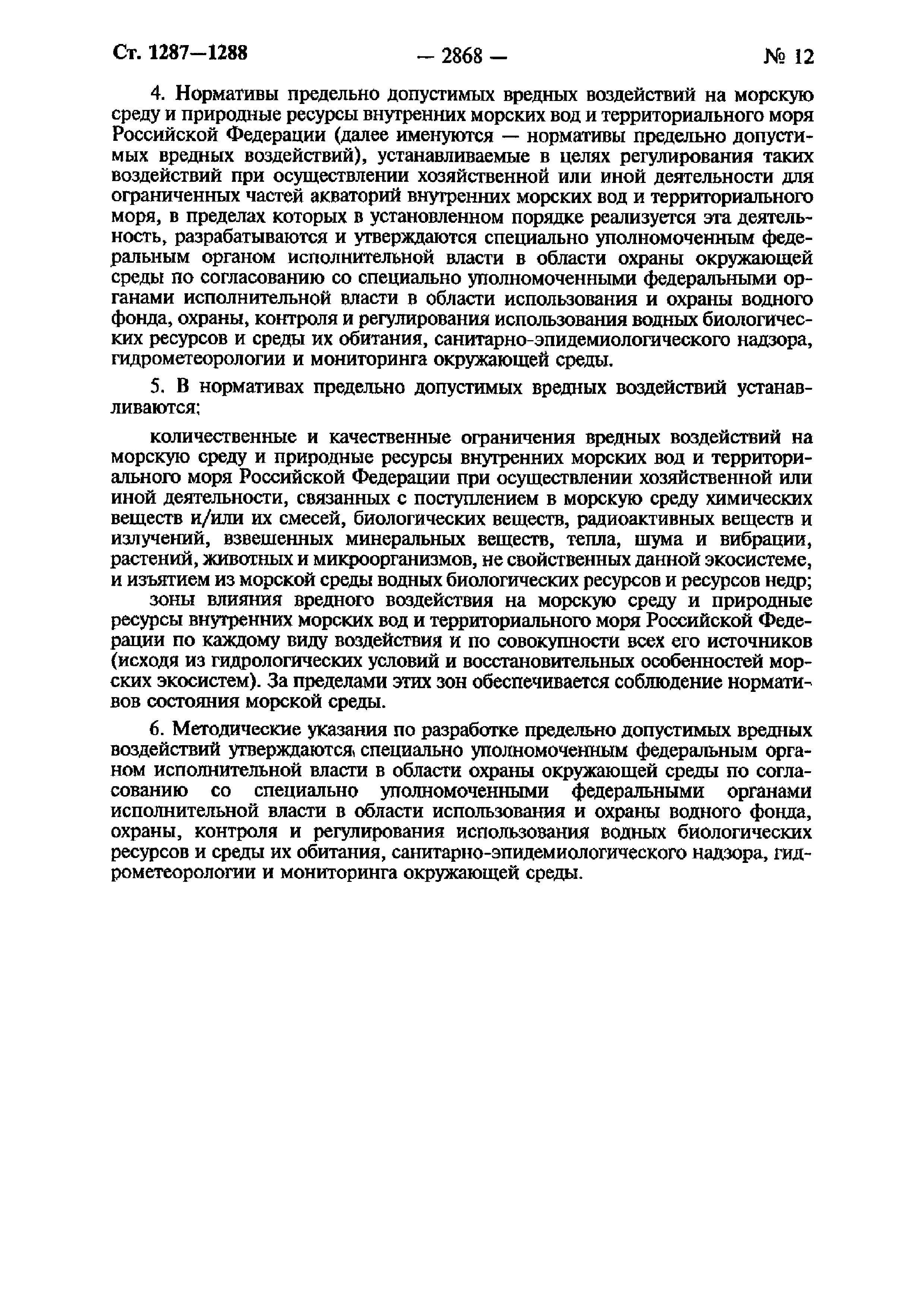 | Область применения: | Правила устанавливают порядок разработки и утверждения нормативов предельно допустимых концентраций вредных веществ и предельно допустимых вредных воздействий на морскую среду и природные ресурсы внутренних морских вод и территориального моря Российской Федерации при осуществлении хозяйственной и иной деятельности |
