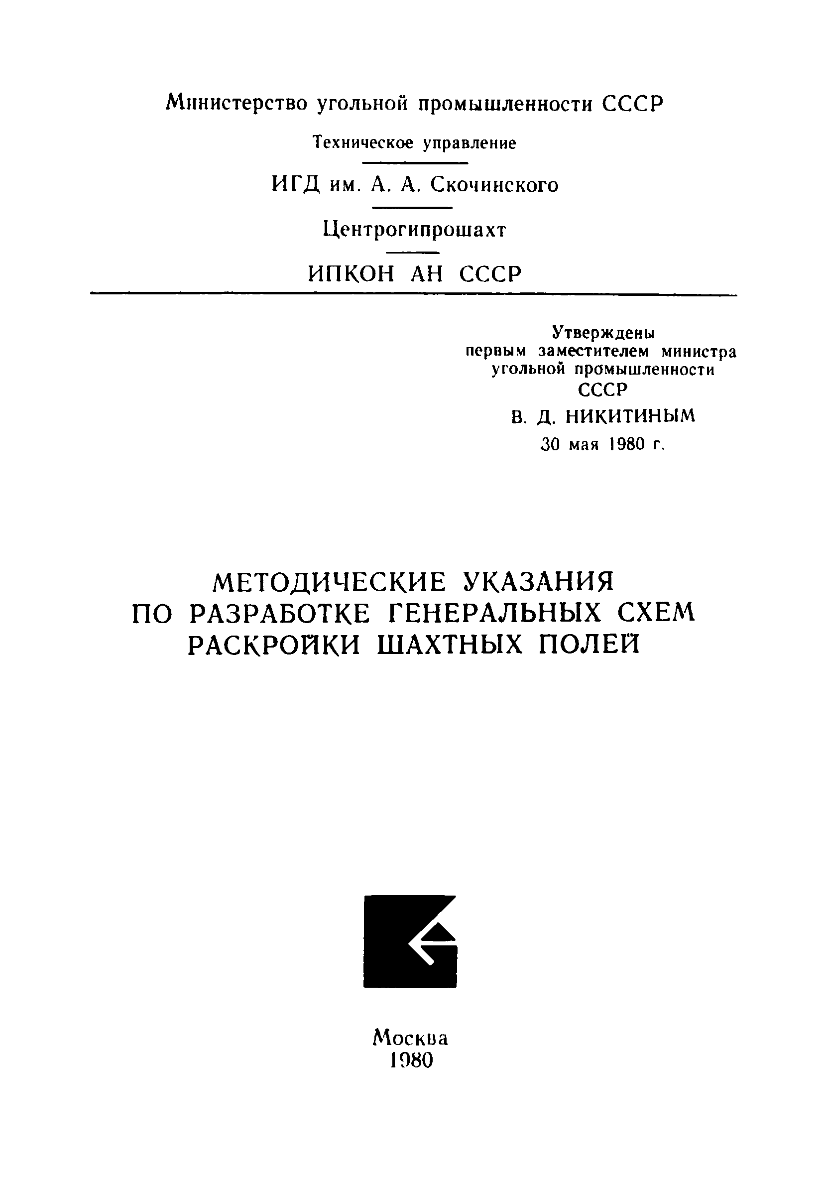| Утверждён: | 30.05.1980 Министерство угольной промышленности СССР (USSR Ministry of the Coal Industry )