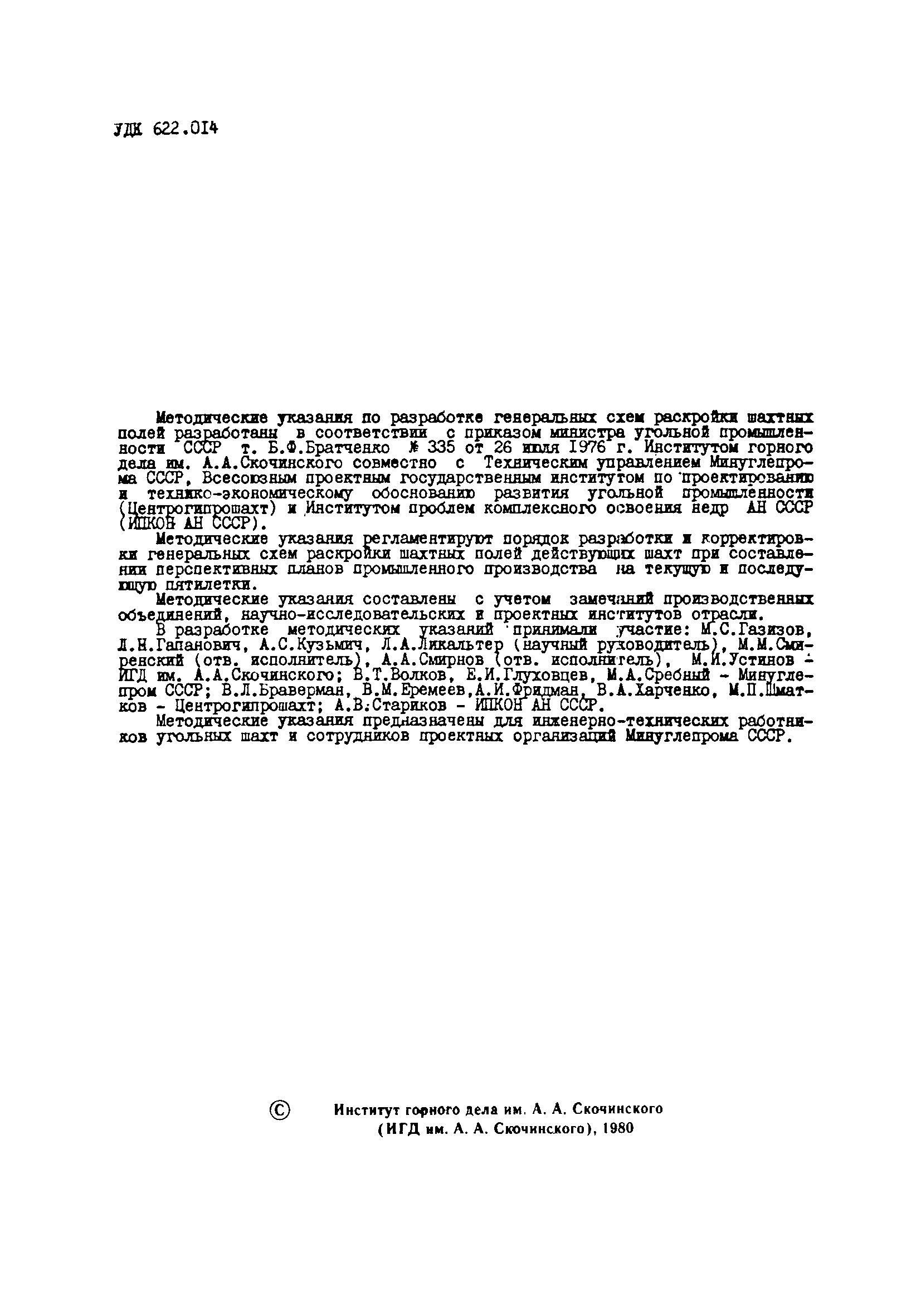 | Разработан: | ИПКОН АН СССР Центргипрошахт Минуглепрома СССР ИГД им. А.А. Скочинского