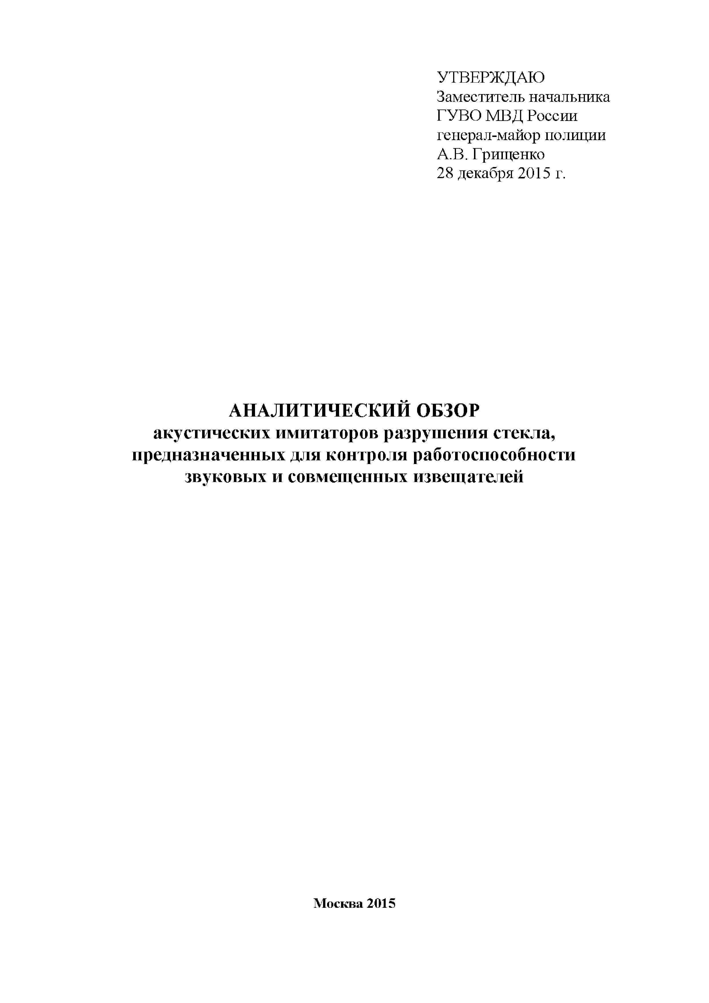 | Утверждён: | 28.12.2015 ГУВО МВД России (Security Guard Service Administration at the Russian Federation Ministry of Internal Affairs ) |