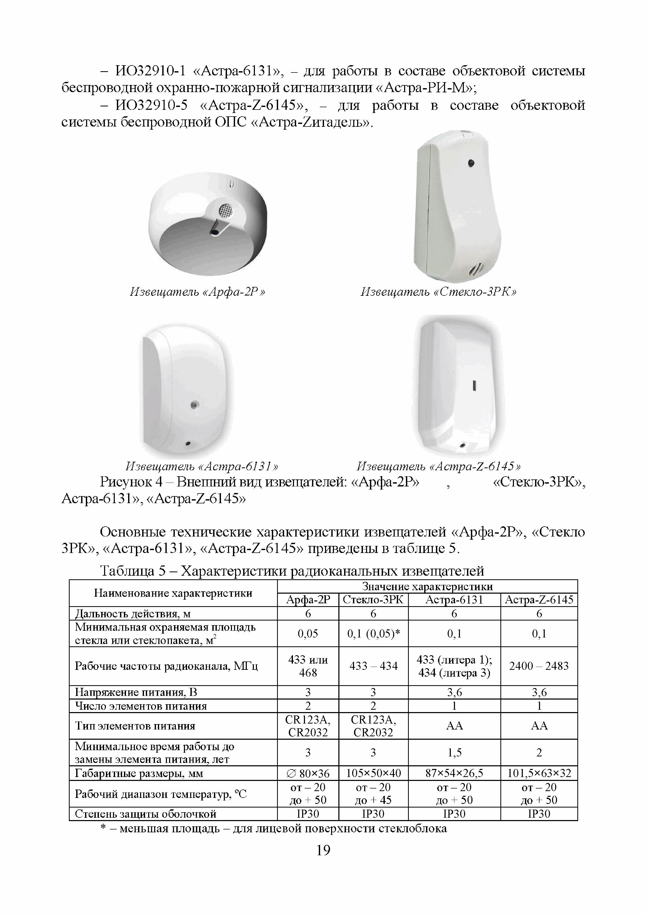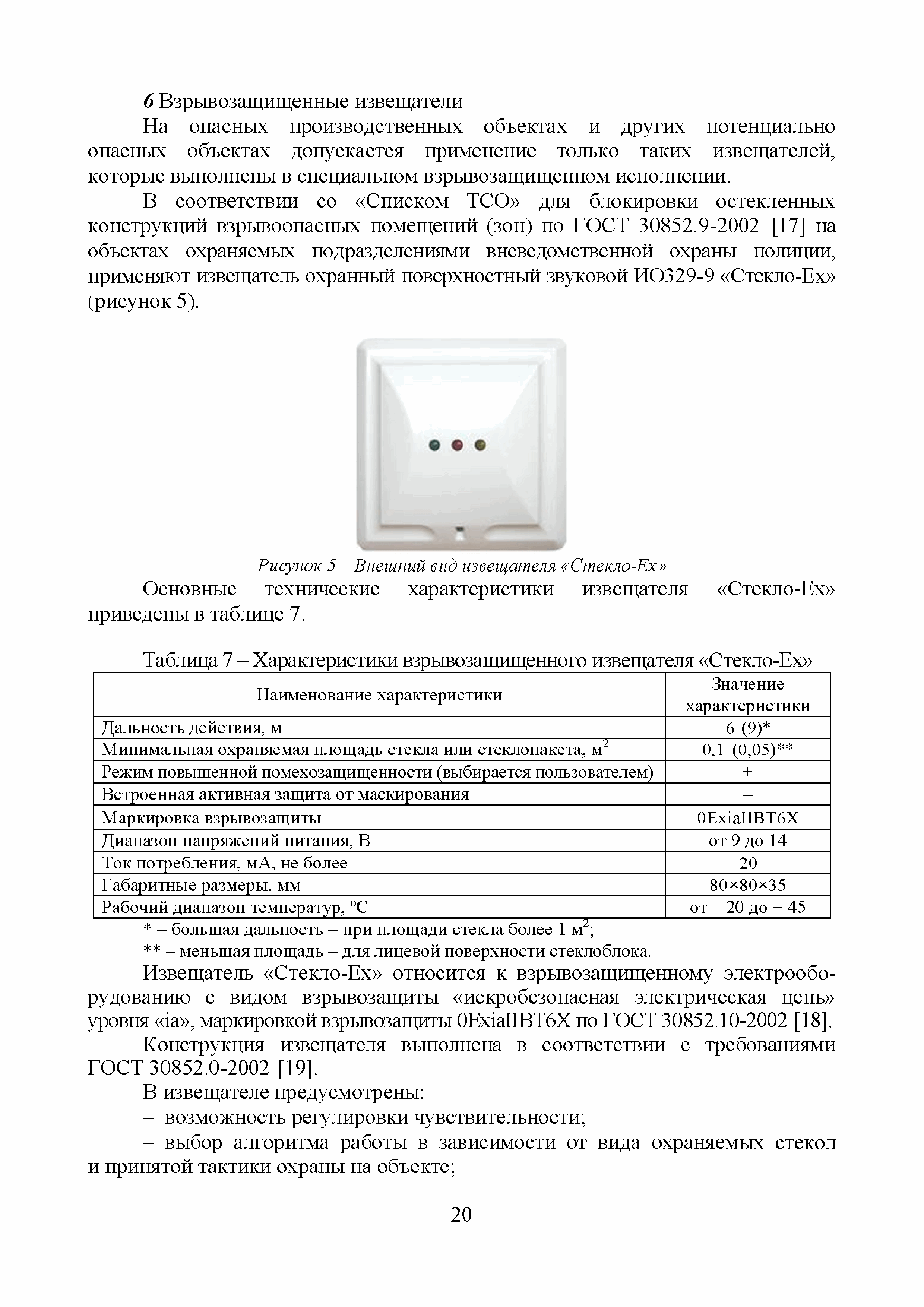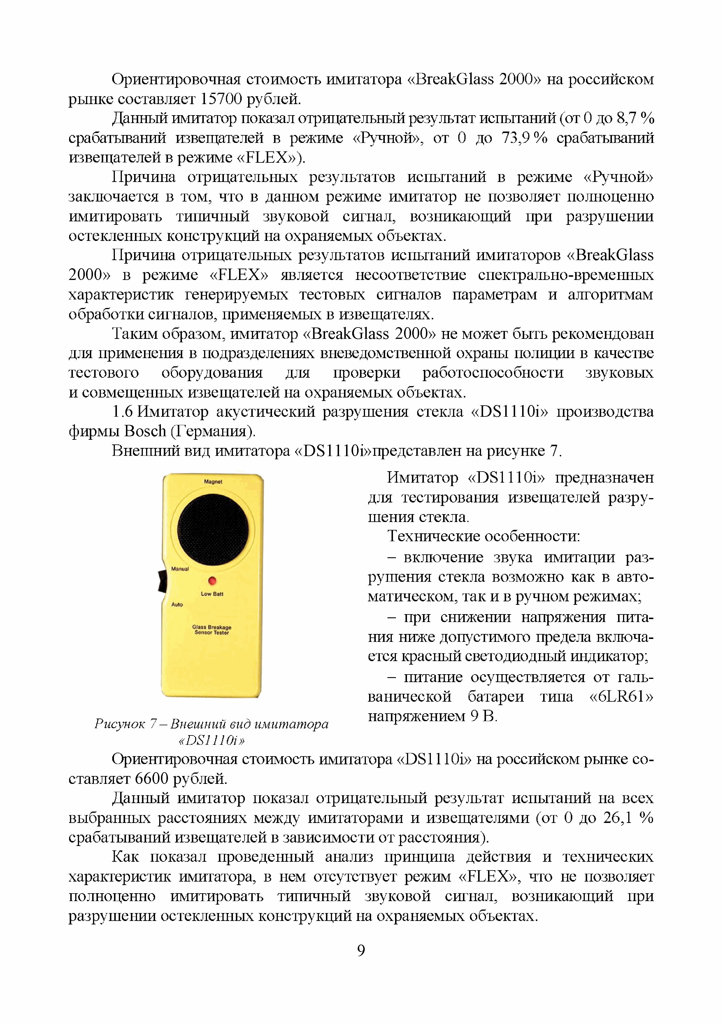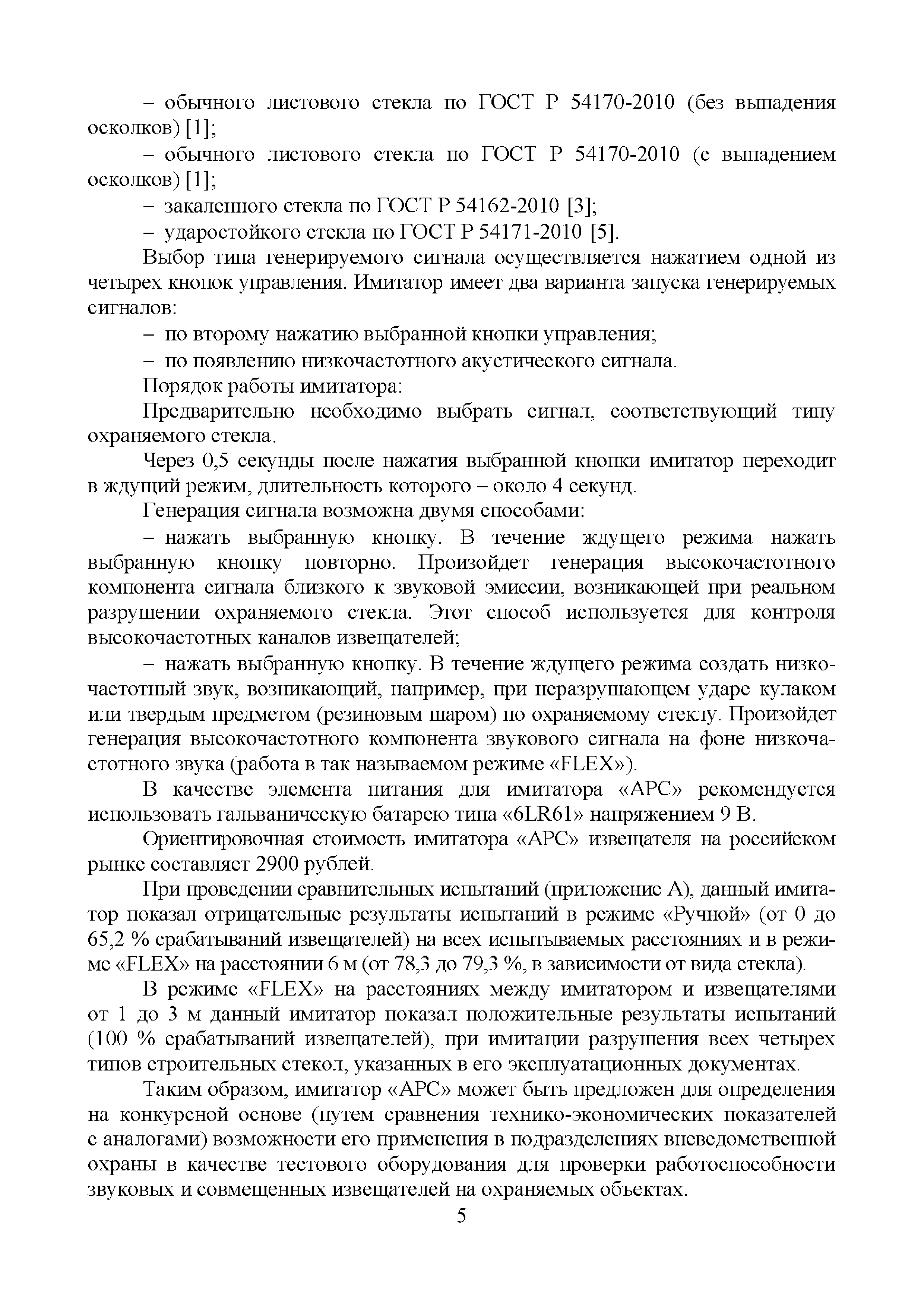 | Оглавление: | Введение 1 Результаты информационных (поисковых) исследований акустических имитаторов разрушения стекла, представленных на российском рынке систем безопасности 2 Выводы по результатам проведенных сравнительных испытаний акустических имитаторов разрушения стекла, предназначенных для контроля работоспособности звуковых и совмещенных извещателей Приложение А. Обзорная информация о звуковых и совмещенных извещателях, включенных в "Список ТСО", используемых для обнаружения разрушения стеклянных поверхностей. 1 Извещатели с электропитанием от источника постоянного тока и проводным универсальным (неадресным) интерфейсом 2 Извещатели с электропитанием от источника постоянного тока, проводным универсальным интерфейсом и с функцией антимаскирования 3 Извещатели с электропитанием от шлейфа сигнализации (ШС) и проводным неадресным интерфейсом 4 Извещатели с электропитанием от ШС ППК и проводным адресным интерфейсом 5 Извещатели с электропитанием от автономных источников и беспроводным (радиоканальным) адресным интерфейсом 6 Взрывозащищенные извещатели 7 Охранные совмещенные извещатели (звуковые и оптико-электронные) Протокол сравнительных испытаний акустических имитаторов разрушения стекла, предназначенных для контроля работоспособности звуковых и совмещенных извещателей 1 Объекты испытаний 2 Место и время проведения испытаний 3 Методика проведения испытаний 4 Результаты проведенных испытаний 6 Выводы по результатам испытаний Приложение А (справочное). Внешний вид стенда и имитаторов |