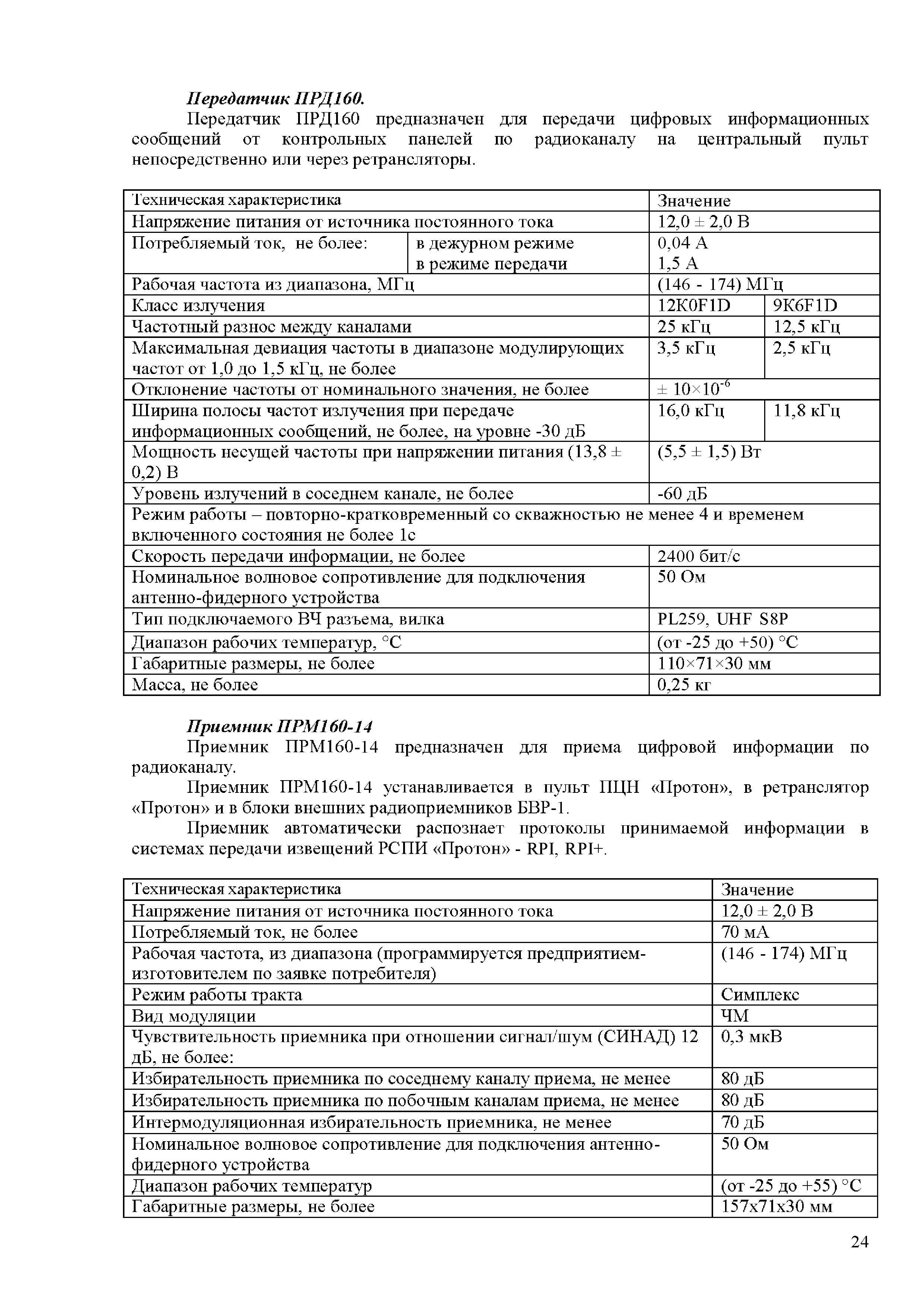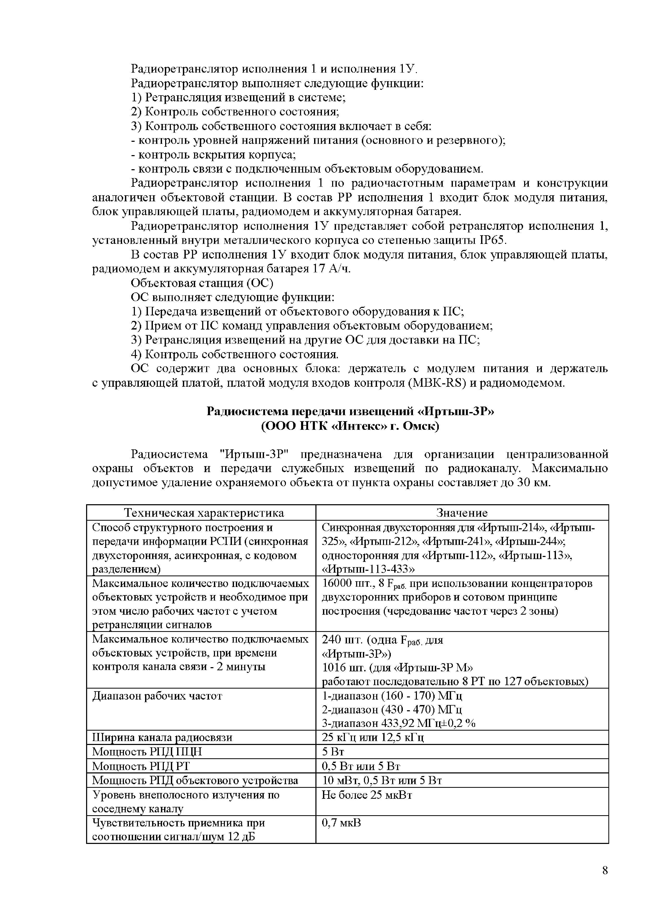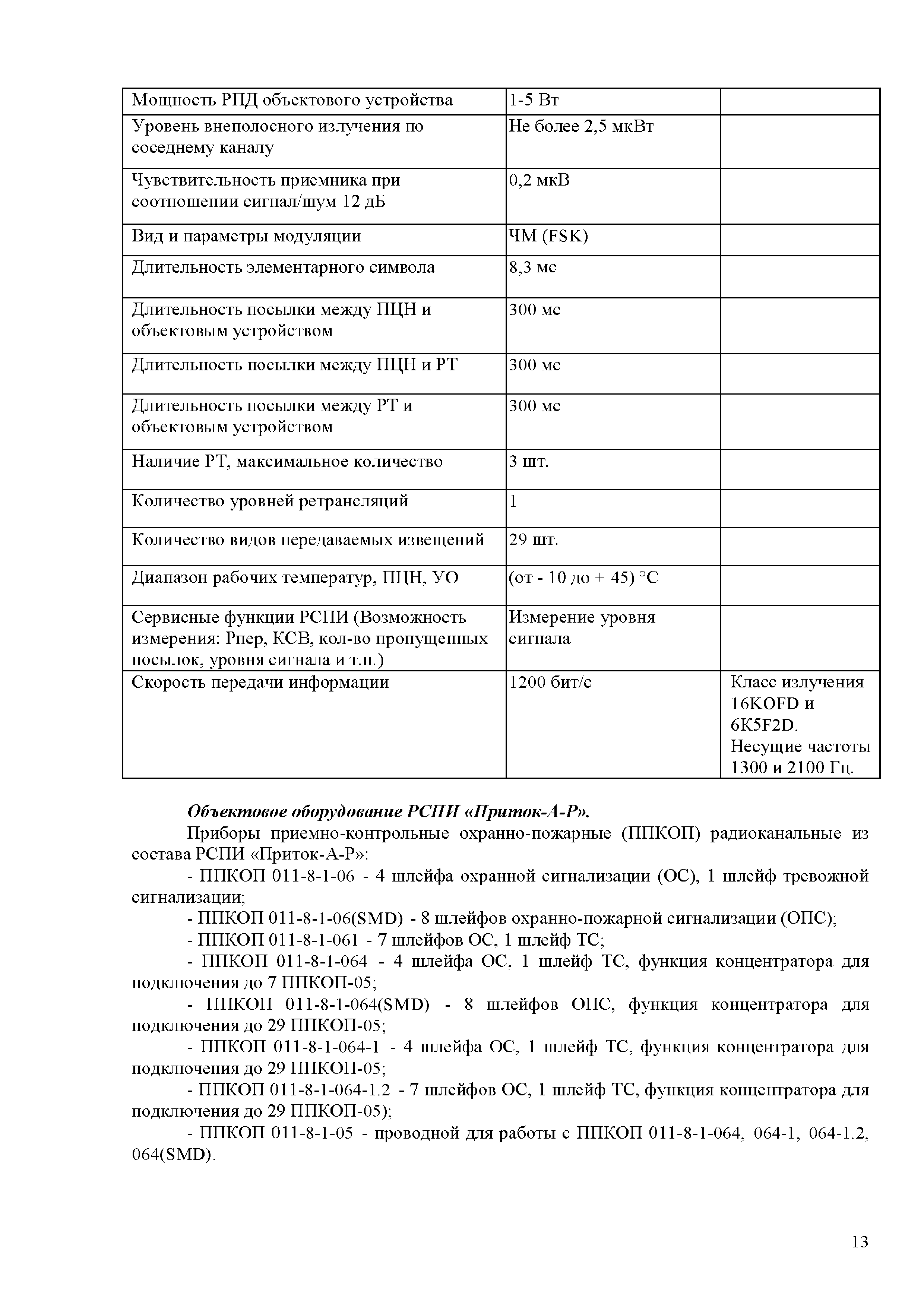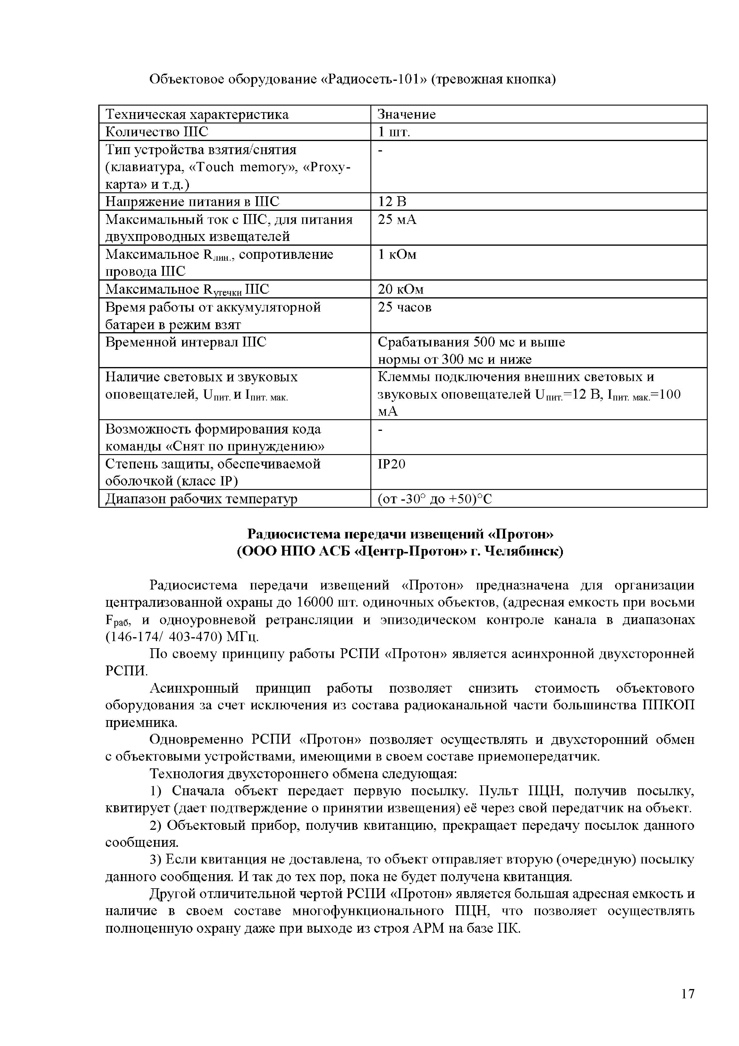 Аналитический обзор "Модернизация серийно выпускаемых радиоканальных систем передачи извещений (РСПИ), а также подсистем с использованием каналов сотовой связи"| Статус: | действует | | Название рус.: | Аналитический обзор "Модернизация серийно выпускаемых радиоканальных систем передачи извещений (РСПИ), а также подсистем с использованием каналов сотовой связи" | | Дата добавления в базу: | 01.01.2018 | | Дата актуализации: | 01.01.2021 | | Область применения: | Целью аналитического обзора является проведение сравнения основных тактико-технических характеристик, применяемых РСПИ, и выработка предложений по модернизации данного вида оборудования. | | Оглавление: | Введение Обзор радиоканальных систем передачи извещений, применяемые в подразделениях вневедомственной охране полиции Радиосистема передачи извещений "Струна-5" (ЗАО НПФ "Интеграл +", г. Казань) Радиосистема передачи извещений "Стрелец-Аргон" (Фирма-производитель ЗАО "Аргус-Спектр" г. С-Петербург) Радиосистема передачи извещений "Иртыш-3Р" (ООО НТК "Интекс" г. Омск) Радиосистема передачи извещений "Приток-А-Р" (ООО "Охранное бюро Сократ" г. Иркутск) Радиосистема передачи извещений "Радиосеть" (НПП АСБ "Рекорд" г. Александров) Радиосистема передачи извещений "Протон" (ООО НПО АСБ "Центр-Протон»" г. Челябинск) Обобщенные технические характеристики РСПИ Заключение | | Разработан: | ФКУ НИЦ Охрана МВД России