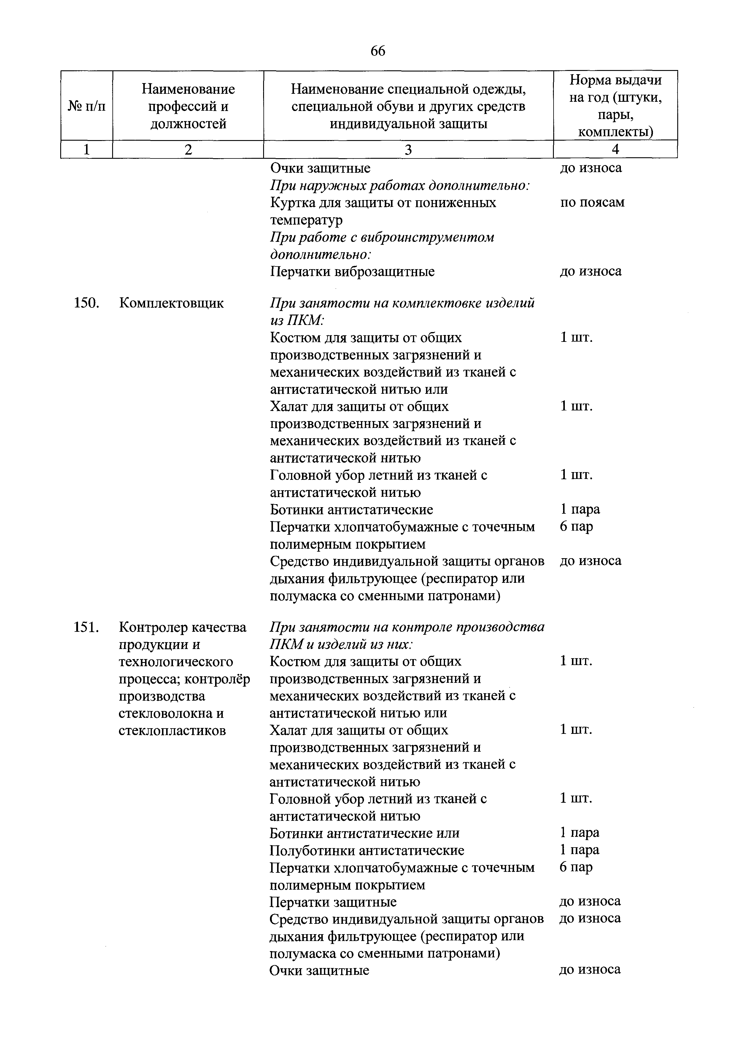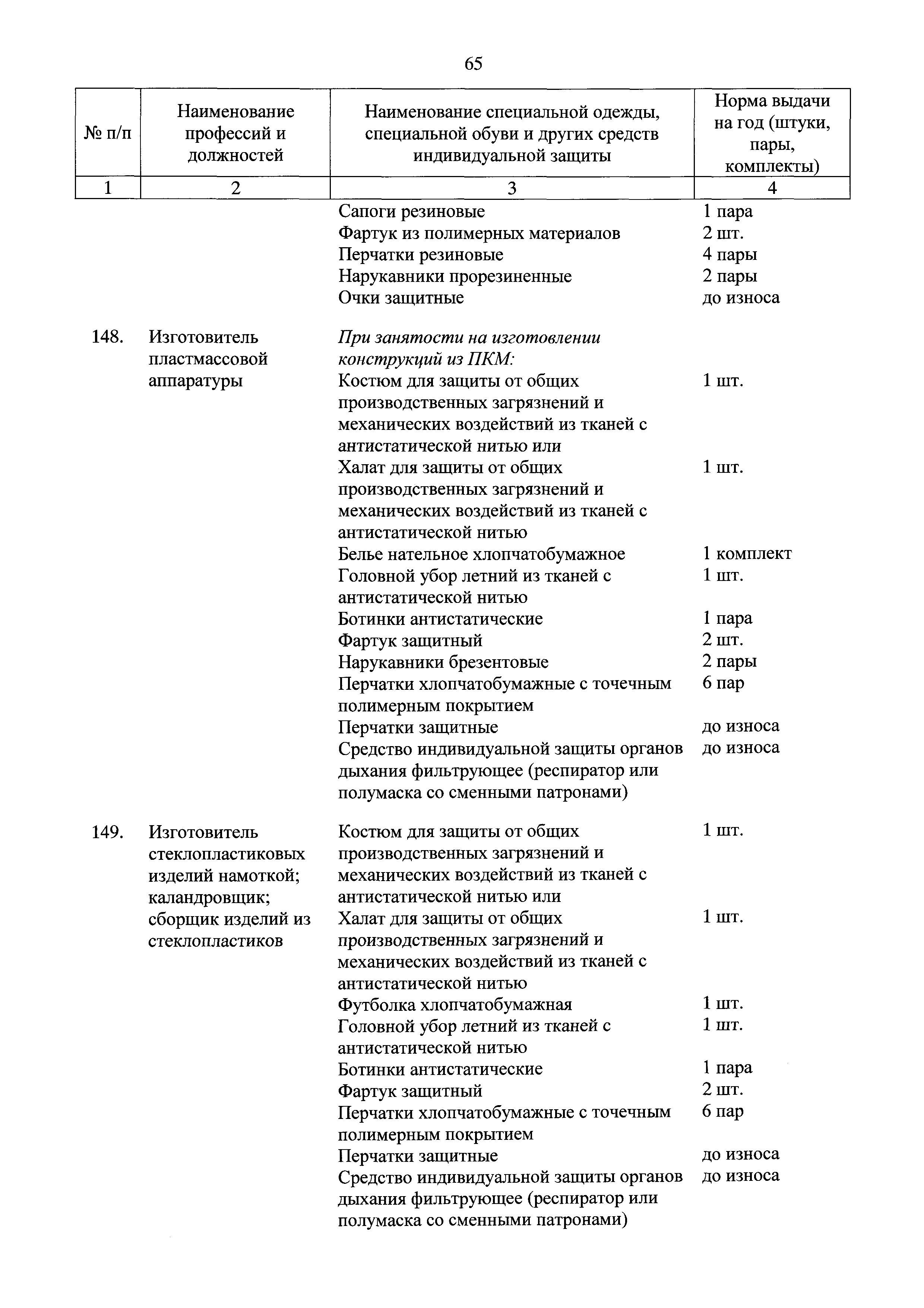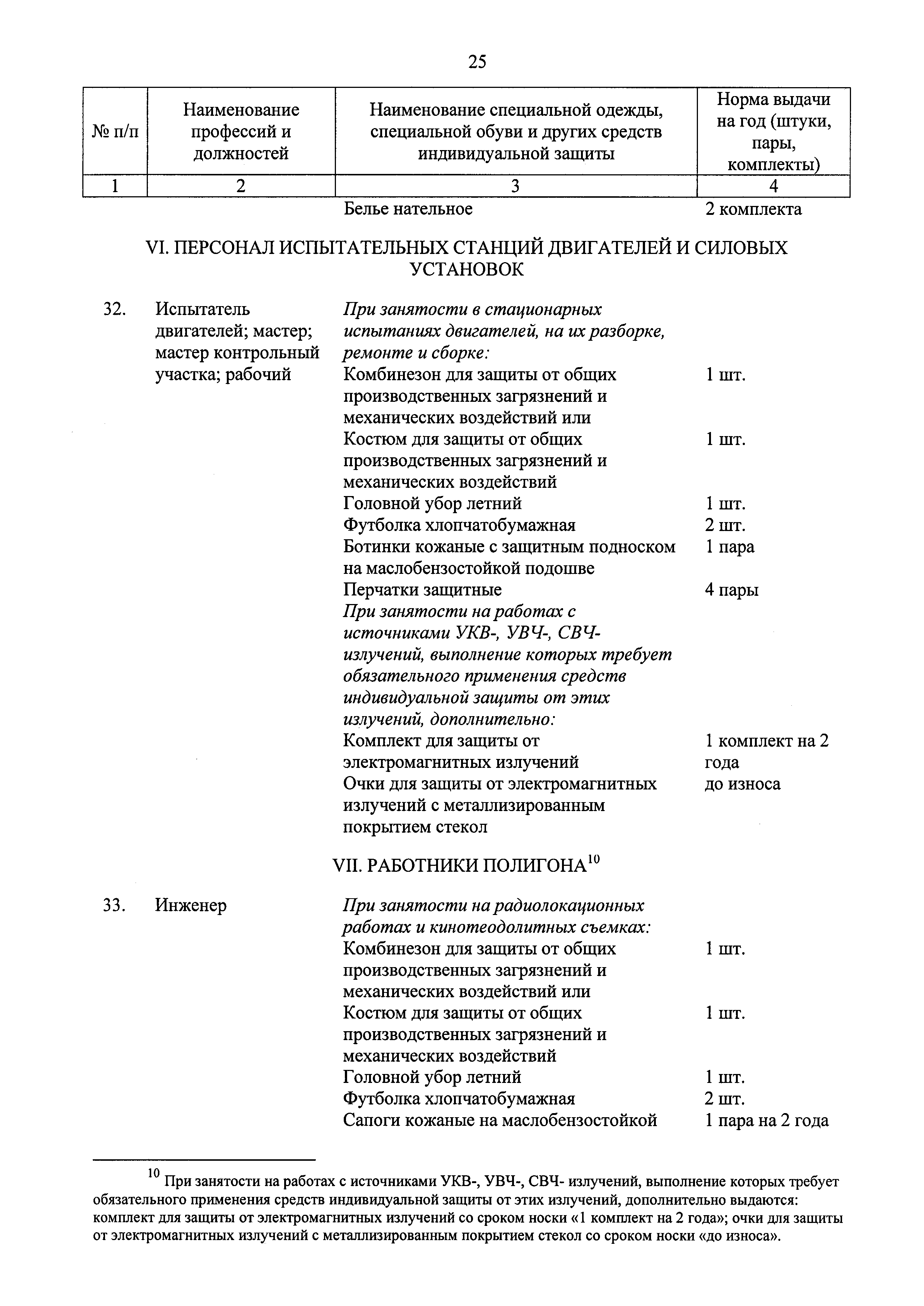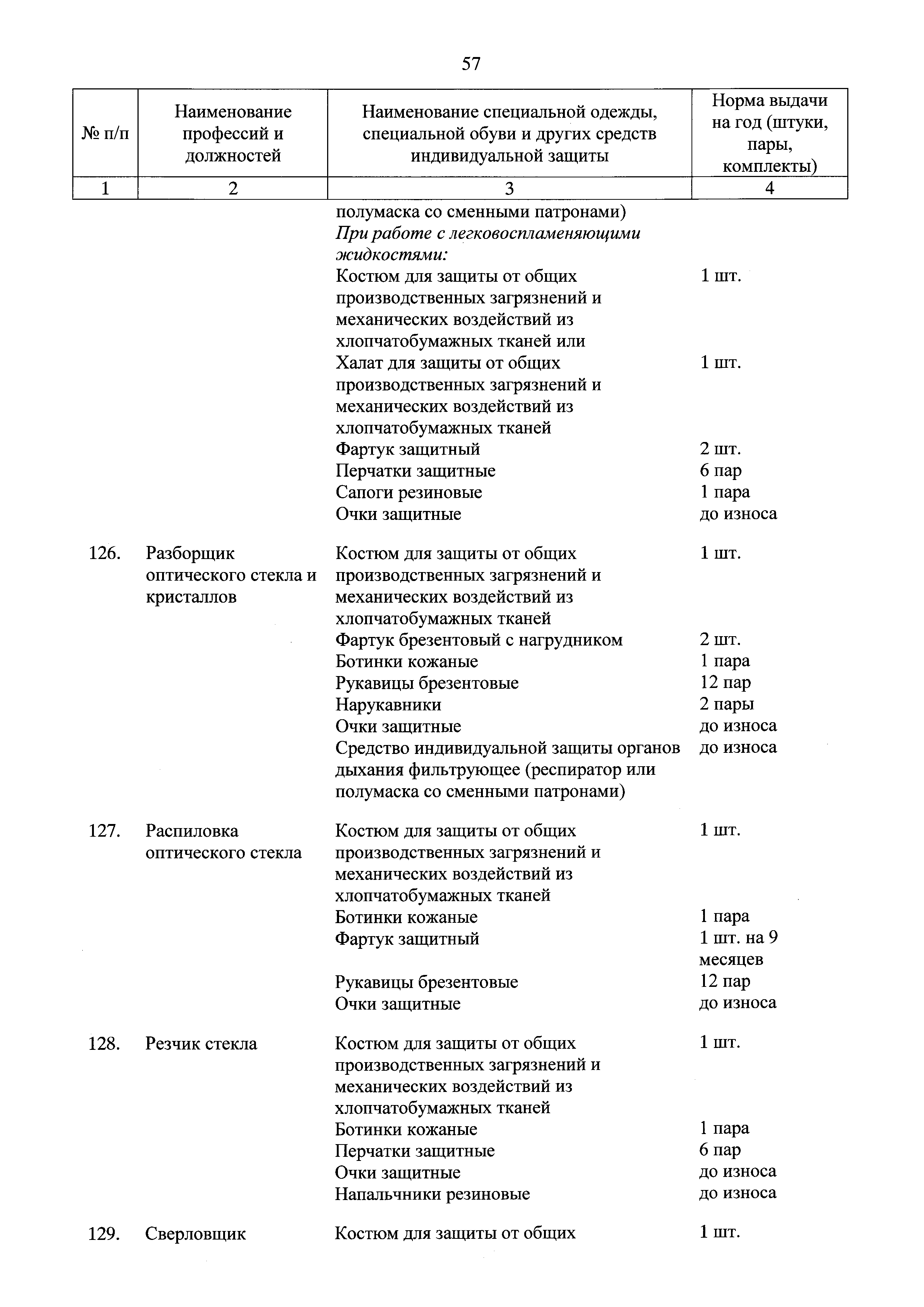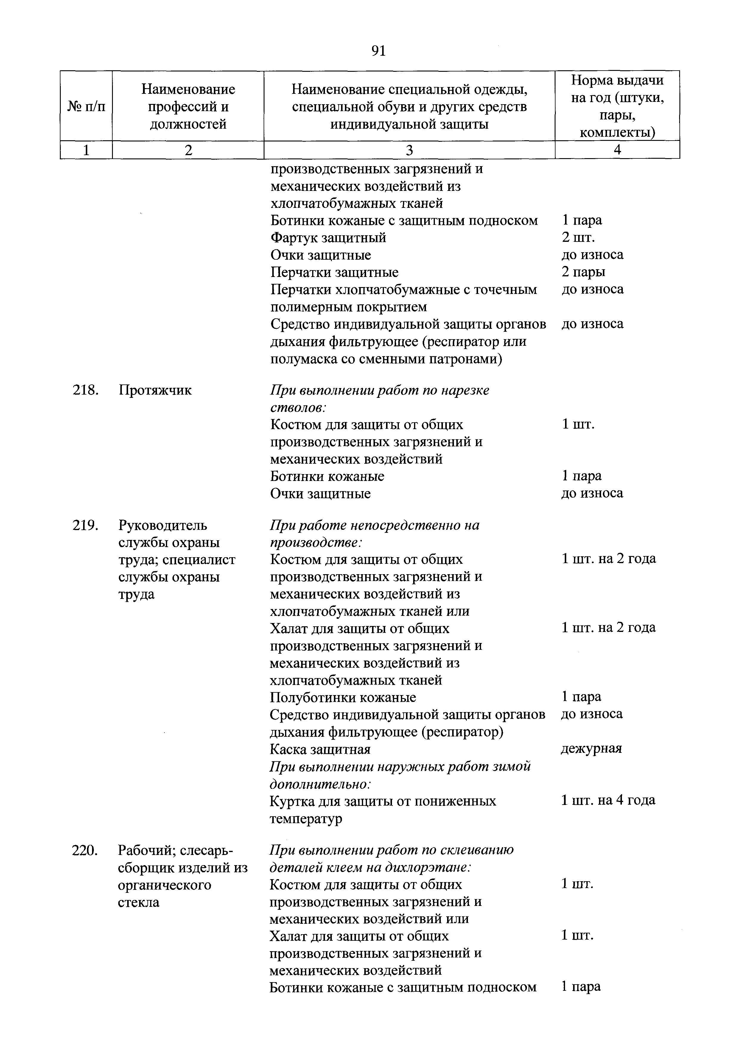 Типовые нормы бесплатной выдачи специальной одежды, специальной обуви и других средств индивидуальной защиты работникам авиационной промышленности, занятым на работах с вредными и (или) опасными условиями труда, а также на работах, выполняемых в особых температурных условиях или связанных с загрязнением| Статус: | действует | | Название рус.: | Типовые нормы бесплатной выдачи специальной одежды, специальной обуви и других средств индивидуальной защиты работникам авиационной промышленности, занятым на работах с вредными и (или) опасными условиями труда, а также на работах, выполняемых в особых температурных условиях или связанных с загрязнением | | Дата добавления в базу: | 01.01.2018 | | Дата актуализации: | 01.01.2021 | | Дата введения: | 01.12.2017 | | Оглавление: | I. Летный состав II. Инженерно-технический состав III. Испытание авиационной техники IV. Службы эксплуатационного содержания аэродромов (вертодромов) V. Персонал испытательных станций авиационных двигателей VI. Персонал испытательных станций двигателей и силовых установок VII. Работники полигона VIII. Производство мягких баков IX. Производство мипоры X. Подразделения неразрушающего контроля XI. Оптическое стекловарение и оптико-механическое производство 1. Оптическое стекловарение 2. Оптико-механическое производство 3. Общие профессии XII. Производство полимерных композиционных материалов (далее - ПКМ) и изделий из них XIII. Производство печатных плат гальваническим способом XIV. Авиаприборостоение. Сборка приборов для ракетно-космической техники XV. Прочие профессии | | Утверждён: | 19.06.2017 Министерство труда и социальной защиты РФ (507н)