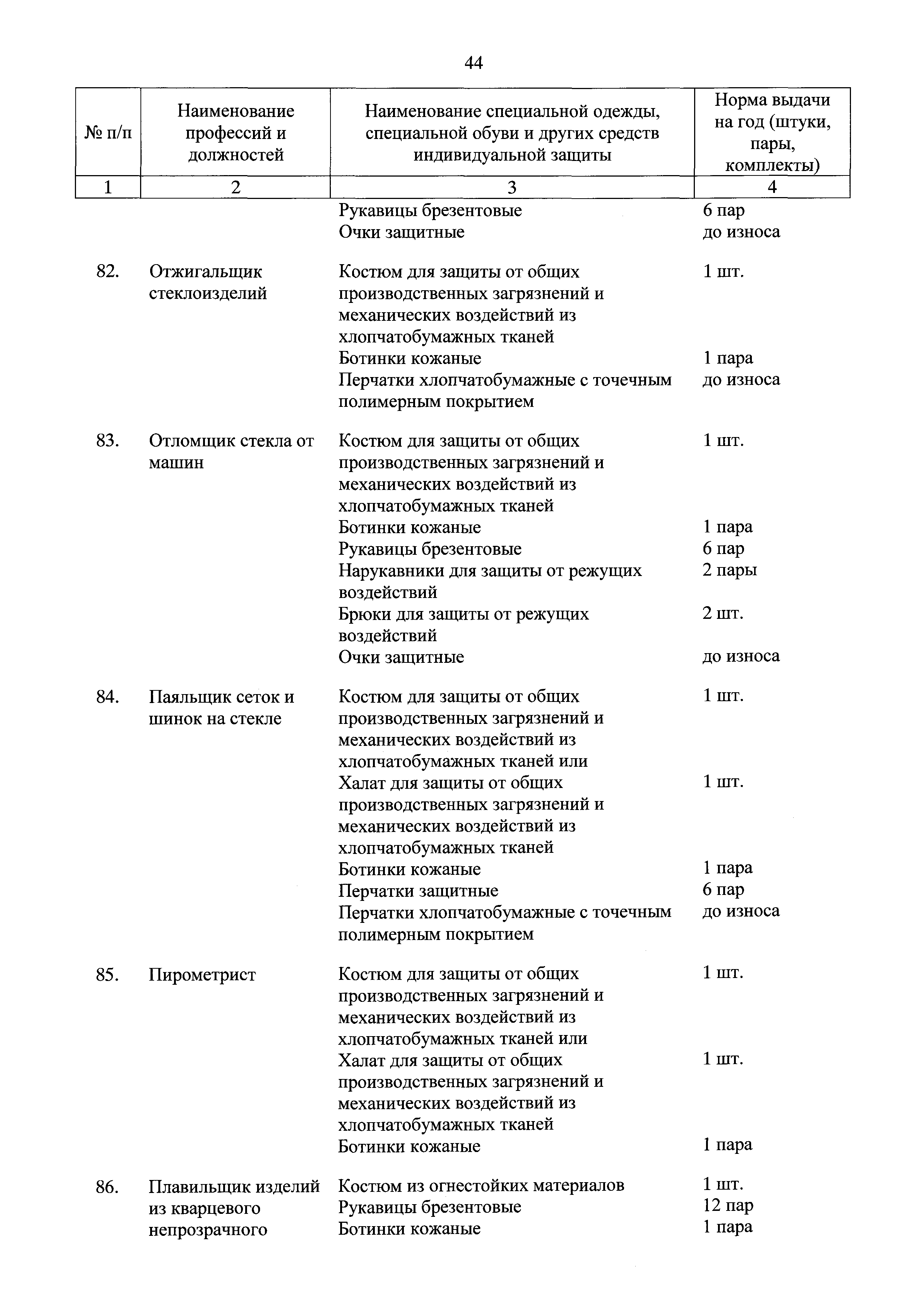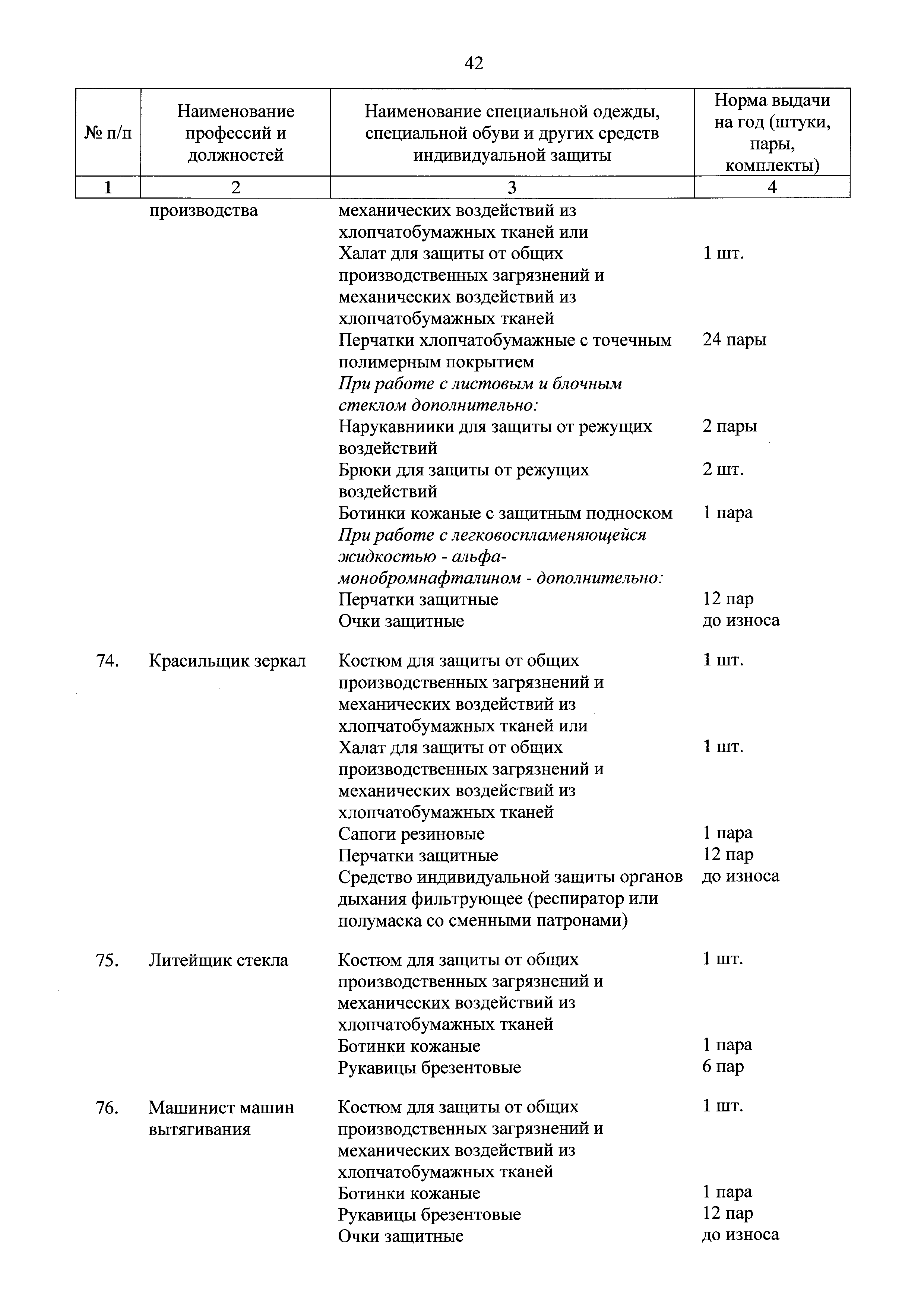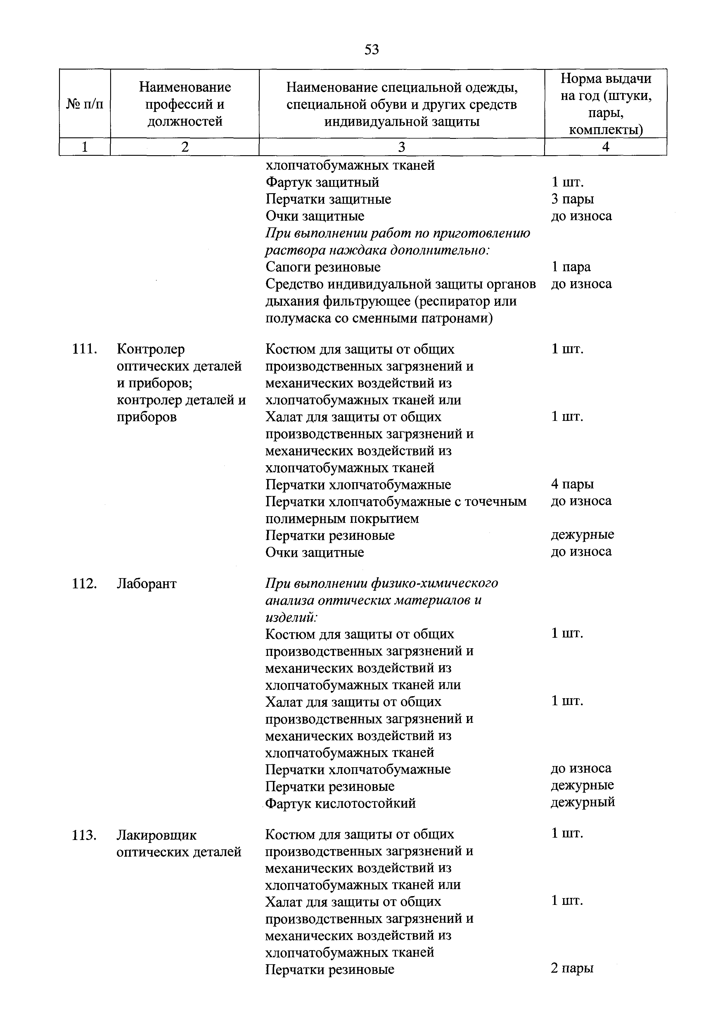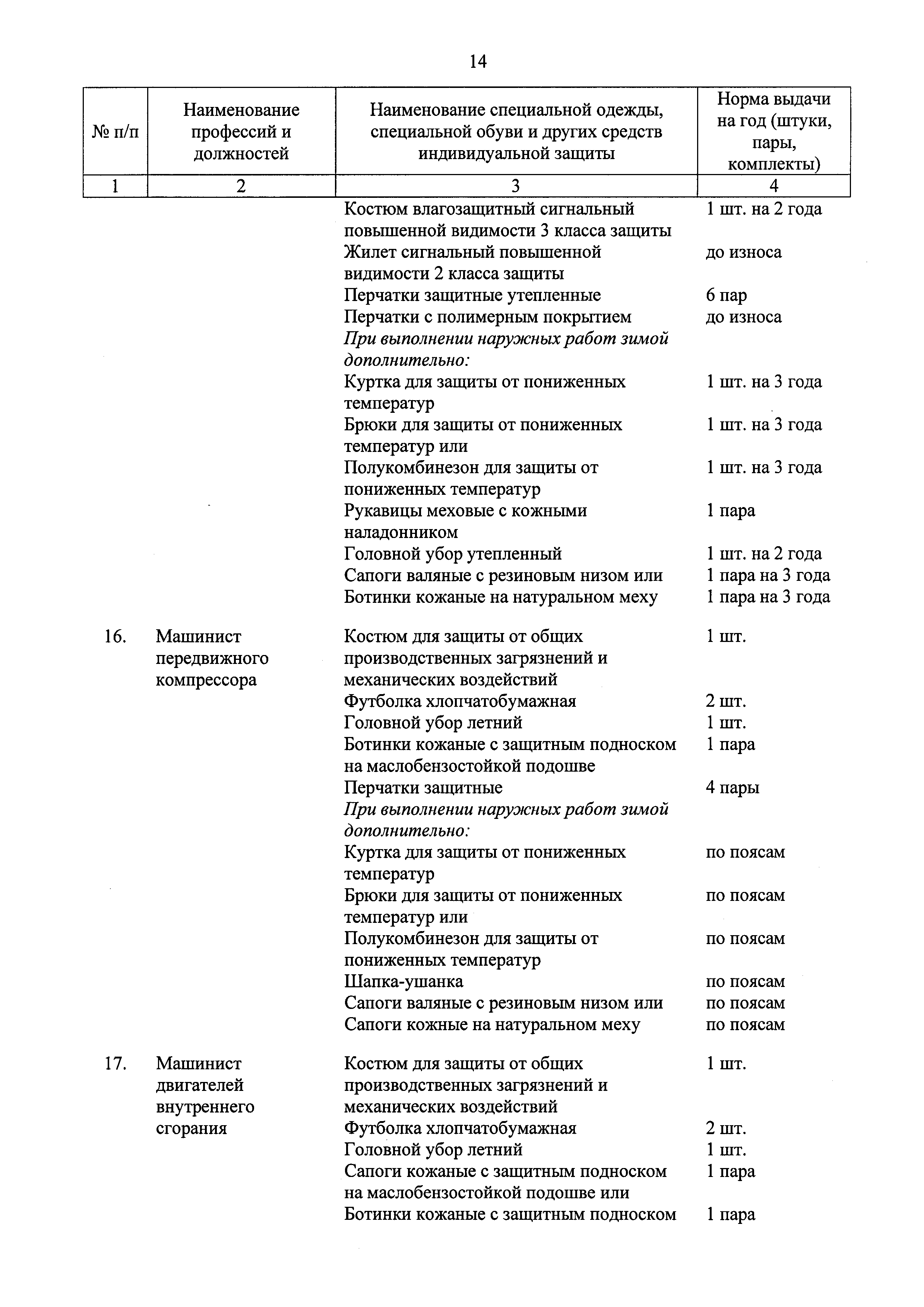 Типовые нормы бесплатной выдачи специальной одежды, специальной обуви и других средств индивидуальной защиты работникам авиационной промышленности, занятым на работах с вредными и (или) опасными условиями труда, а также на работах, выполняемых в особых температурных условиях или связанных с загрязнением| Статус: | действует | | Название рус.: | Типовые нормы бесплатной выдачи специальной одежды, специальной обуви и других средств индивидуальной защиты работникам авиационной промышленности, занятым на работах с вредными и (или) опасными условиями труда, а также на работах, выполняемых в особых температурных условиях или связанных с загрязнением | | Дата добавления в базу: | 01.01.2018 | | Дата актуализации: | 01.01.2021 | | Дата введения: | 01.12.2017 | | Оглавление: | I. Летный состав II. Инженерно-технический состав III. Испытание авиационной техники IV. Службы эксплуатационного содержания аэродромов (вертодромов) V. Персонал испытательных станций авиационных двигателей VI. Персонал испытательных станций двигателей и силовых установок VII. Работники полигона VIII. Производство мягких баков IX. Производство мипоры X. Подразделения неразрушающего контроля XI. Оптическое стекловарение и оптико-механическое производство 1. Оптическое стекловарение 2. Оптико-механическое производство 3. Общие профессии XII. Производство полимерных композиционных материалов (далее - ПКМ) и изделий из них XIII. Производство печатных плат гальваническим способом XIV. Авиаприборостоение. Сборка приборов для ракетно-космической техники XV. Прочие профессии | | Утверждён: | 19.06.2017 Министерство труда и социальной защиты РФ (507н)