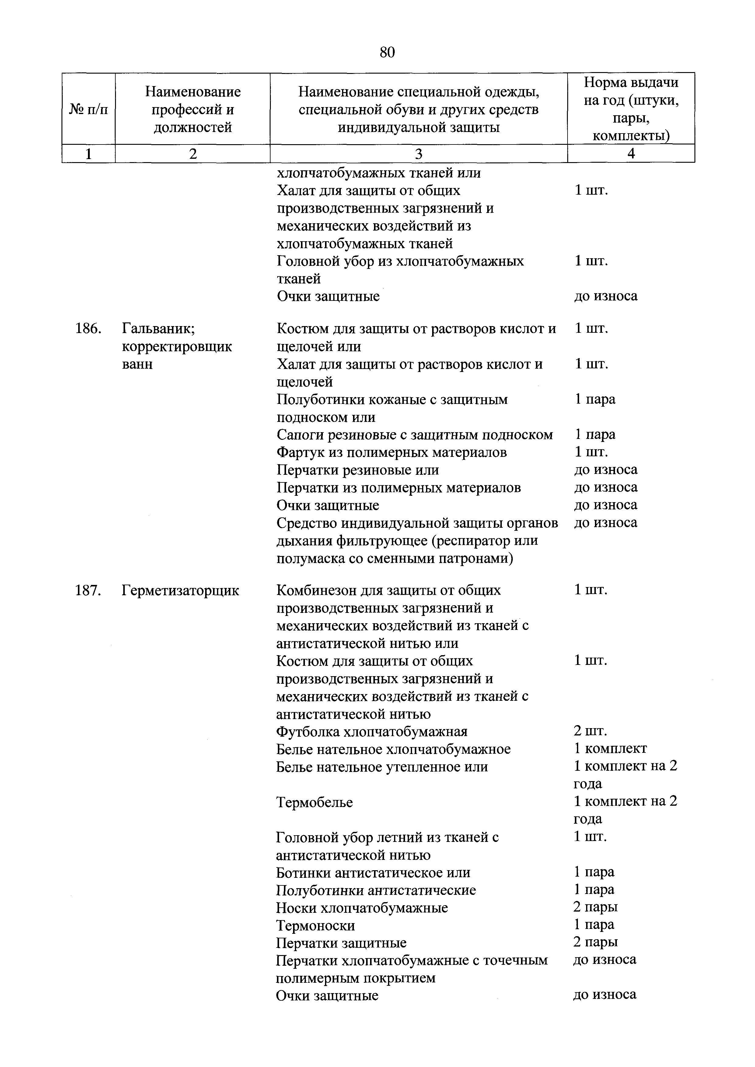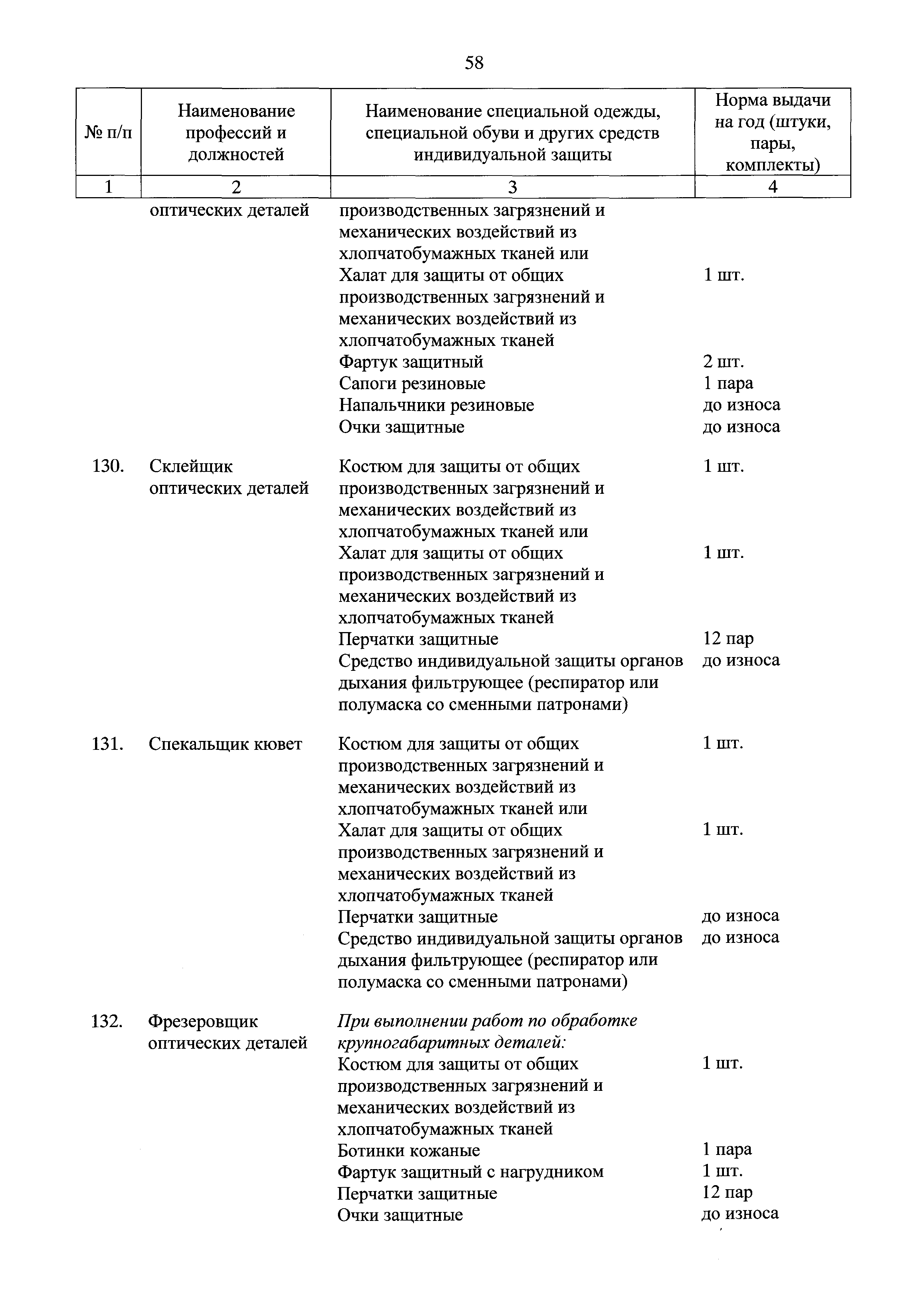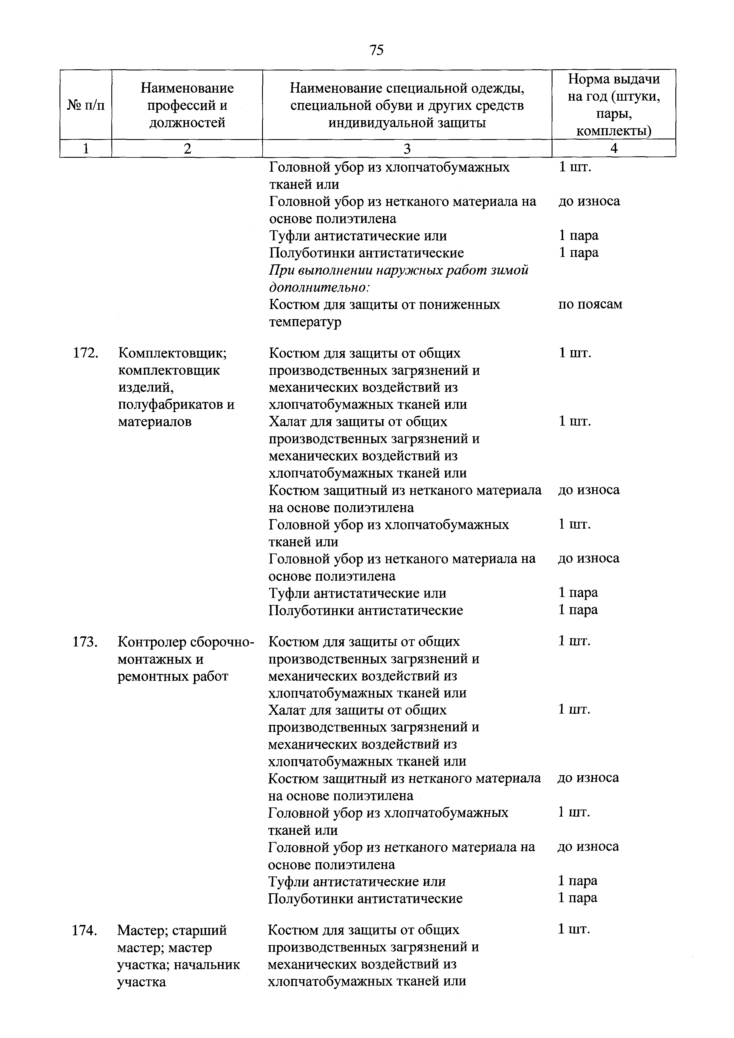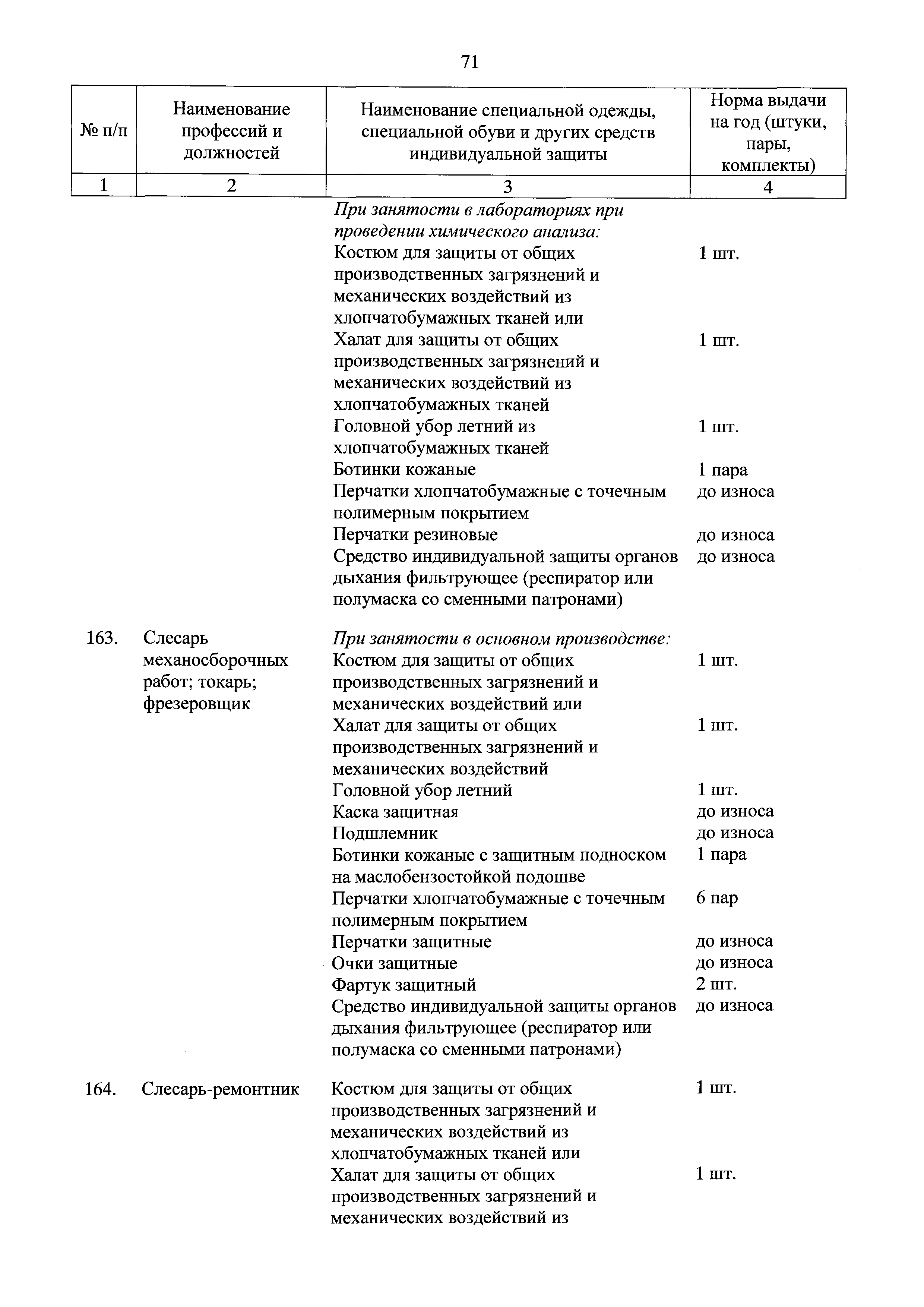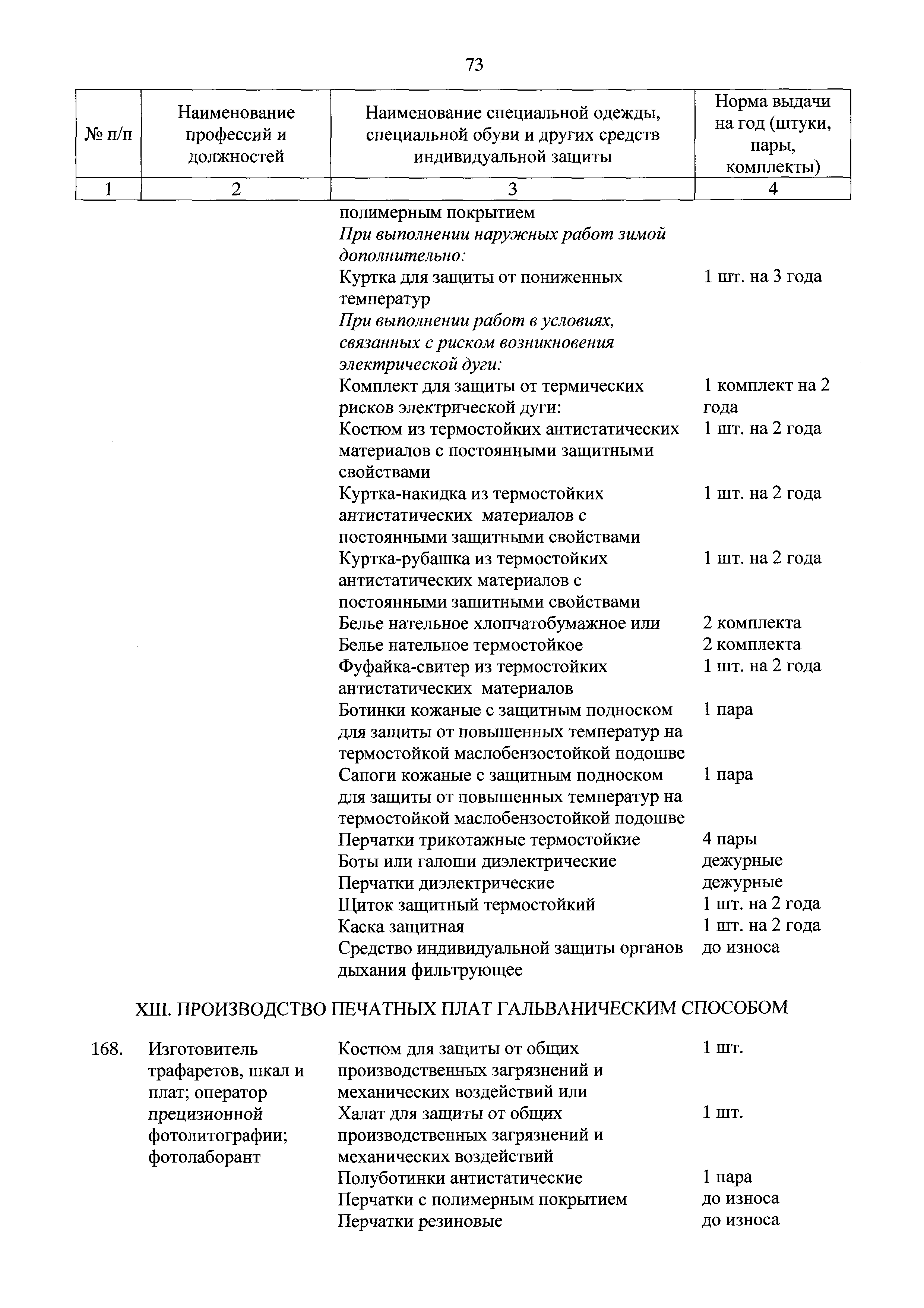 Типовые нормы бесплатной выдачи специальной одежды, специальной обуви и других средств индивидуальной защиты работникам авиационной промышленности, занятым на работах с вредными и (или) опасными условиями труда, а также на работах, выполняемых в особых температурных условиях или связанных с загрязнением| Статус: | действует | | Название рус.: | Типовые нормы бесплатной выдачи специальной одежды, специальной обуви и других средств индивидуальной защиты работникам авиационной промышленности, занятым на работах с вредными и (или) опасными условиями труда, а также на работах, выполняемых в особых температурных условиях или связанных с загрязнением | | Дата добавления в базу: | 01.01.2018 | | Дата актуализации: | 01.01.2021 | | Дата введения: | 01.12.2017 | | Оглавление: | I. Летный состав II. Инженерно-технический состав III. Испытание авиационной техники IV. Службы эксплуатационного содержания аэродромов (вертодромов) V. Персонал испытательных станций авиационных двигателей VI. Персонал испытательных станций двигателей и силовых установок VII. Работники полигона VIII. Производство мягких баков IX. Производство мипоры X. Подразделения неразрушающего контроля XI. Оптическое стекловарение и оптико-механическое производство 1. Оптическое стекловарение 2. Оптико-механическое производство 3. Общие профессии XII. Производство полимерных композиционных материалов (далее - ПКМ) и изделий из них XIII. Производство печатных плат гальваническим способом XIV. Авиаприборостоение. Сборка приборов для ракетно-космической техники XV. Прочие профессии | | Утверждён: | 19.06.2017 Министерство труда и социальной защиты РФ (507н)