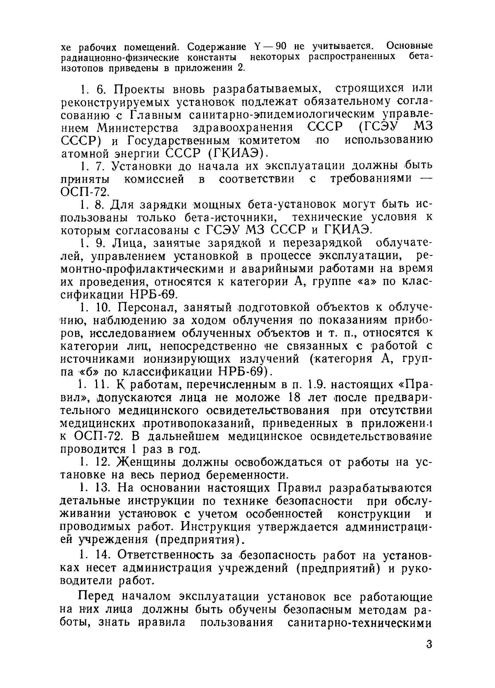 | Заменяет собой: | - Санитарные правила 825-69 «Санитарные правила устройства и эксплуатации мощных изотопных бета-установок»