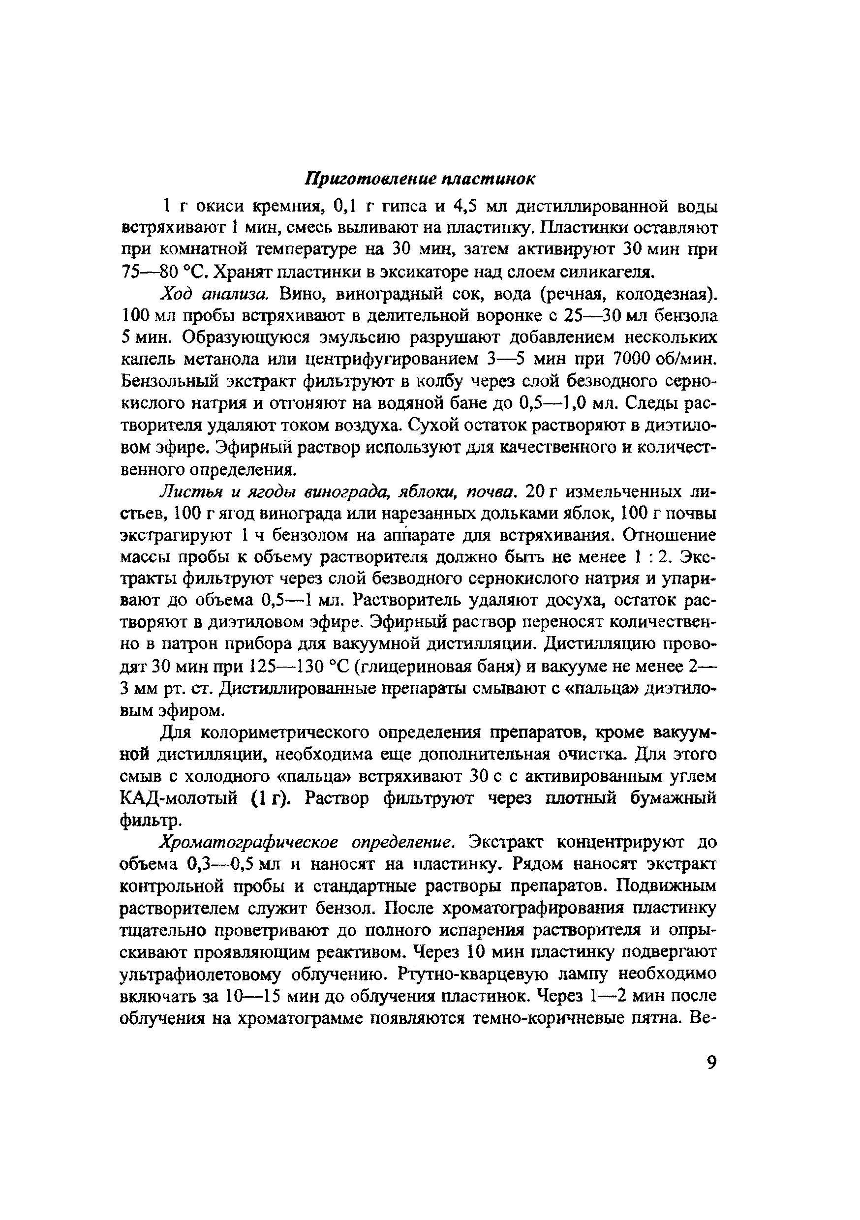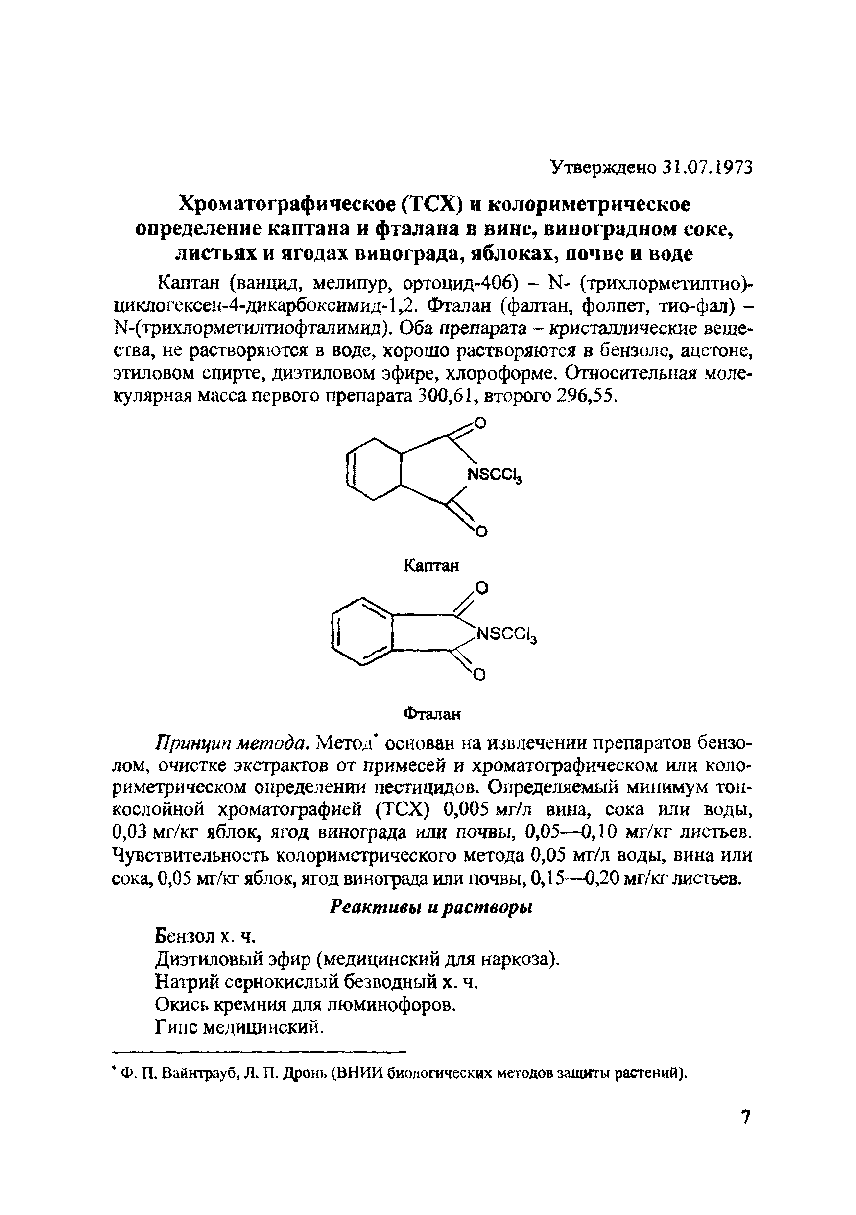 Скачать Хроматографическое (ТСХ) и колориметрическое определение каптана и фталана в вине, виноградном соке, листьях и ягодах винограда, яблоках, почве и водеДата актуализации: 01.01.2021