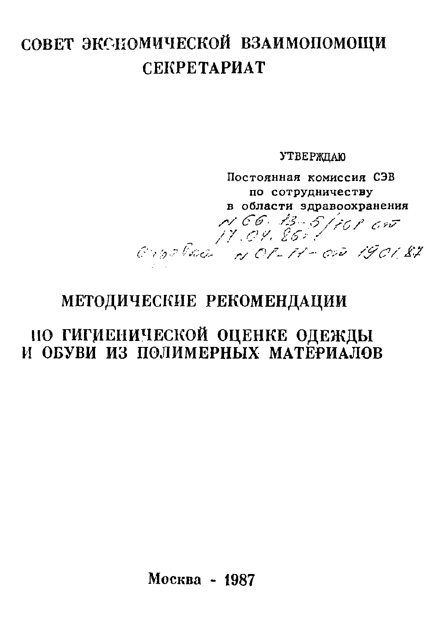 | Название рус.: | Методические рекомендации по гигиенической оценке одежды и обуви из полимерных материалов |