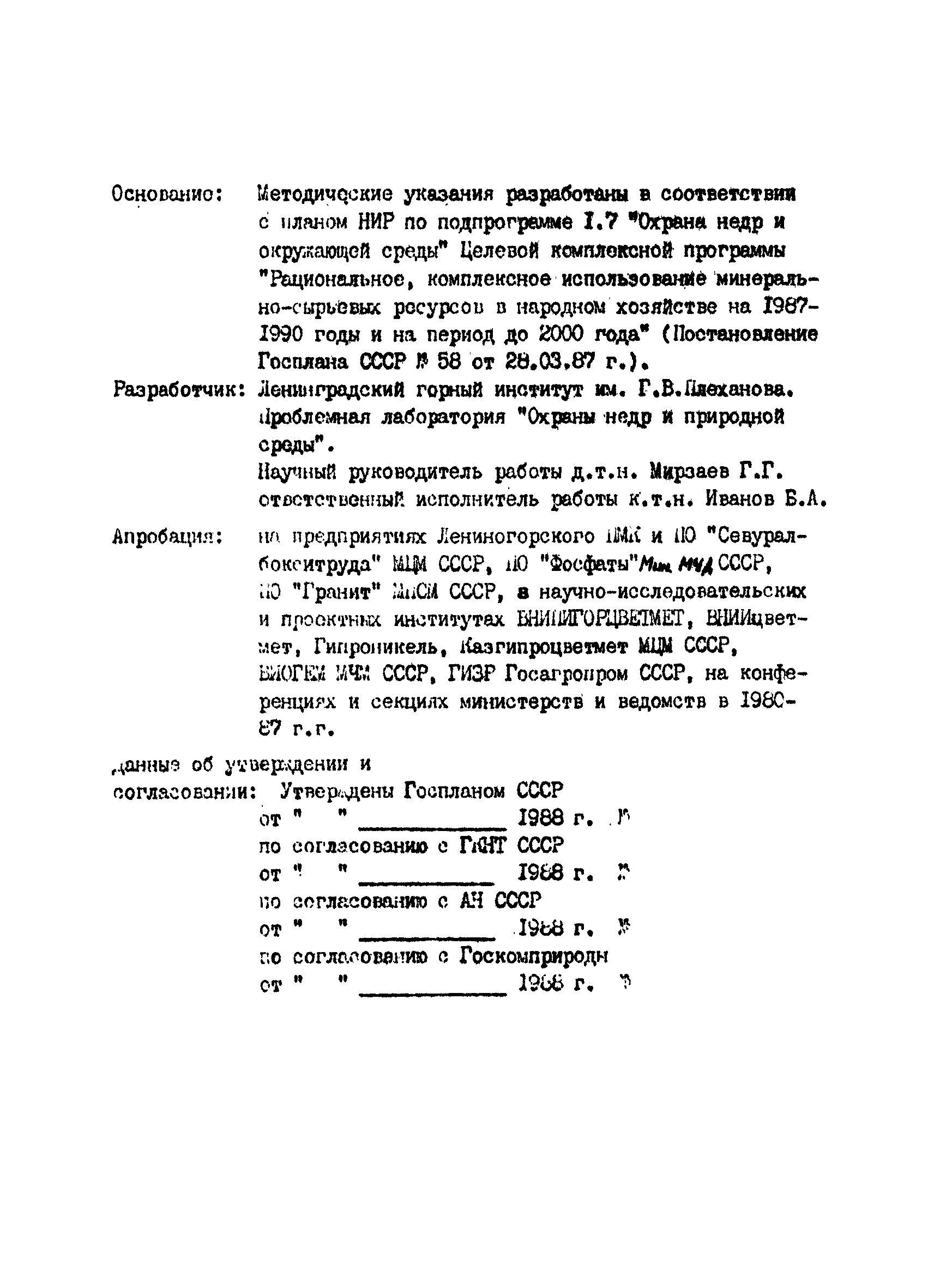 | Принят: | ГКНТ СССР (USSR GKNT ) АН СССР (USSR Academy of Sciences ) Госкомприрода СССР