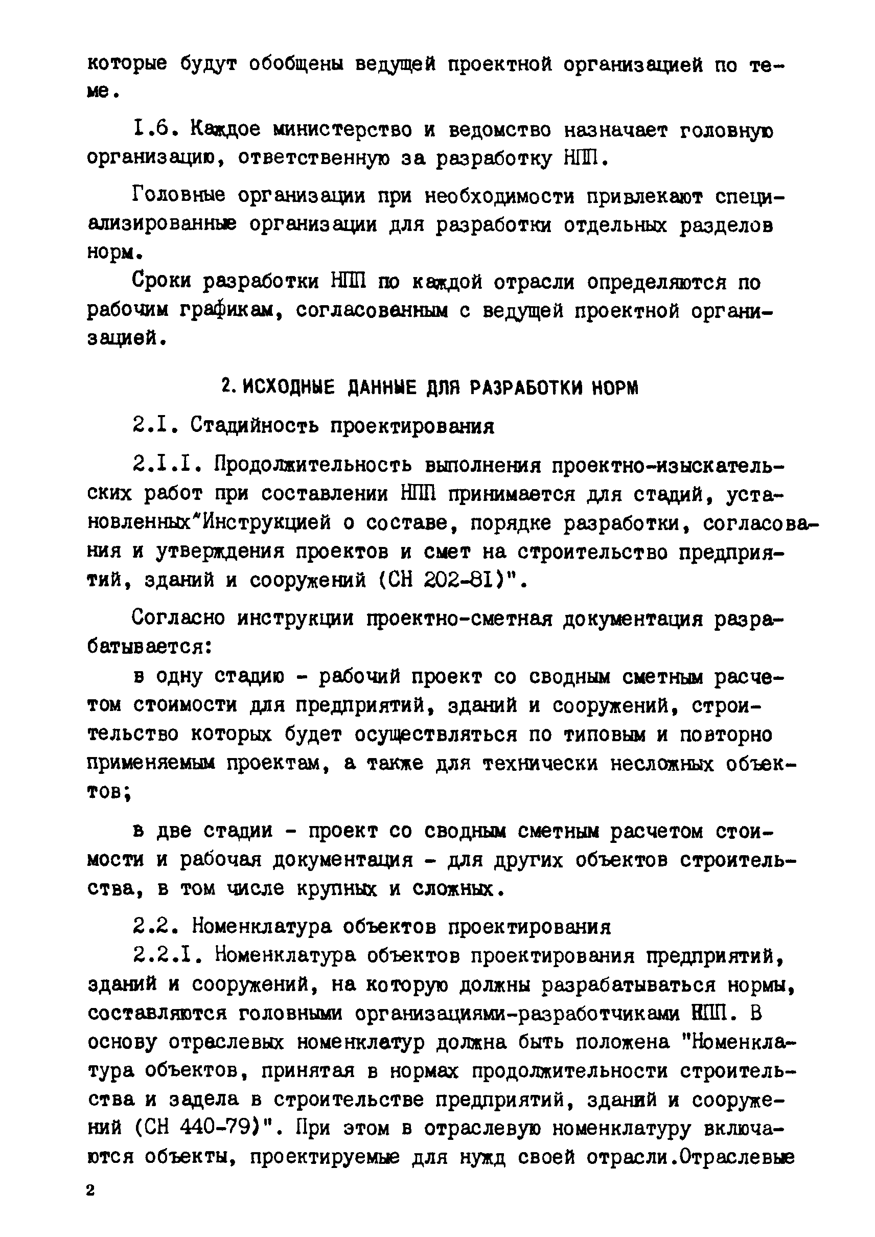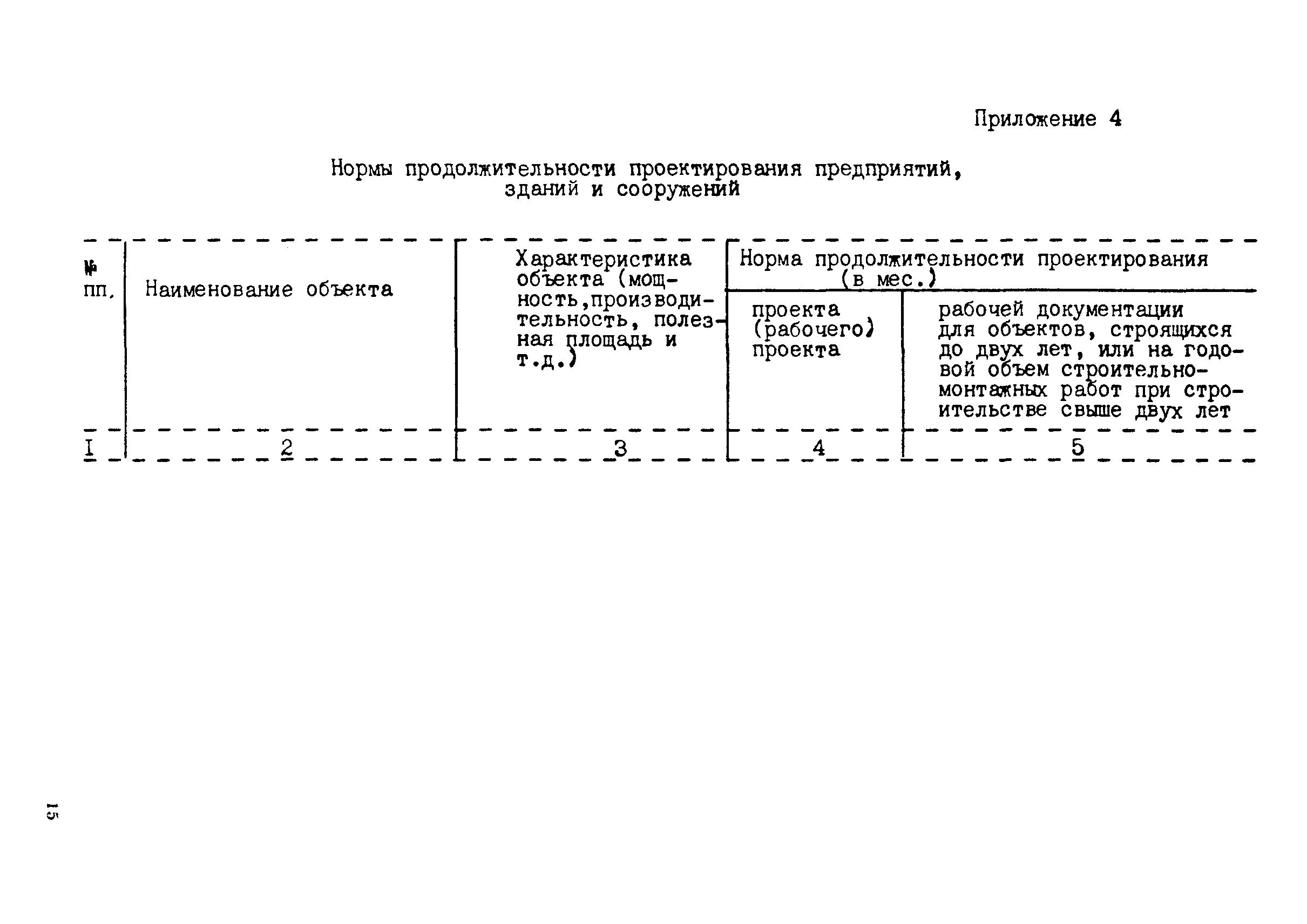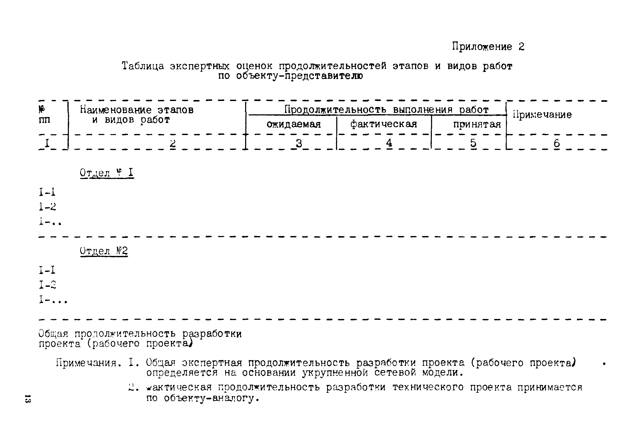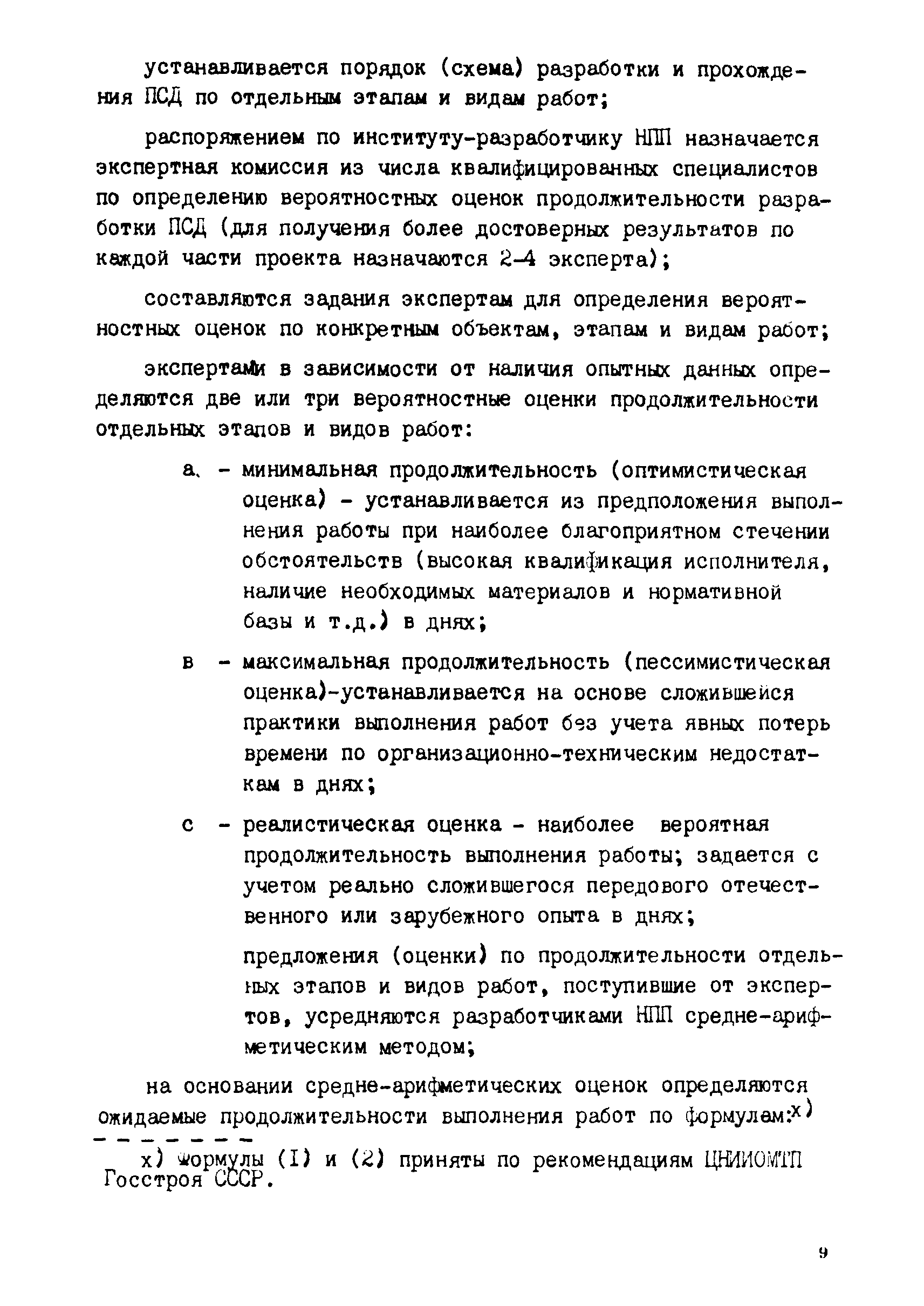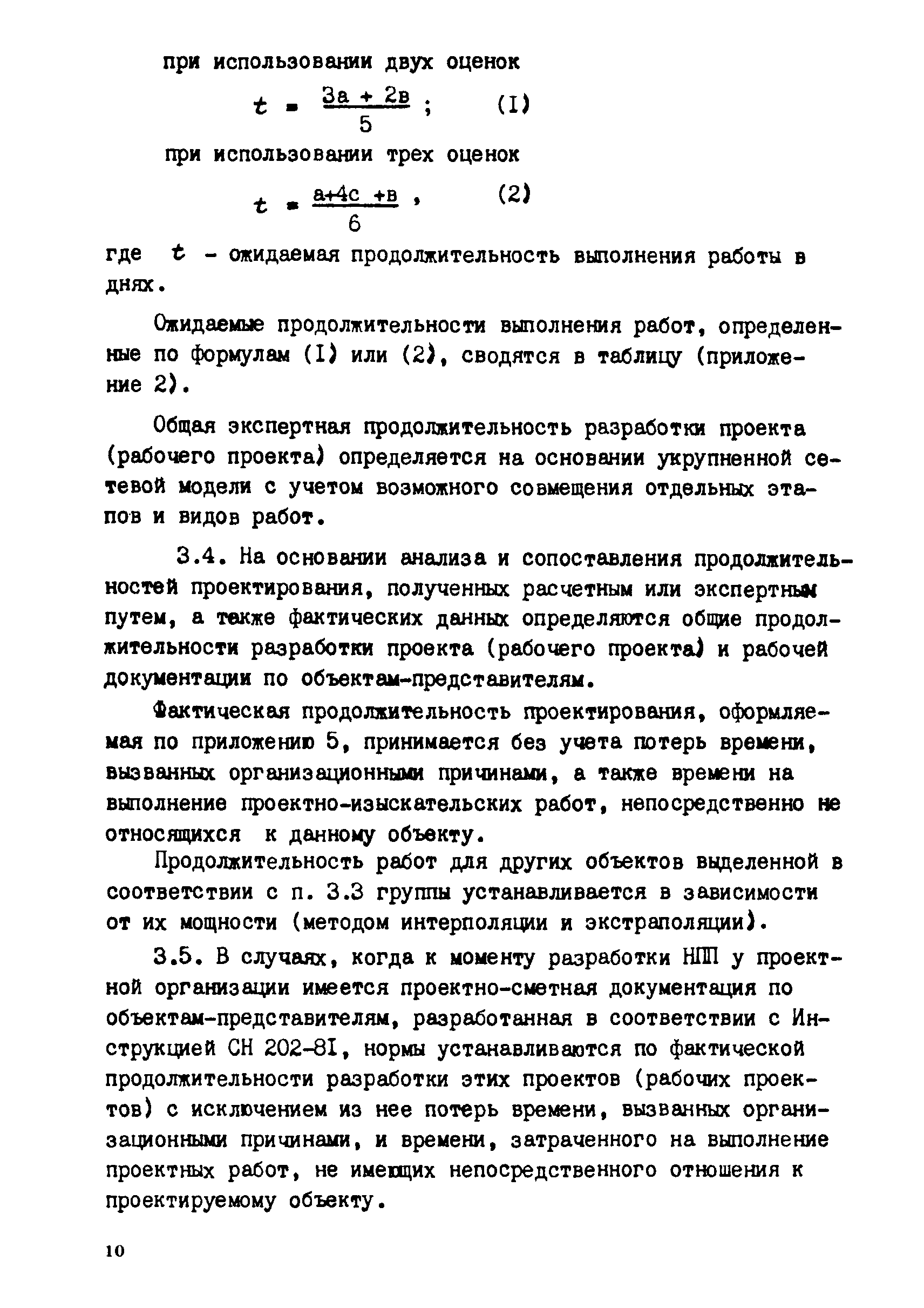 Методические указания по разработке норм продолжительности проектирования предприятий, зданий и сооружений| Статус: | справочные материалы, мп, тпр | | Название рус.: | Методические указания по разработке норм продолжительности проектирования предприятий, зданий и сооружений | | Дата добавления в базу: | 01.01.2019 | | Дата актуализации: | 01.01.2021 | | Область применения: | Методические указания предназначены для определения продолжительности выполнения комплекса проектно-изыскательских работ на новое строительство предприятий, зданий и сооружений в различных отраслях народного хозяйства. В указаниях приведены предпосылки, из которых следует исходить при выборе метода расчета норм продолжительности проектирования, порядок расчета, элементы оформления разработанных норм продолжительности проектирования. | | Оглавление: | 1 Общие положения 2 Исходные данные для разработки норм 3 Методы расчета норм продолжительности проектирования 4 Оформление норм продолжительности проектирования Приложение 1. Расчет трудоемкости и продолжительности работ по объекту-представителю (наименование объекта) Приложение 2. Таблица экспертных оценок продолжительностей этапов и видов работ по объекту-представителю Приложение 3. Сопоставительная таблица продолжительности разработки ПСД по объектам-представителям Приложение 4. Нормы продолжительности проектирования предприятий, зданий и сооружений Приложение 5. Сведения о фактической продолжительности проектирования по отдельным объектам-представителям | | Разработан: | ЦНИИпроект Госстроя России ЦИТП Госстроя СССР