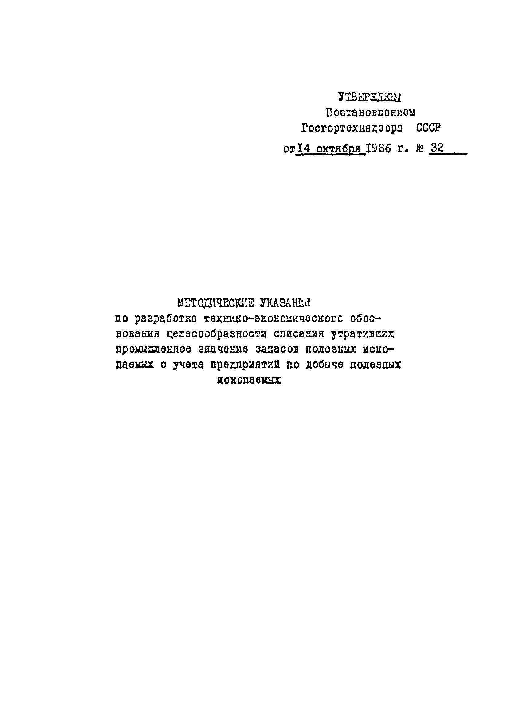 | Название рус.: | Методические указания по разработке технико-экономического обоснования целесообразности списания утративших промышленное значение запасов полезных ископаемых с учета предприятий по добыче полезных ископаемых |