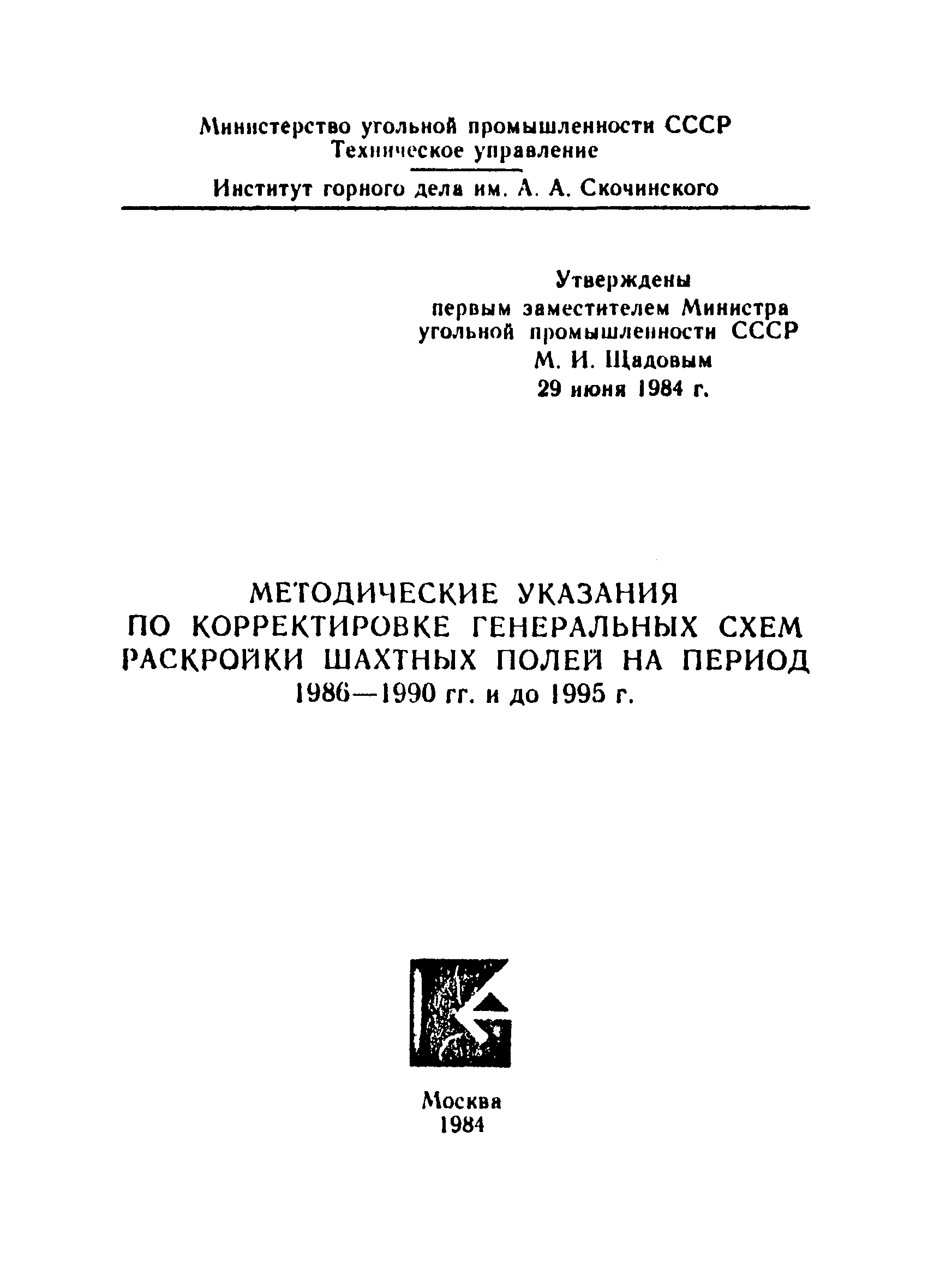 | Утверждён: | 29.06.1984 Министерство угольной промышленности СССР (USSR Ministry of the Coal Industry )