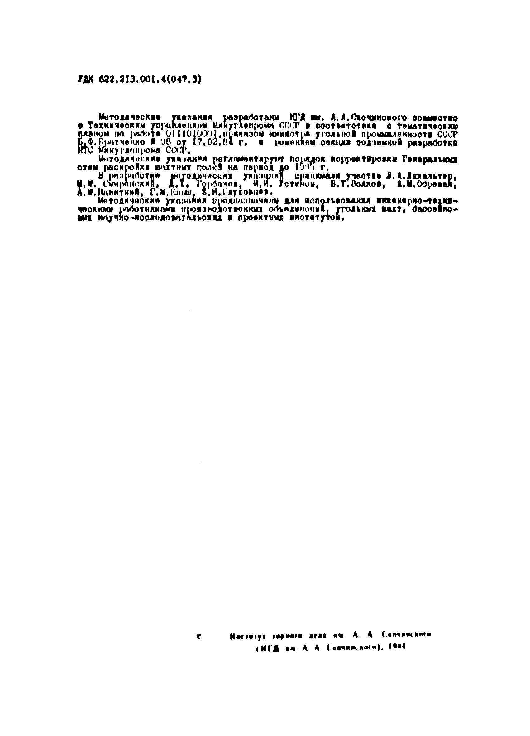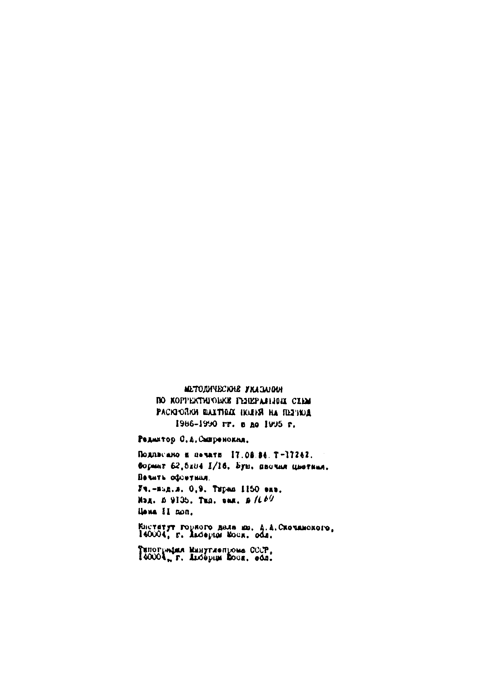 | Название рус.: | Методические указания по корректировке генеральных схем раскройки шахтных полей на период 1986 - 1990 гг. и до 1995 г |