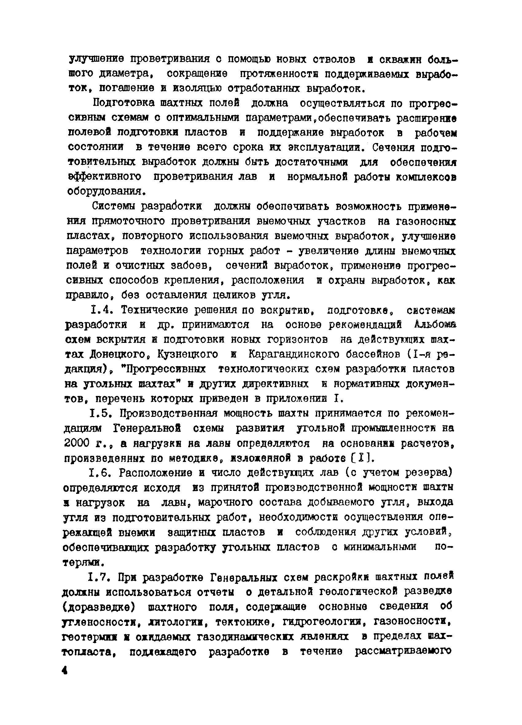 | Оглавление: | 1 Корректировка генеральных схем раскройки шахтных полей 2 Составление календарного плана развития горных работ 3 Показатели генеральной схемы раскройки шахтного поля 4 Оформление, порядок разработки и рассмотрения генеральных схем раскройки шахтных полей Приложение 1. Перечень директивных материалов, используемых при разработке Генеральных схем раскройки шахтных полей Приложение 2. Характеристика состояния шахтного фонда |