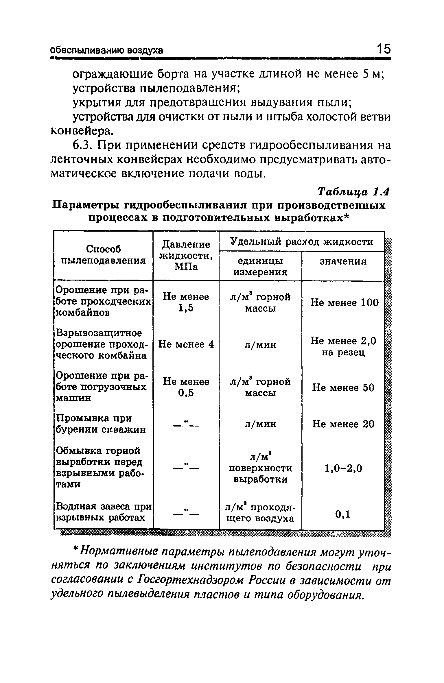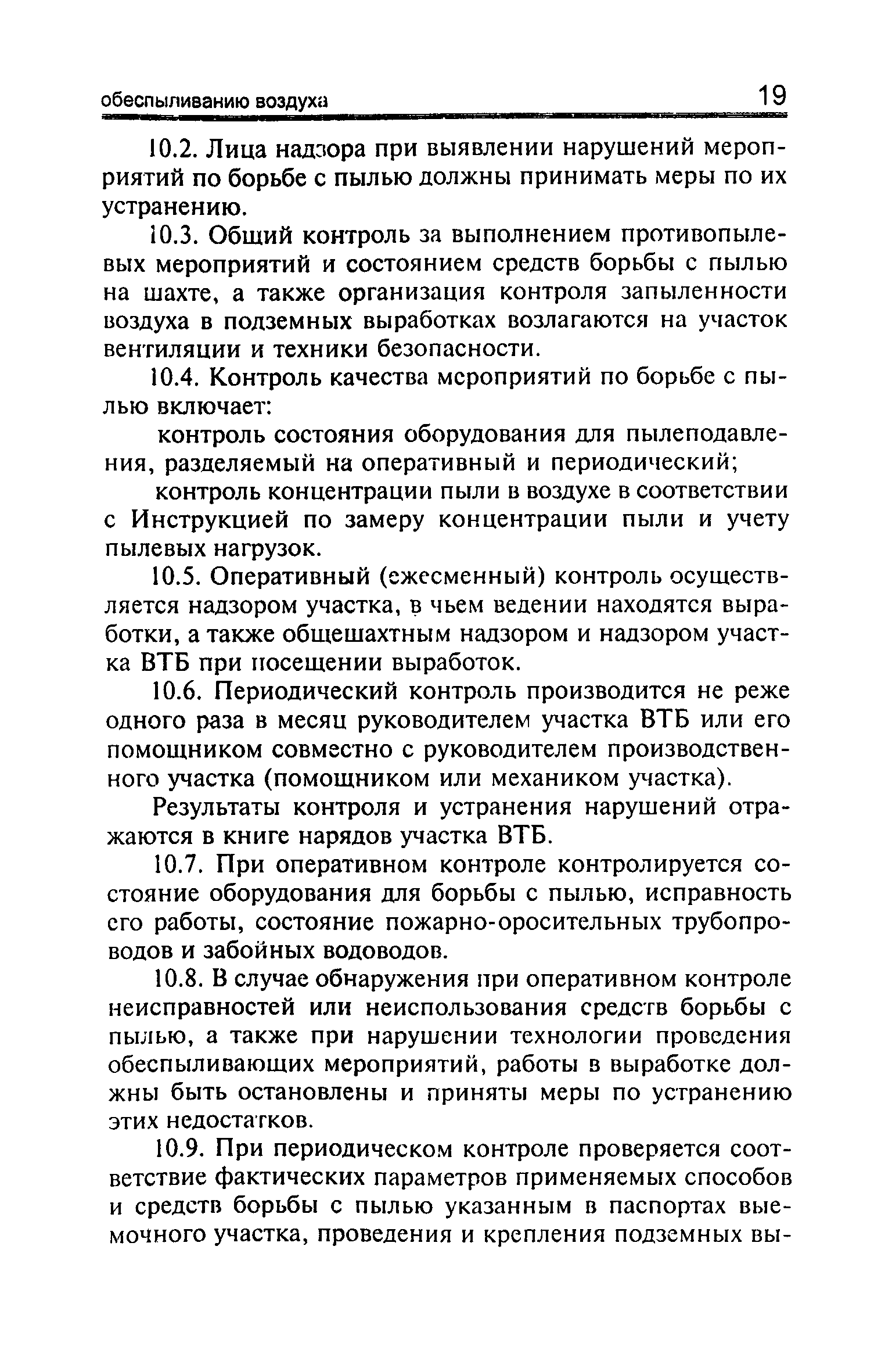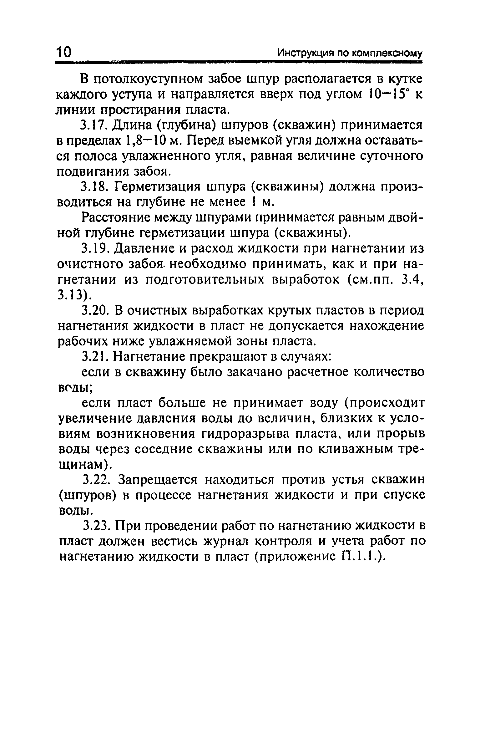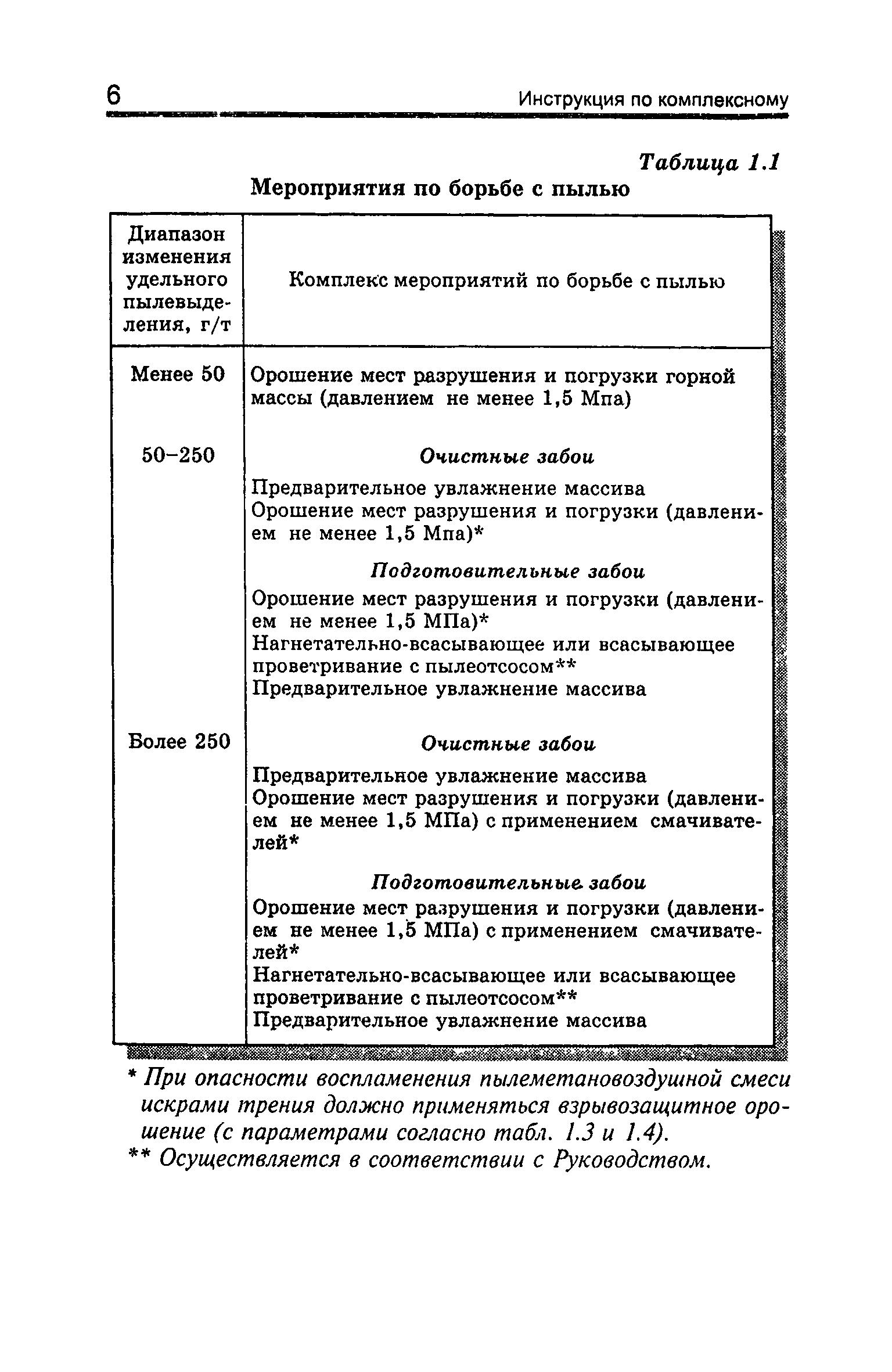 | Оглавление: | 1 Общие положения 2 Выбор комплекса мероприятий по борьбе с пылью 3 Предварительное увлажнение угольных пластов 4 Обеспыливание воздуха в очистных выработках 5 Обеспыливание воздуха при проведении горных выработок 6 Обеспыливание воздуха в транспортных и околоствольных выработках 7 Обеспыливание входящих и исходящих вентиляционных потоков 8 Водоснабжение горных выработок и водоподготовка 9 Дополнительные требования по обеспыливанию воздуха в угольных шахтах Крайнего Севера 10 Организация работ по борьбе с пылью и контроль качества применяемых мероприятий на шахтах Приложение 1.1 Журнал контроля и учета работ по нагнетанию жидкости в пласт |