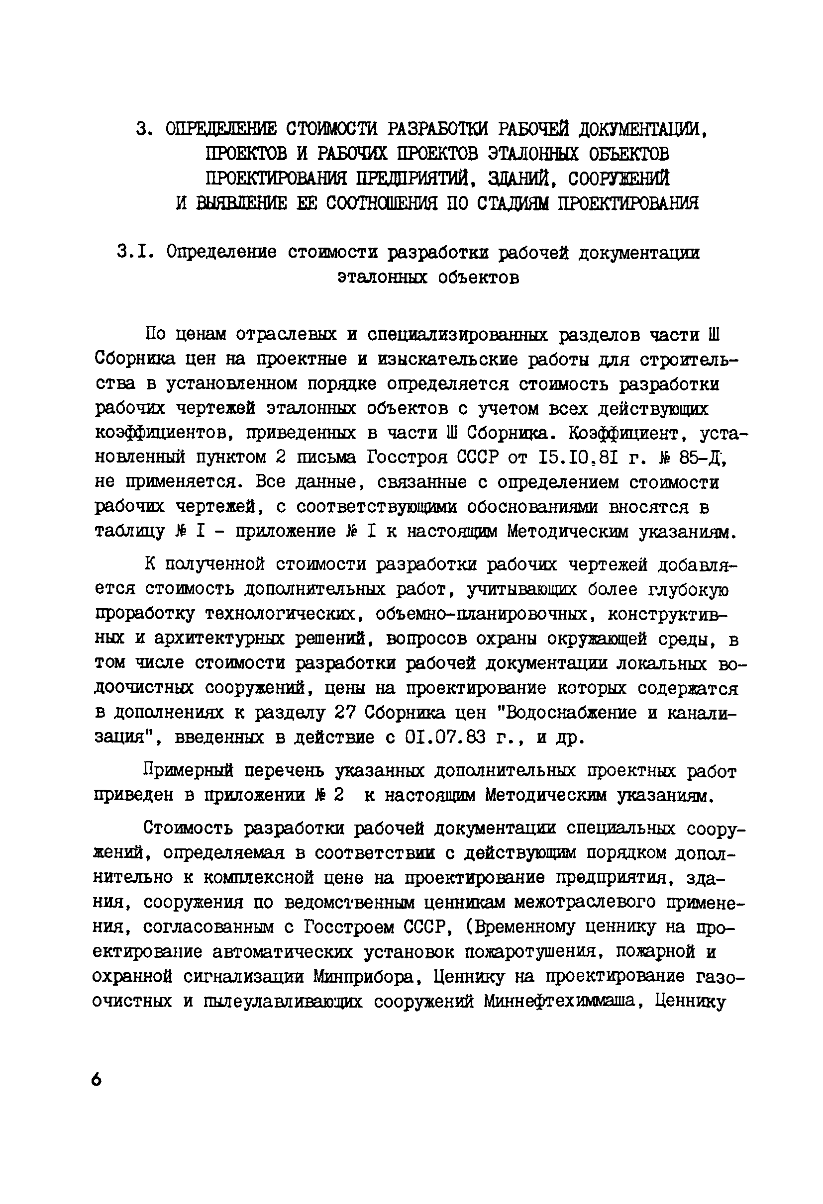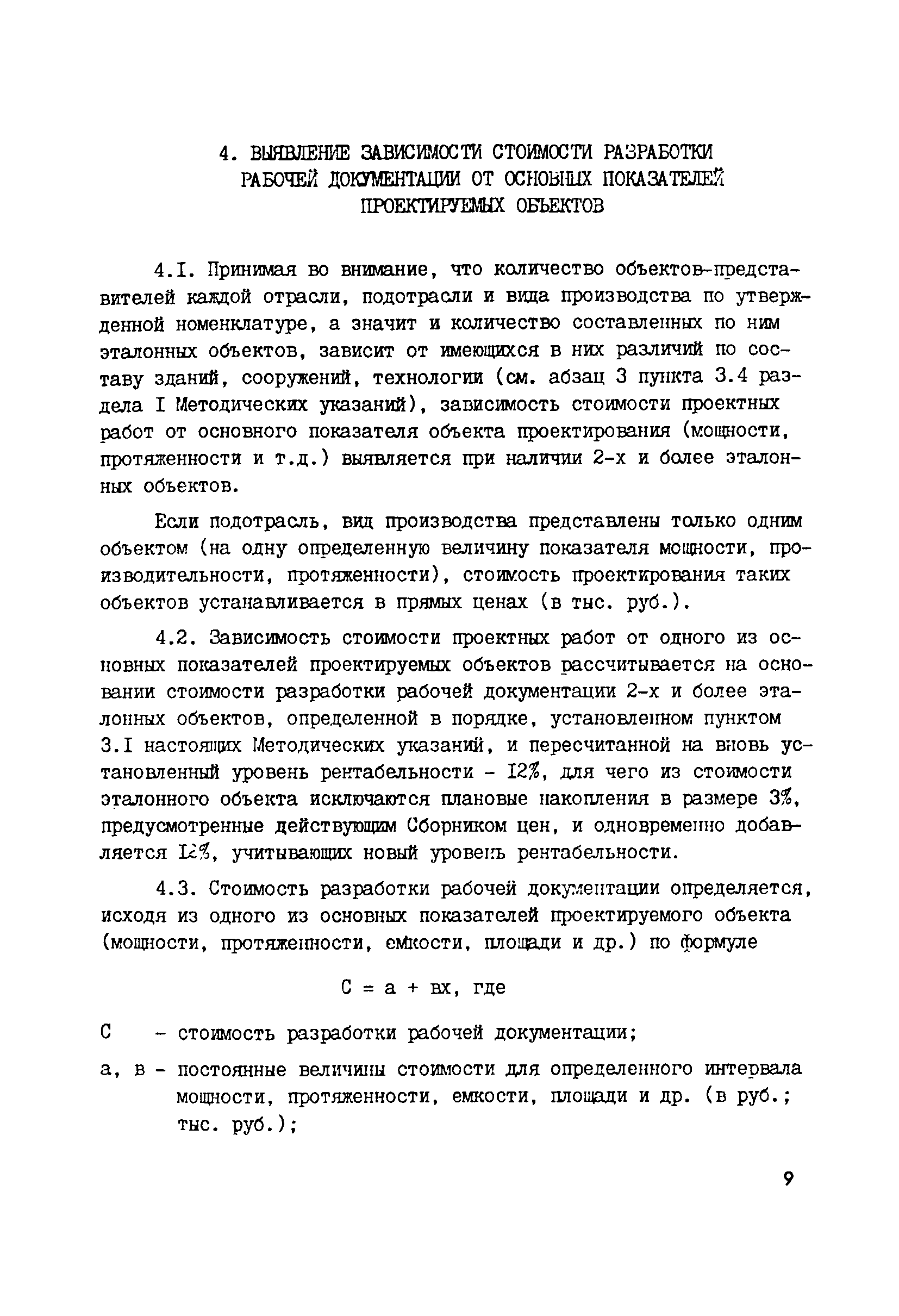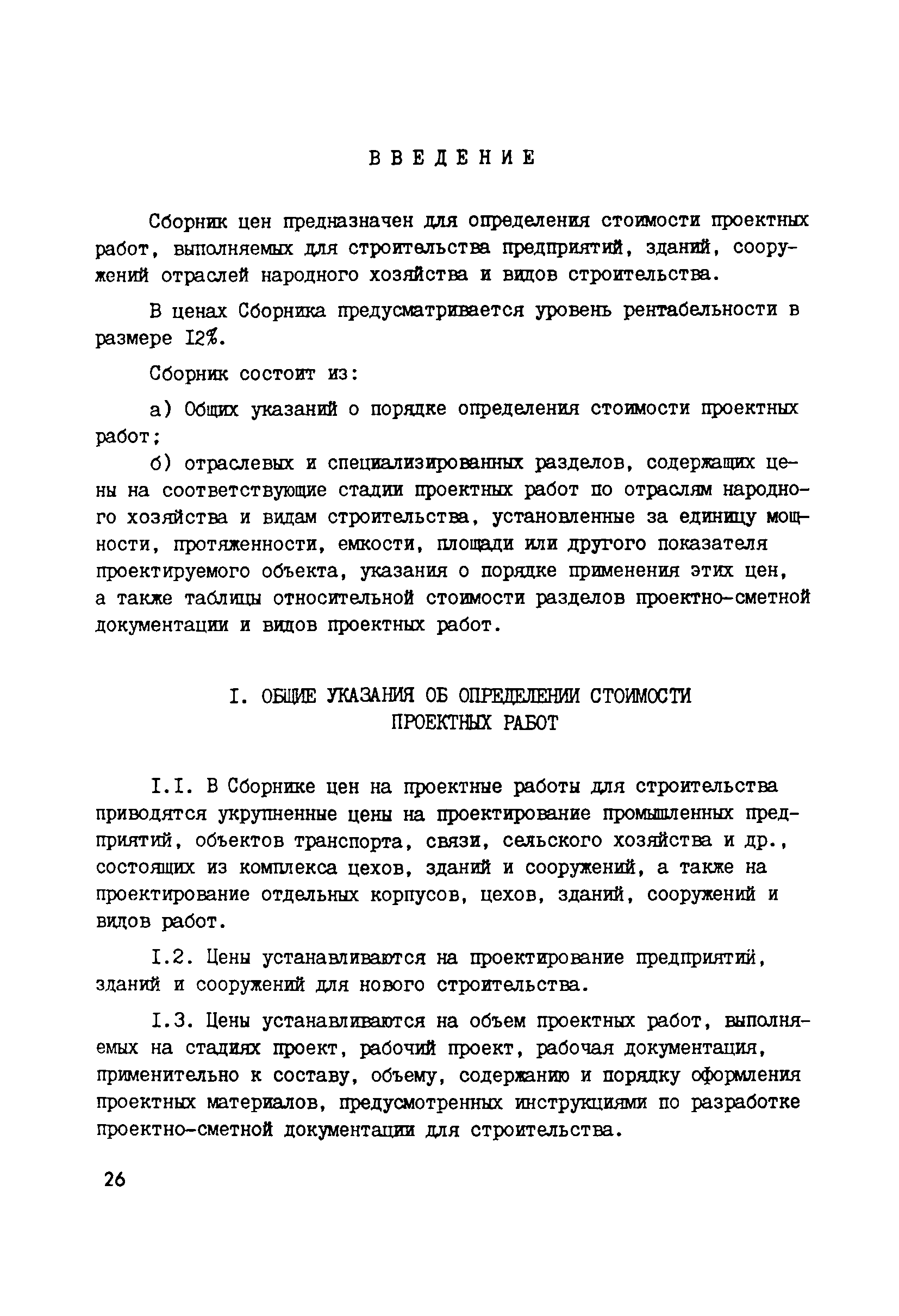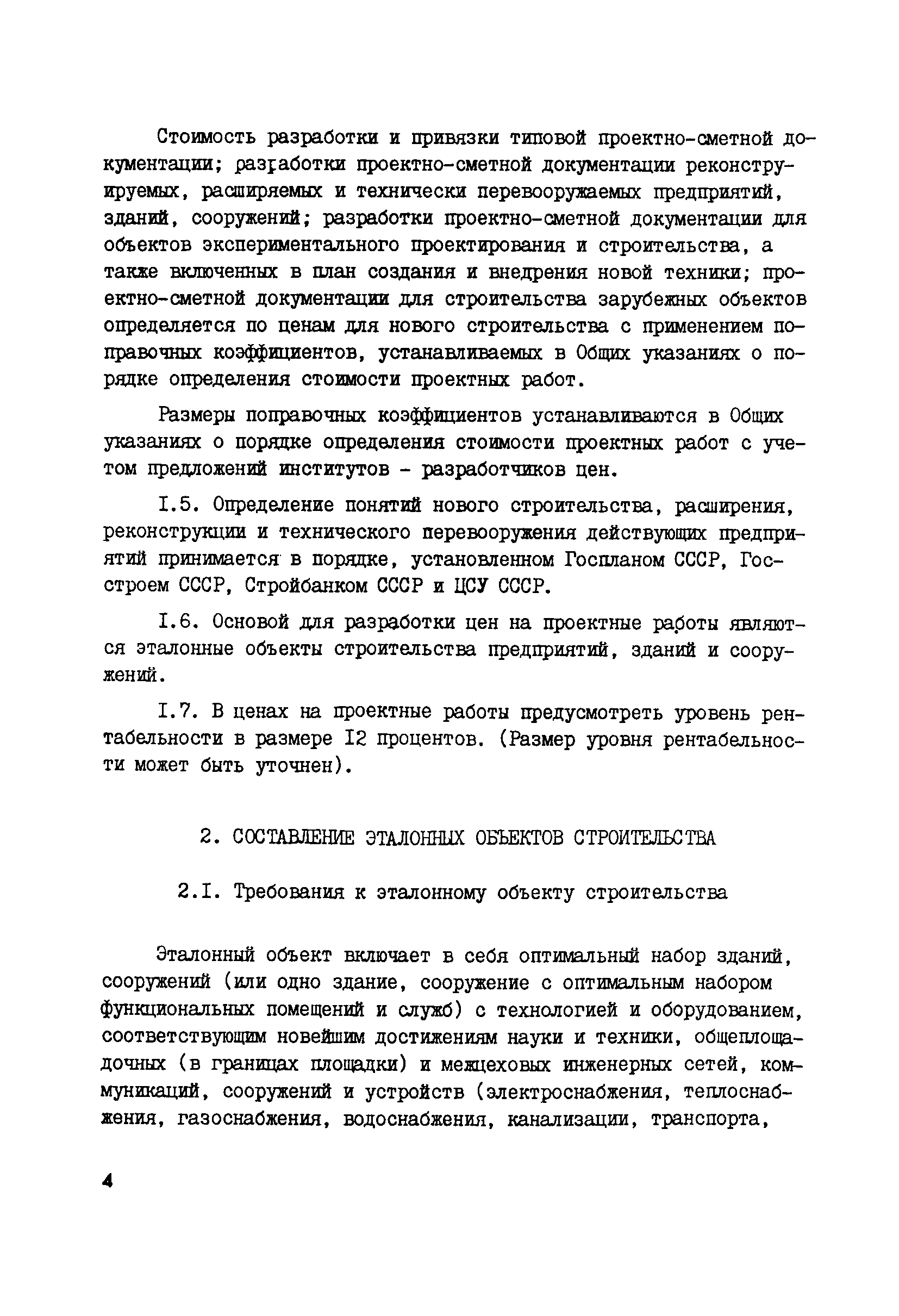 | Оглавление: | 1 Общие положения 2 Составление эталонных объектов строительства 3 Определение стоимости разработки рабочей документадии, проектов и рабочих проектов эталонных объектов проектирования предприятий, по стадиям проектирования 3.1 Определение стоимости разработки рабочей документация эталонных объектов 3.2 Определение стоимости разработки проектов эталонных объектов 3.3 Определение стоимости разработки рабочих проектов эталонных объектов 4 Выявление зависимости стоимости разработки рабочей документация от основных показателей проектируемых объектов 5 Порядок определения стоимости разработки проектов и рабочих проектов 6 Макет таблиц цен для определения стоимости проектирования 7 Порядок разработки показателей относительно стоимости разделов проектно—сметной документации и видов проектных работ 8 Порядок разработки предложений по определению стоимости проектных работ на реконструкцию, расширение и техническое перевооружение действующих предприятий 9 Проверка принятого уровня цен на проектные работы 10 Порядок представления проектов цен 11 Порядок формирования разделов Сборника цен Приложение 1. Таблица 1. Определение стоимости проектирования эталонного объекта по ценам действующего Сборника цен Приложение 2. Примерный перечень дополнительных работ, затраты на выполнение которых могут быть учтены при формировании новых цен на проектные работы Приложение 3. Таблица 2. Определение стоимости проектирования эталонных объектов по стадиям разработки (проект, рабочий проект, рабочая документация) и по разделам проектно—сметной документации и видам проектных работ Приложение 4. Общие указания о порядке определения стоимости проектных работ (материалы для разработки проектов цен) |
