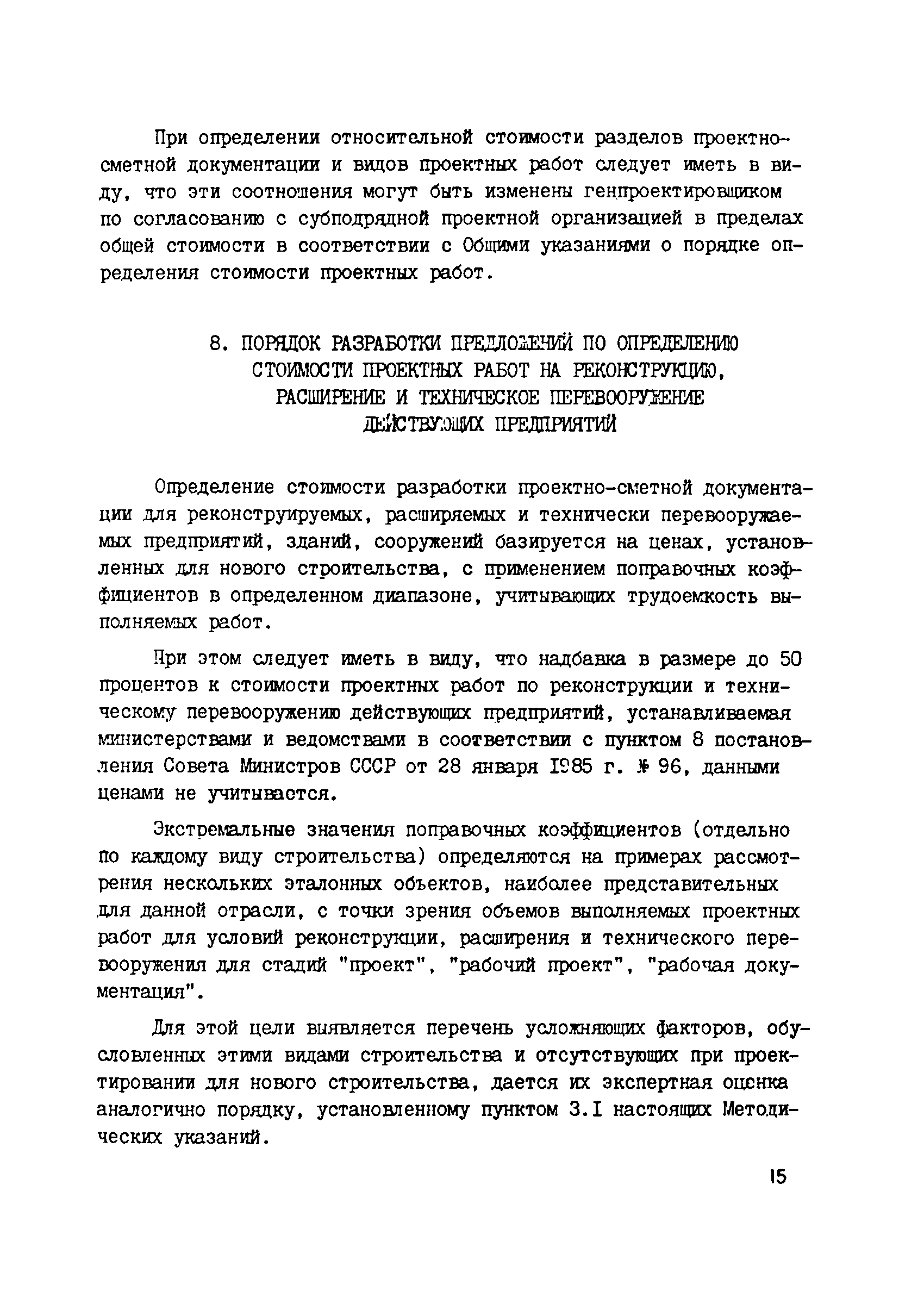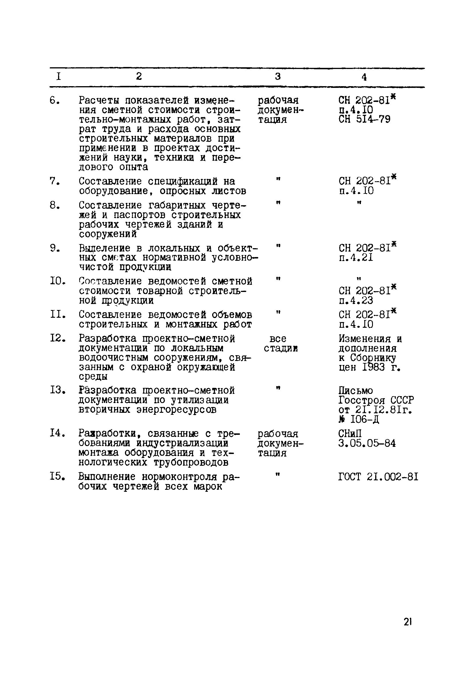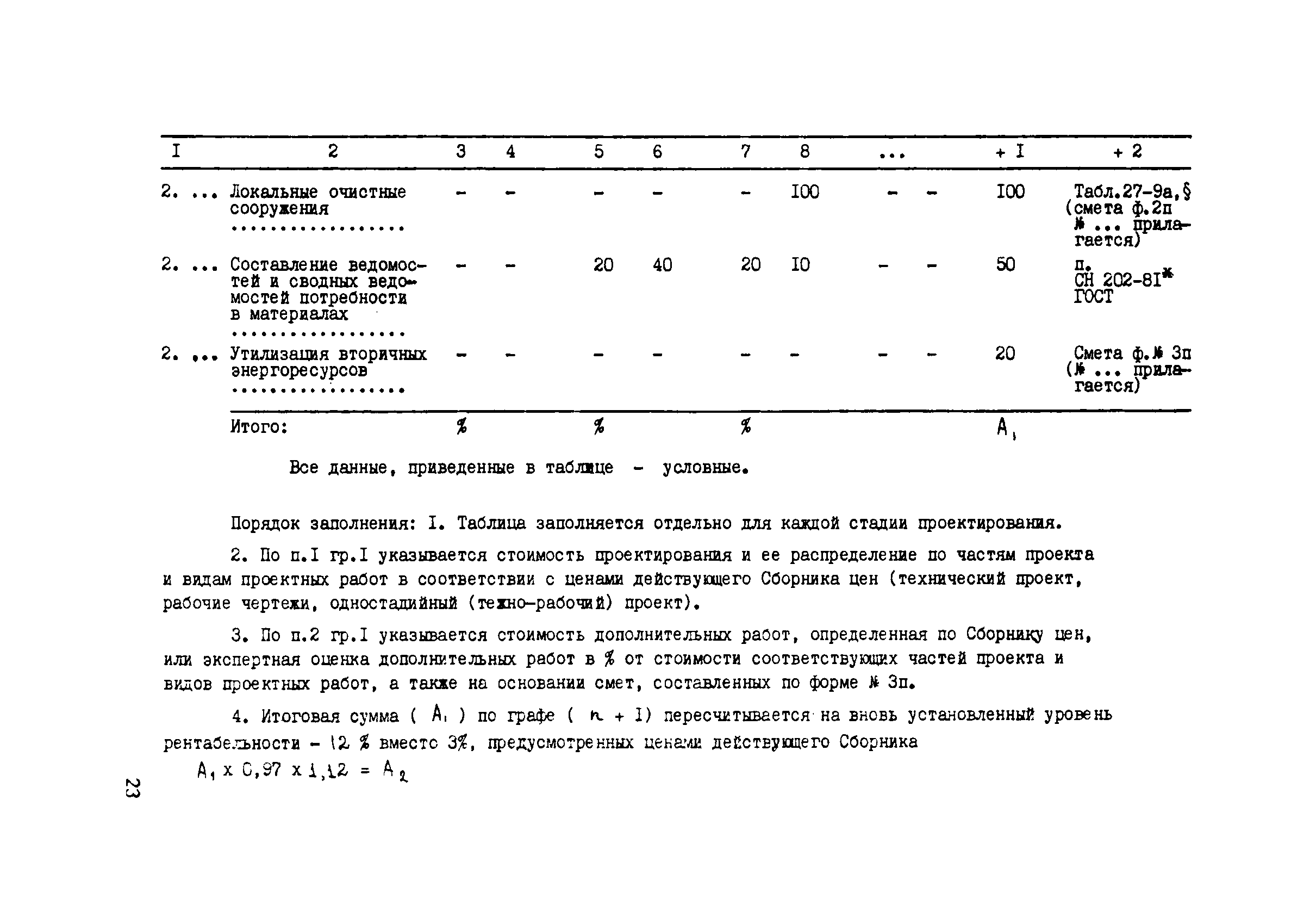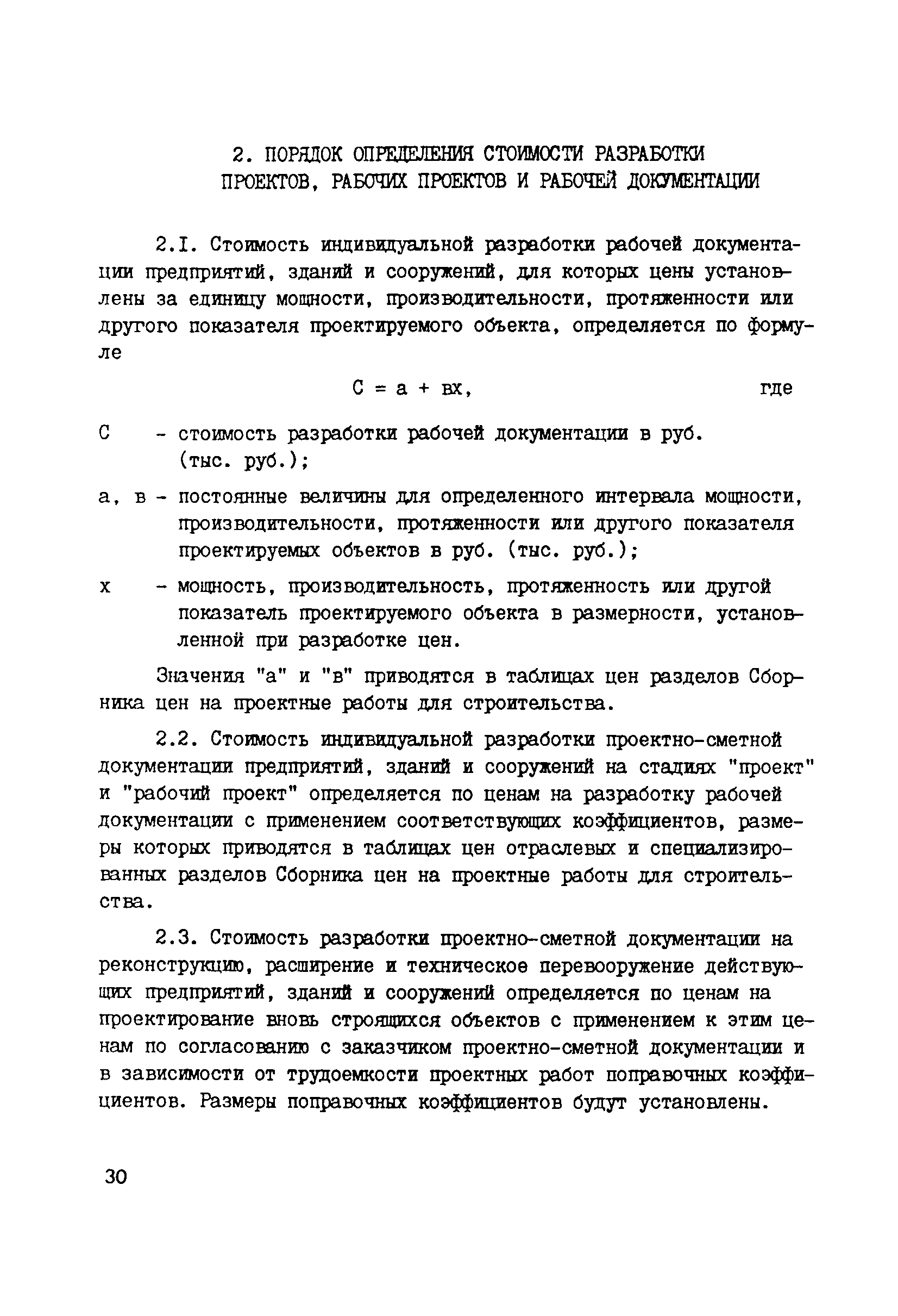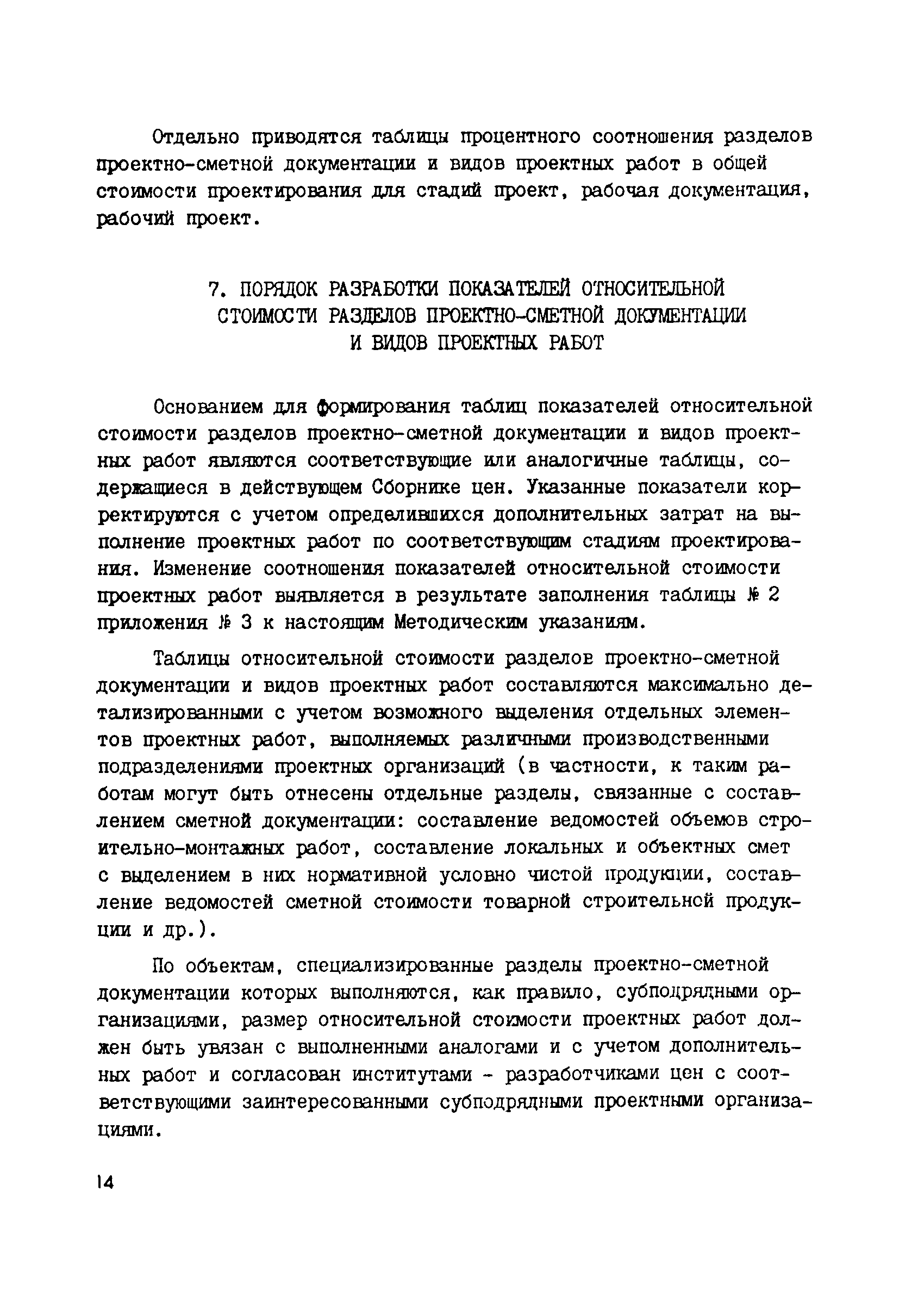 | Оглавление: | 1 Общие положения 2 Составление эталонных объектов строительства 3 Определение стоимости разработки рабочей документадии, проектов и рабочих проектов эталонных объектов проектирования предприятий, по стадиям проектирования 3.1 Определение стоимости разработки рабочей документация эталонных объектов 3.2 Определение стоимости разработки проектов эталонных объектов 3.3 Определение стоимости разработки рабочих проектов эталонных объектов 4 Выявление зависимости стоимости разработки рабочей документация от основных показателей проектируемых объектов 5 Порядок определения стоимости разработки проектов и рабочих проектов 6 Макет таблиц цен для определения стоимости проектирования 7 Порядок разработки показателей относительно стоимости разделов проектно—сметной документации и видов проектных работ 8 Порядок разработки предложений по определению стоимости проектных работ на реконструкцию, расширение и техническое перевооружение действующих предприятий 9 Проверка принятого уровня цен на проектные работы 10 Порядок представления проектов цен 11 Порядок формирования разделов Сборника цен Приложение 1. Таблица 1. Определение стоимости проектирования эталонного объекта по ценам действующего Сборника цен Приложение 2. Примерный перечень дополнительных работ, затраты на выполнение которых могут быть учтены при формировании новых цен на проектные работы Приложение 3. Таблица 2. Определение стоимости проектирования эталонных объектов по стадиям разработки (проект, рабочий проект, рабочая документация) и по разделам проектно—сметной документации и видам проектных работ Приложение 4. Общие указания о порядке определения стоимости проектных работ (материалы для разработки проектов цен) |