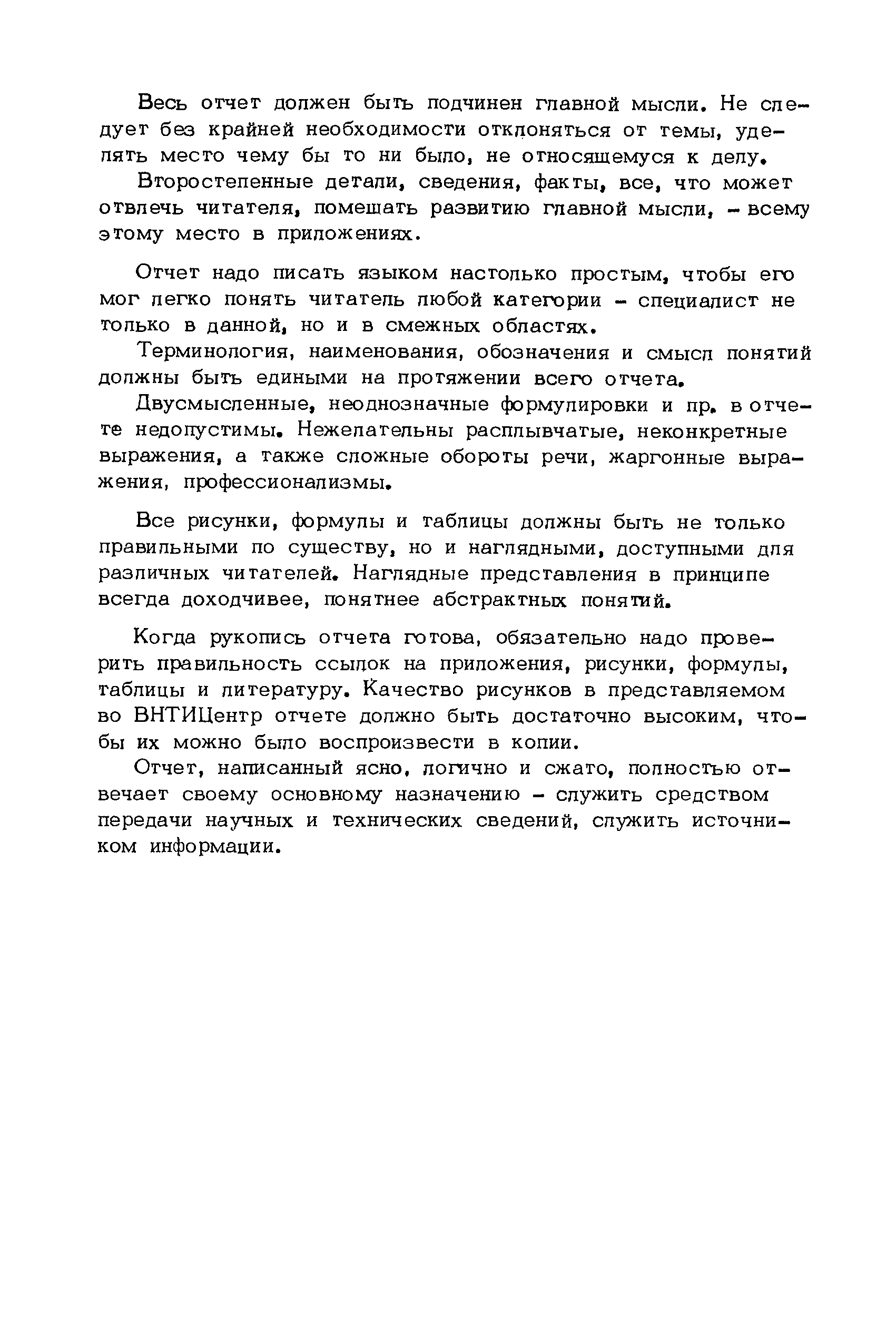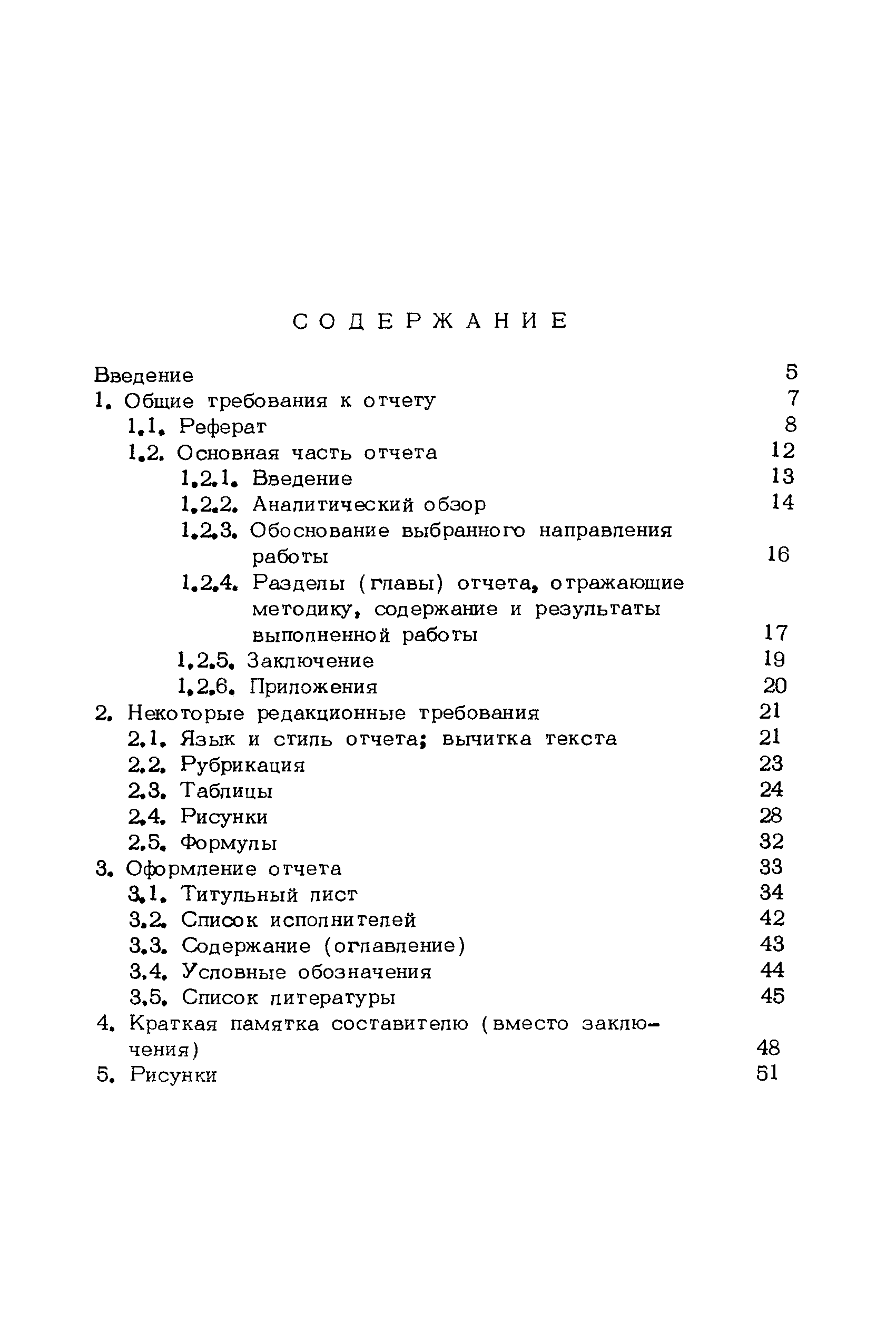 | Оглавление: | Введение 1. Общие требования к отчету 1.1 Реферат 1.2 Основная часть отчета 1.2.1 Введение 1.2.2 Аналитический обзор 1.2.3 Обоснование выбранного направления работы 1.2.4 Разделы (главы) отчета, отражающие методику, содержание и результаты выполненной работы 1.2.5 Заключение 1.2.6. Приложения 2 Некоторые редакционные требования 2.1 Язык и стиль отчета; вычитка текста 2.2 Рубрикация 2.3 Таблицы 2.4 Рисунки 2.5 Формулы 3 Оформление отчета 3.1 Титульный лист 3.2 Список исполнителей 3.3 Содержание (оглавление) 3.4 Условные обозначения 3.5 Список литературы 4. Краткая памятка составителю (вместо заключения) 5 Рисунки |