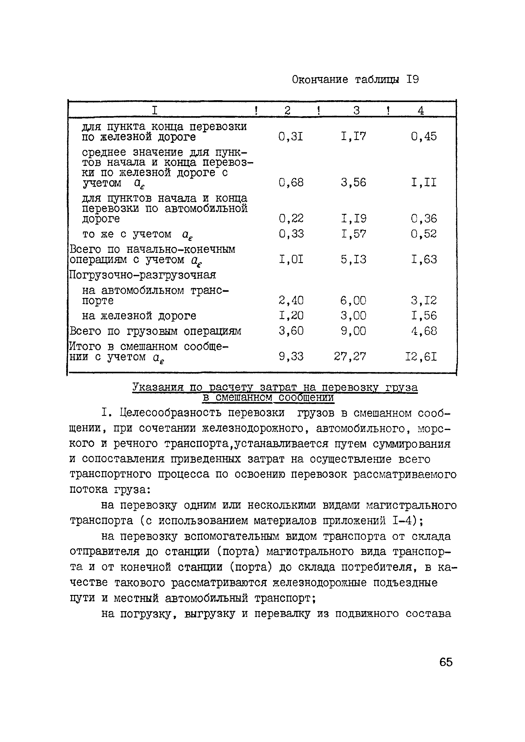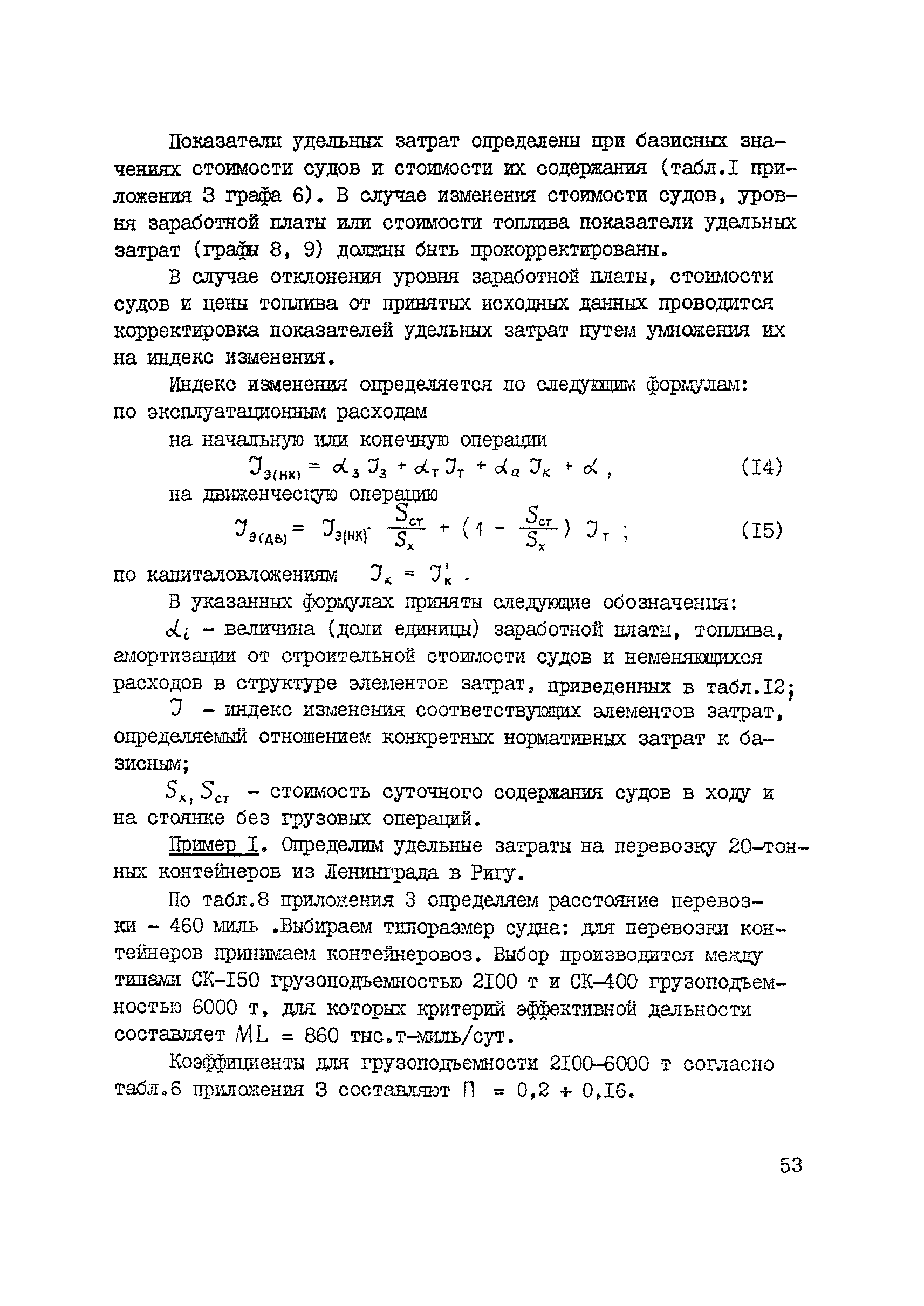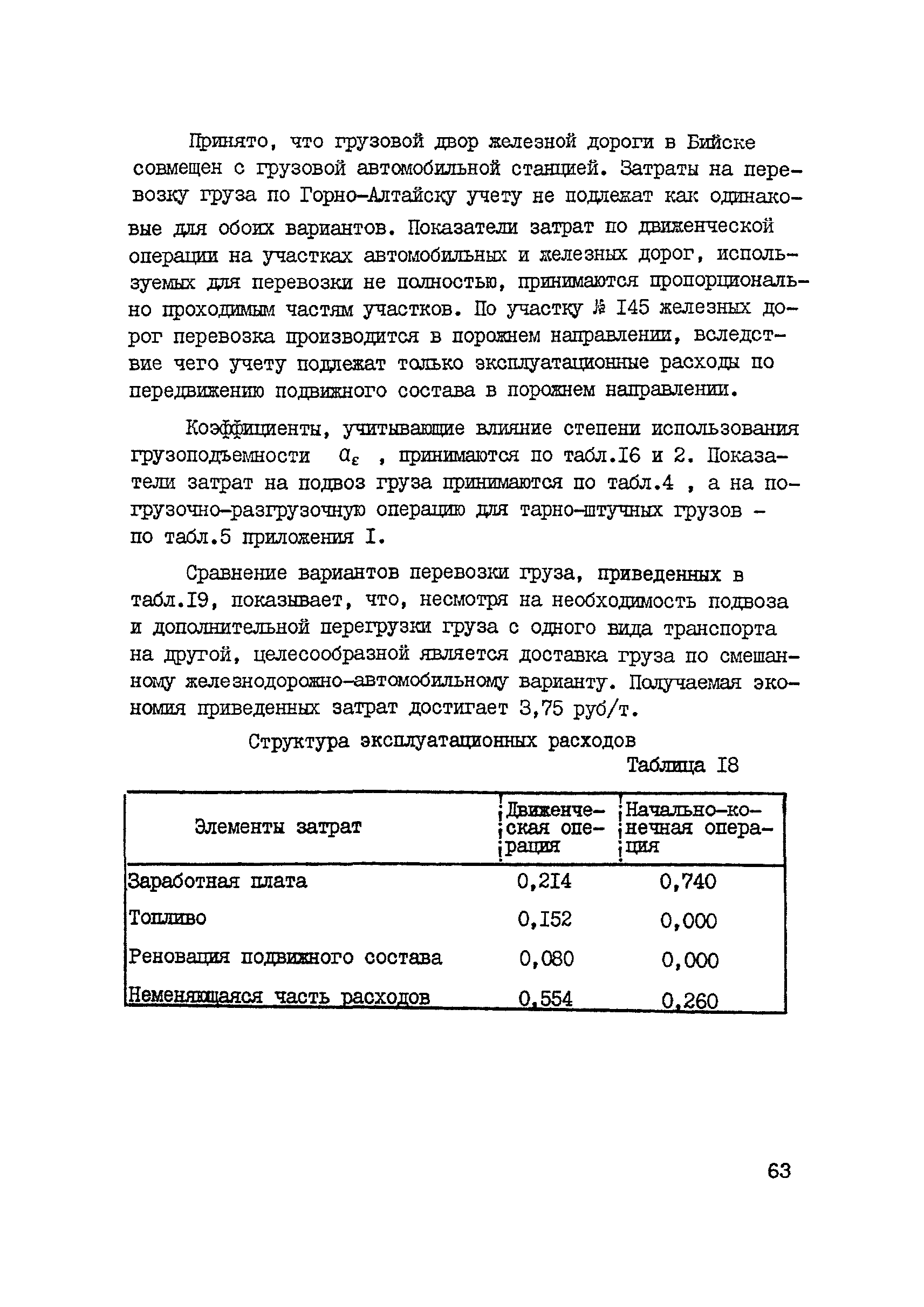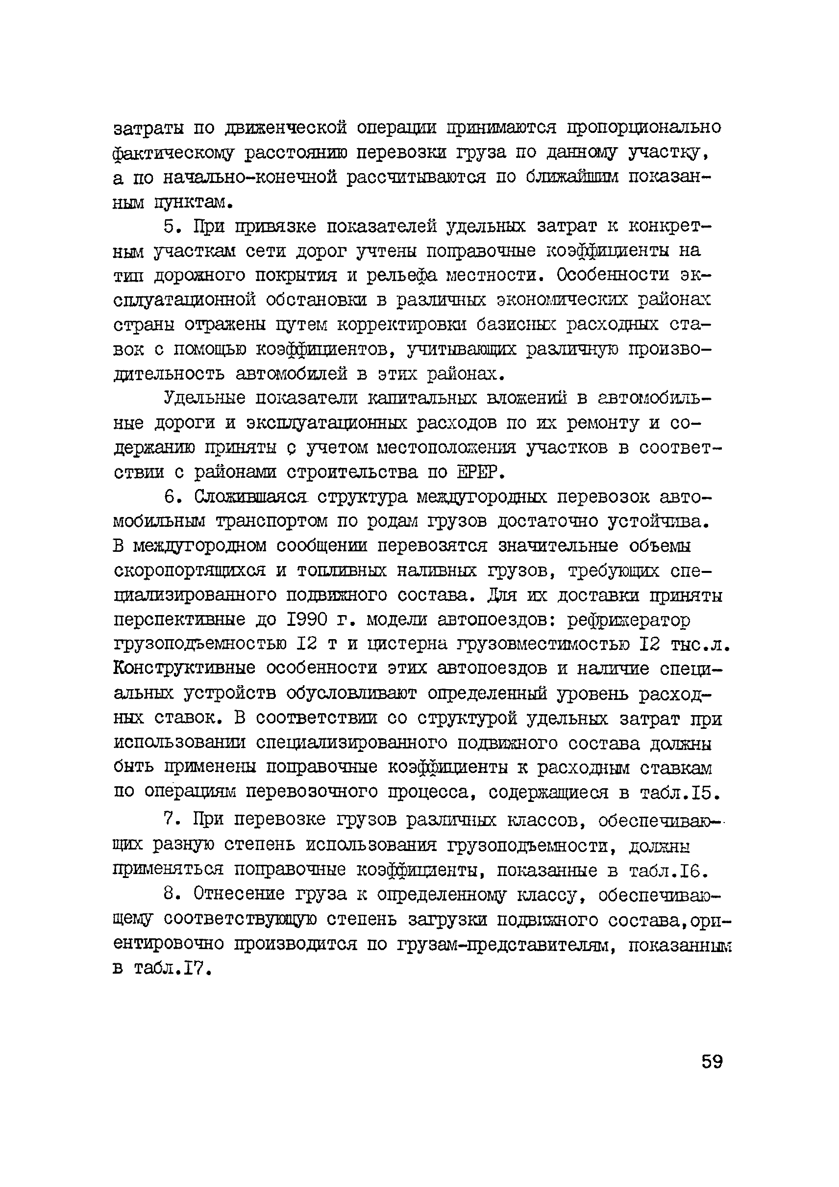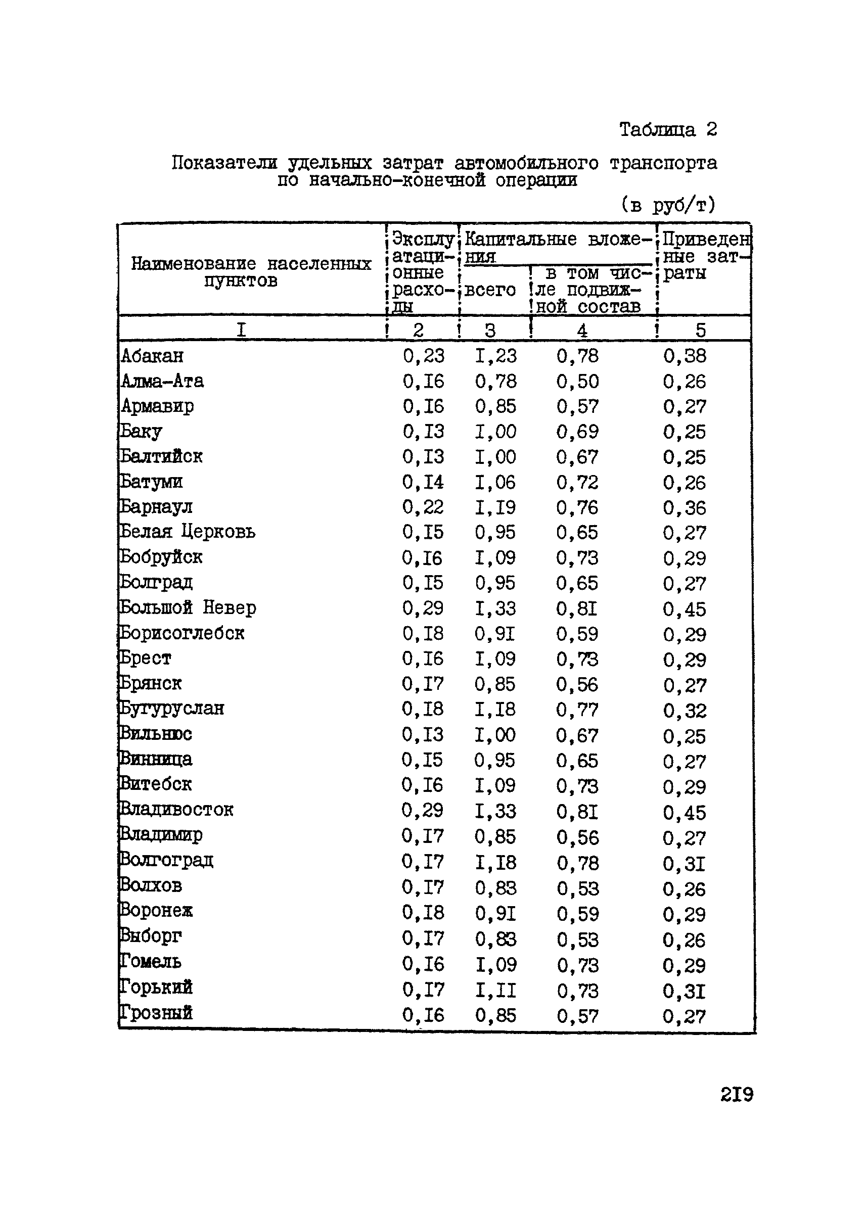 | Оглавление: | Предисловие Основные методические положения разработки показателей удельных затрат транспорта Общая часть Принципиальная концепция разработки показателей Общие методические положения расчета показателей удельных приростных затрат Способы разработки показателей удельных затрат транспорта Методические указания по применению показателей удельных затрат транспорта Общие положения расчета затрат транспорта Указания по расчету затрат на перевозку груза железнодорожным транспортом Указания по расчету затрат на перевозку груза речным транспортом Указания по расчету затрат на перевозку груза морским транспортом Указания по расчету затрат на перевозку груза автомобильным транспортом Указания по расчету затрат на перевозку груза в смешанном сообщении Приложение 1. Железнодорожный транспорт Таблица 1. Показатели удельных затрат железнодорожного транспорта по движенческой операции (на участках существующей железнодорожной сети) Таблица 2. Показатели удельных затрат железнодорожного транспорта по движенческой операции в грузовом направлении на новых линиях протяжением 100 км Таблица 3. Показатели удельных затрат железнодорожного транспорта по начально-конечной операции (на существующих железнодорожных узлах) Таблица 4. Укрупненные показатели затрат на перевозку груза по подъездным путям промышленных предприятий Таблица 5. Укрупненные показатели затрат по погрузке груза в вагоны и автомобили или выгрузке из них на подъездных путях промышленных предприятий Приложение 2. Речной транспорт Таблица 1. Показатели удельных затрат речного транспорта по движенческой операции Таблица 2. Показатели удельных затрат речного транспорта по начально—конечной операции при перевозке сухогрузов Таблица 3. Показатели удельных затрат речного транспорта по начально—конечной операции при перевозке нефтегрузов Таблица 4. Средние значения коэффициента загрузки речных судов Таблица 5. Коэффициент П к затратам на стоянку судов под грузовыми операциями Таблица 6. Коэффициент для учета приростных затрат по внутренним водным путям Таблица 7. Показатели удельных затрат Ж на перевалку груза в речных портах Таблица 8. Коэффициент‚ к показателям удельных затрат Таблица 9. Экономическая характеристика судов, принятых дня разработки показателей удельных затрат речного транспорта при перевозке сухогрузов Таблица 10. Экономическая характеристика судов, принятых дня разработки показателей удельных затрат речного транспорта при перевозке нефтегрузов Приложение 3. Морской транспорт Таблица 1. Показатели удельных затрат на перевозку груза морским флотом по видам транспортных операций Таблица 2. Показатели удельных затрат Д на обслуживание флота и организацию каботажных перевозок Таблица 3. Укрупненные показатели удельных затрат Ж на перевалку груза в морских портах Таблица 4. Средние значения коэффициента загрузки морских судов Таблица 5. Коэффициенты к показателям удельных затрат на движенческую и начальную и конечную операции в зависимости от района плавания Таблица 6. Коэффициент П к показателям удельных затрат по начальной или конечной операциям по специализированным причалам морского транспорта Таблица 7. Коэффициент к укрупненным показателям удельных затрат на перевалку груза в морских портах Таблица 8. Расст