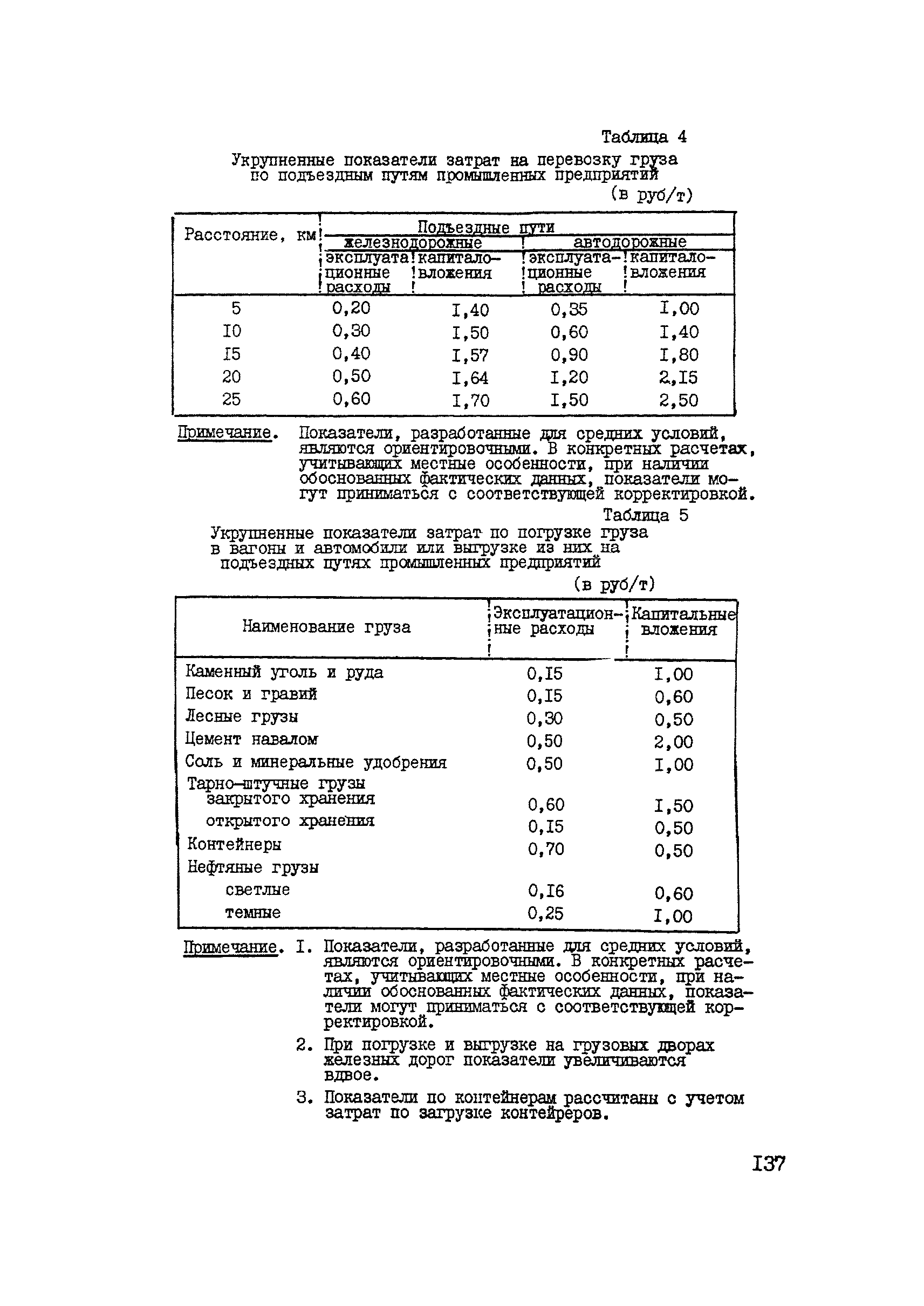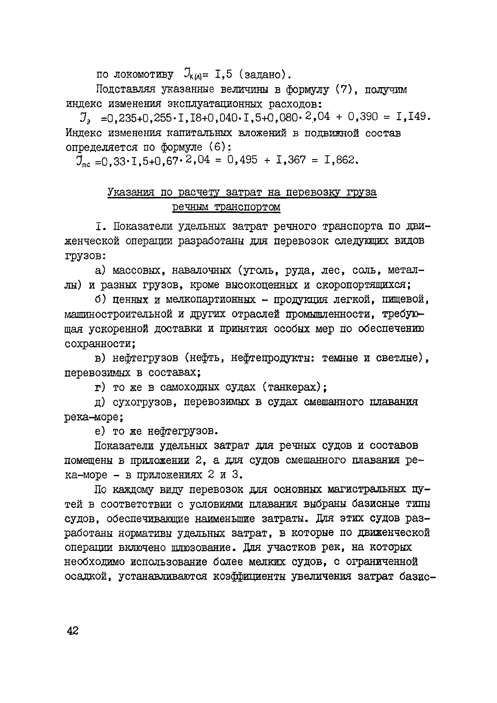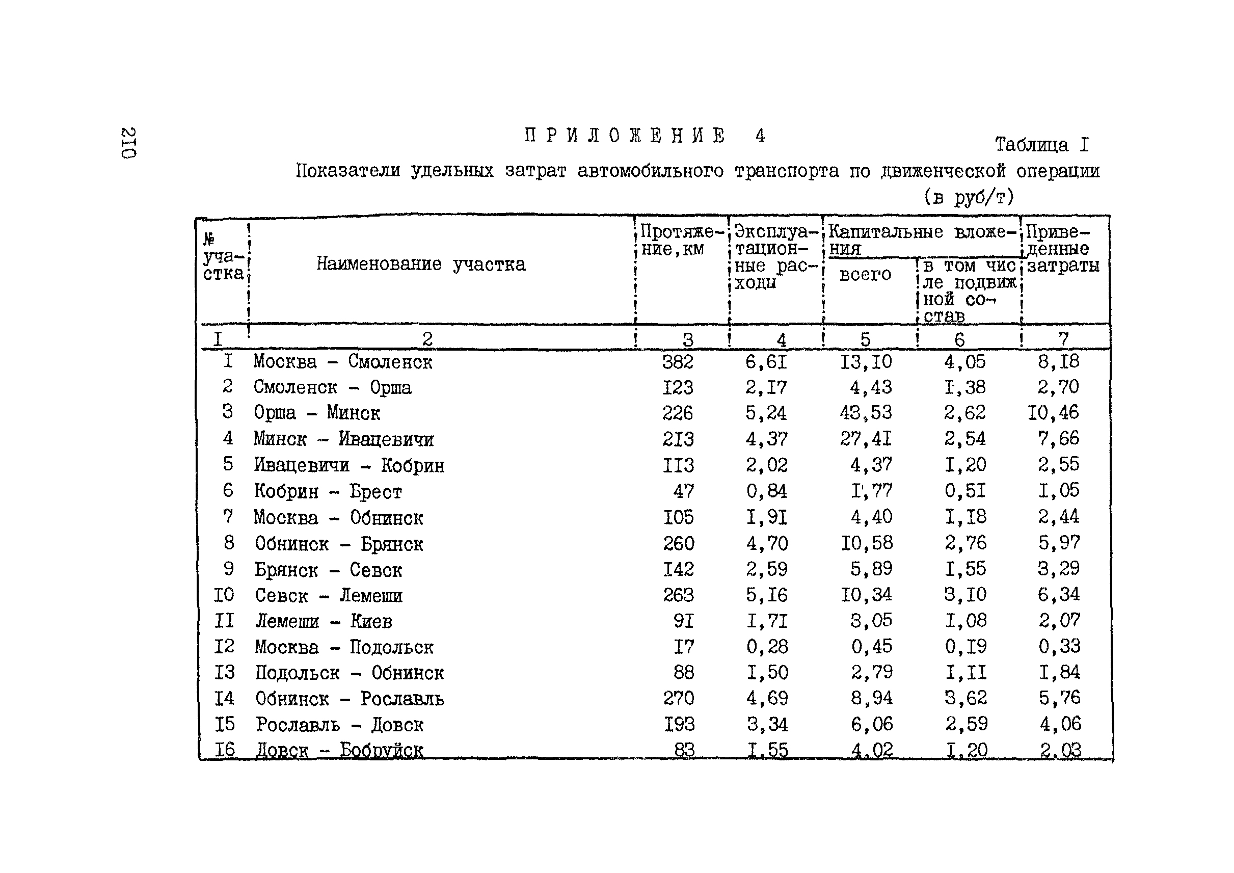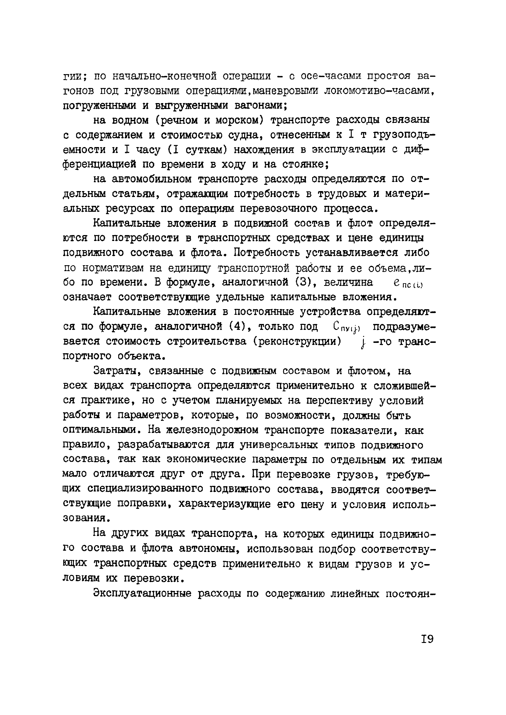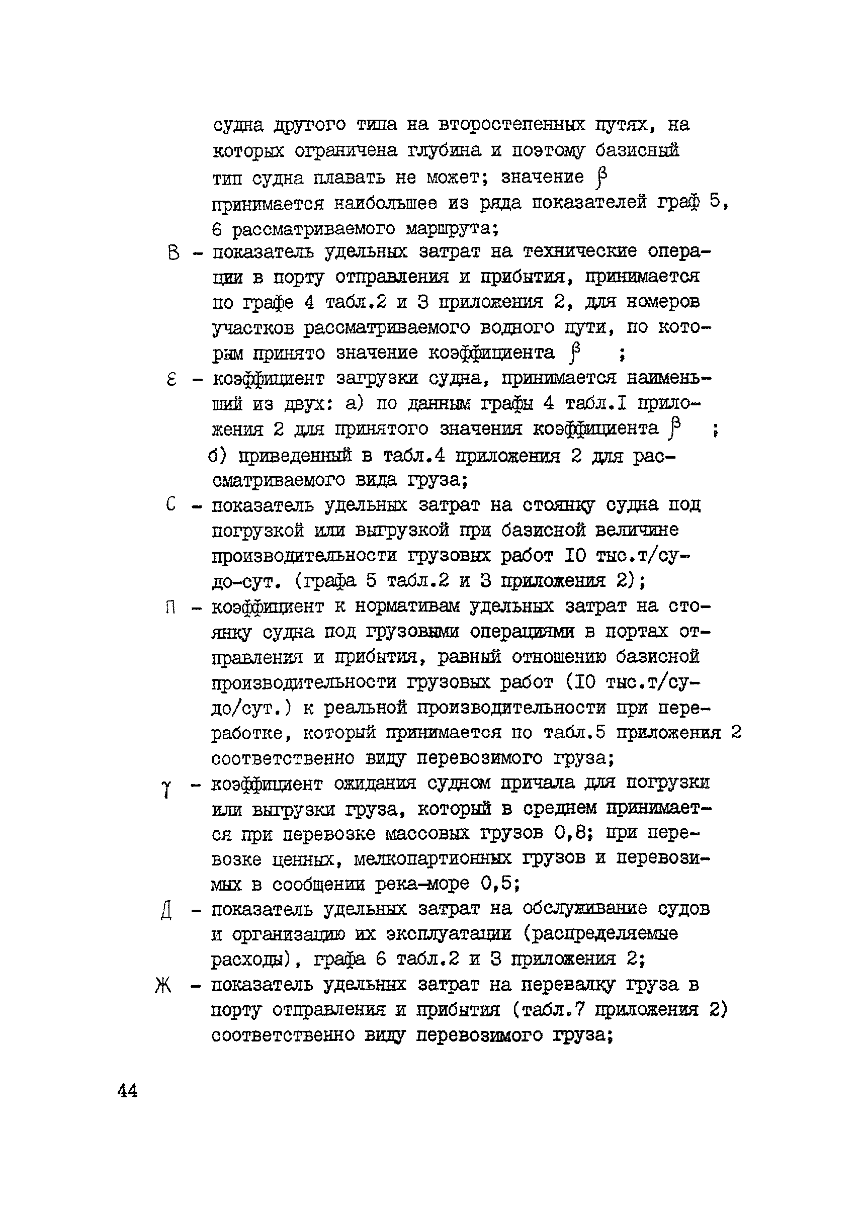 | Оглавление: | Предисловие Основные методические положения разработки показателей удельных затрат транспорта Общая часть Принципиальная концепция разработки показателей Общие методические положения расчета показателей удельных приростных затрат Способы разработки показателей удельных затрат транспорта Методические указания по применению показателей удельных затрат транспорта Общие положения расчета затрат транспорта Указания по расчету затрат на перевозку груза железнодорожным транспортом Указания по расчету затрат на перевозку груза речным транспортом Указания по расчету затрат на перевозку груза морским транспортом Указания по расчету затрат на перевозку груза автомобильным транспортом Указания по расчету затрат на перевозку груза в смешанном сообщении Приложение 1. Железнодорожный транспорт Таблица 1. Показатели удельных затрат железнодорожного транспорта по движенческой операции (на участках существующей железнодорожной сети) Таблица 2. Показатели удельных затрат железнодорожного транспорта по движенческой операции в грузовом направлении на новых линиях протяжением 100 км Таблица 3. Показатели удельных затрат железнодорожного транспорта по начально-конечной операции (на существующих железнодорожных узлах) Таблица 4. Укрупненные показатели затрат на перевозку груза по подъездным путям промышленных предприятий Таблица 5. Укрупненные показатели затрат по погрузке груза в вагоны и автомобили или выгрузке из них на подъездных путях промышленных предприятий Приложение 2. Речной транспорт Таблица 1. Показатели удельных затрат речного транспорта по движенческой операции Таблица 2. Показатели удельных затрат речного транспорта по начально—конечной операции при перевозке сухогрузов Таблица 3. Показатели удельных затрат речного транспорта по начально—конечной операции при перевозке нефтегрузов Таблица 4. Средние значения коэффициента загрузки речных судов Таблица 5. Коэффициент П к затратам на стоянку судов под грузовыми операциями Таблица 6. Коэффициент для учета приростных затрат по внутренним водным путям Таблица 7. Показатели удельных затрат Ж на перевалку груза в речных портах Таблица 8. Коэффициент‚ к показателям удельных затрат Таблица 9. Экономическая характеристика судов, принятых дня разработки показателей удельных затрат речного транспорта при перевозке сухогрузов Таблица 10. Экономическая характеристика судов, принятых дня разработки показателей удельных затрат речного транспорта при перевозке нефтегрузов Приложение 3. Морской транспорт Таблица 1. Показатели удельных затрат на перевозку груза морским флотом по видам транспортных операций Таблица 2. Показатели удельных затрат Д на обслуживание флота и организацию каботажных перевозок Таблица 3. Укрупненные показатели удельных затрат Ж на перевалку груза в морских портах Таблица 4. Средние значения коэффициента загрузки морских судов Таблица 5. Коэффициенты к показателям удельных затрат на движенческую и начальную и конечную операции в зависимости от района плавания Таблица 6. Коэффициент П к показателям удельных затрат по начальной или конечной операциям по специализированным причалам морского транспорта Таблица 7. Коэффициент к укрупненным показателям удельных затрат на перевалку груза в морских портах Таблица 8. Расст