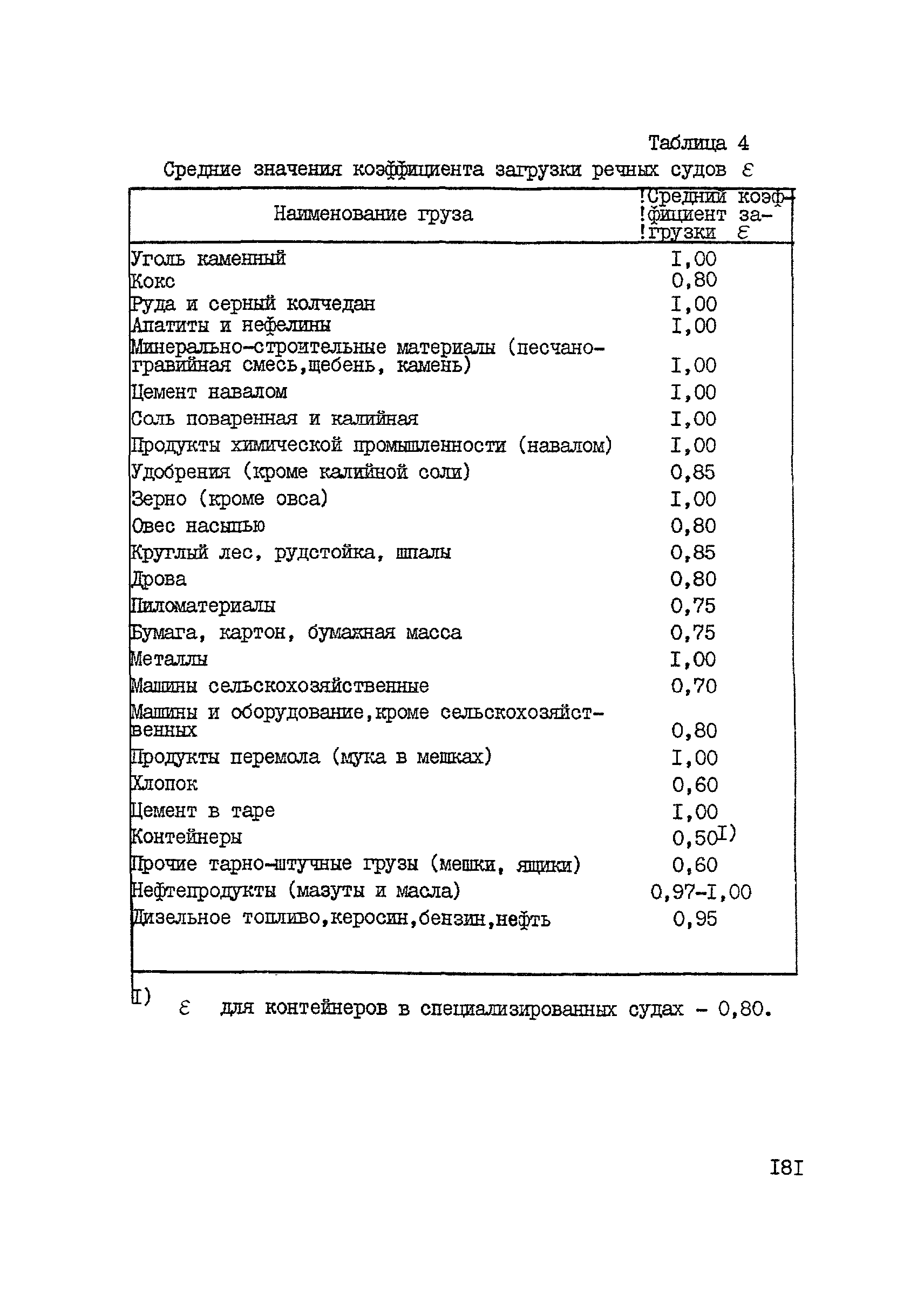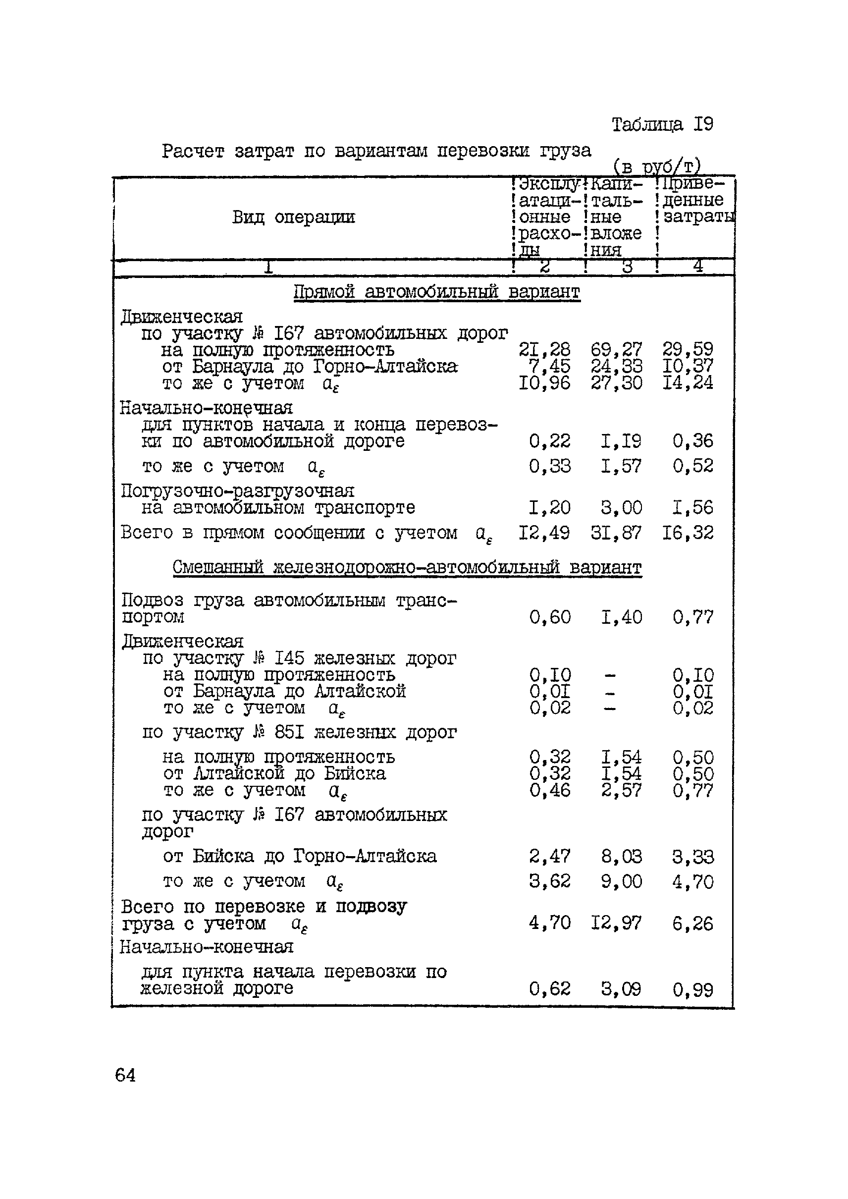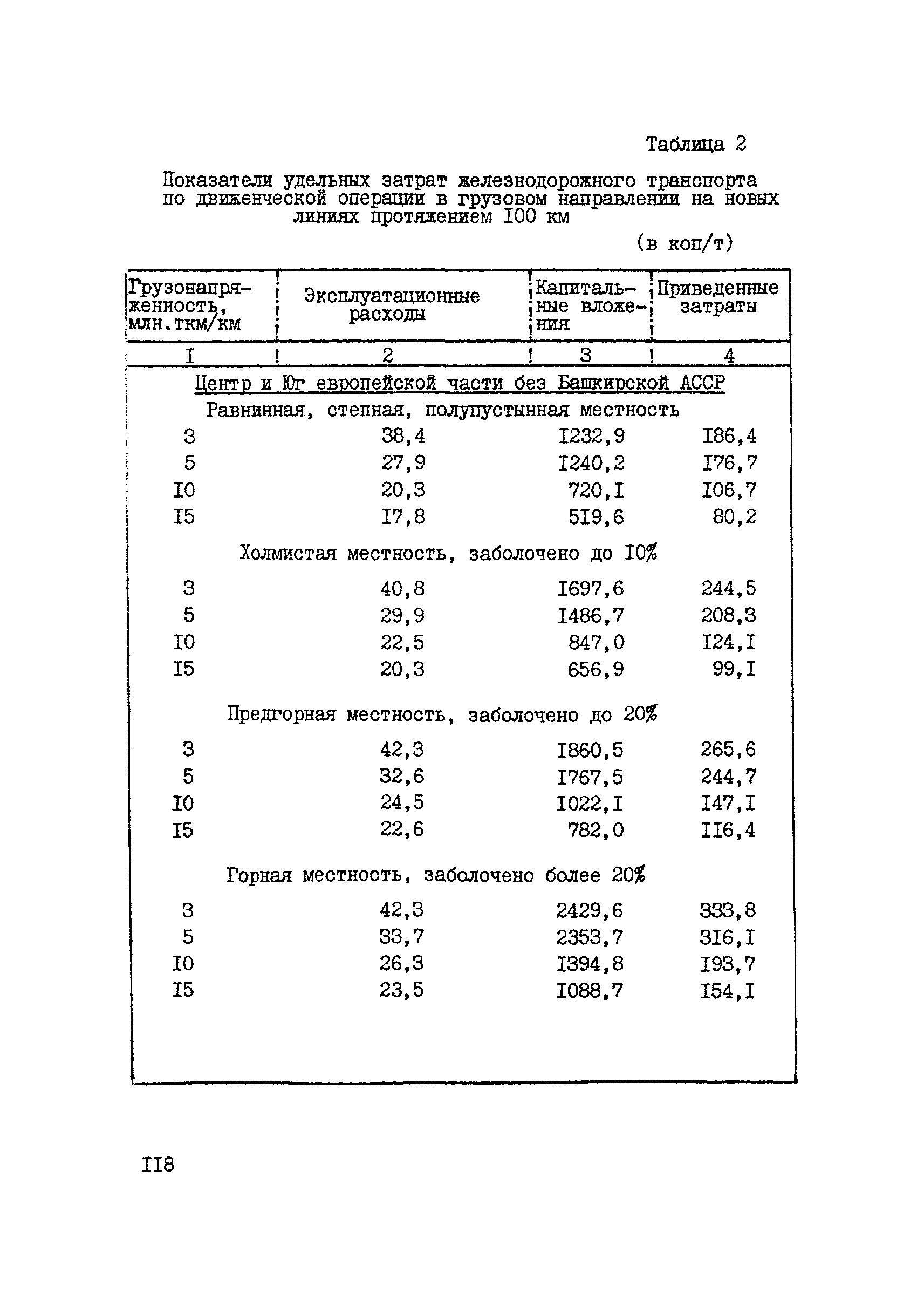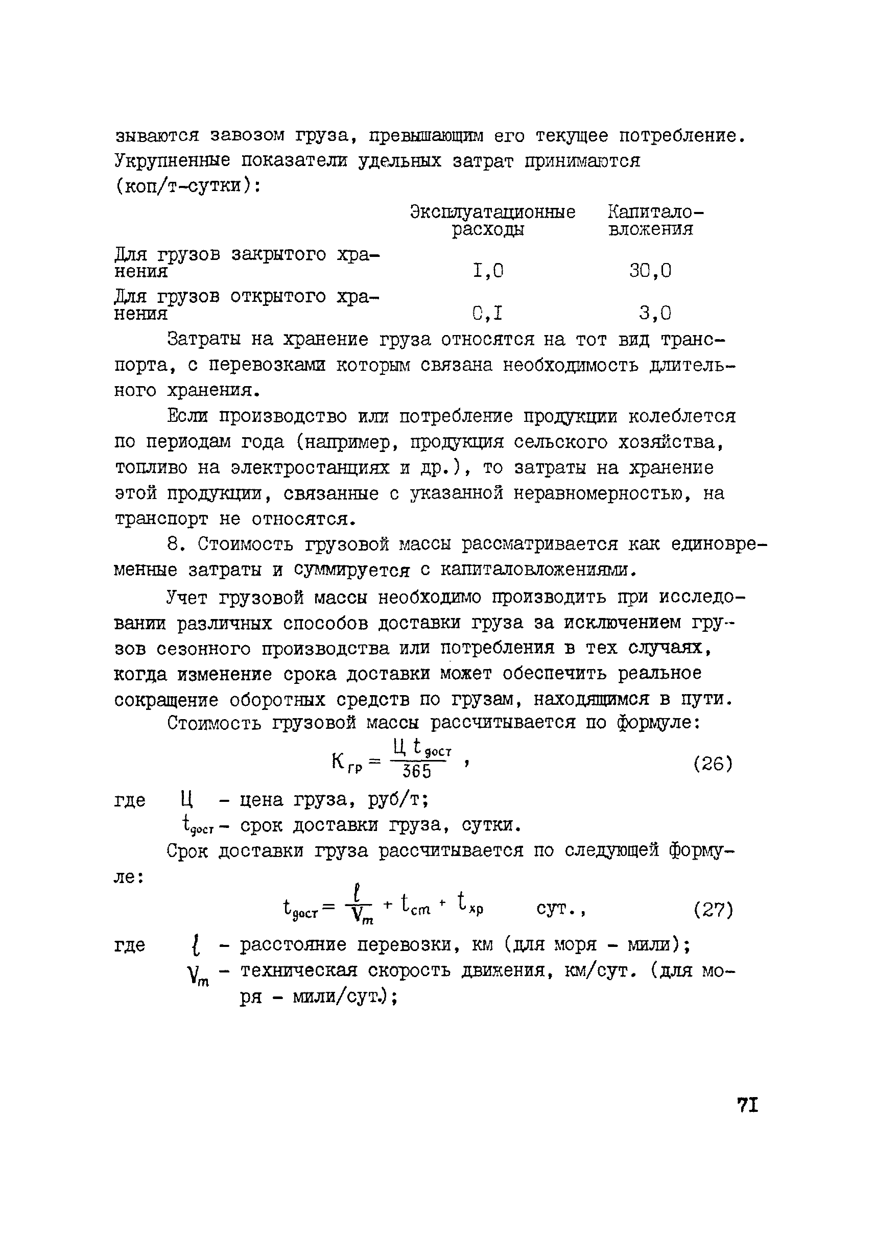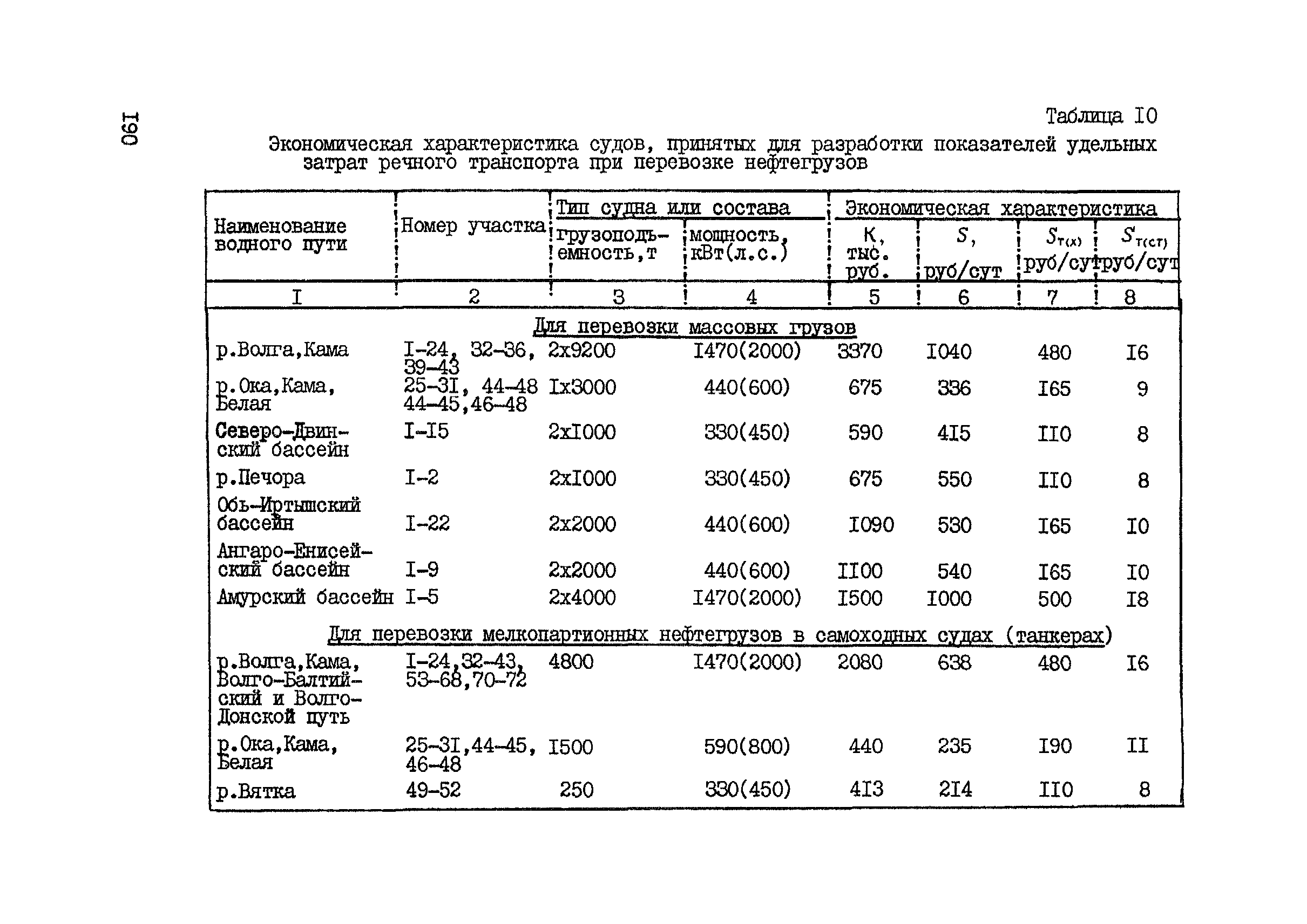 | Оглавление: | Предисловие Основные методические положения разработки показателей удельных затрат транспорта Общая часть Принципиальная концепция разработки показателей Общие методические положения расчета показателей удельных приростных затрат Способы разработки показателей удельных затрат транспорта Методические указания по применению показателей удельных затрат транспорта Общие положения расчета затрат транспорта Указания по расчету затрат на перевозку груза железнодорожным транспортом Указания по расчету затрат на перевозку груза речным транспортом Указания по расчету затрат на перевозку груза морским транспортом Указания по расчету затрат на перевозку груза автомобильным транспортом Указания по расчету затрат на перевозку груза в смешанном сообщении Приложение 1. Железнодорожный транспорт Таблица 1. Показатели удельных затрат железнодорожного транспорта по движенческой операции (на участках существующей железнодорожной сети) Таблица 2. Показатели удельных затрат железнодорожного транспорта по движенческой операции в грузовом направлении на новых линиях протяжением 100 км Таблица 3. Показатели удельных затрат железнодорожного транспорта по начально-конечной операции (на существующих железнодорожных узлах) Таблица 4. Укрупненные показатели затрат на перевозку груза по подъездным путям промышленных предприятий Таблица 5. Укрупненные показатели затрат по погрузке груза в вагоны и автомобили или выгрузке из них на подъездных путях промышленных предприятий Приложение 2. Речной транспорт Таблица 1. Показатели удельных затрат речного транспорта по движенческой операции Таблица 2. Показатели удельных затрат речного транспорта по начально—конечной операции при перевозке сухогрузов Таблица 3. Показатели удельных затрат речного транспорта по начально—конечной операции при перевозке нефтегрузов Таблица 4. Средние значения коэффициента загрузки речных судов Таблица 5. Коэффициент П к затратам на стоянку судов под грузовыми операциями Таблица 6. Коэффициент для учета приростных затрат по внутренним водным путям Таблица 7. Показатели удельных затрат Ж на перевалку груза в речных портах Таблица 8. Коэффициент‚ к показателям удельных затрат Таблица 9. Экономическая характеристика судов, принятых дня разработки показателей удельных затрат речного транспорта при перевозке сухогрузов Таблица 10. Экономическая характеристика судов, принятых дня разработки показателей удельных затрат речного транспорта при перевозке нефтегрузов Приложение 3. Морской транспорт Таблица 1. Показатели удельных затрат на перевозку груза морским флотом по видам транспортных операций Таблица 2. Показатели удельных затрат Д на обслуживание флота и организацию каботажных перевозок Таблица 3. Укрупненные показатели удельных затрат Ж на перевалку груза в морских портах Таблица 4. Средние значения коэффициента загрузки морских судов Таблица 5. Коэффициенты к показателям удельных затрат на движенческую и начальную и конечную операции в зависимости от района плавания Таблица 6. Коэффициент П к показателям удельных затрат по начальной или конечной операциям по специализированным причалам морского транспорта Таблица 7. Коэффициент к укрупненным показателям удельных затрат на перевалку груза в морских портах Таблица 8. Расст