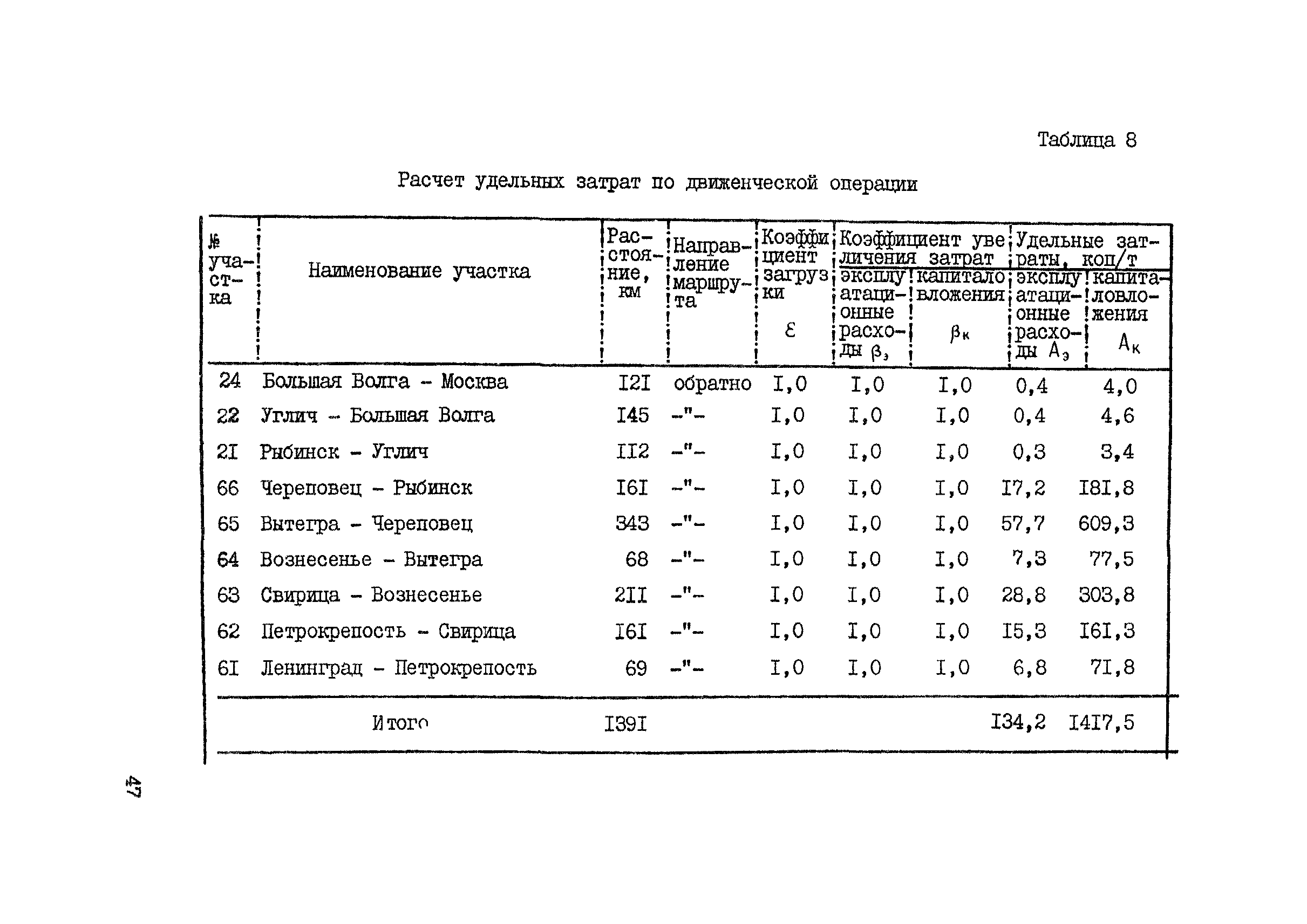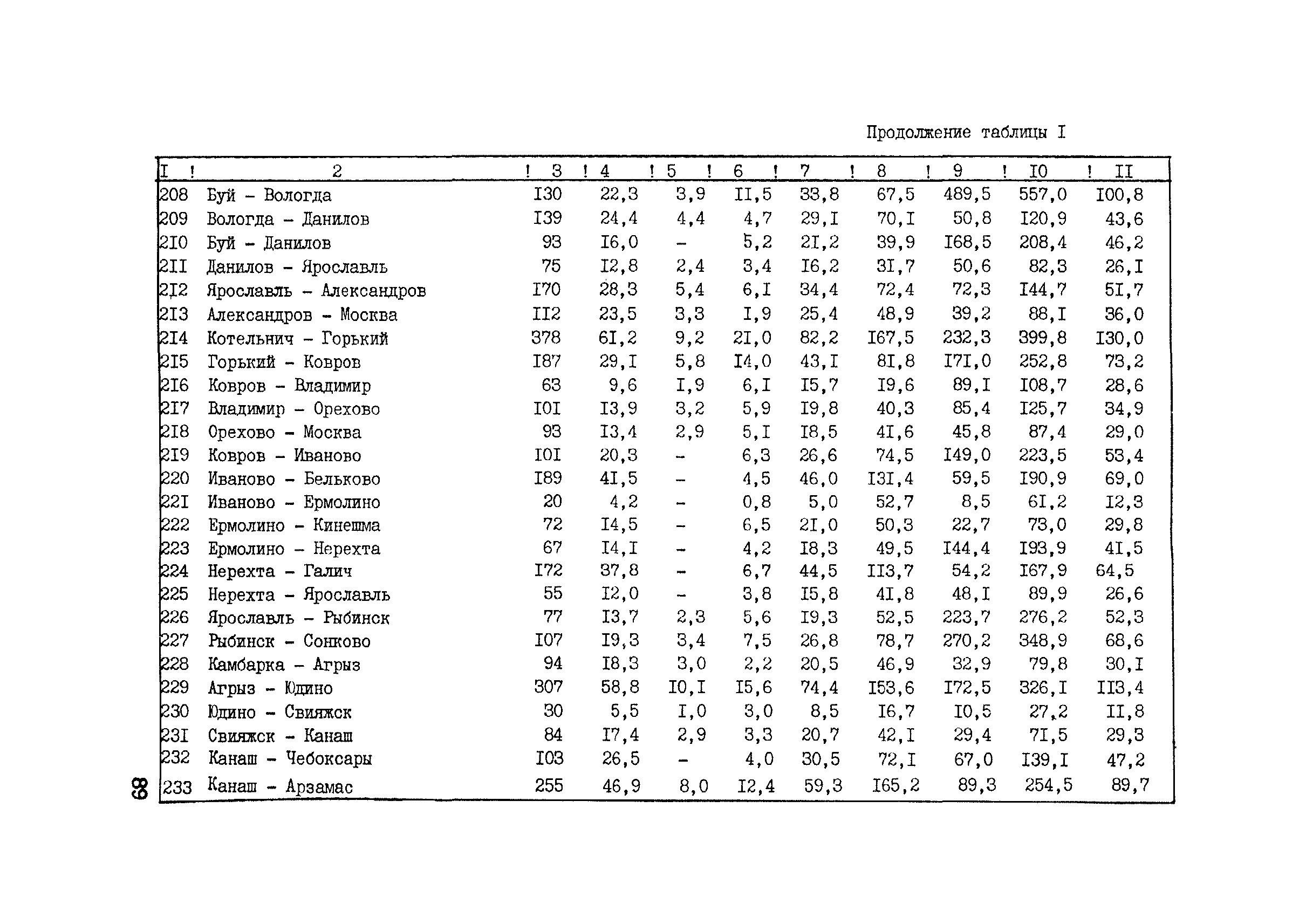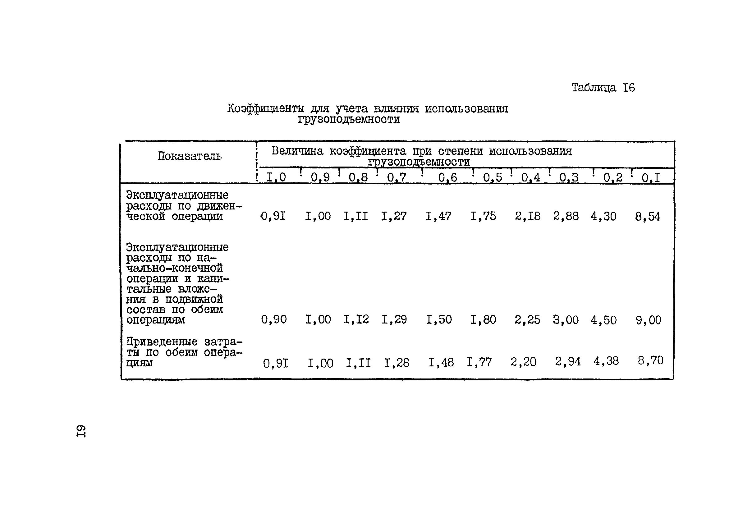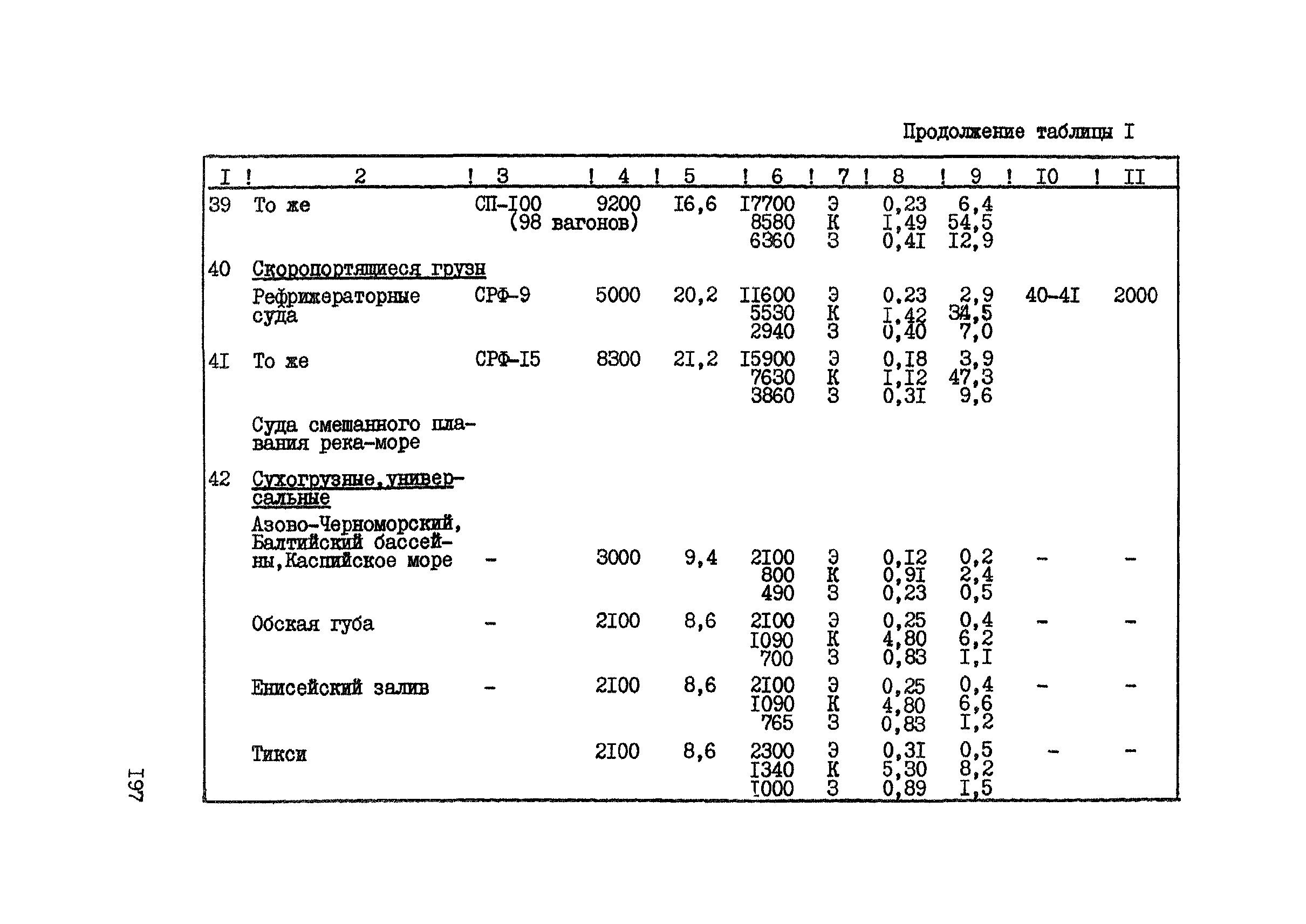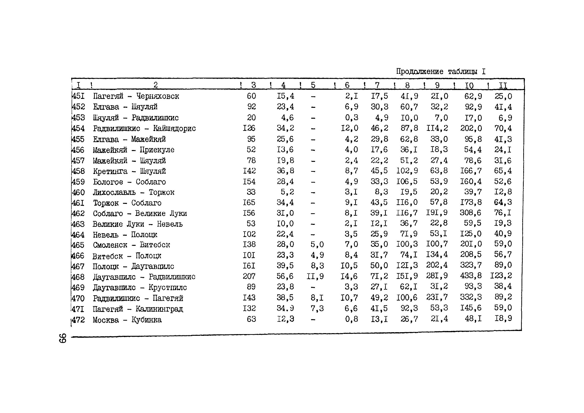 | Оглавление: | Предисловие Основные методические положения разработки показателей удельных затрат транспорта Общая часть Принципиальная концепция разработки показателей Общие методические положения расчета показателей удельных приростных затрат Способы разработки показателей удельных затрат транспорта Методические указания по применению показателей удельных затрат транспорта Общие положения расчета затрат транспорта Указания по расчету затрат на перевозку груза железнодорожным транспортом Указания по расчету затрат на перевозку груза речным транспортом Указания по расчету затрат на перевозку груза морским транспортом Указания по расчету затрат на перевозку груза автомобильным транспортом Указания по расчету затрат на перевозку груза в смешанном сообщении Приложение 1. Железнодорожный транспорт Таблица 1. Показатели удельных затрат железнодорожного транспорта по движенческой операции (на участках существующей железнодорожной сети) Таблица 2. Показатели удельных затрат железнодорожного транспорта по движенческой операции в грузовом направлении на новых линиях протяжением 100 км Таблица 3. Показатели удельных затрат железнодорожного транспорта по начально-конечной операции (на существующих железнодорожных узлах) Таблица 4. Укрупненные показатели затрат на перевозку груза по подъездным путям промышленных предприятий Таблица 5. Укрупненные показатели затрат по погрузке груза в вагоны и автомобили или выгрузке из них на подъездных путях промышленных предприятий Приложение 2. Речной транспорт Таблица 1. Показатели удельных затрат речного транспорта по движенческой операции Таблица 2. Показатели удельных затрат речного транспорта по начально—конечной операции при перевозке сухогрузов Таблица 3. Показатели удельных затрат речного транспорта по начально—конечной операции при перевозке нефтегрузов Таблица 4. Средние значения коэффициента загрузки речных судов Таблица 5. Коэффициент П к затратам на стоянку судов под грузовыми операциями Таблица 6. Коэффициент для учета приростных затрат по внутренним водным путям Таблица 7. Показатели удельных затрат Ж на перевалку груза в речных портах Таблица 8. Коэффициент‚ к показателям удельных затрат Таблица 9. Экономическая характеристика судов, принятых дня разработки показателей удельных затрат речного транспорта при перевозке сухогрузов Таблица 10. Экономическая характеристика судов, принятых дня разработки показателей удельных затрат речного транспорта при перевозке нефтегрузов Приложение 3. Морской транспорт Таблица 1. Показатели удельных затрат на перевозку груза морским флотом по видам транспортных операций Таблица 2. Показатели удельных затрат Д на обслуживание флота и организацию каботажных перевозок Таблица 3. Укрупненные показатели удельных затрат Ж на перевалку груза в морских портах Таблица 4. Средние значения коэффициента загрузки морских судов Таблица 5. Коэффициенты к показателям удельных затрат на движенческую и начальную и конечную операции в зависимости от района плавания Таблица 6. Коэффициент П к показателям удельных затрат по начальной или конечной операциям по специализированным причалам морского транспорта Таблица 7. Коэффициент к укрупненным показателям удельных затрат на перевалку груза в морских портах Таблица 8. Расст