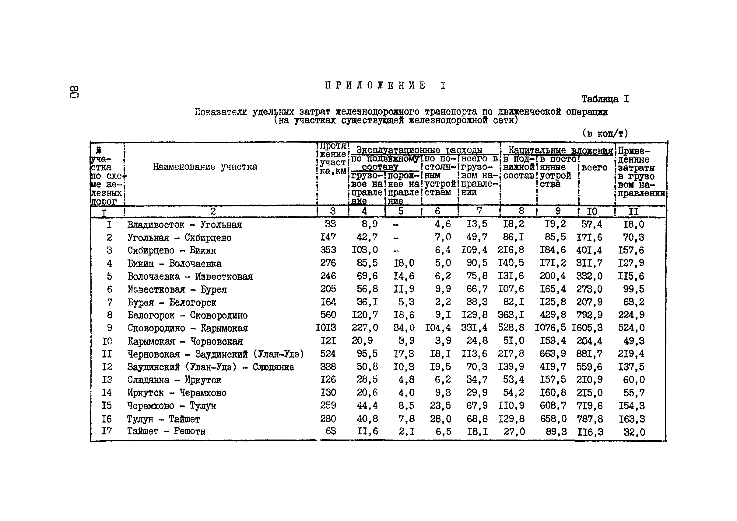 - «Поучастковые показатели приведенных затрат железнодорожного транспорта» (1970 год)